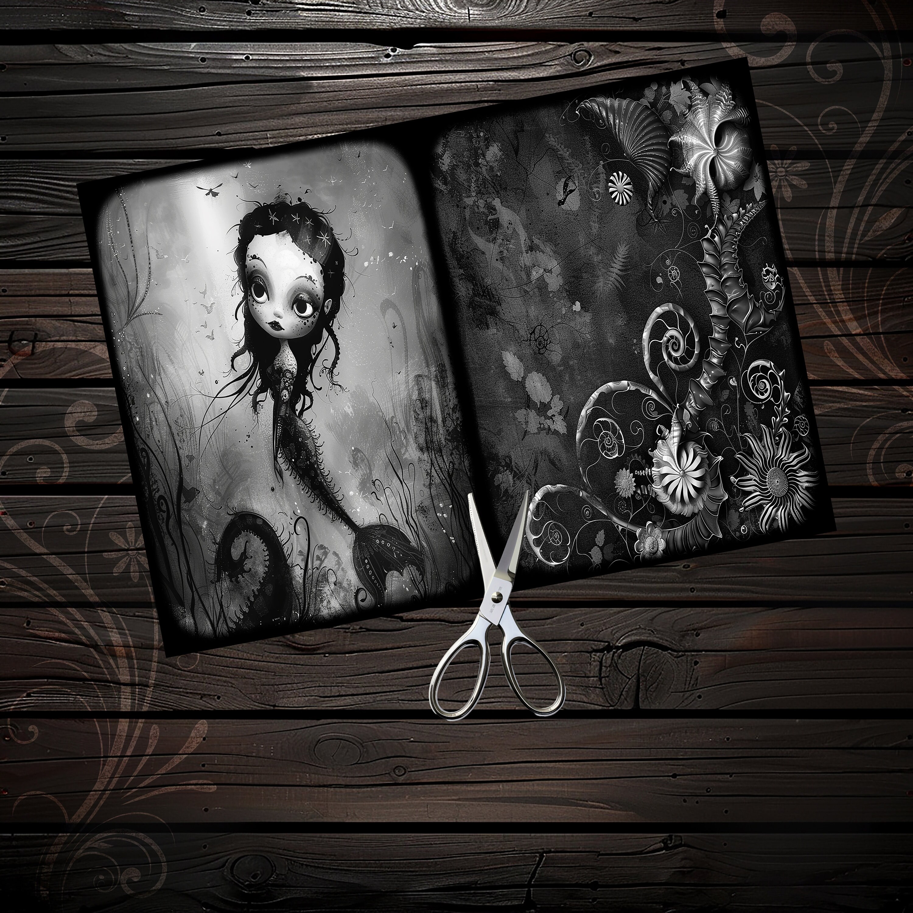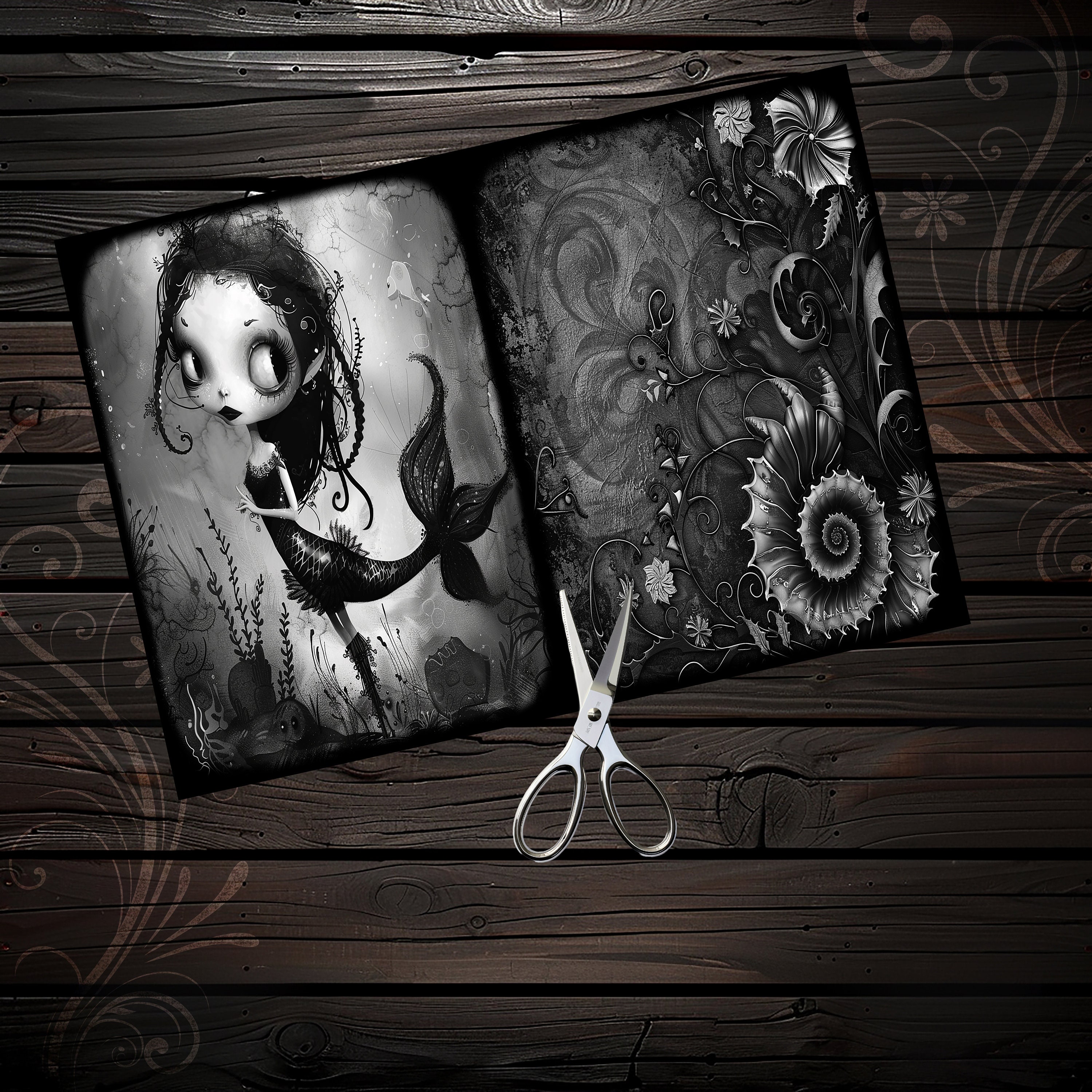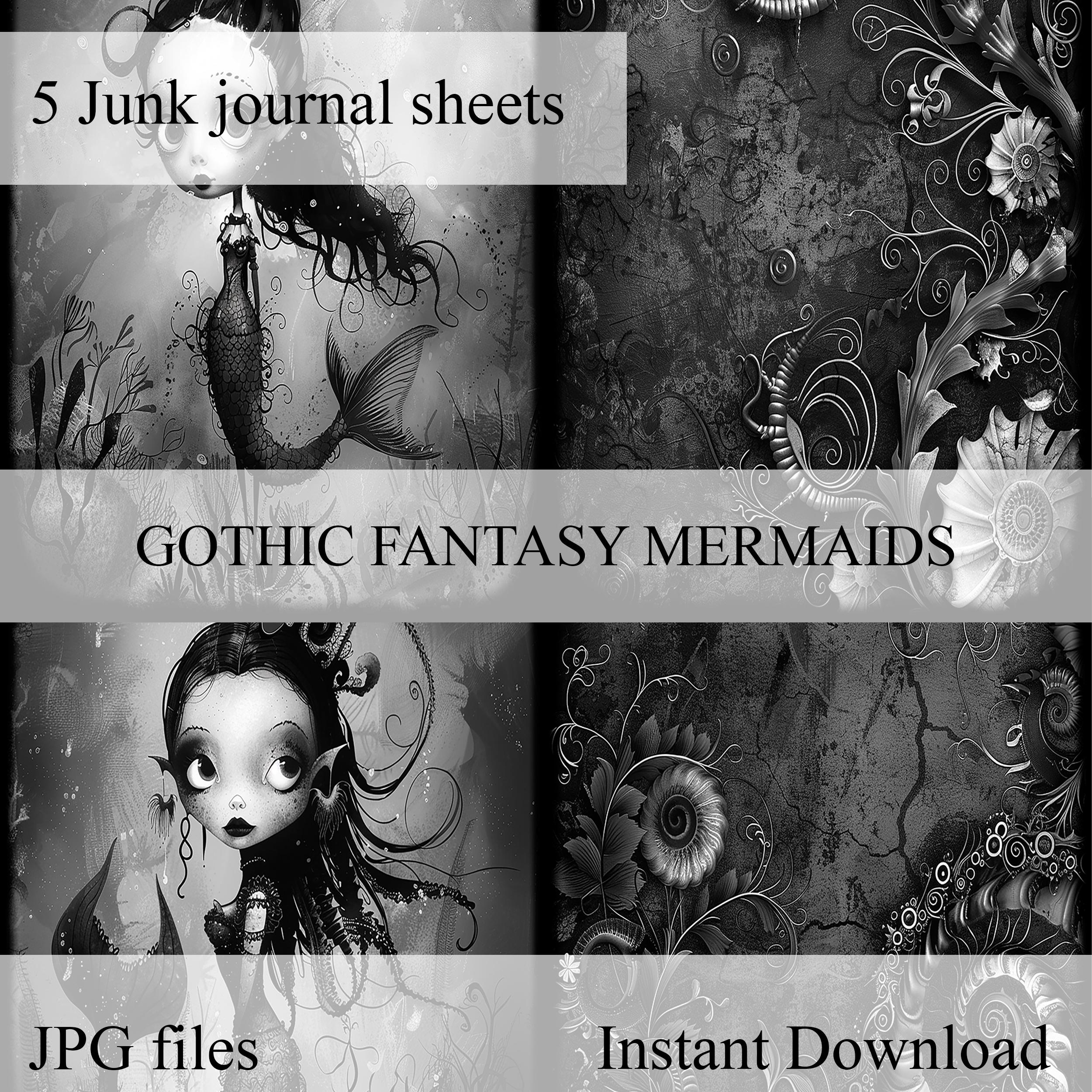 Gothic mermaid junk journal paper, scrapbook, scrapbooking set, ephemera, fantasy, printable paper