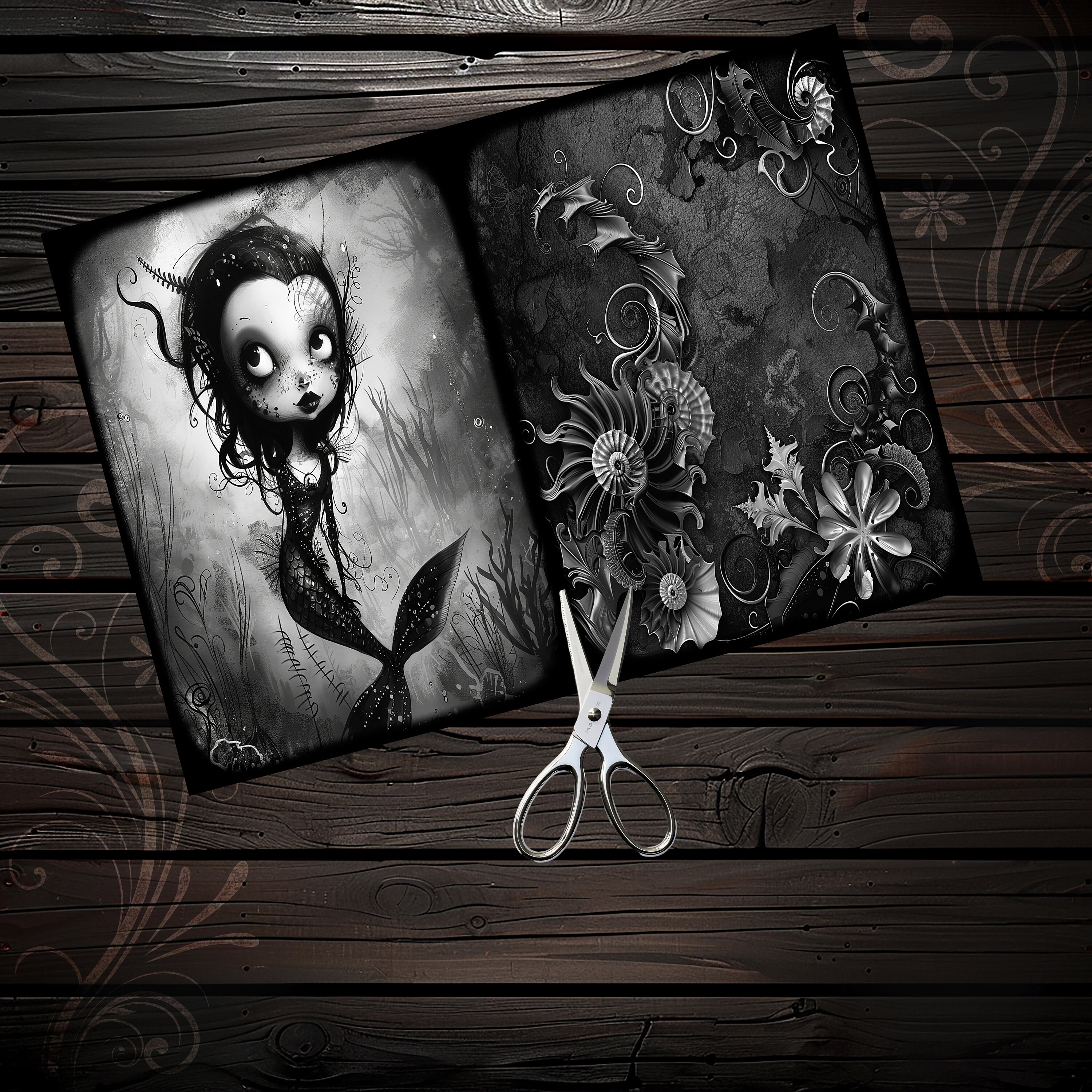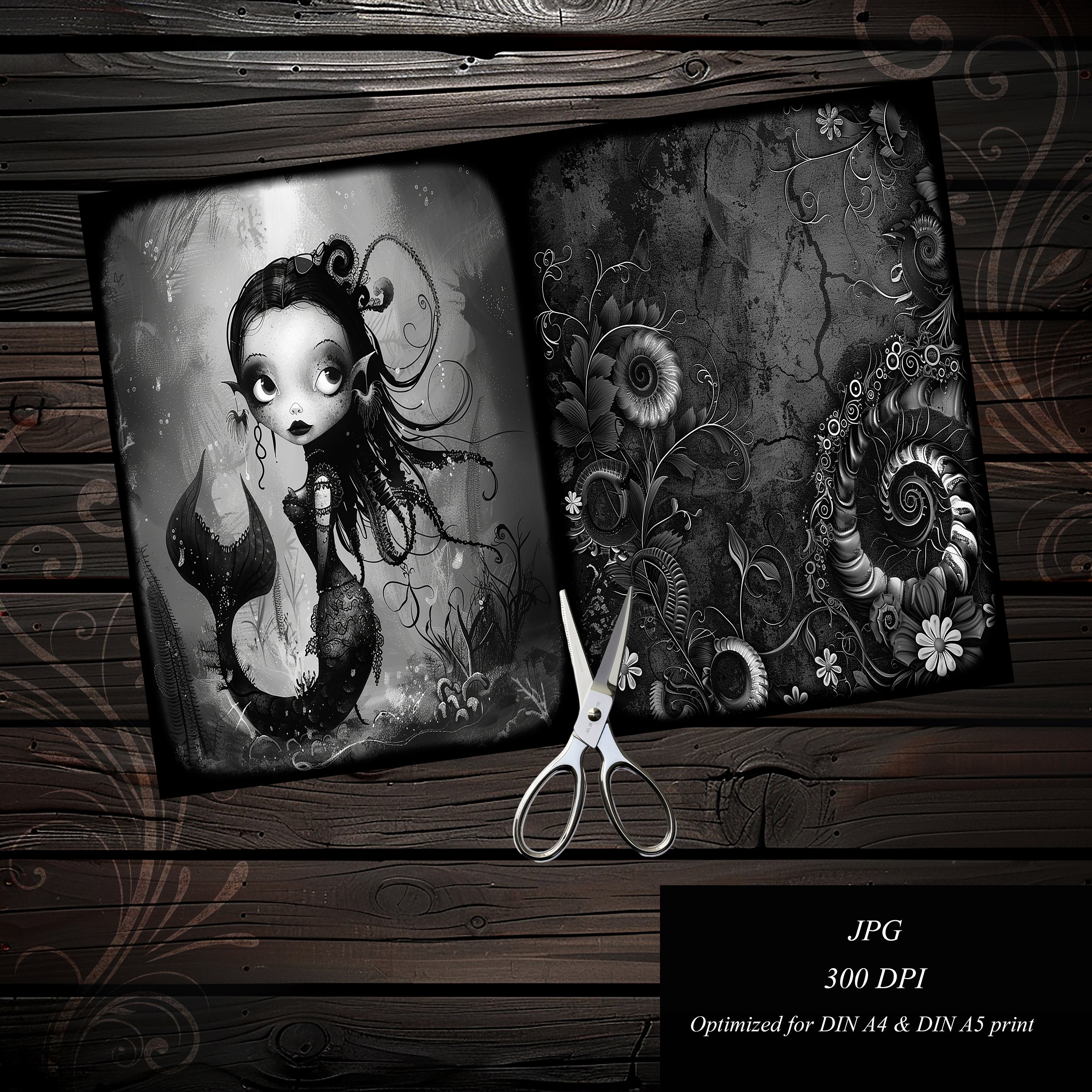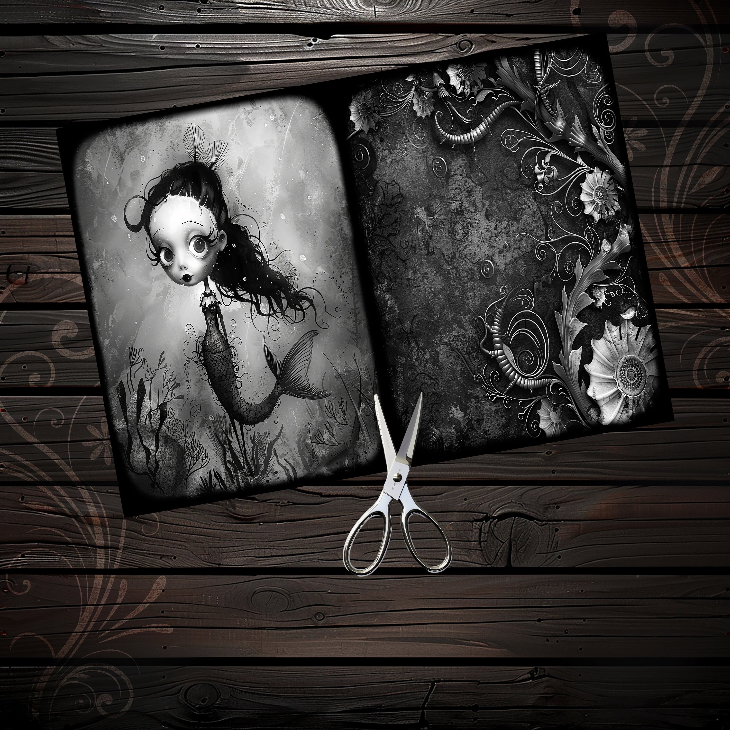 Gothic mermaid junk journal paper, scrapbook, scrapbooking set, ephemera, fantasy, printable paper