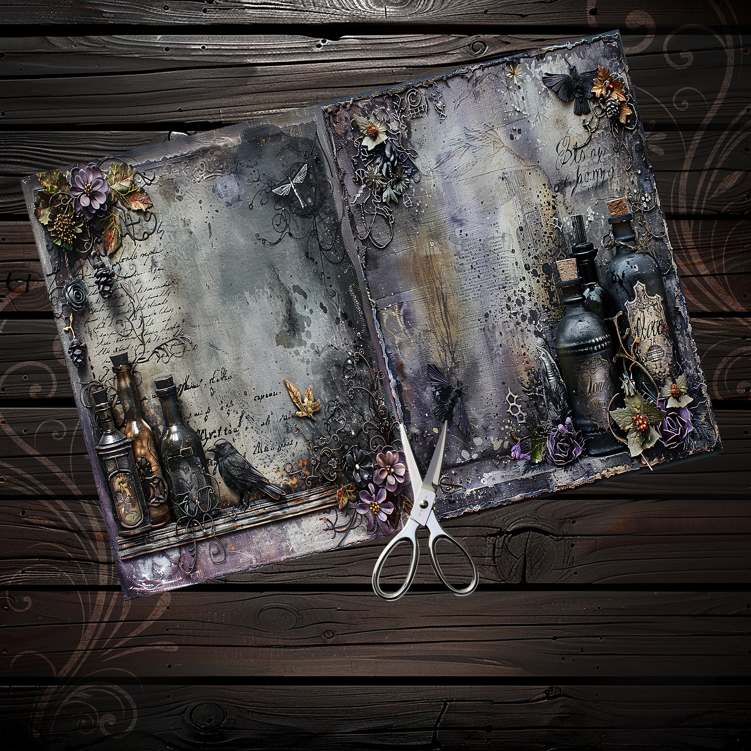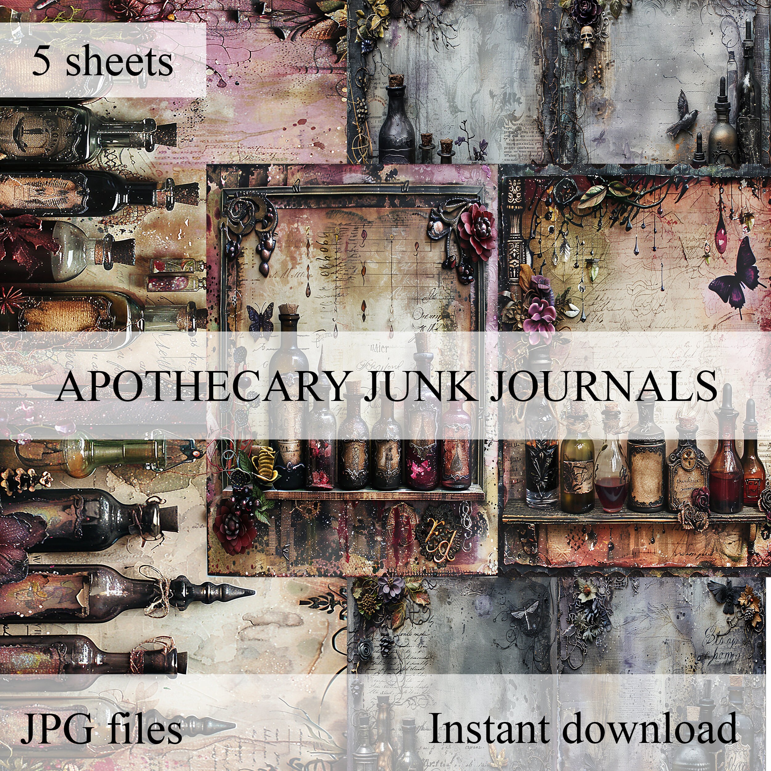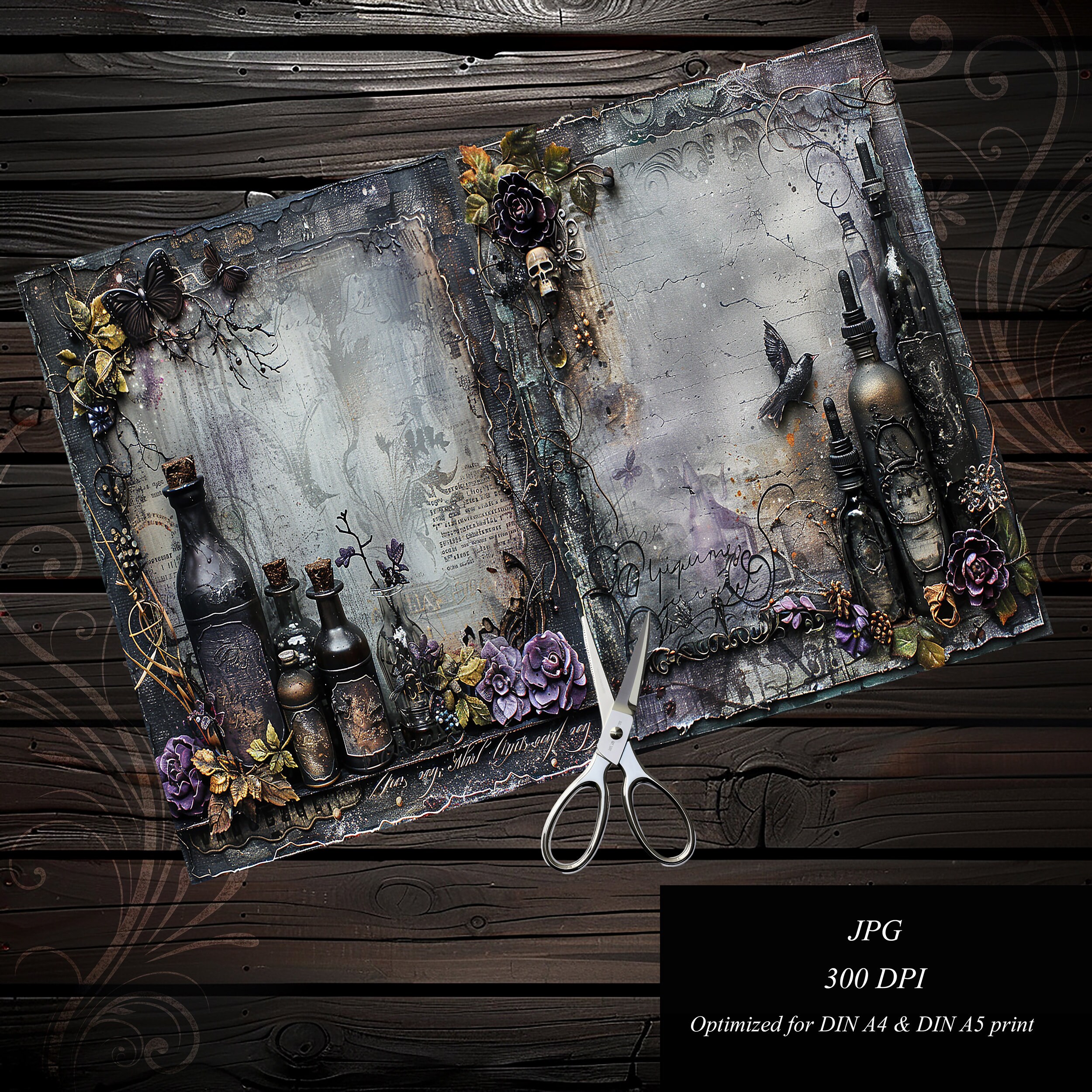 Dark Apothecary Junk Journal pages, Pharmacy Junk Journal collage, scrapbooking handmade, scrapbook pages, journal pages, digital, sheets