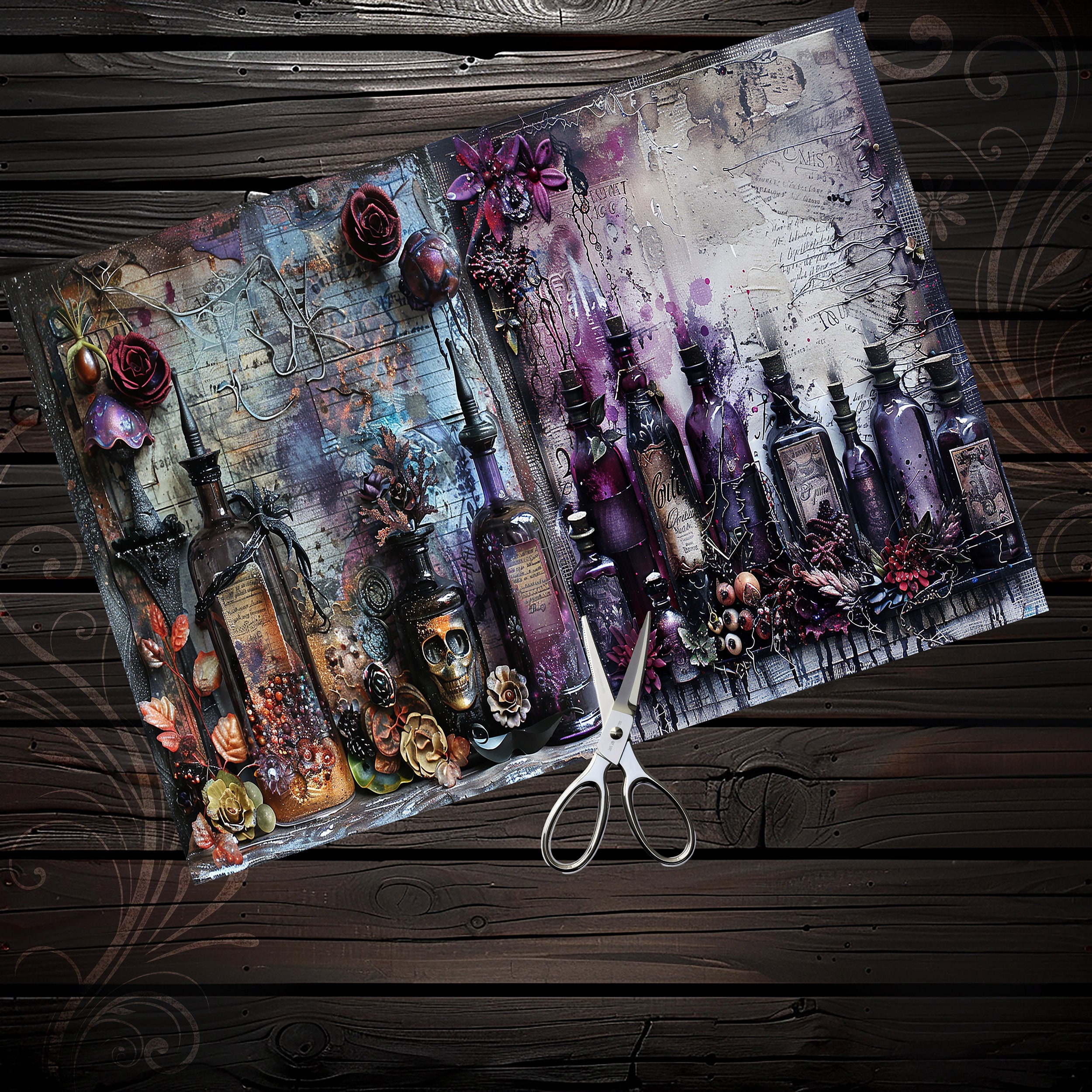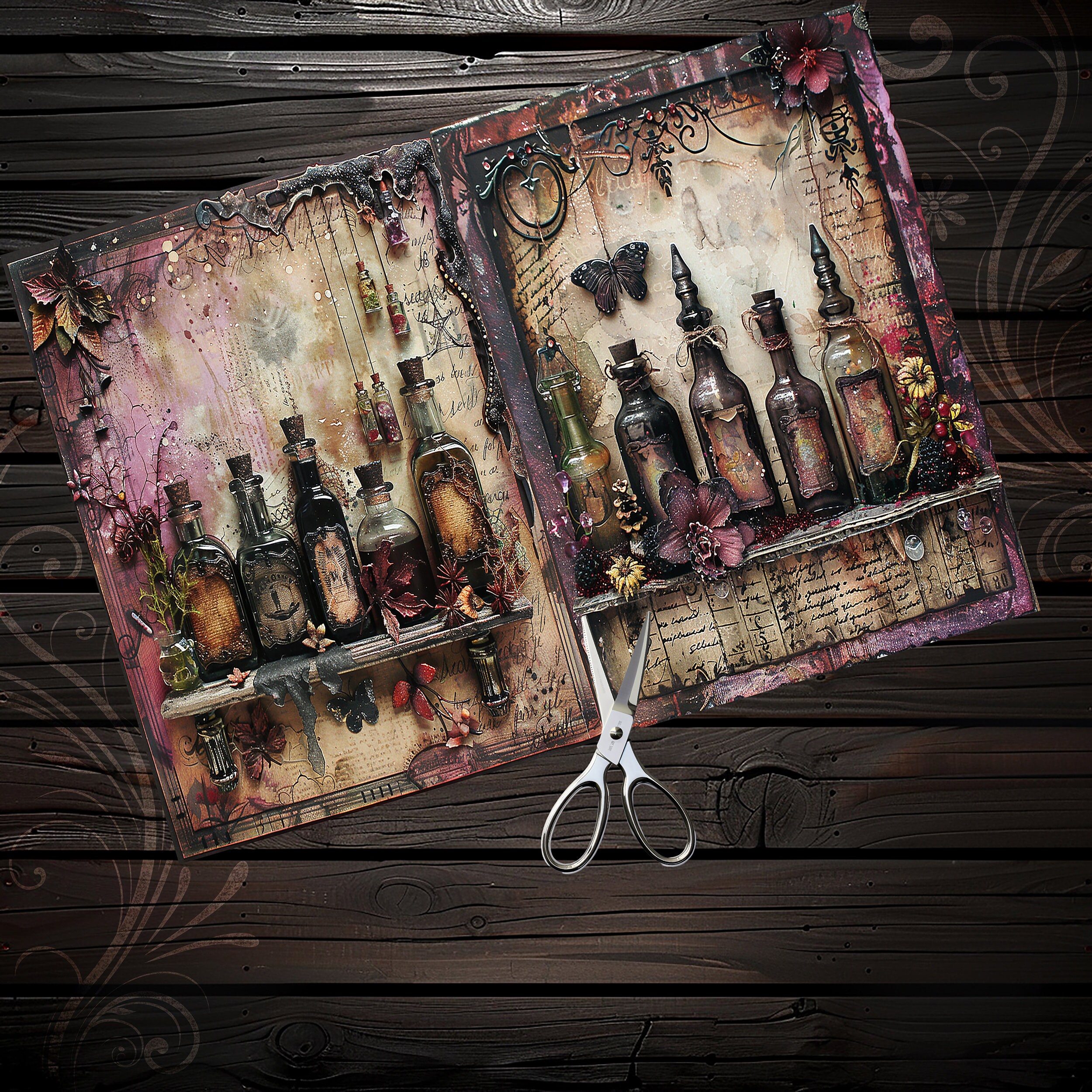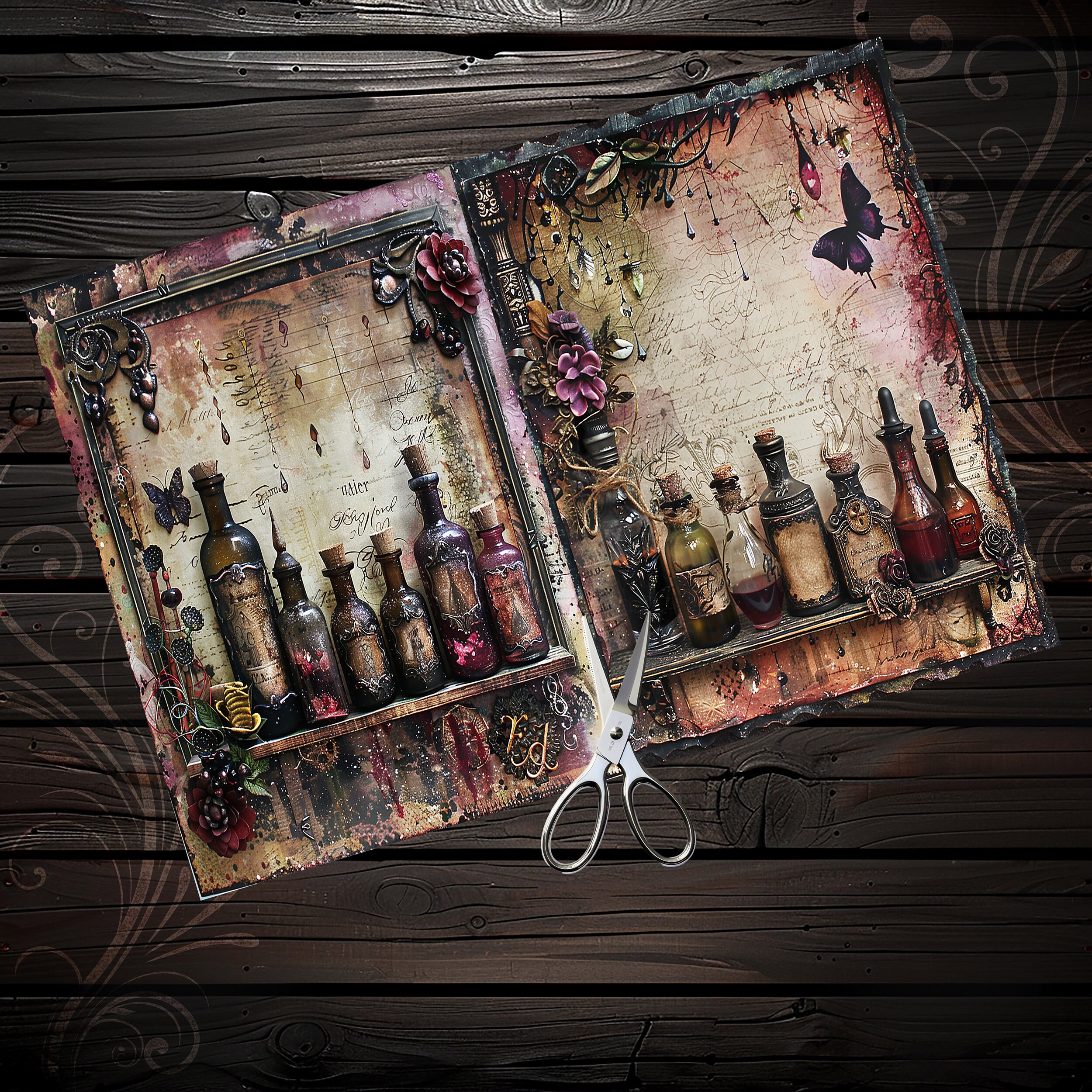 Dark Apothecary Junk Journal pages, Pharmacy Junk Journal collage, scrapbooking handmade, scrapbook pages, journal pages, digital, sheets