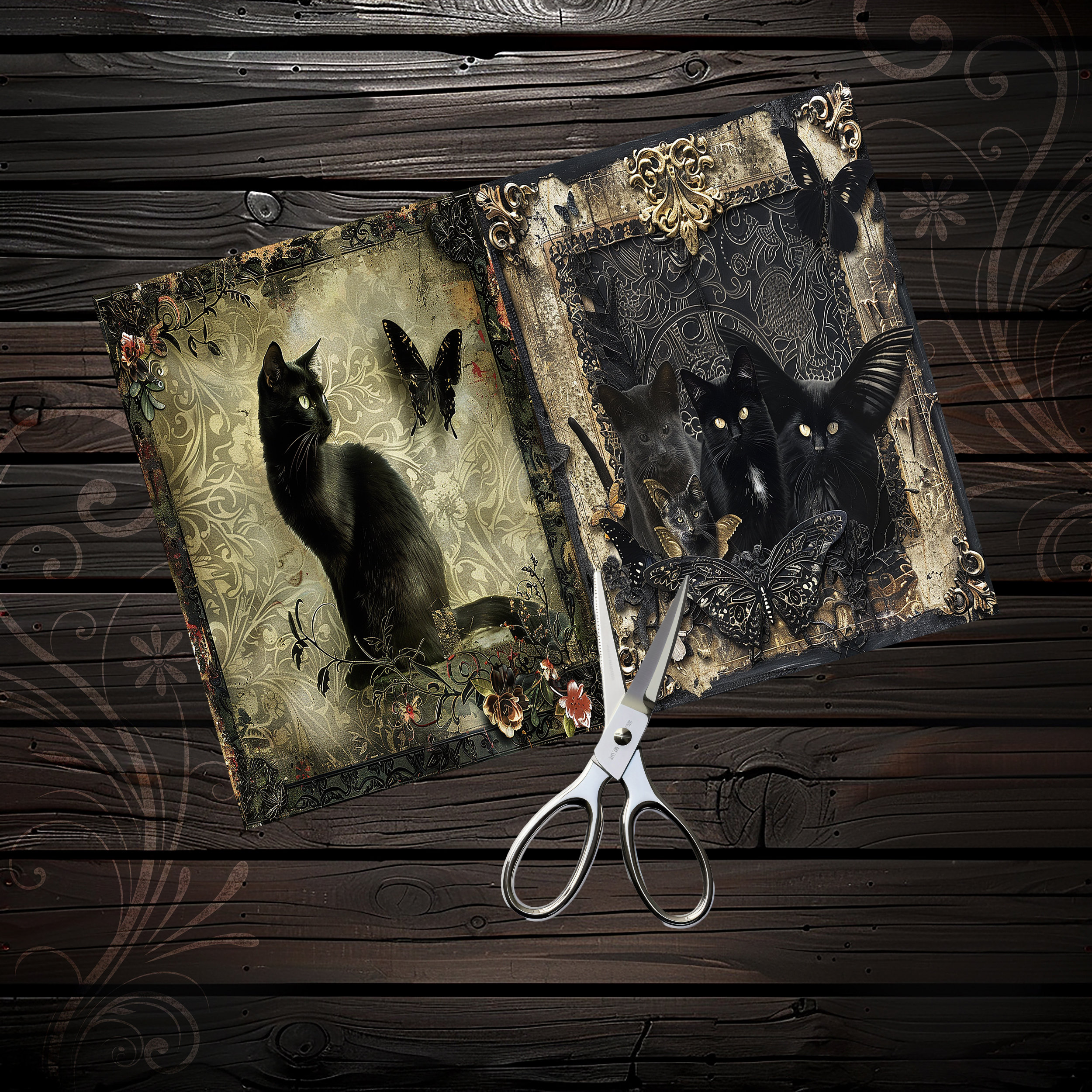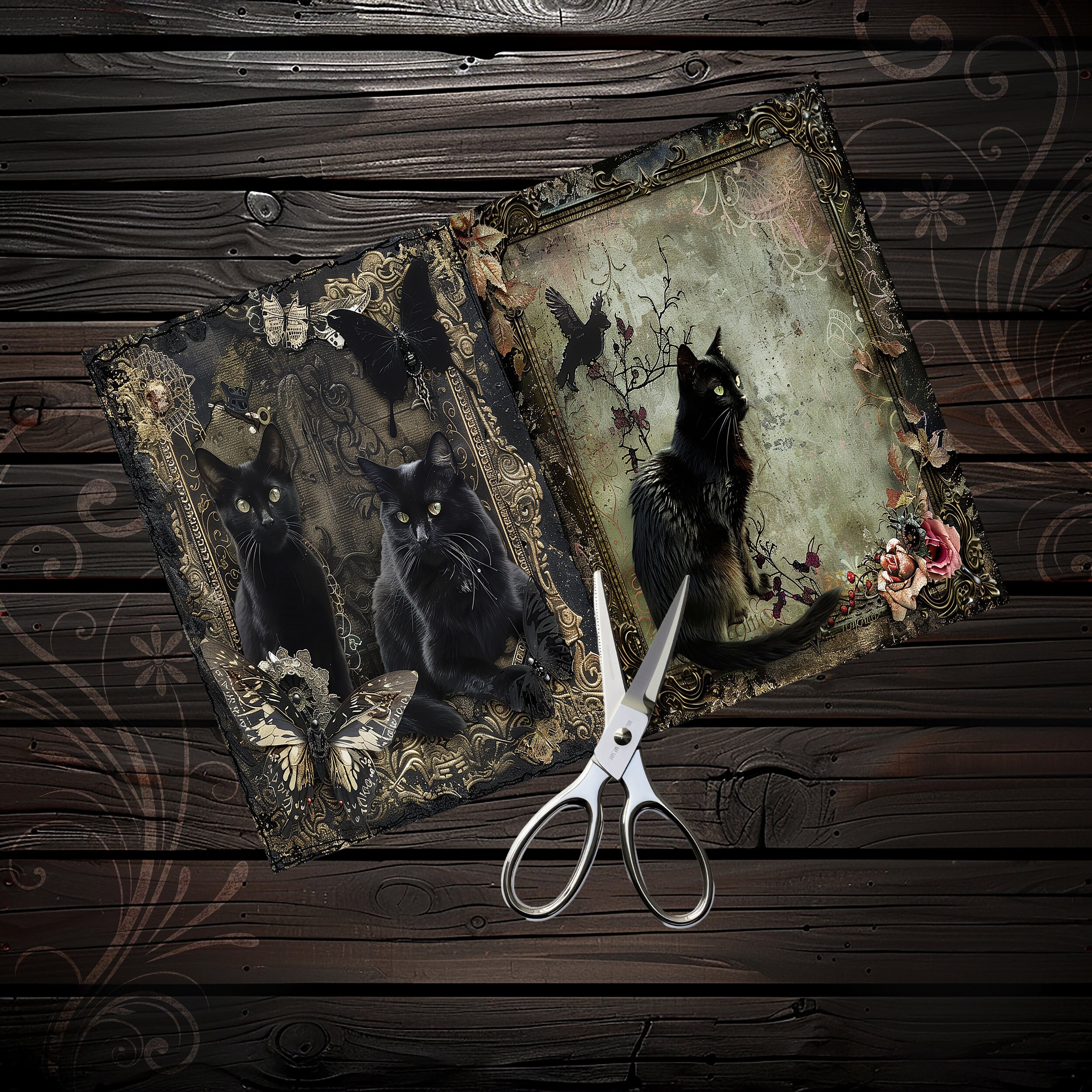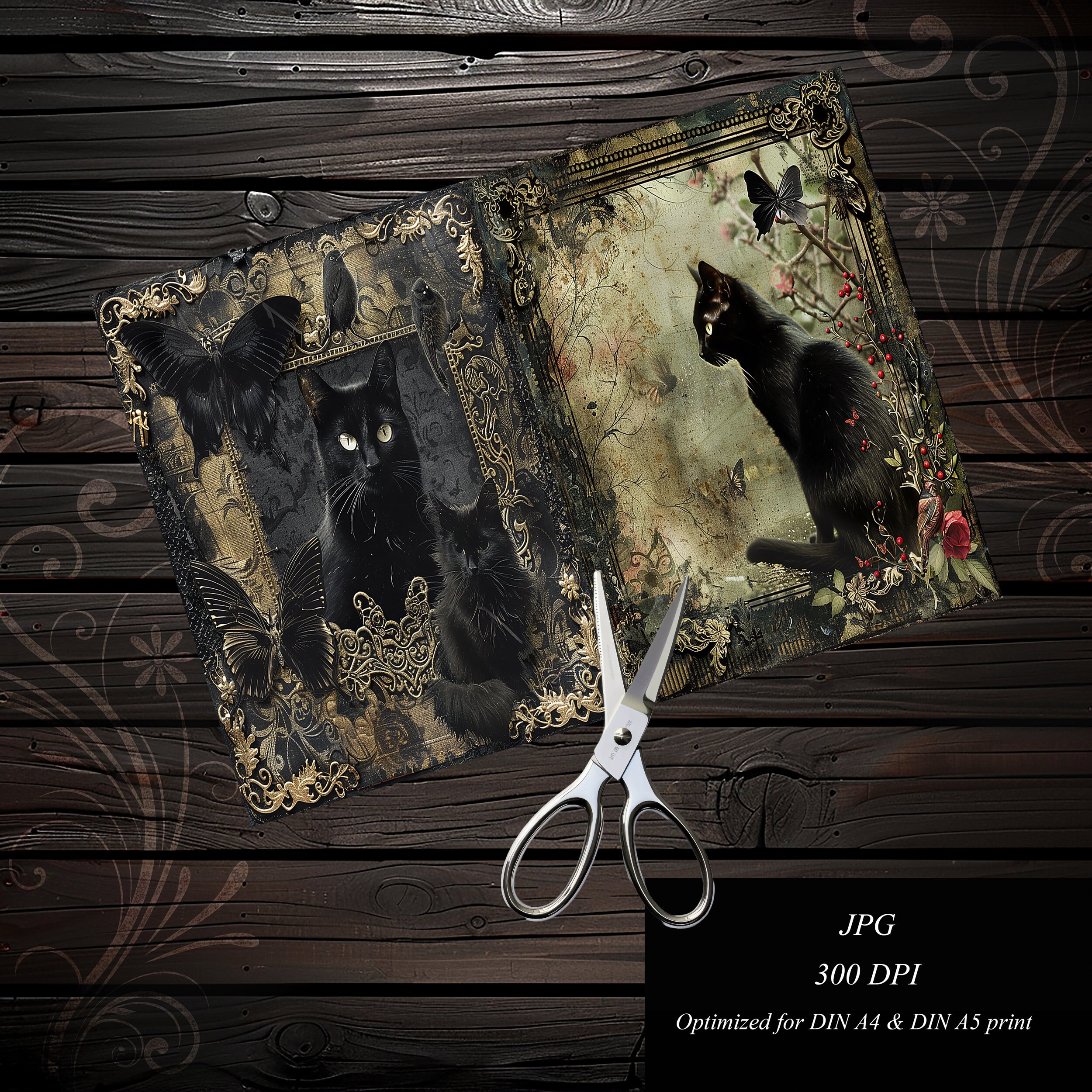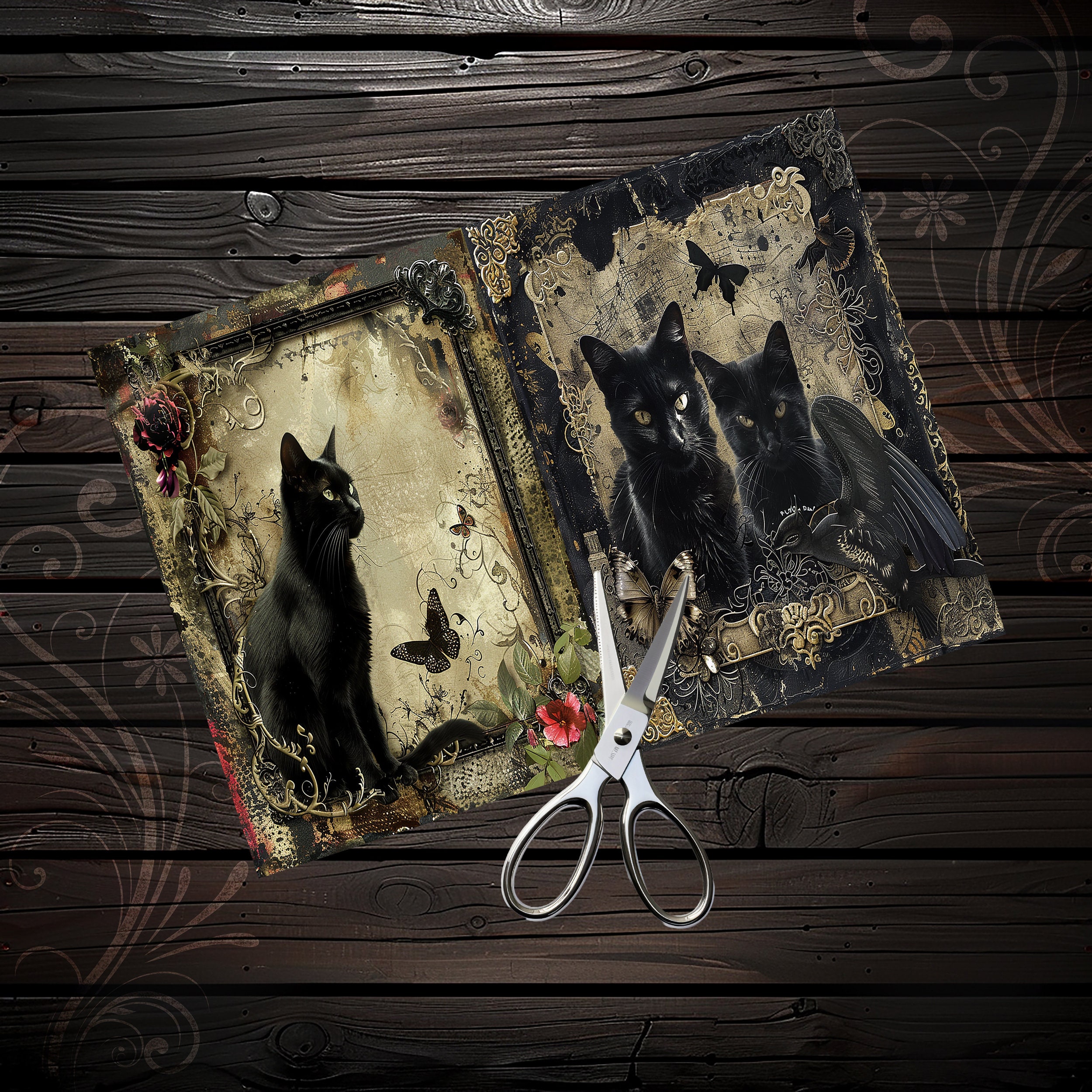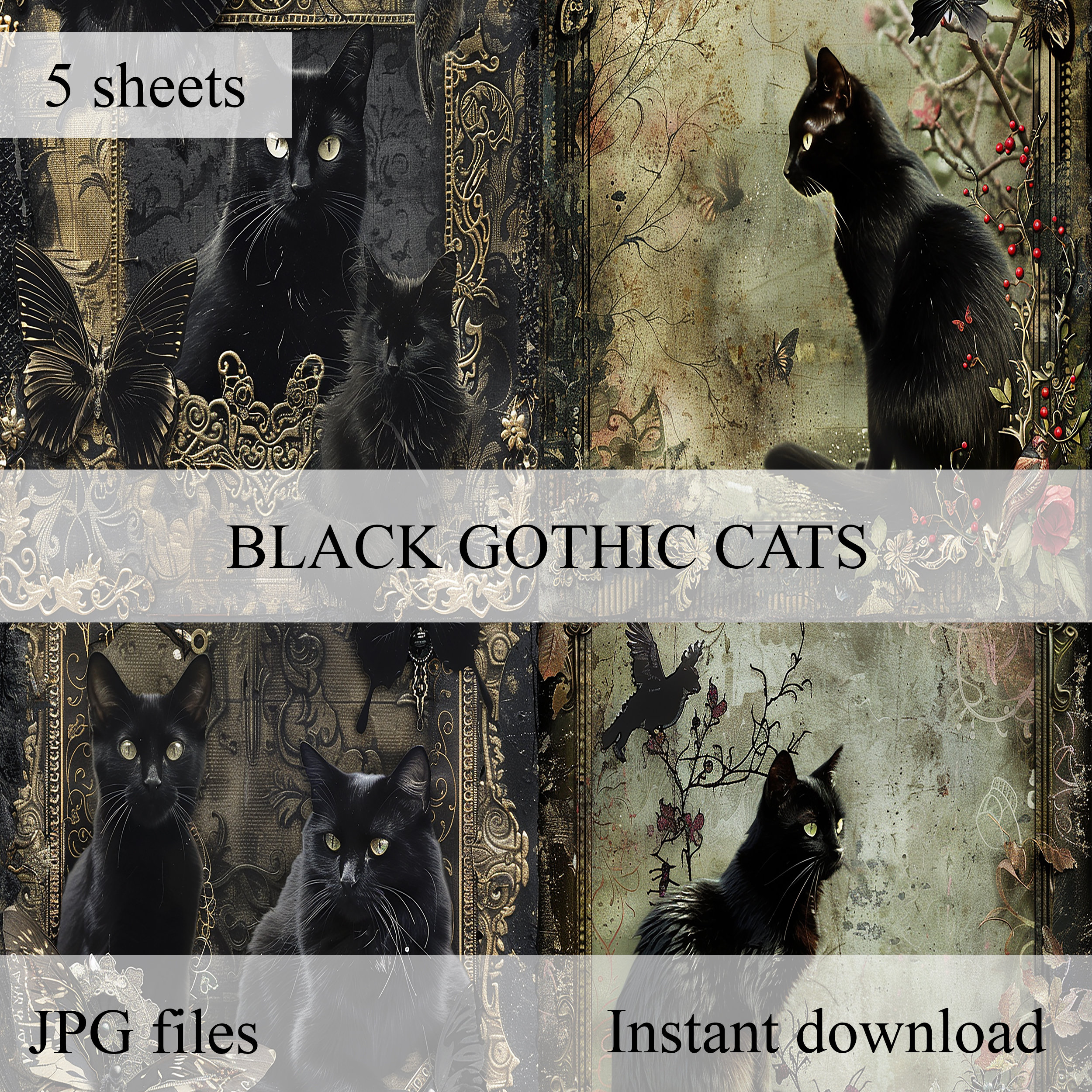 Scrapbook gothic cats papers, scrapbook kit, scrapbooking set, junk journal, ephemera, diary - digital paper