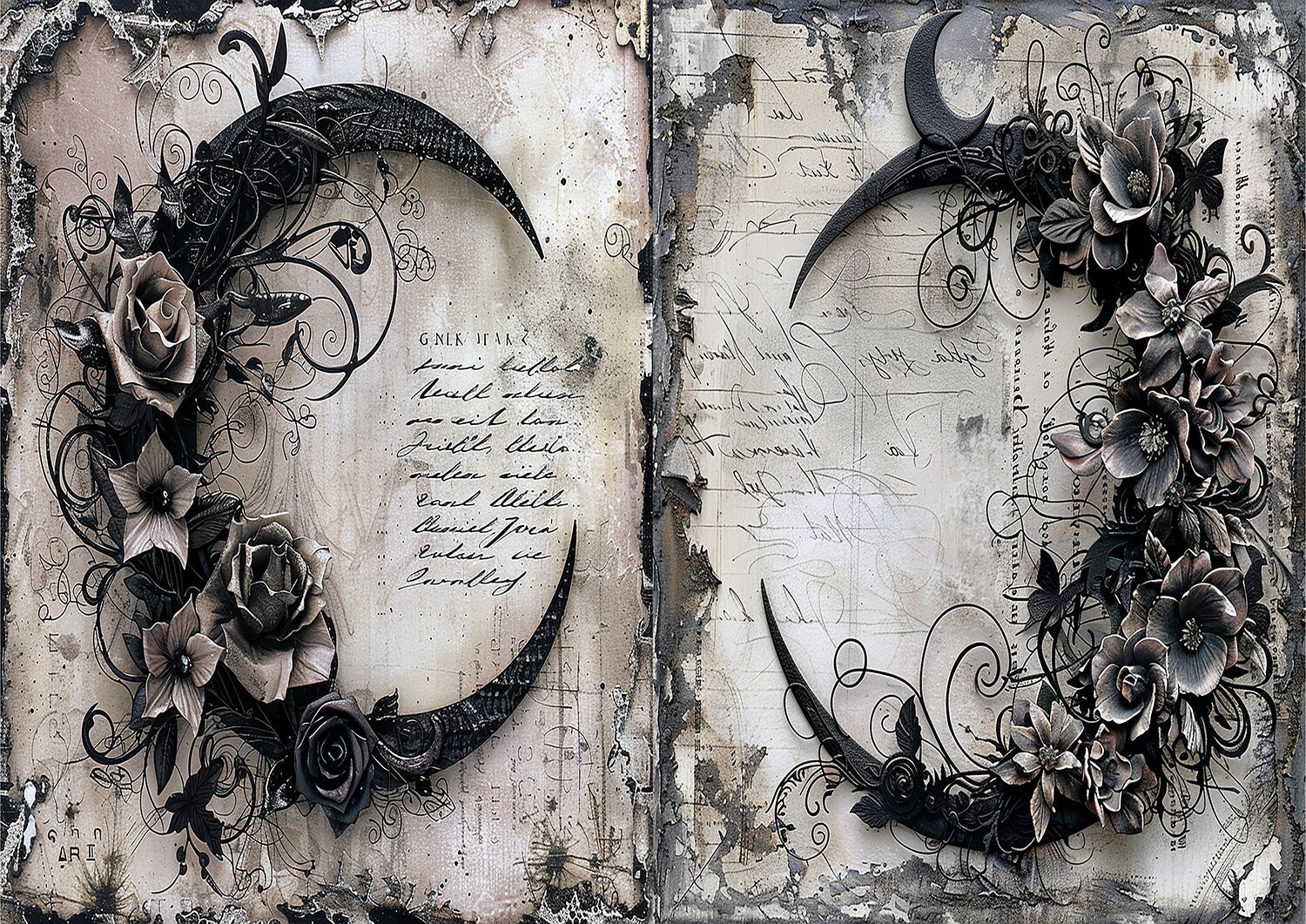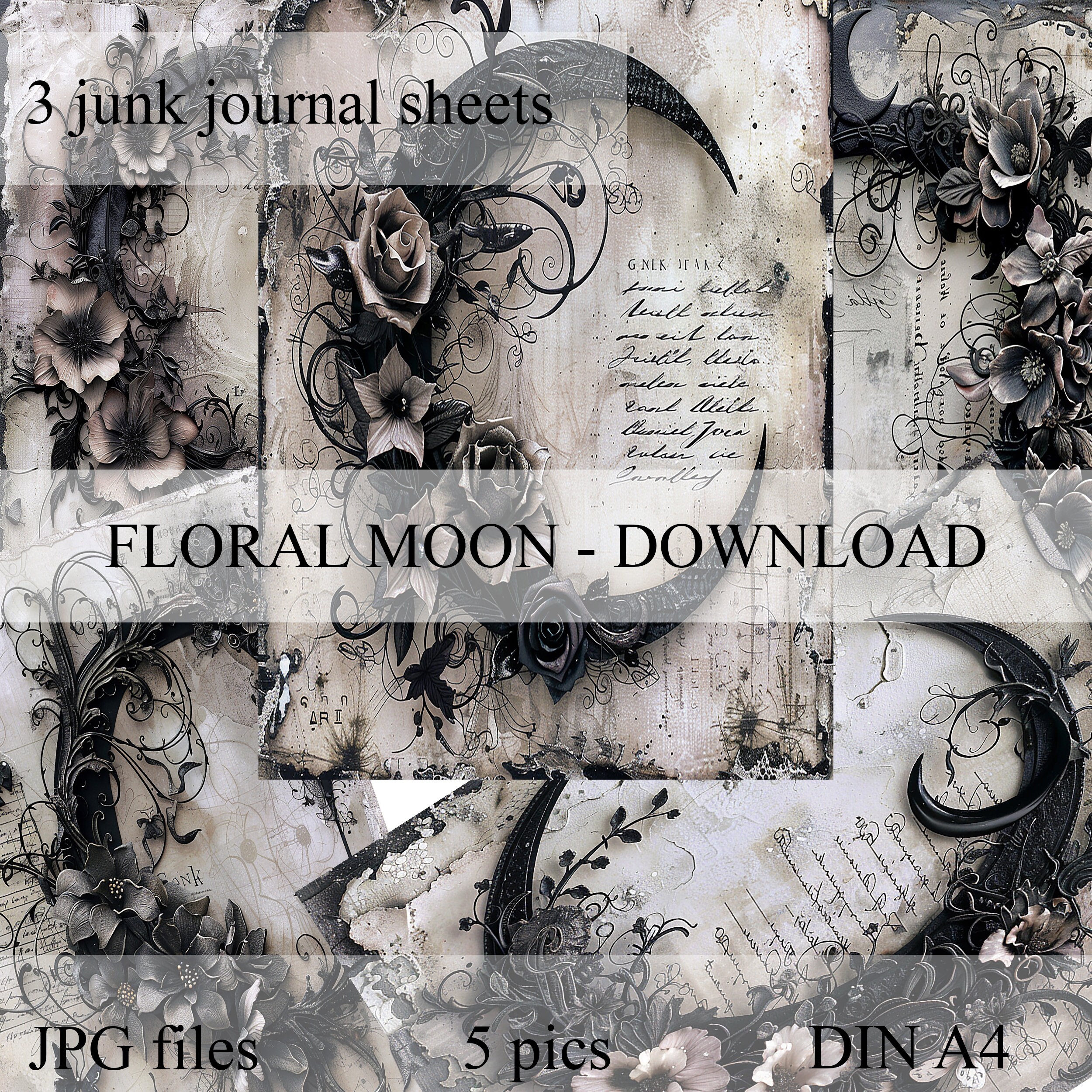 Junk Journal Moon Pages, Scrapbooking Pages, Journal Pages, Junk Journal collage, Scrapbook handmade, Junk Journal Kit, digital