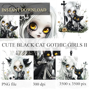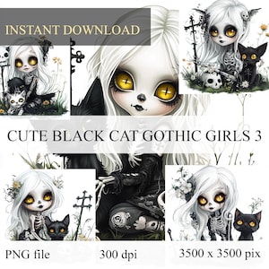 Cliparts sweet gothic girls stickers, junk journal sticker, scrapbooking stickers, scrapbook, ephemera, digital, printable paper