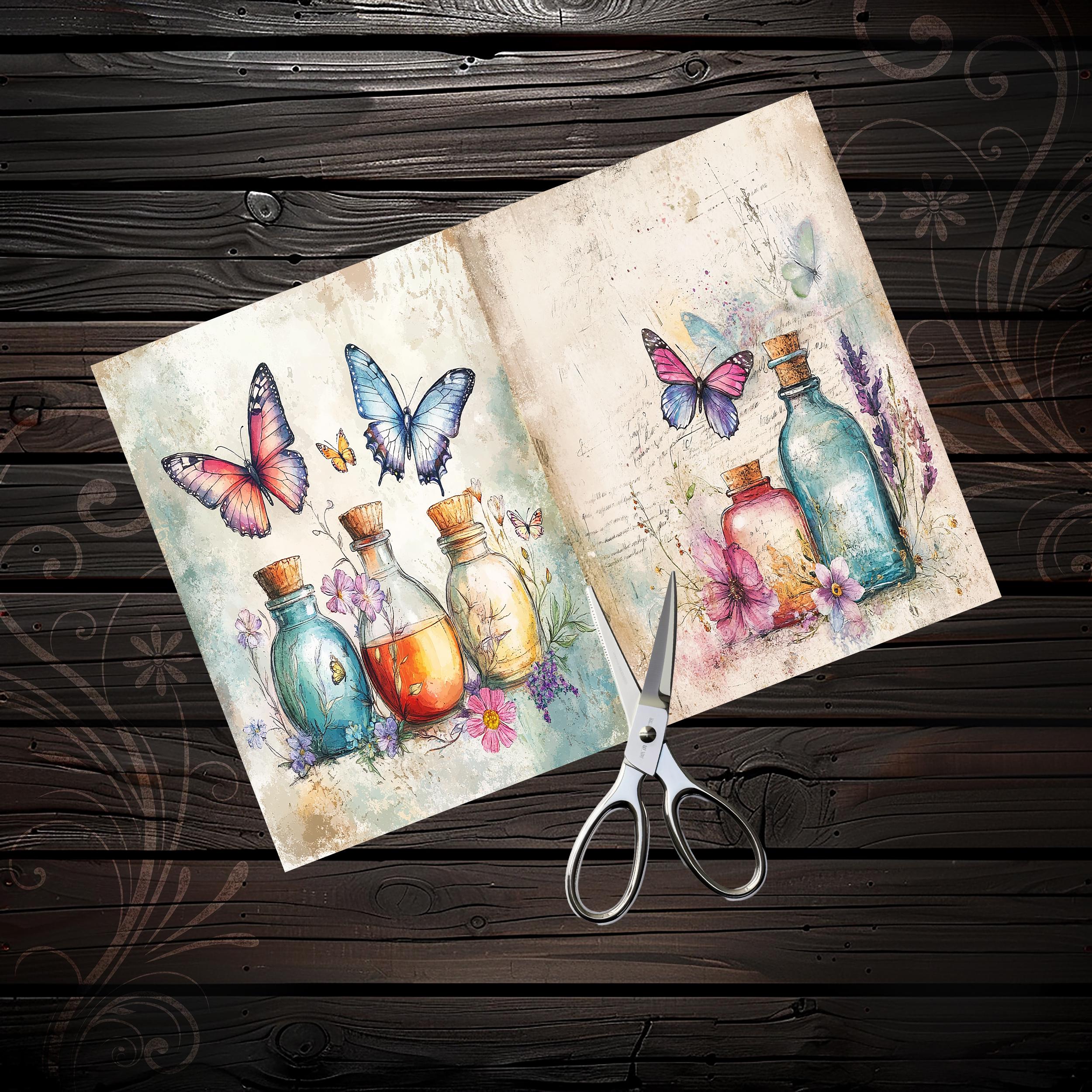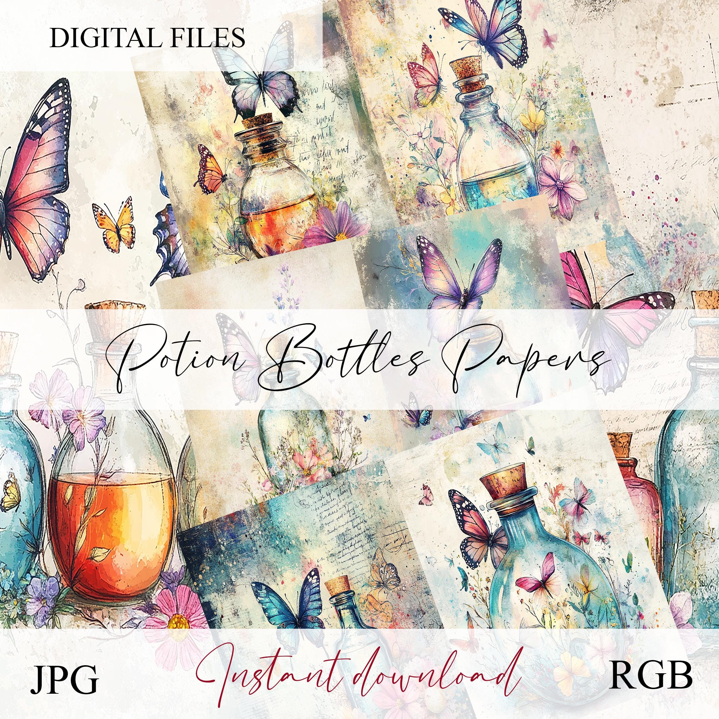 Scrapbook "apothecary" printable papers, scrapbook, scrapbooking kit, junk journal, digital paper, ephemera, potion bottles
