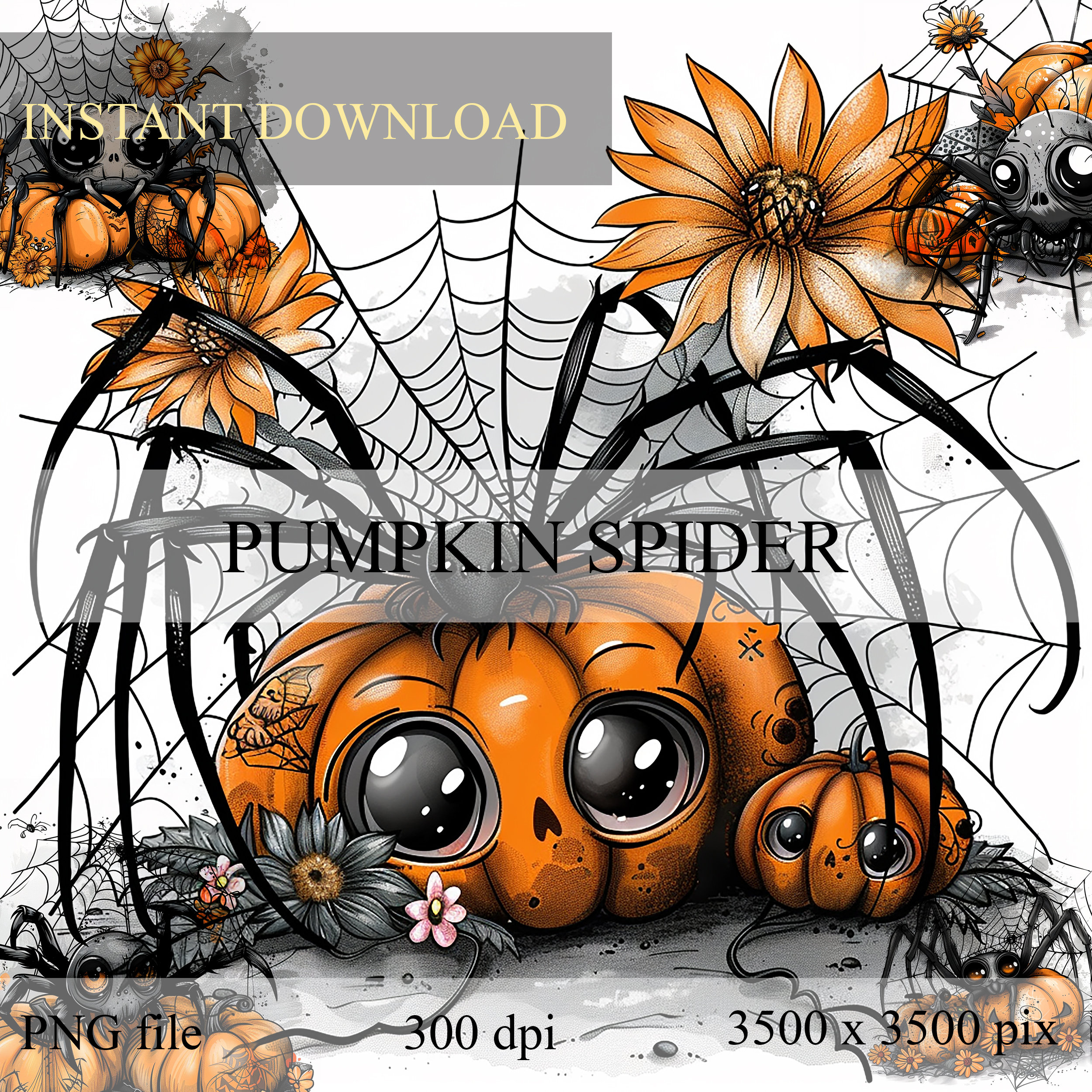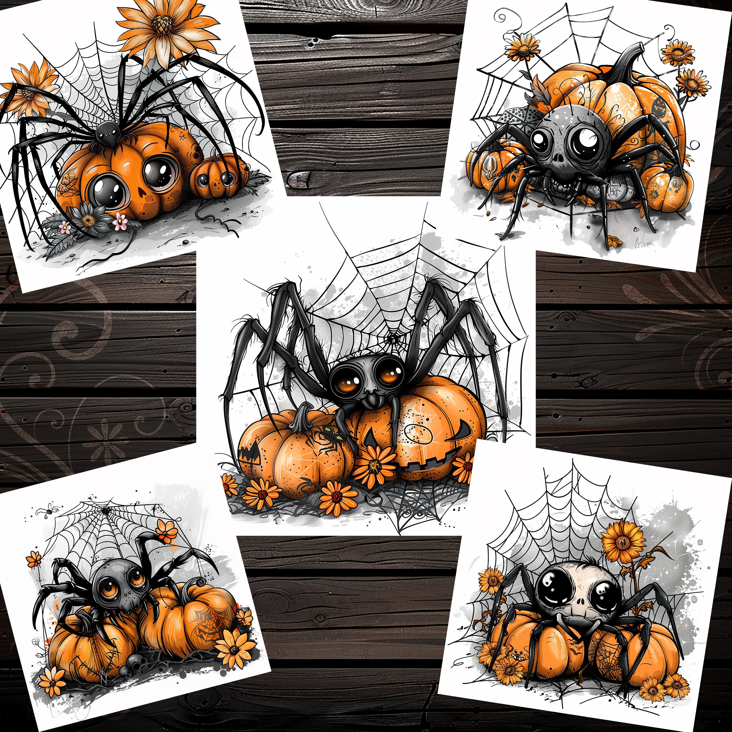 CLIPART 5 pcs "Pumpkin Spiders" - Halloween, spooky, scrapbook, scrapbooking, junk journal, sticker, diary - digital download