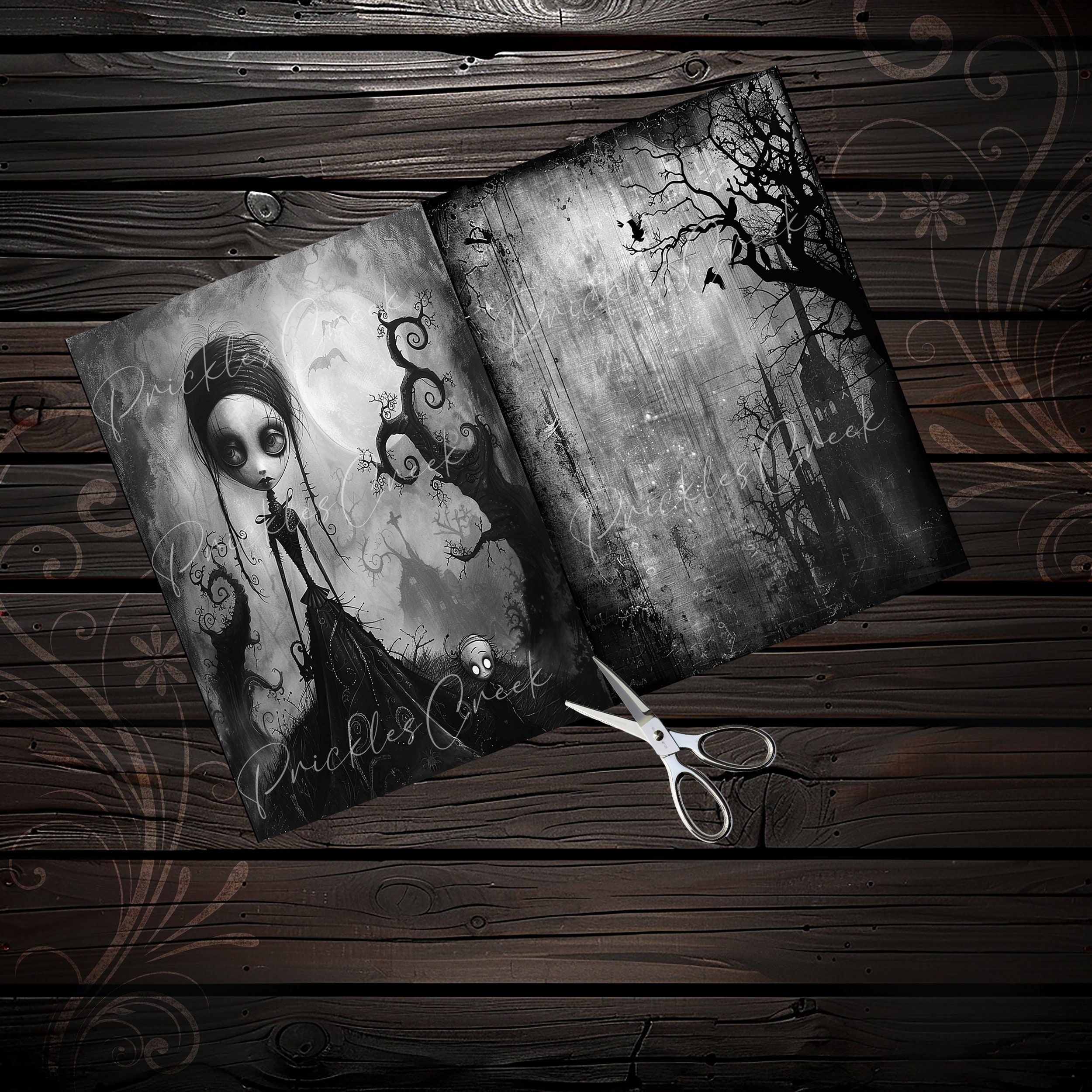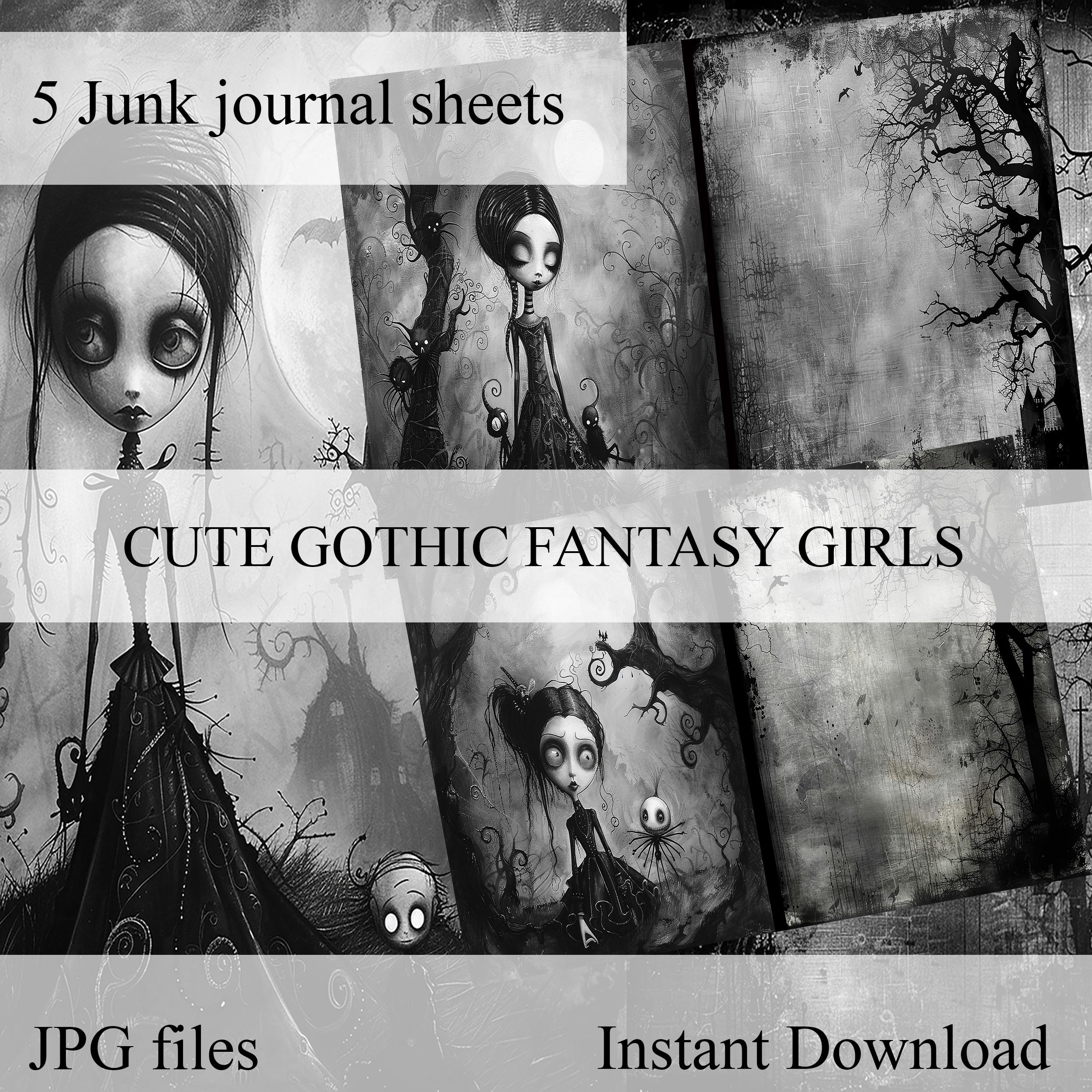 Scrapbook cute gothic girls papers, printable papers, scrapbook, scrapbooking, ephemera, memory album, diary - printable paper