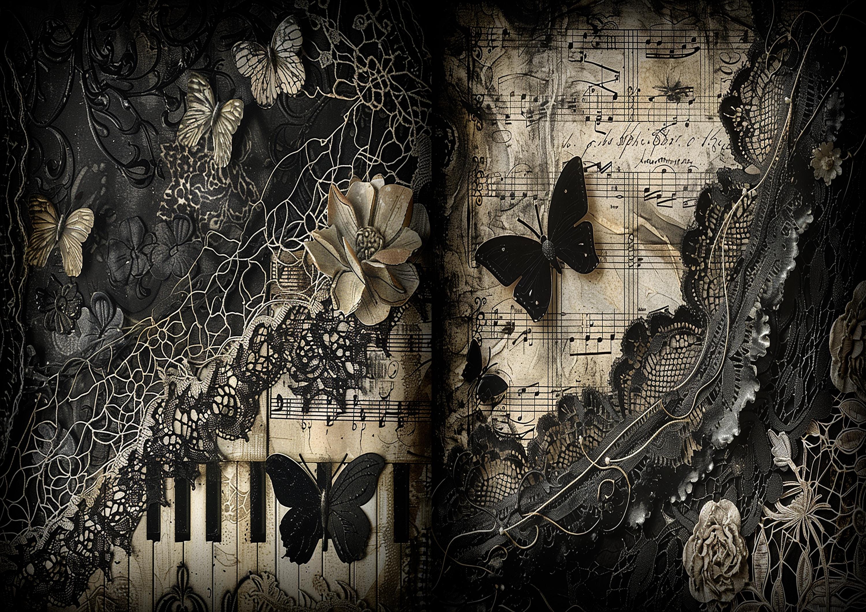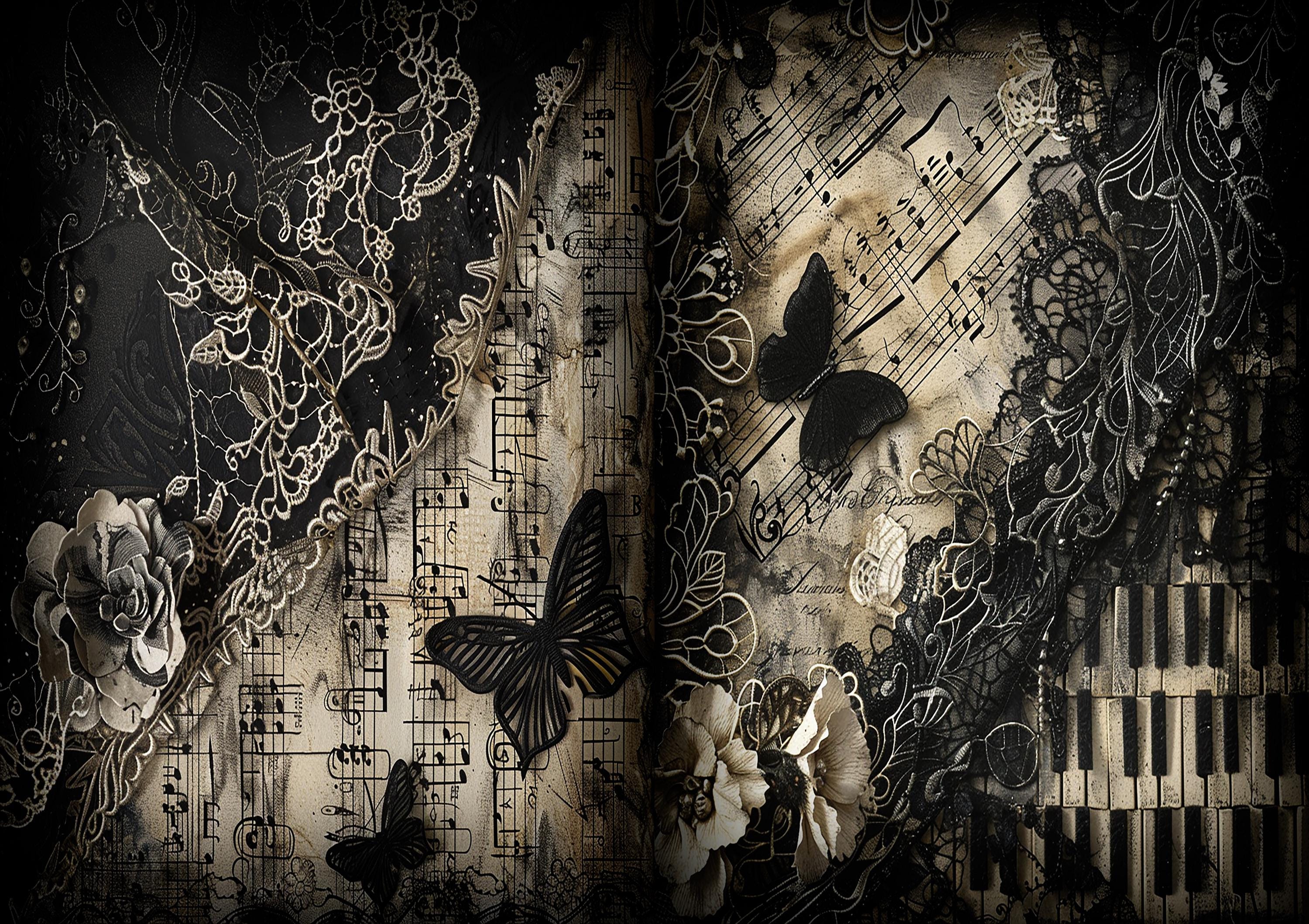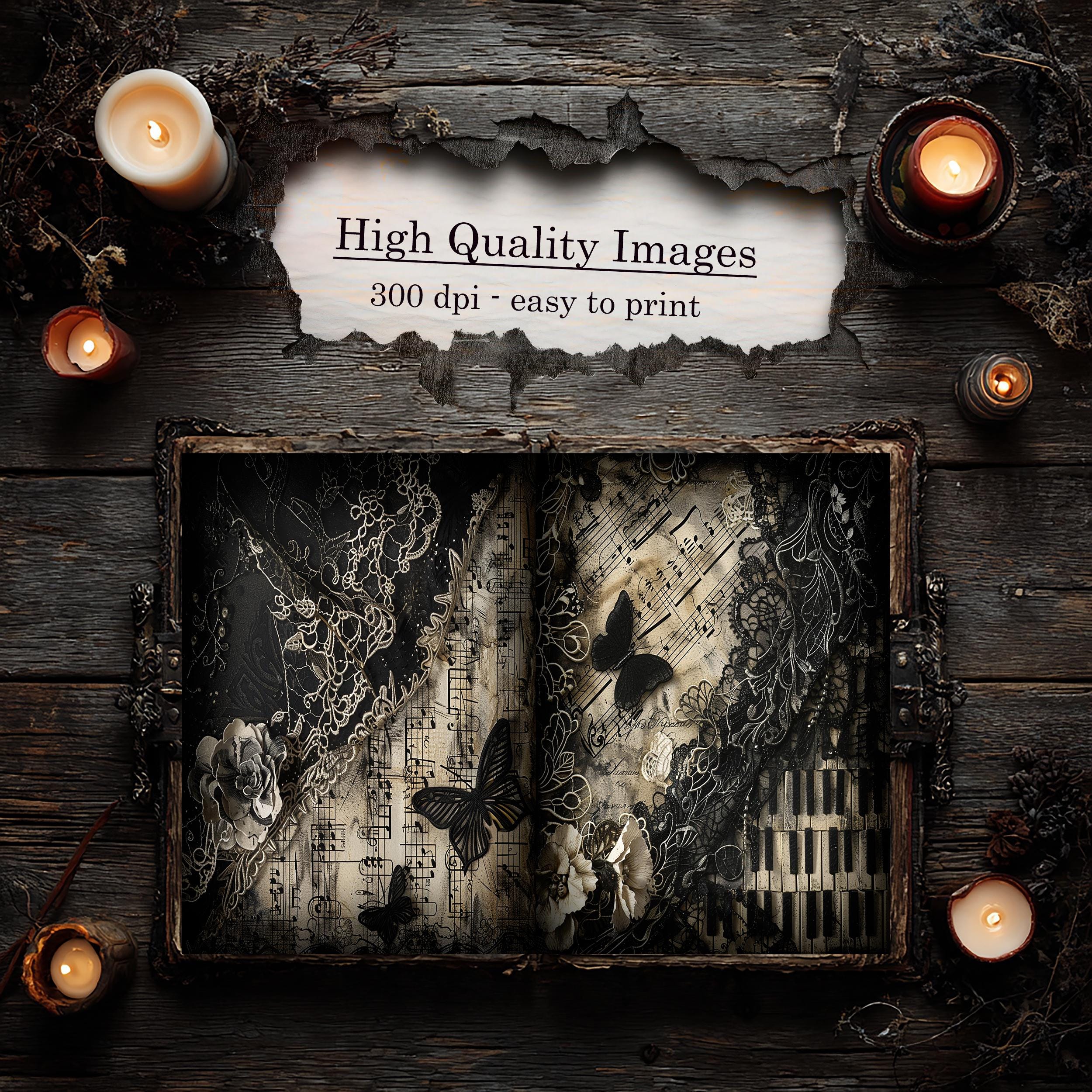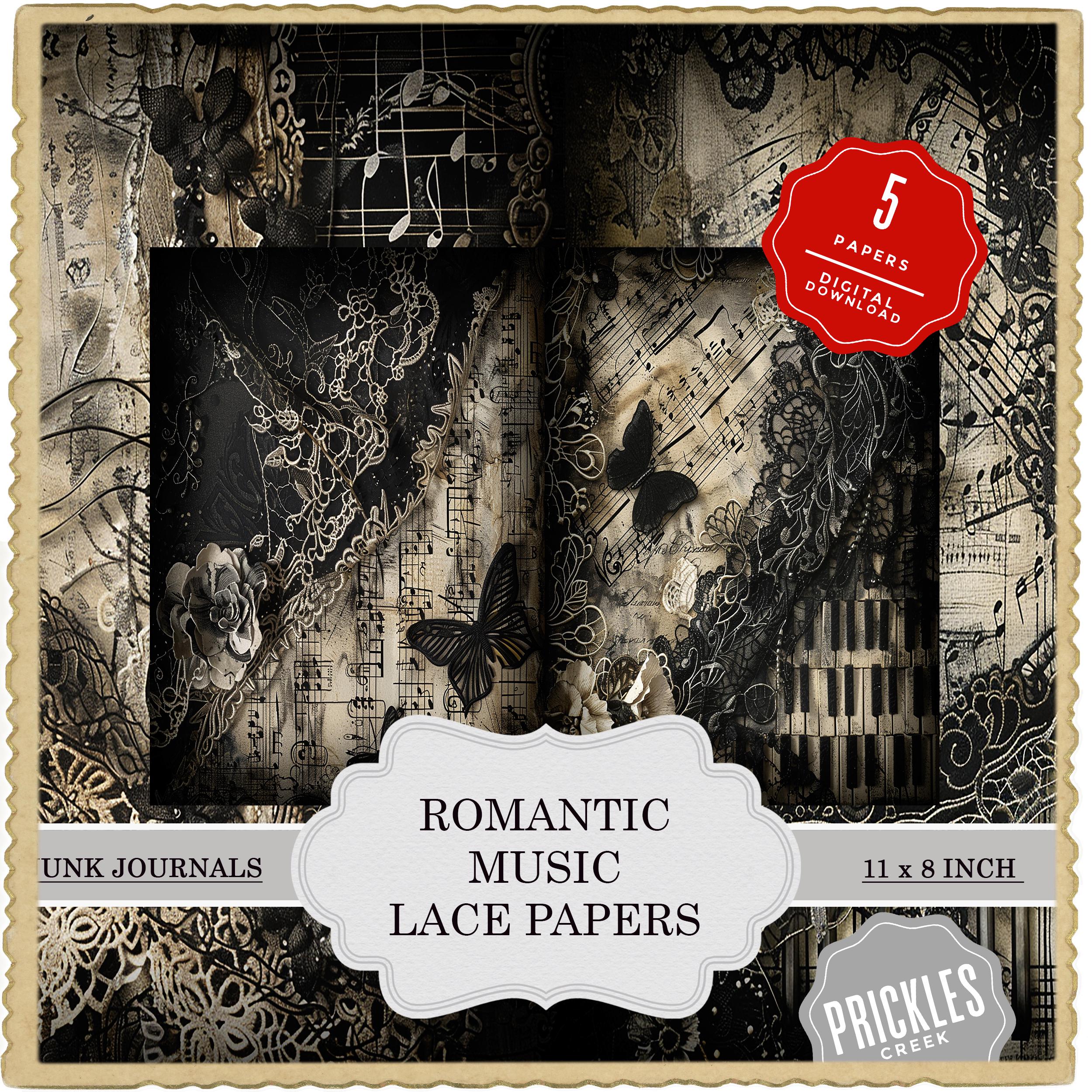 Romantic music lace papers, scrapbooking paper, scrapbook vintage, junk journal, ephemera, memory album - digital paper