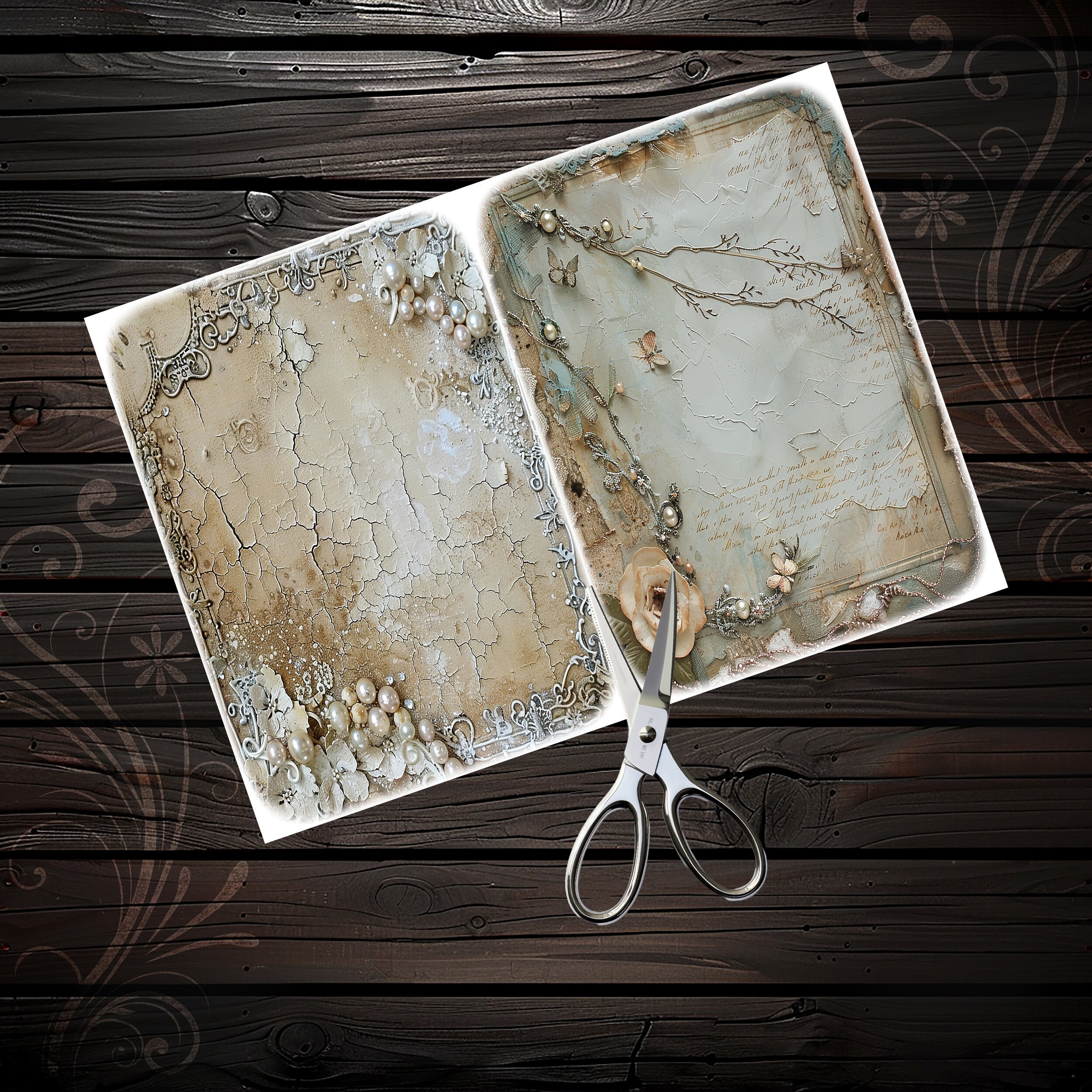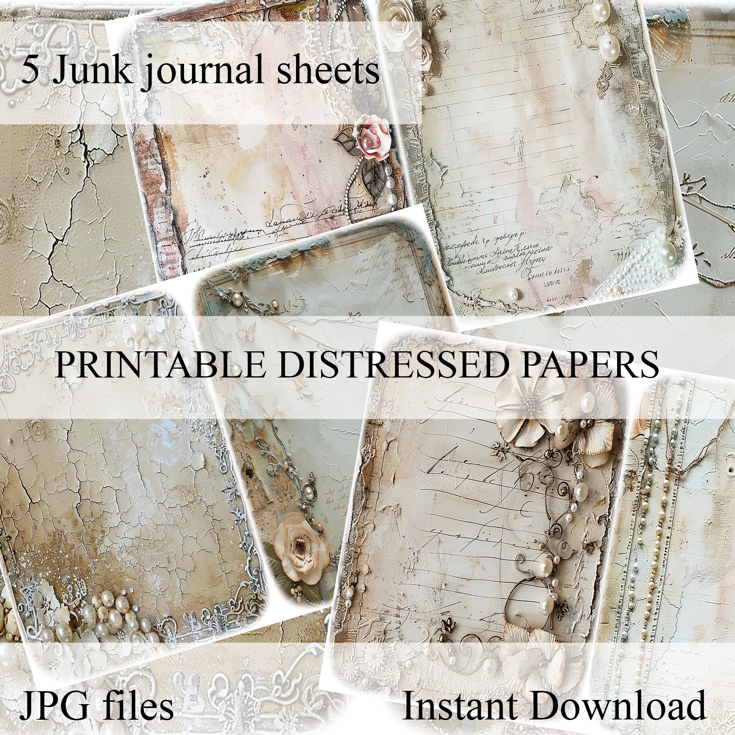 Distressed junk journal paper, scrapbook, scrapbooking kit, vintage, grunge, shabby, ephemera, digital, printable paper, junk journal pages