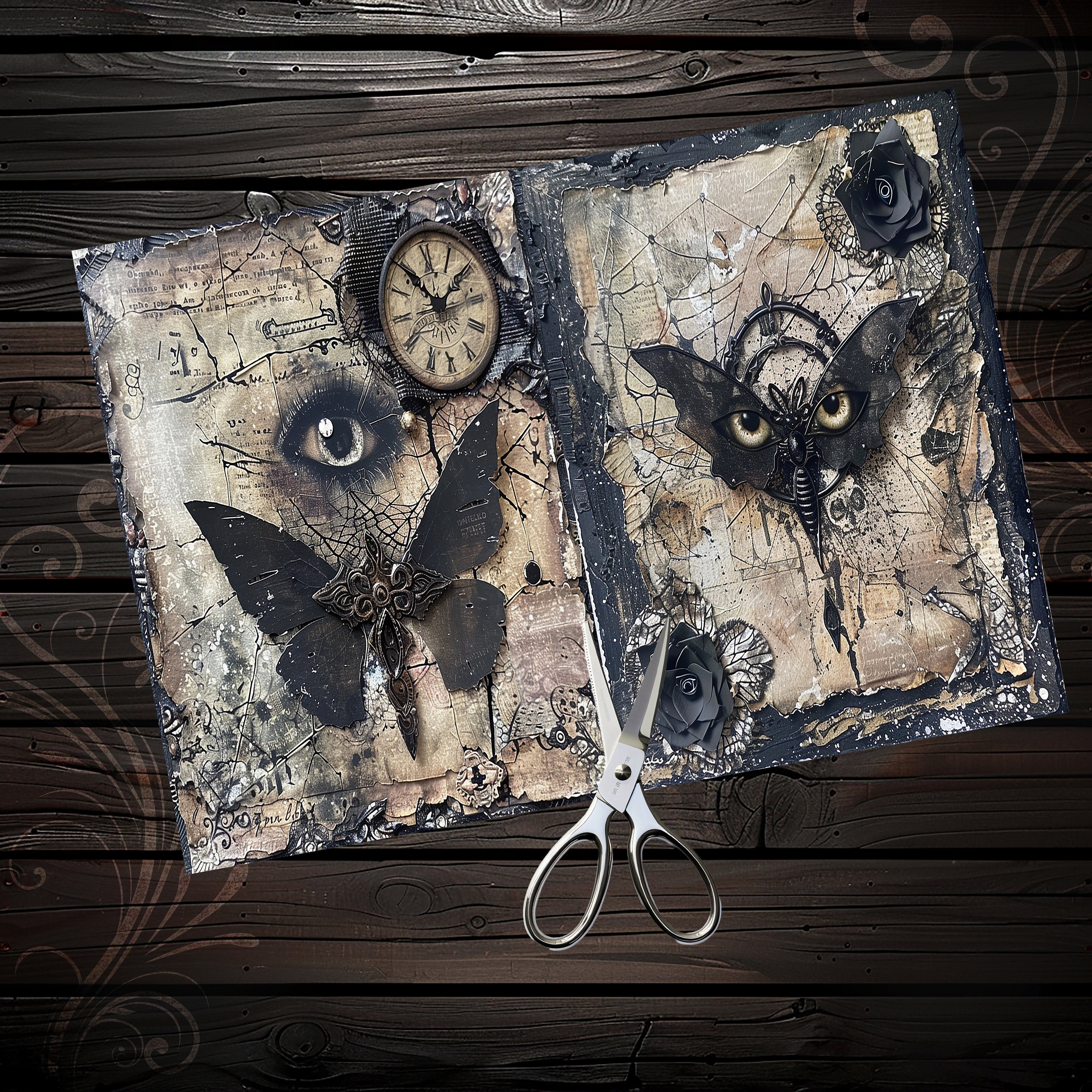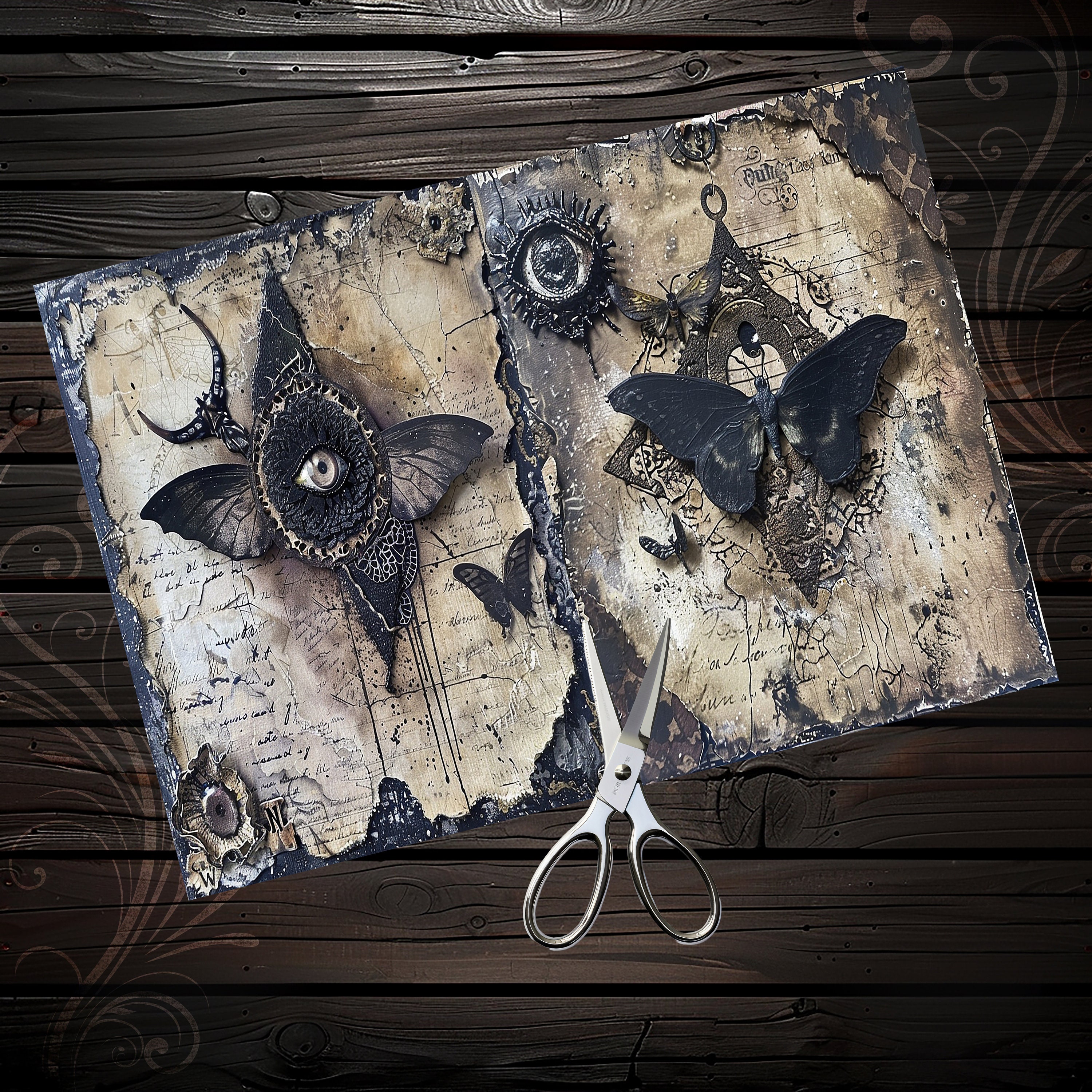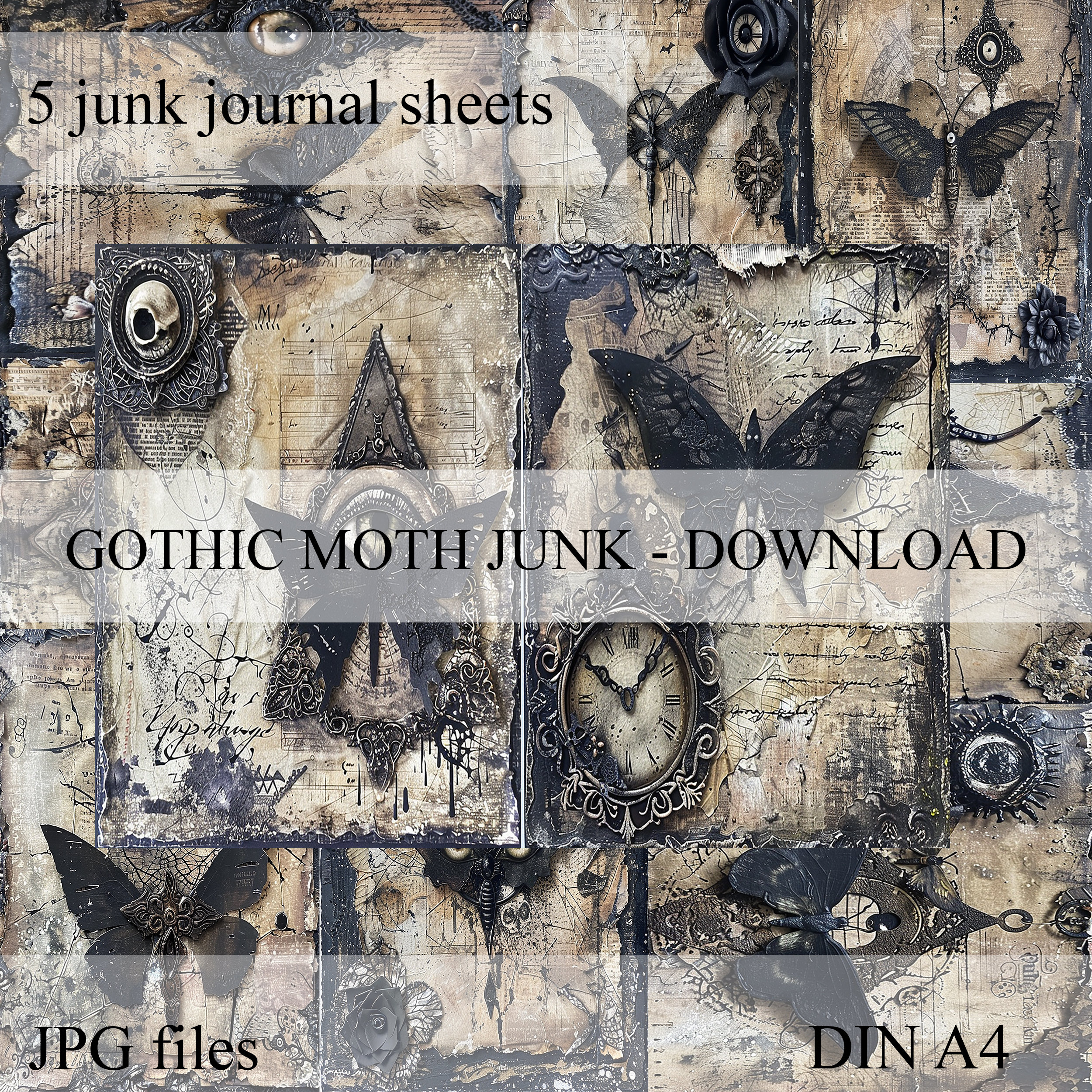 Bundle 5 sheets gothic moth, scrapbooking, junk journal, digital paper, printable paper, fantasy, wallpaper, digital download