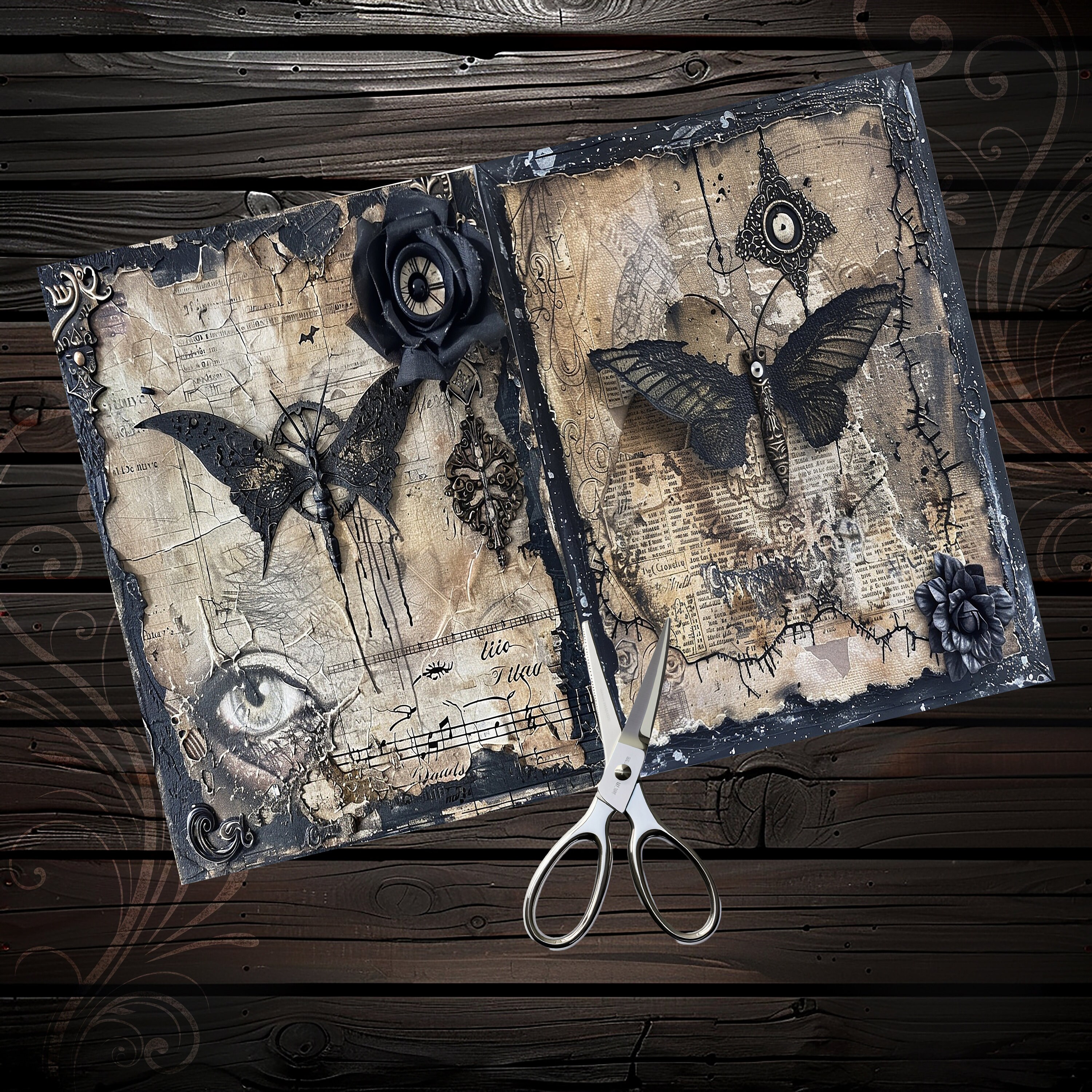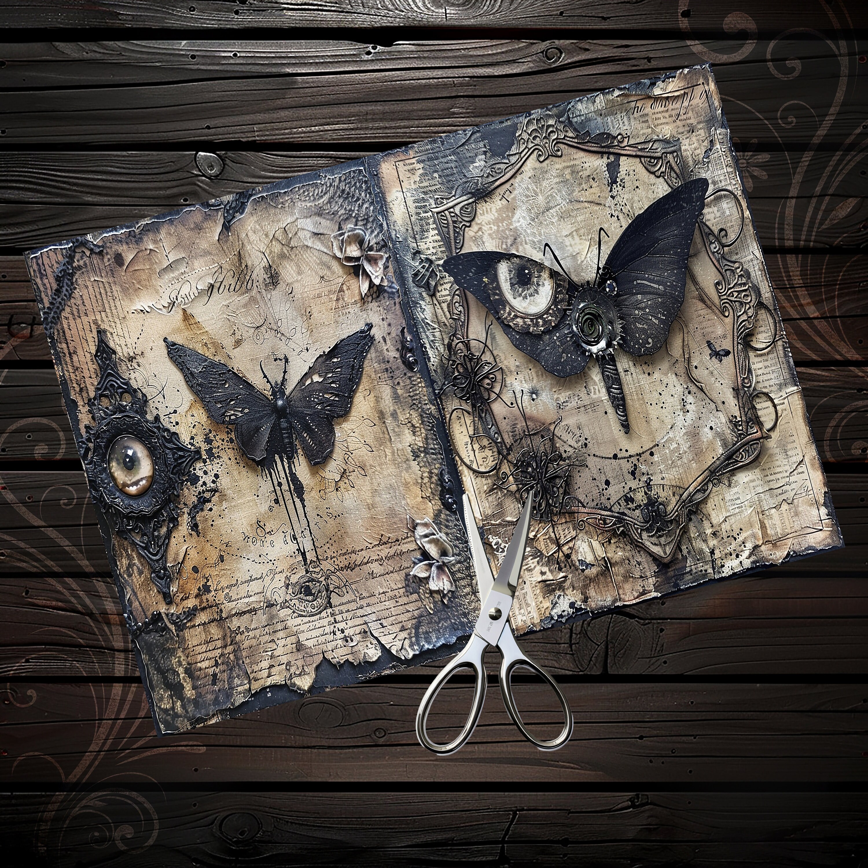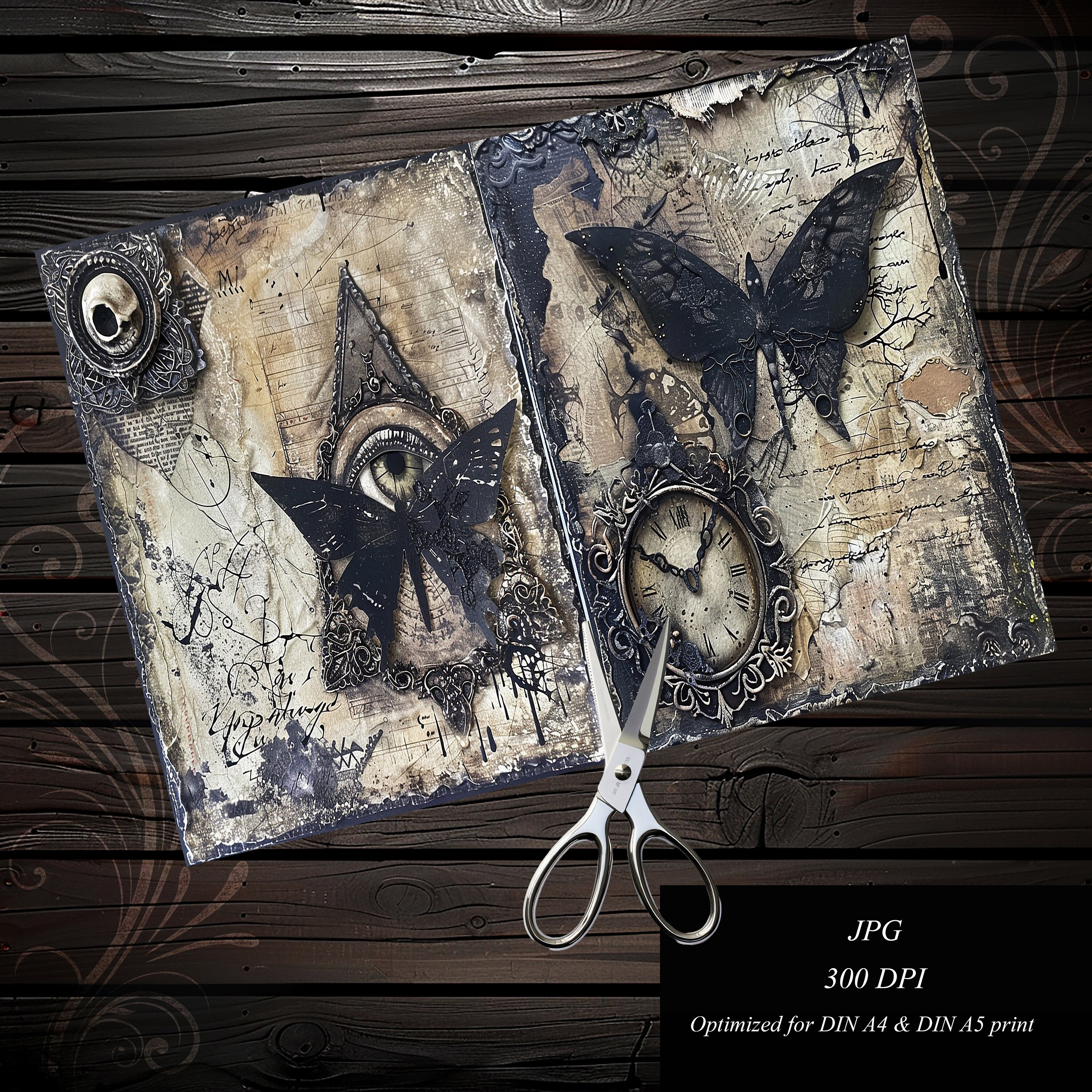 Bundle 5 sheets gothic moth, scrapbooking, junk journal, digital paper, printable paper, fantasy, wallpaper, digital download