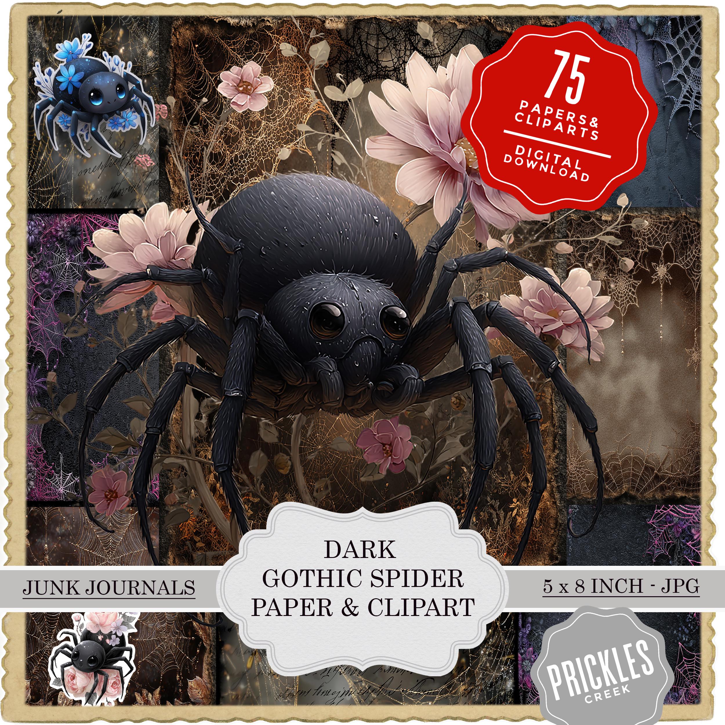 Scrapbook "Gothic Spiders & Cliparts" papers, scrapbooking, scrapbook paper, ephemera, memory album, diary, junk journal, digital