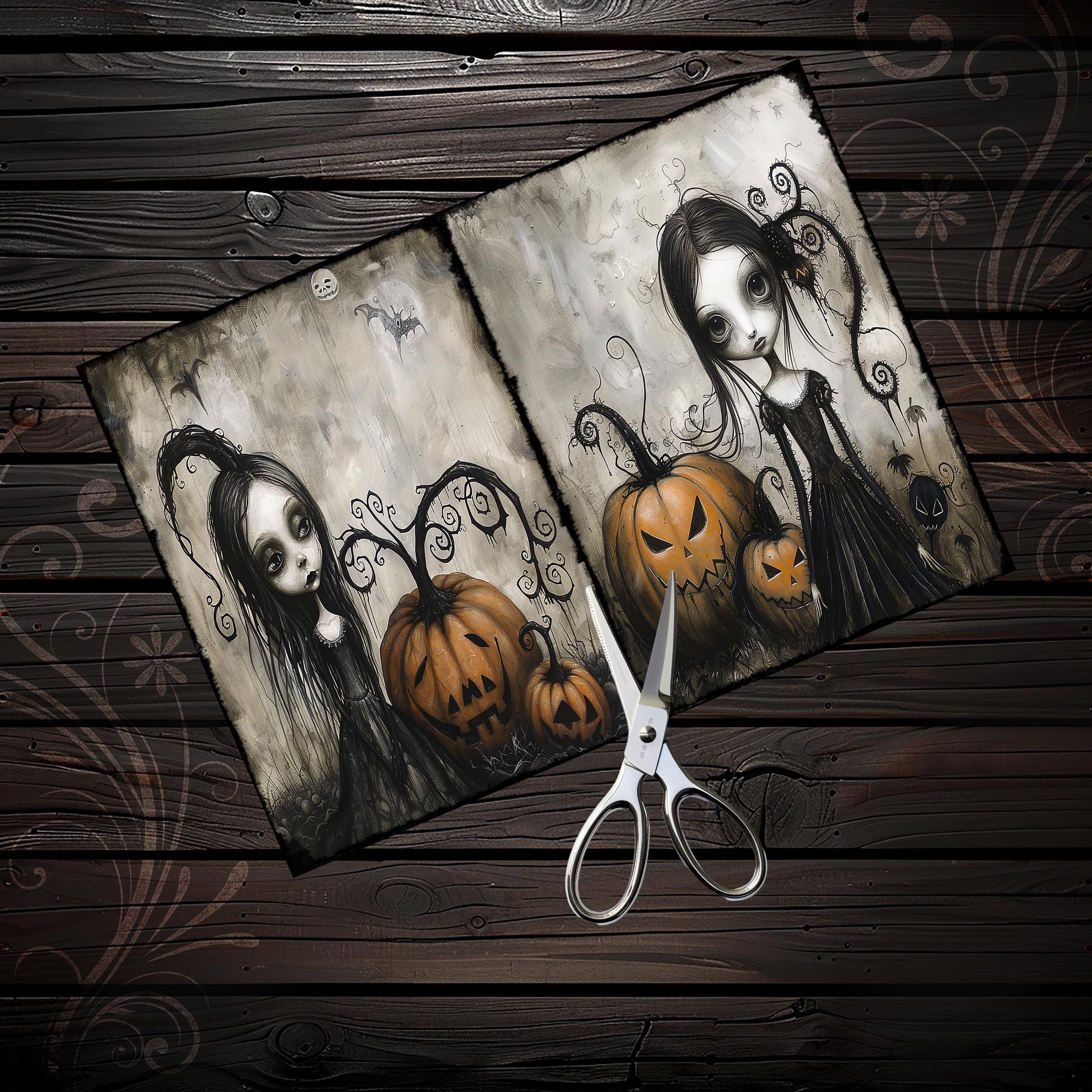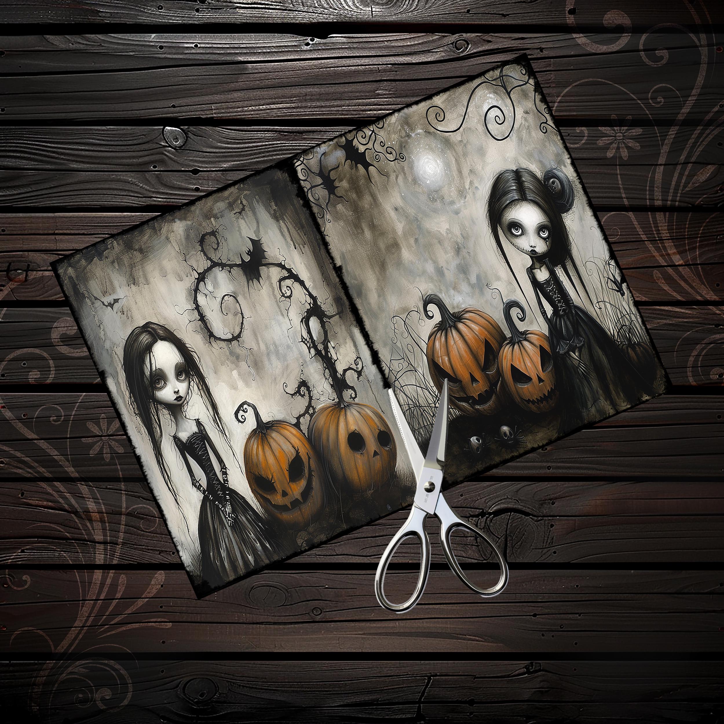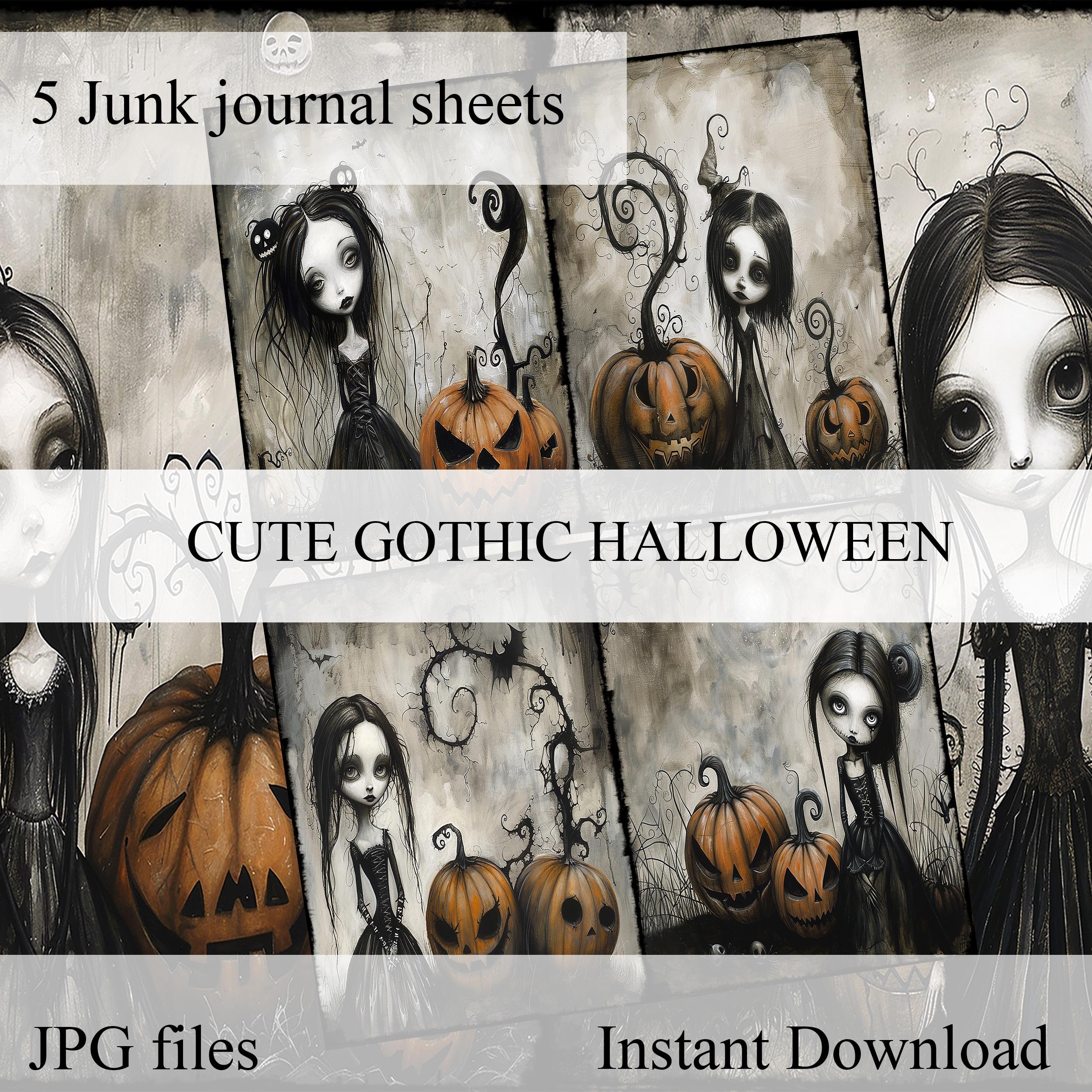 Cute gothic Halloween girls junk journal papers, scrapbook, scrapbooking set, ephemera, digital, spooky, eerie, dark fantasy