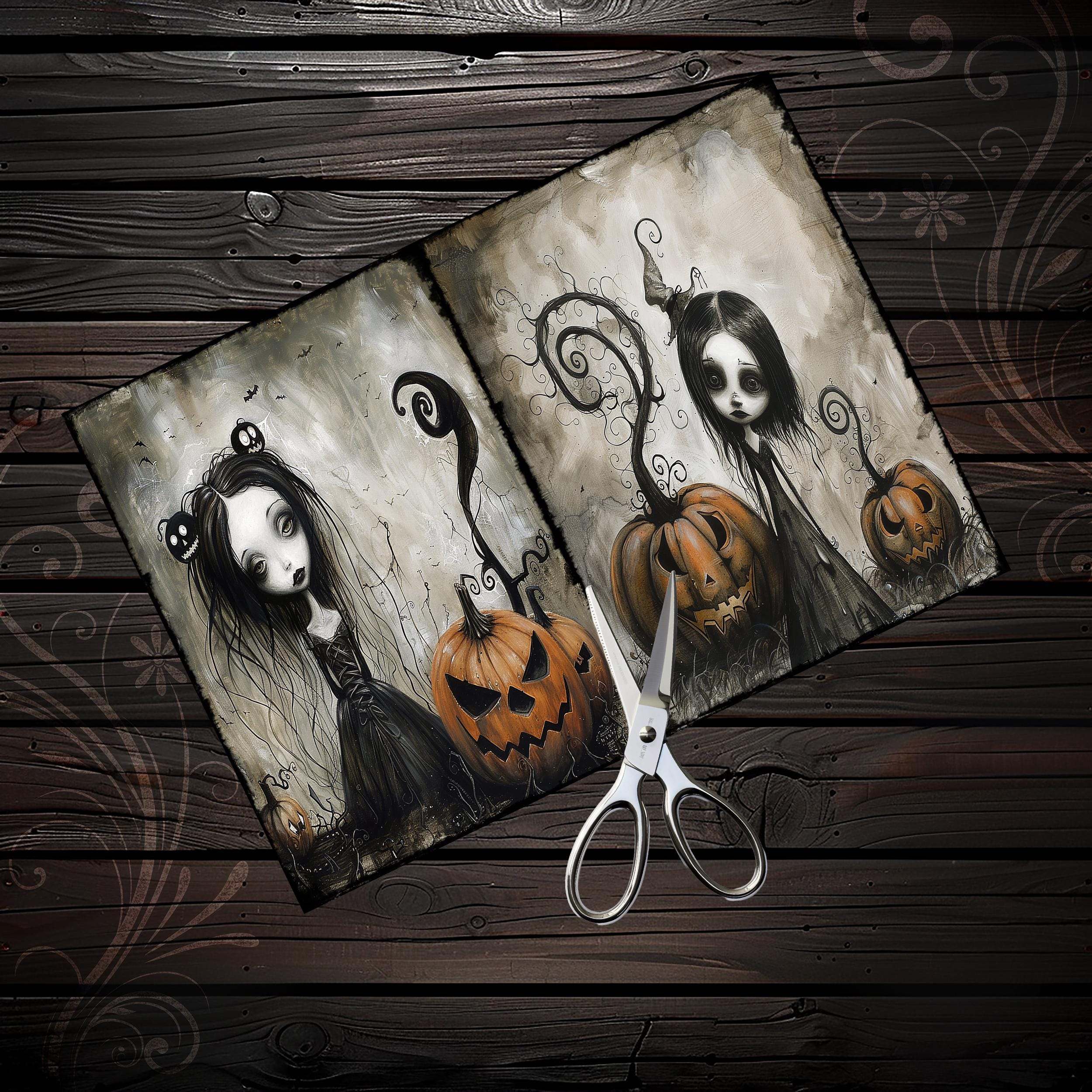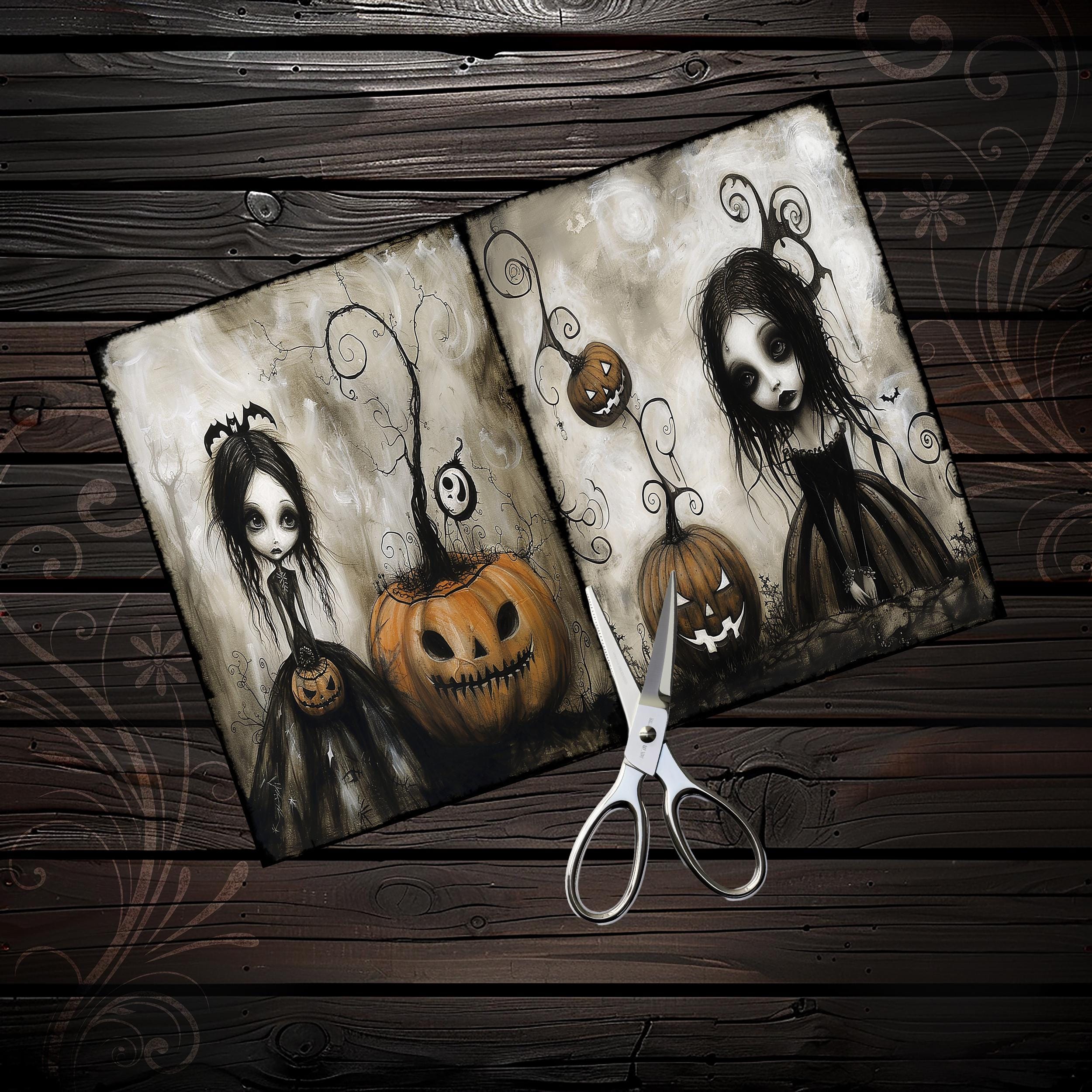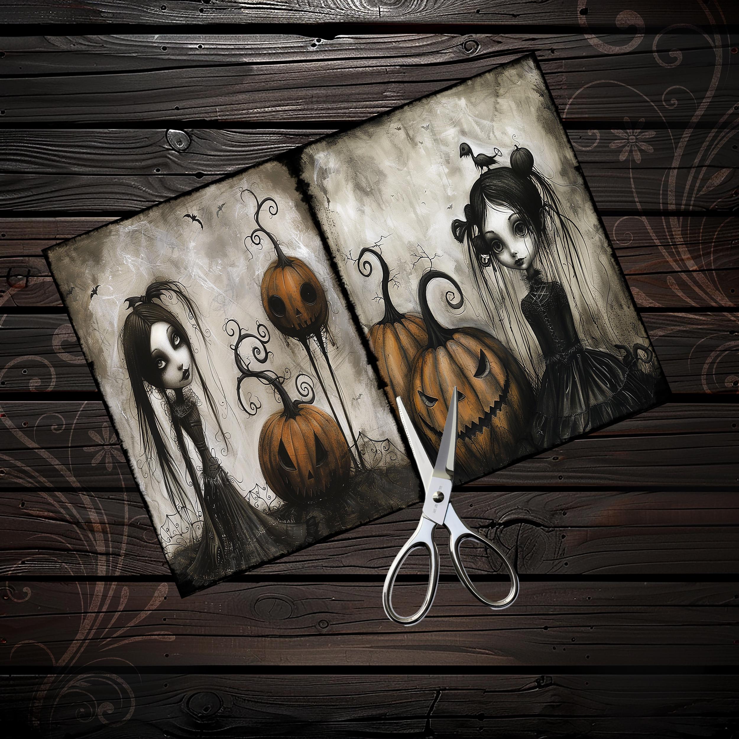 Cute gothic Halloween girls junk journal papers, scrapbook, scrapbooking set, ephemera, digital, spooky, eerie, dark fantasy