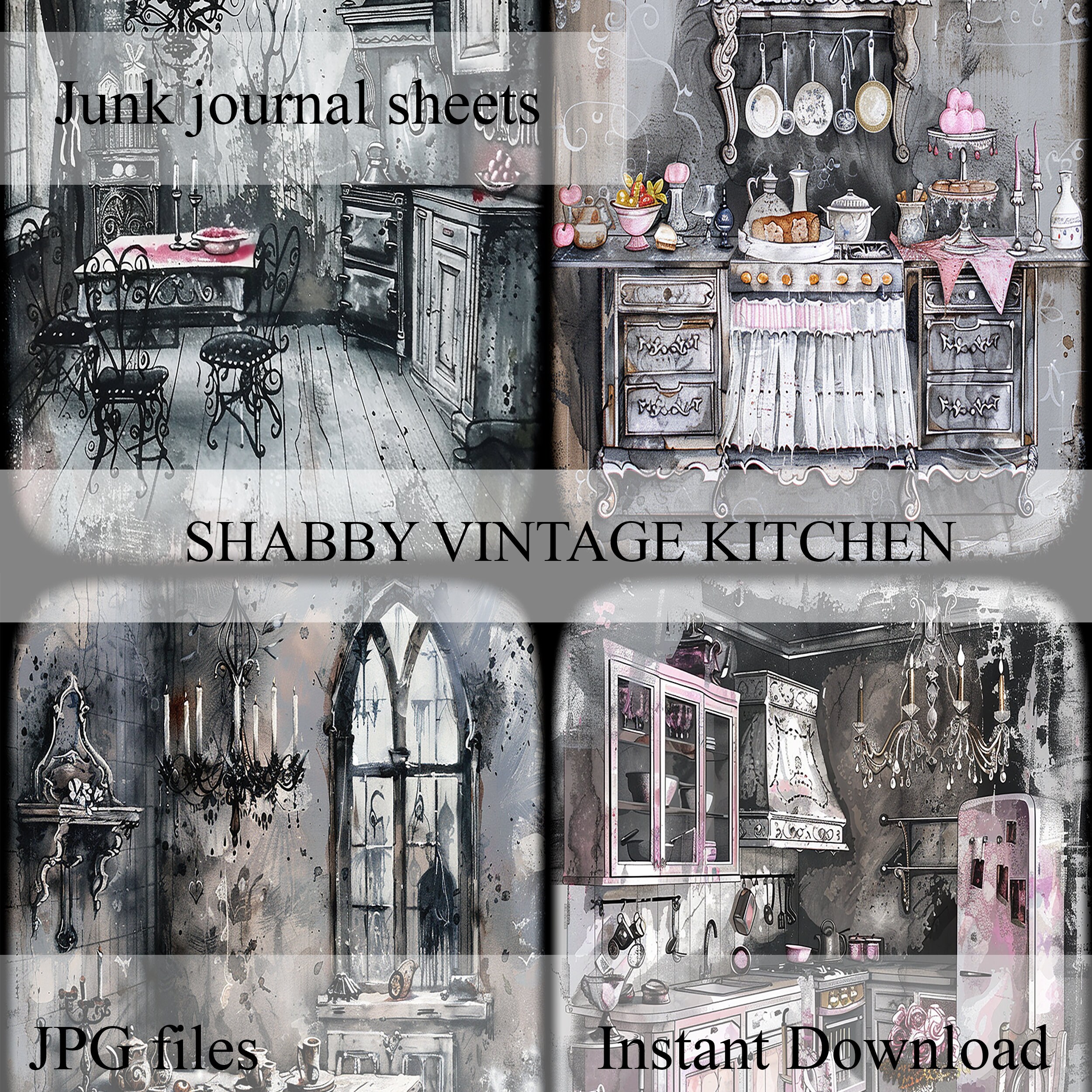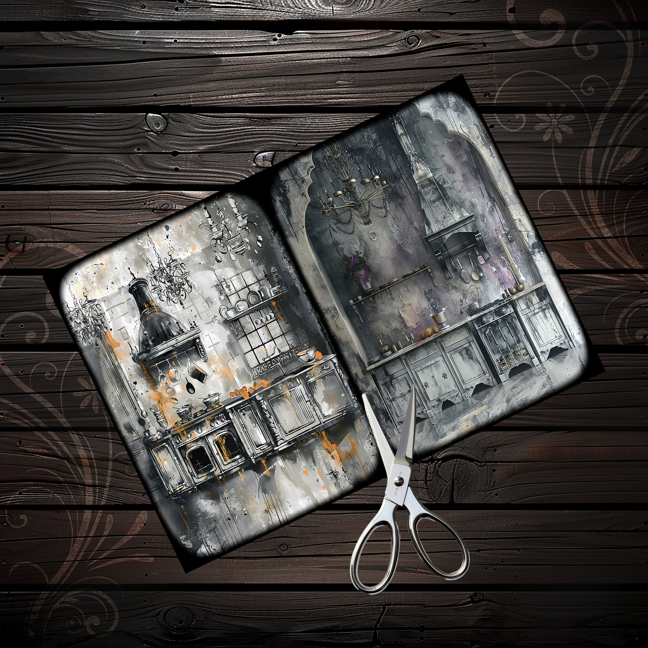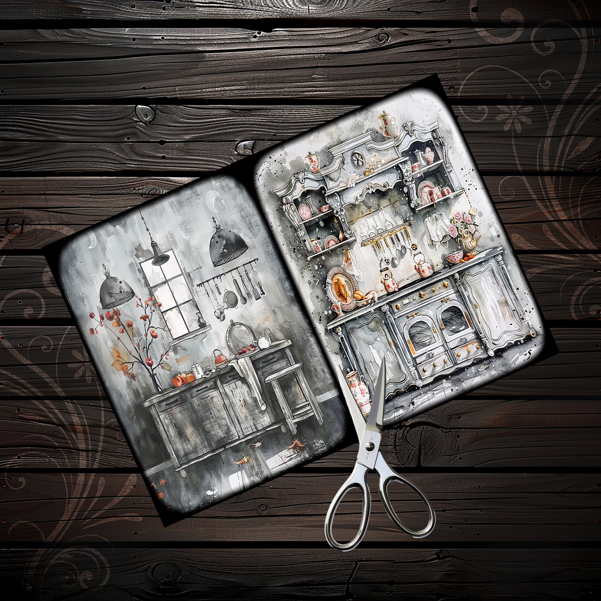 Scrapbook vintage kitchen papers, scrapbook, scrapbooking, junk journal, memory album, ephemera, diary - digital paper