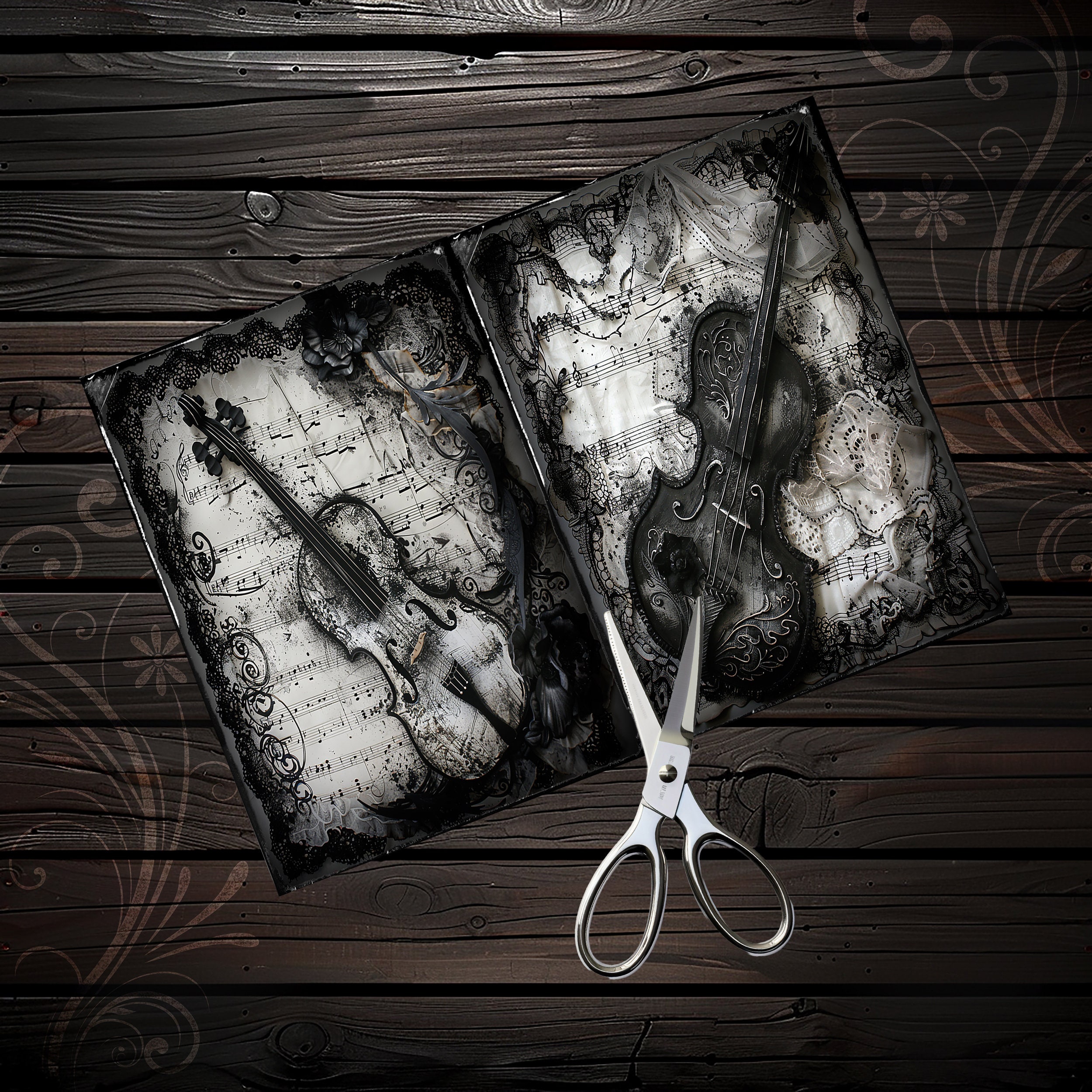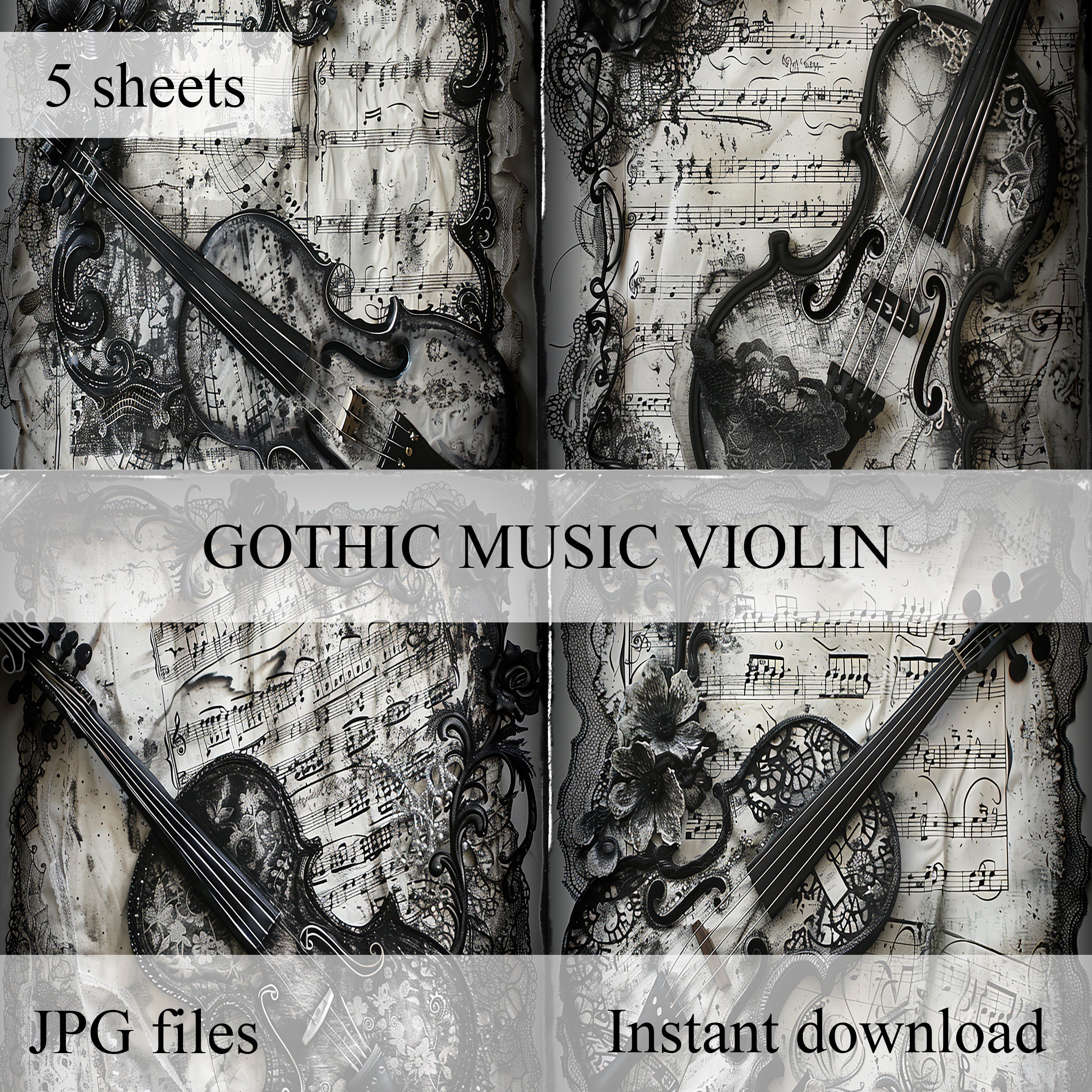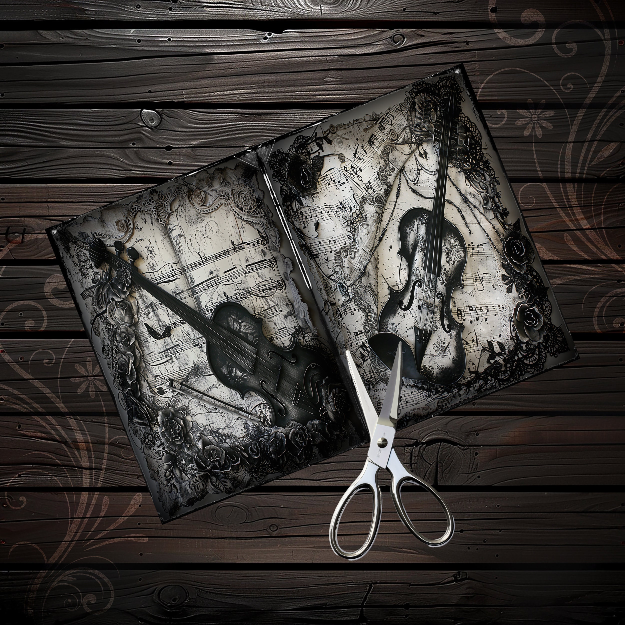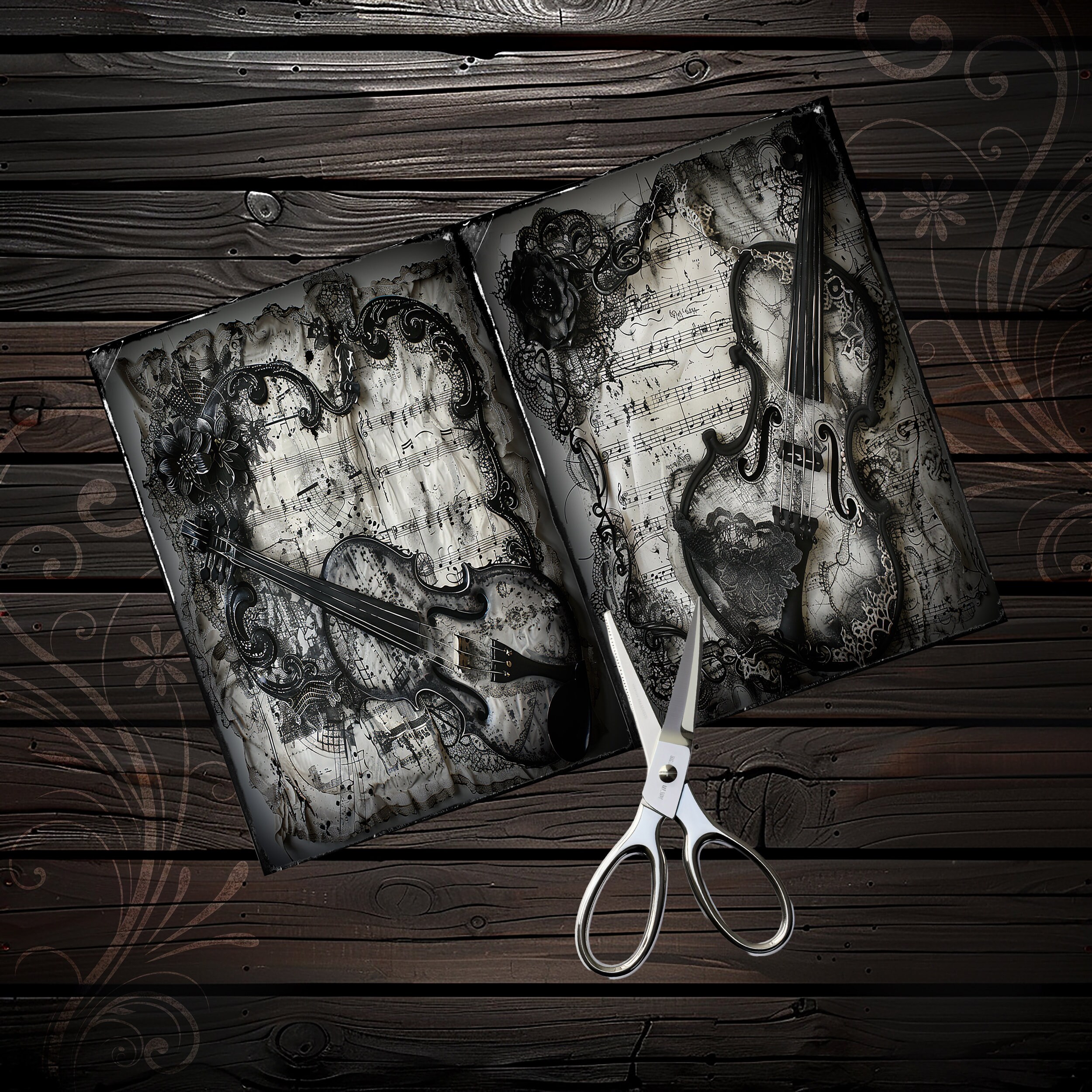 Gothic music junk journal paper, scrapbook, scrapbooking set, ephemera, violine, shabby, vintage, printable paper, digital