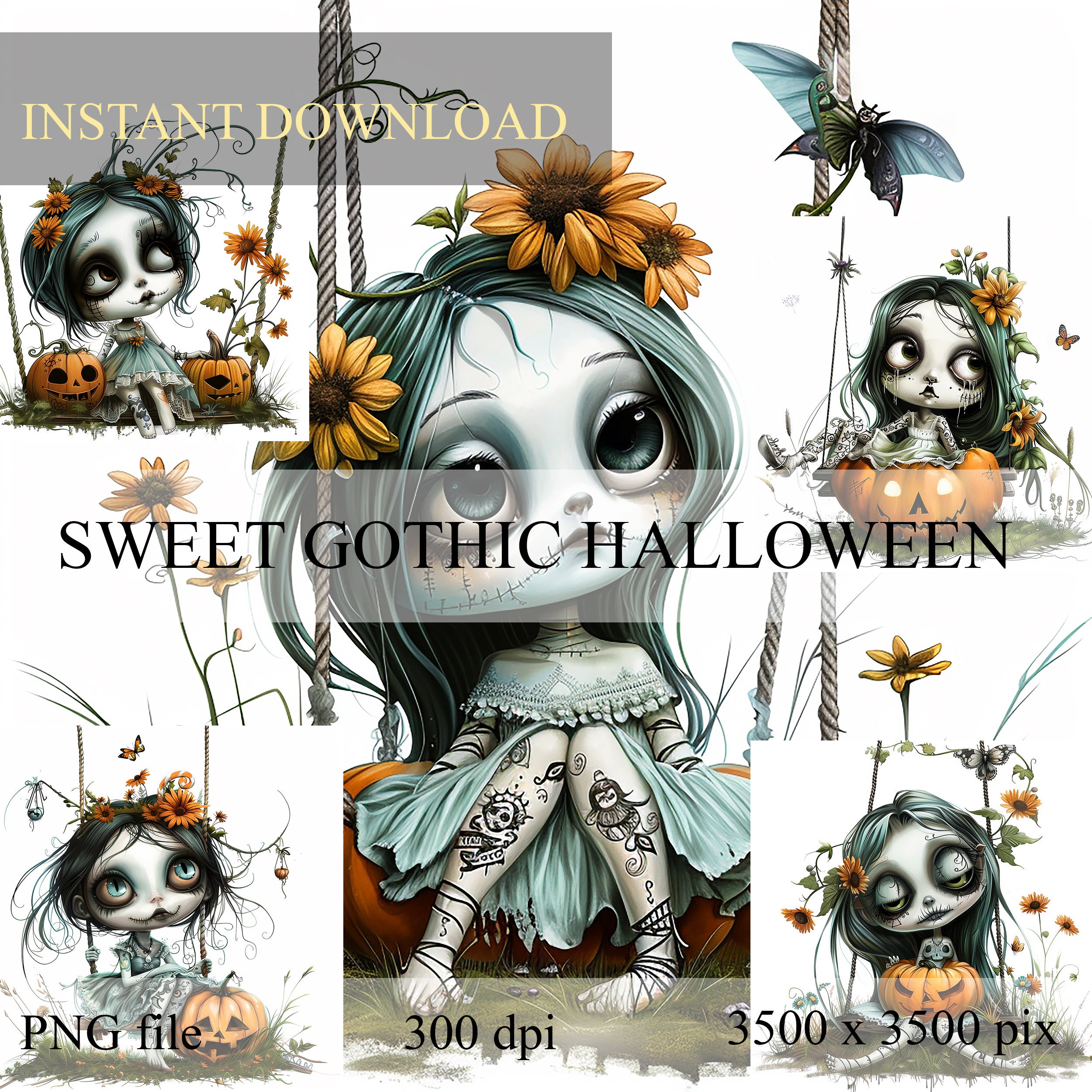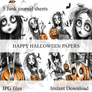 Halloween clipart stickers, junk journal stickers, scrapbook sticker, scrapbooking stickers, gothic, Tim Burton style, digital