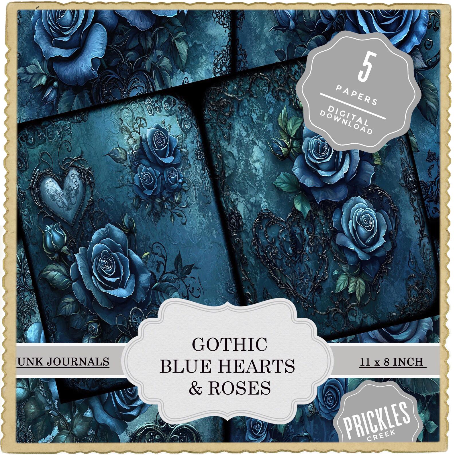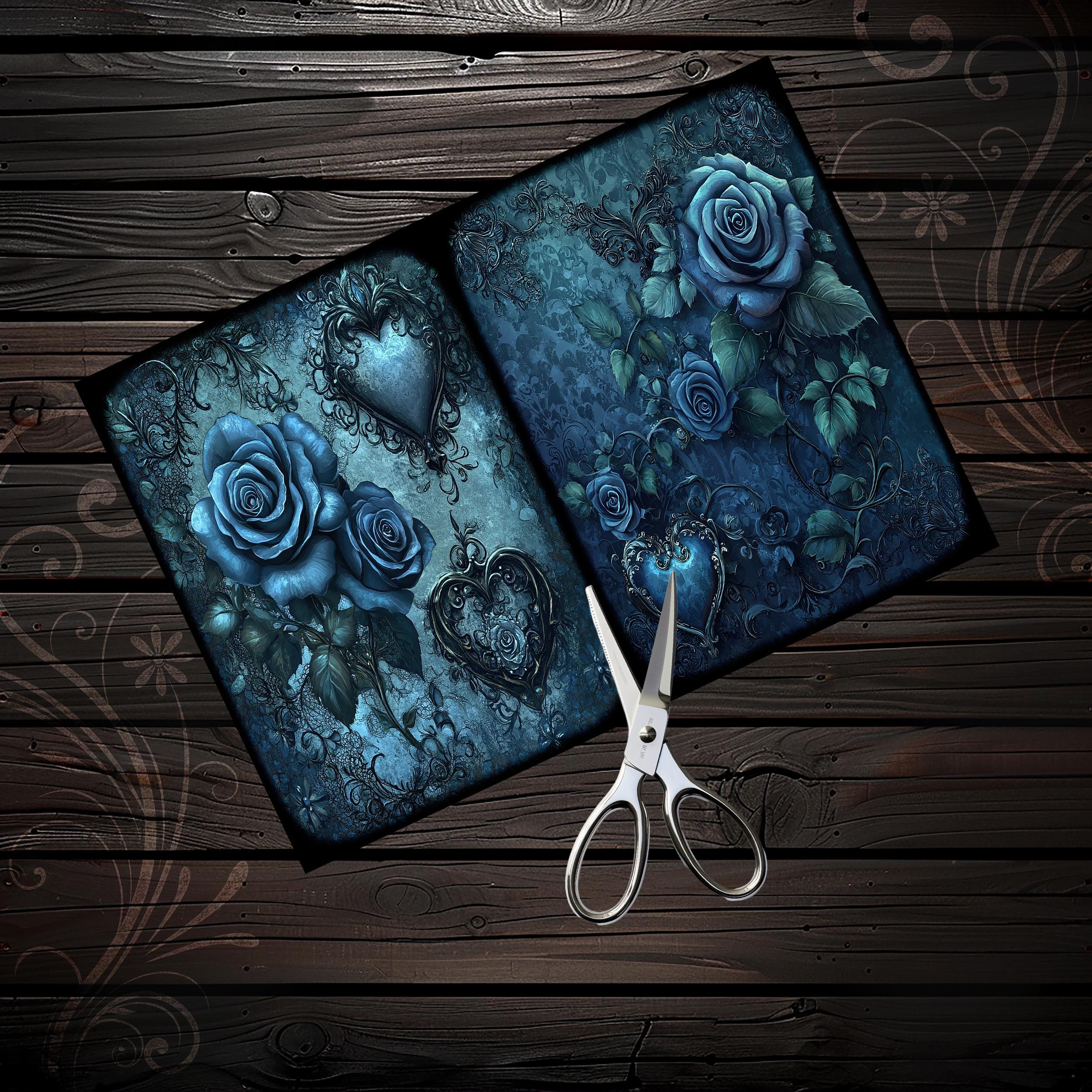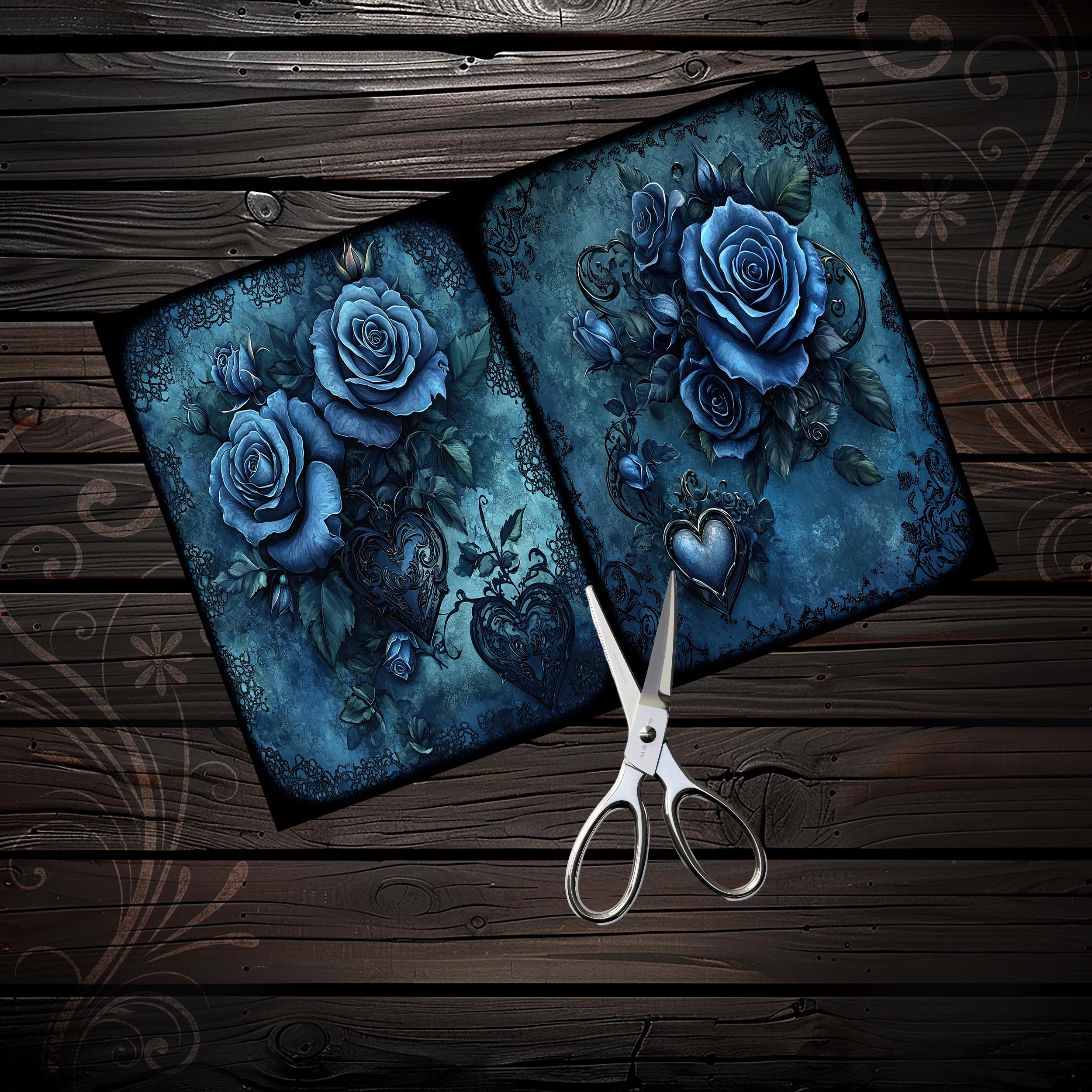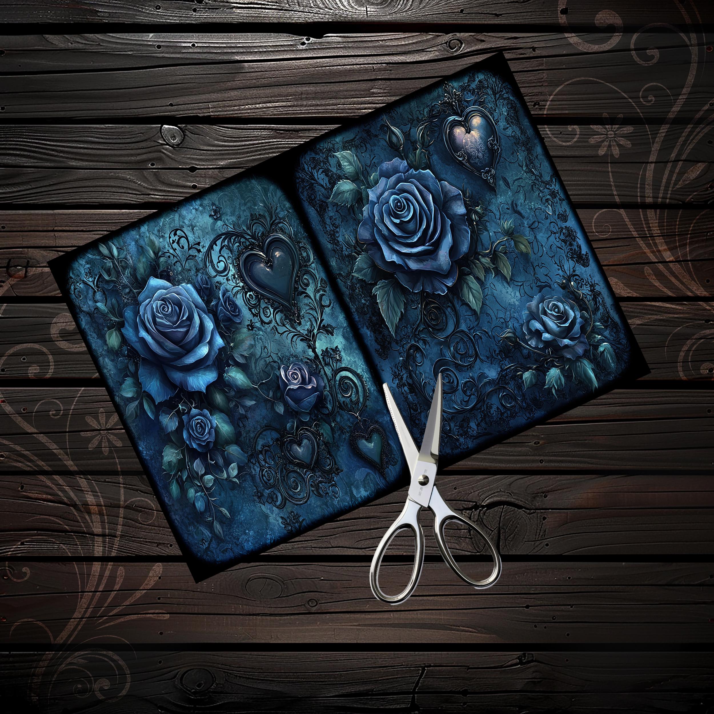 Gothic blue roses junk journal, scrapbook set, scrapbooking paper, ephemera, memory album - digital papers