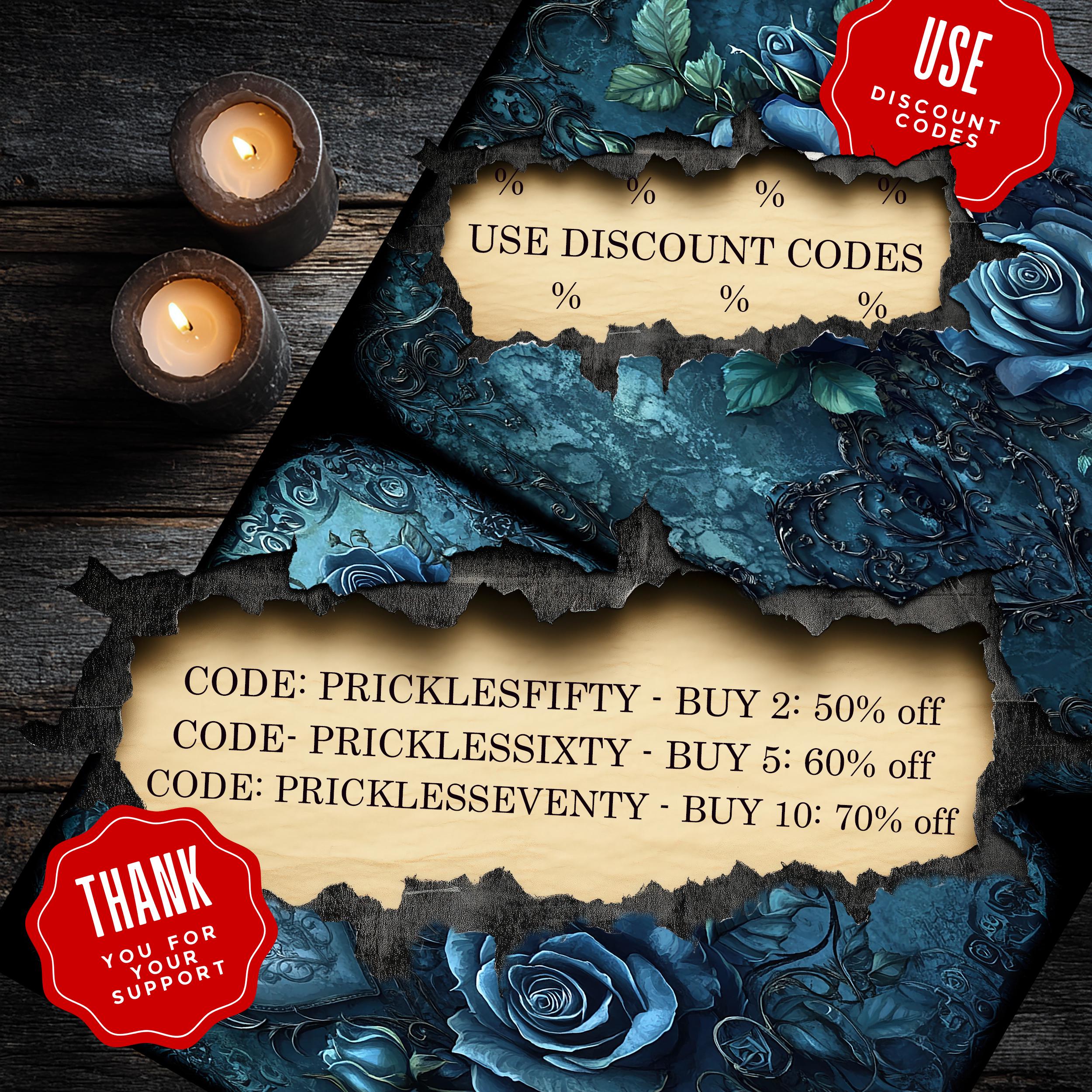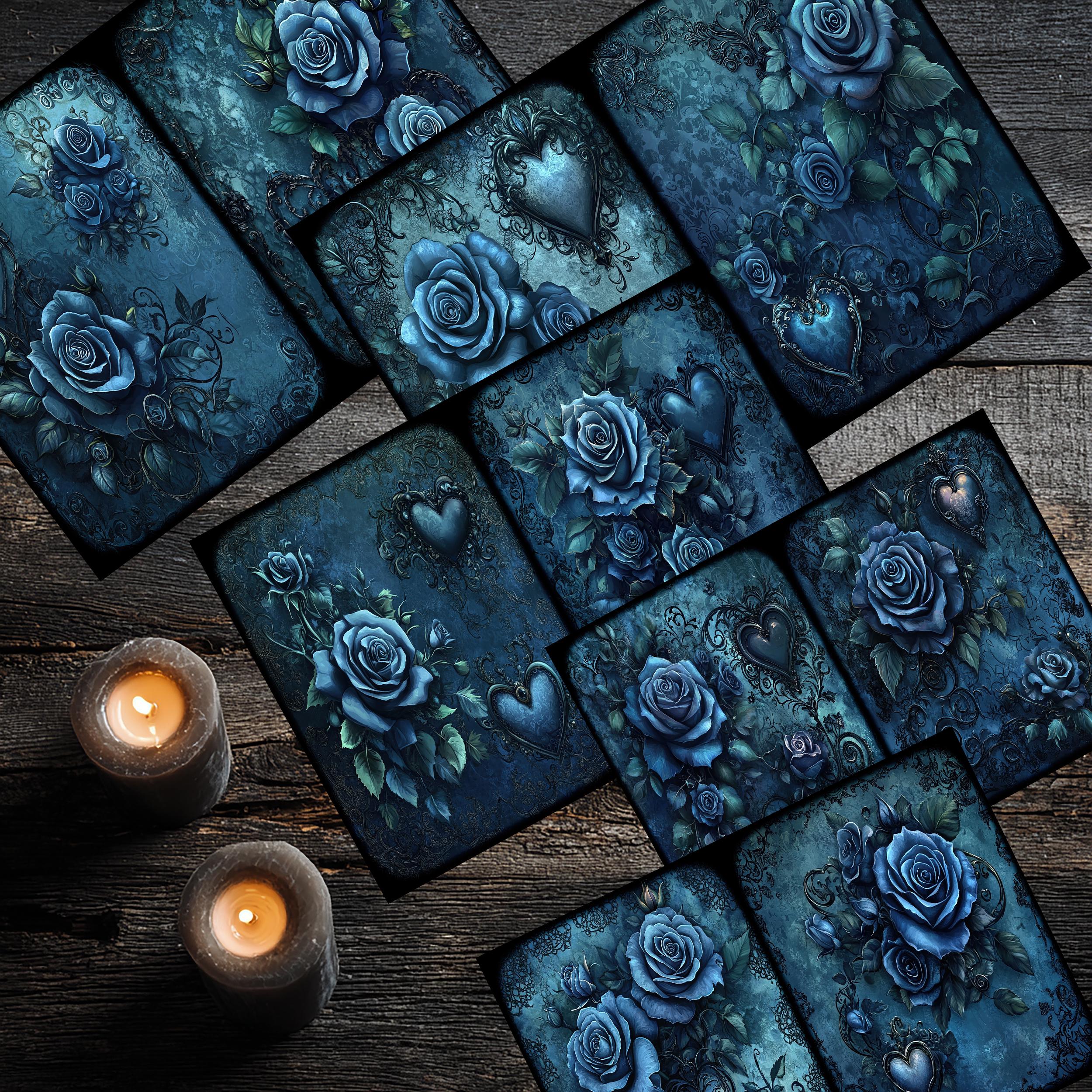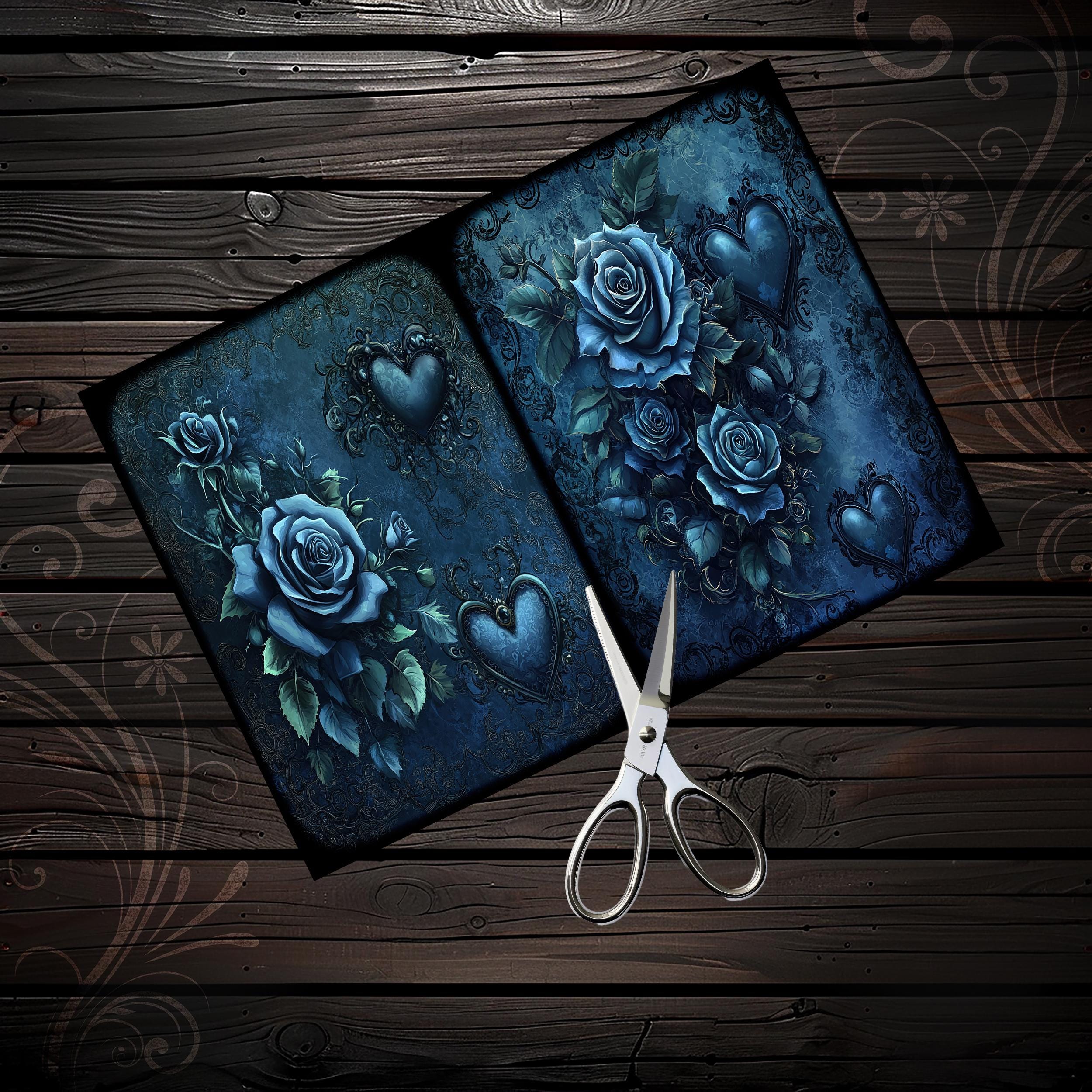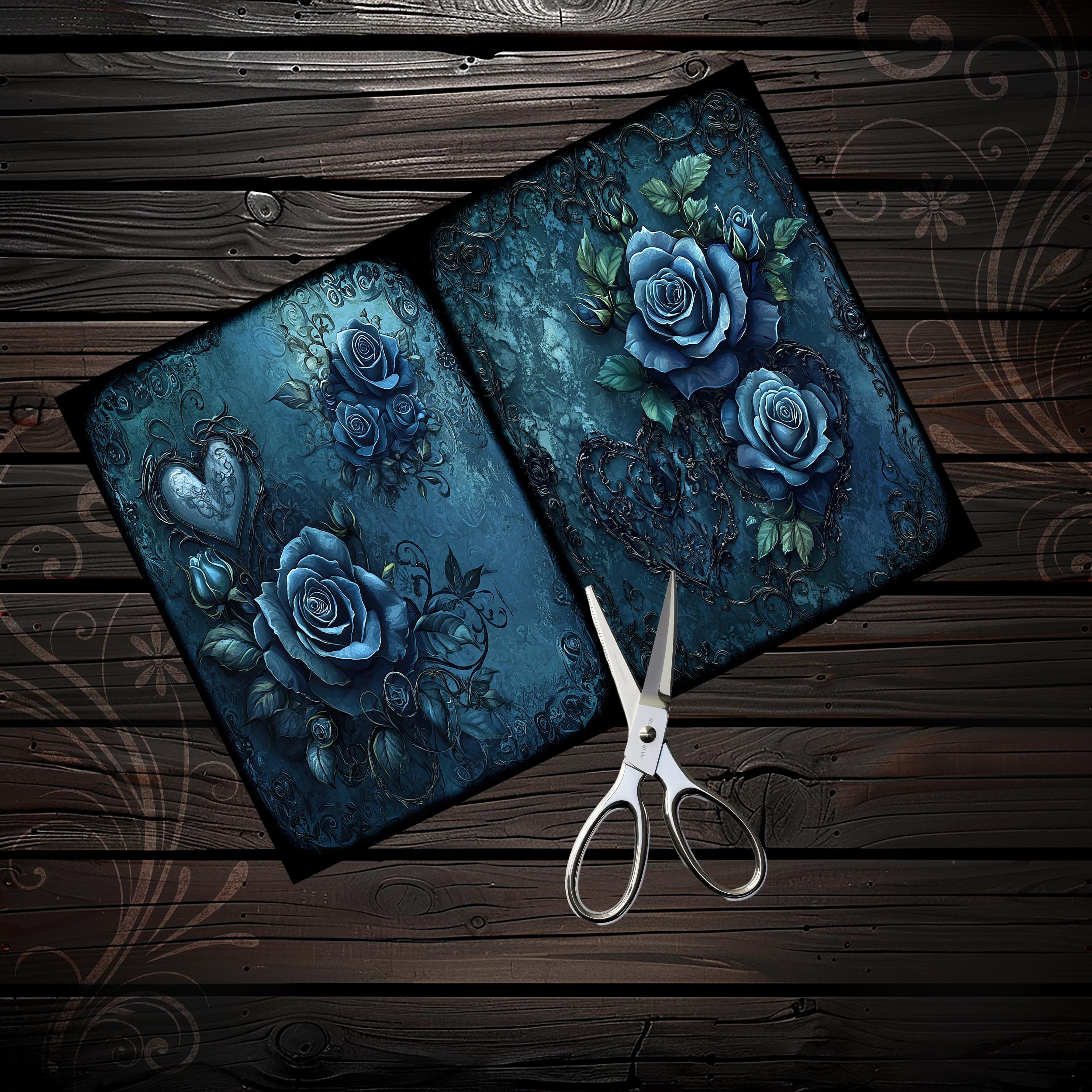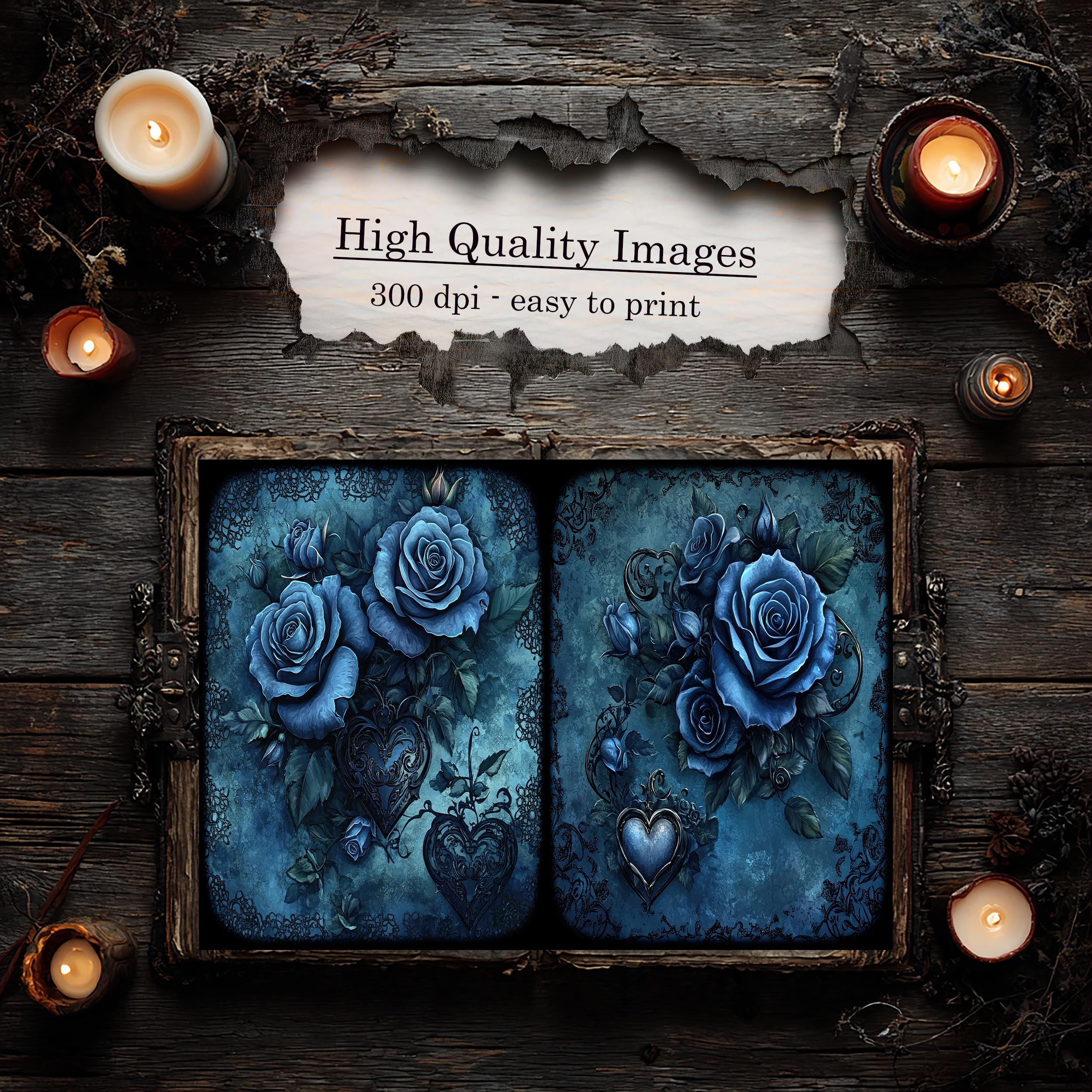 Gothic blue roses junk journal, scrapbook set, scrapbooking paper, ephemera, memory album - digital papers