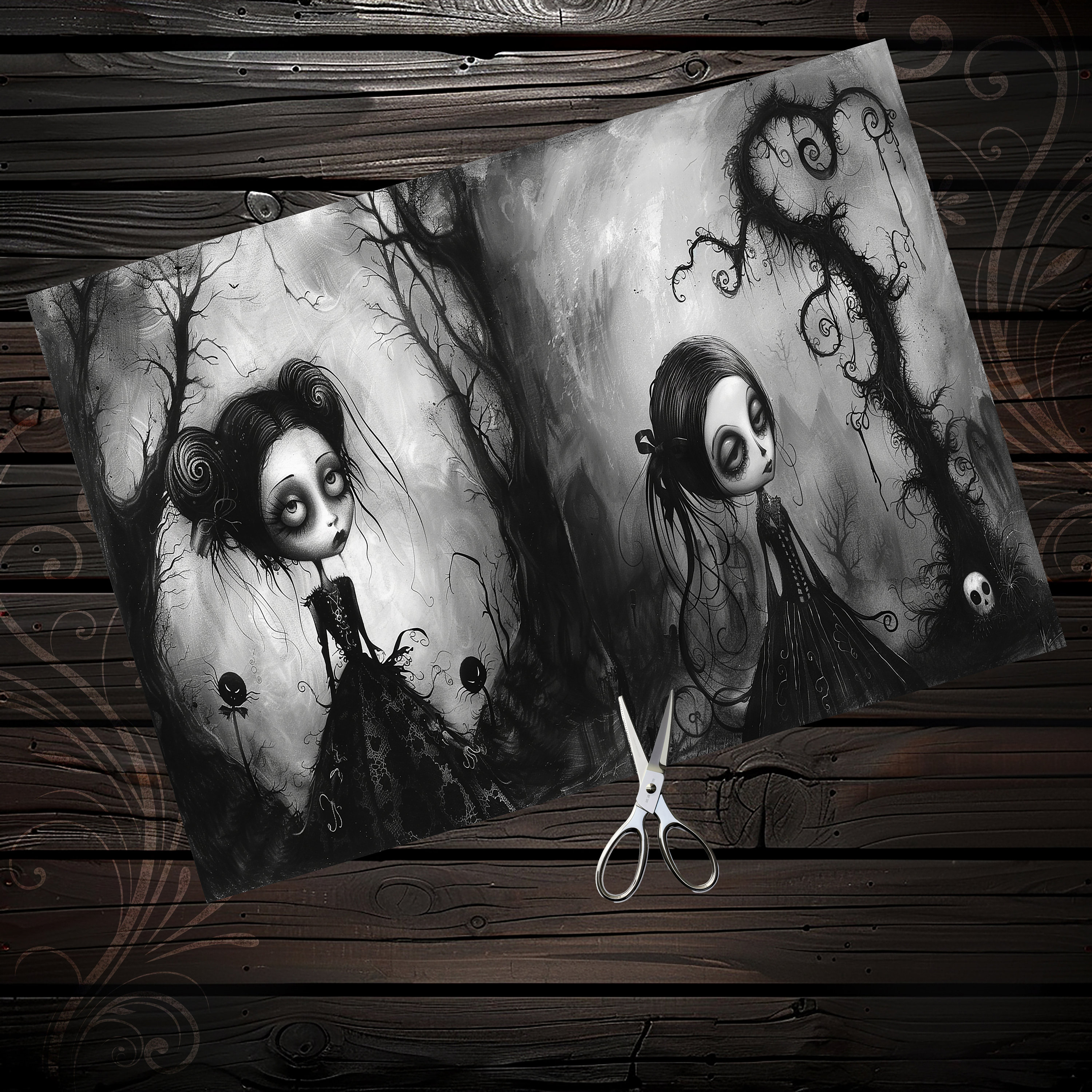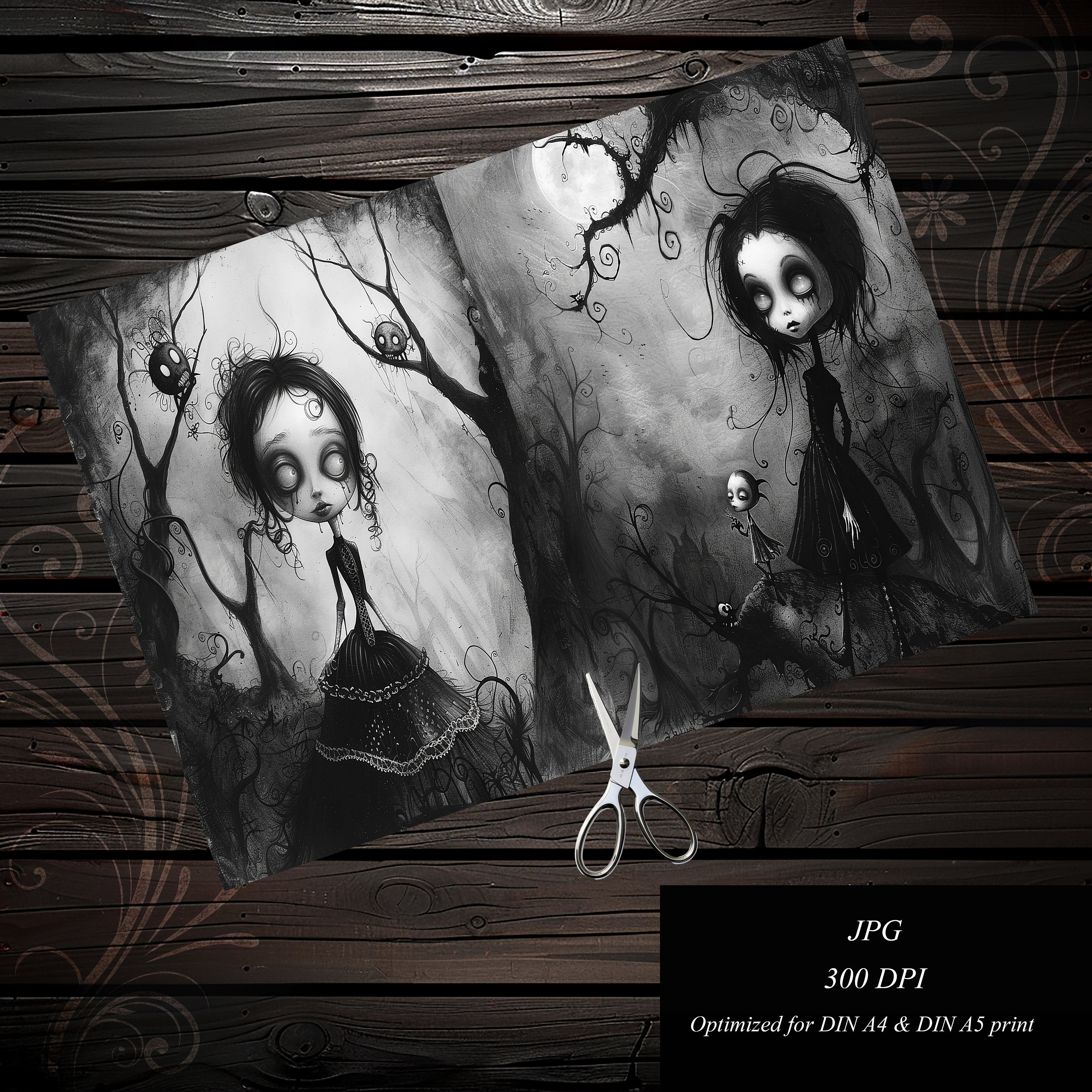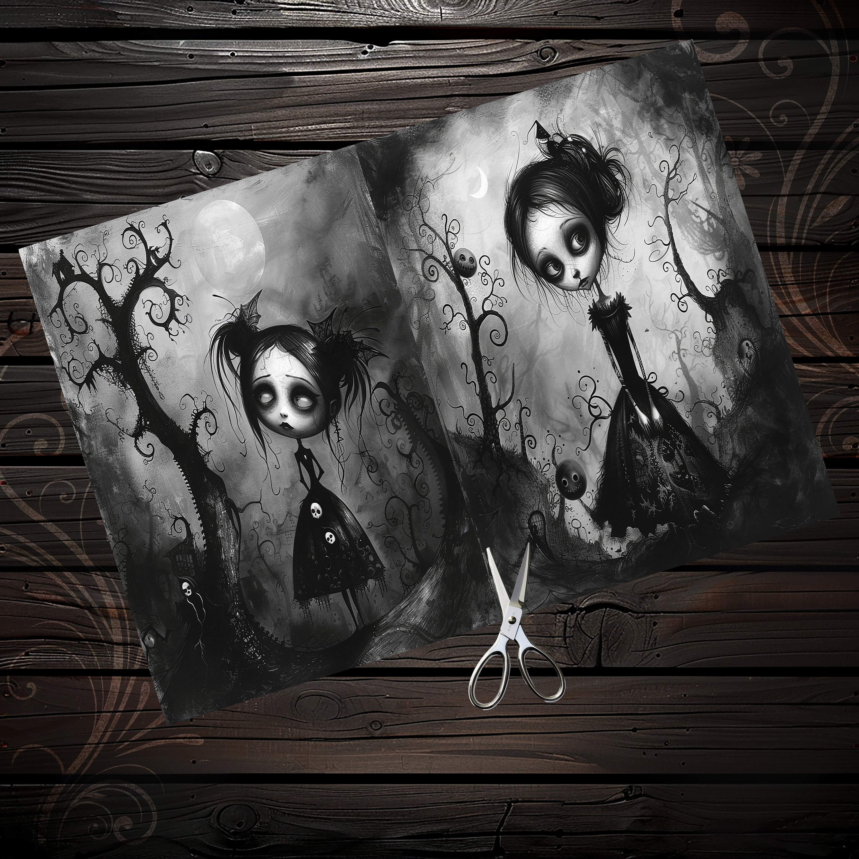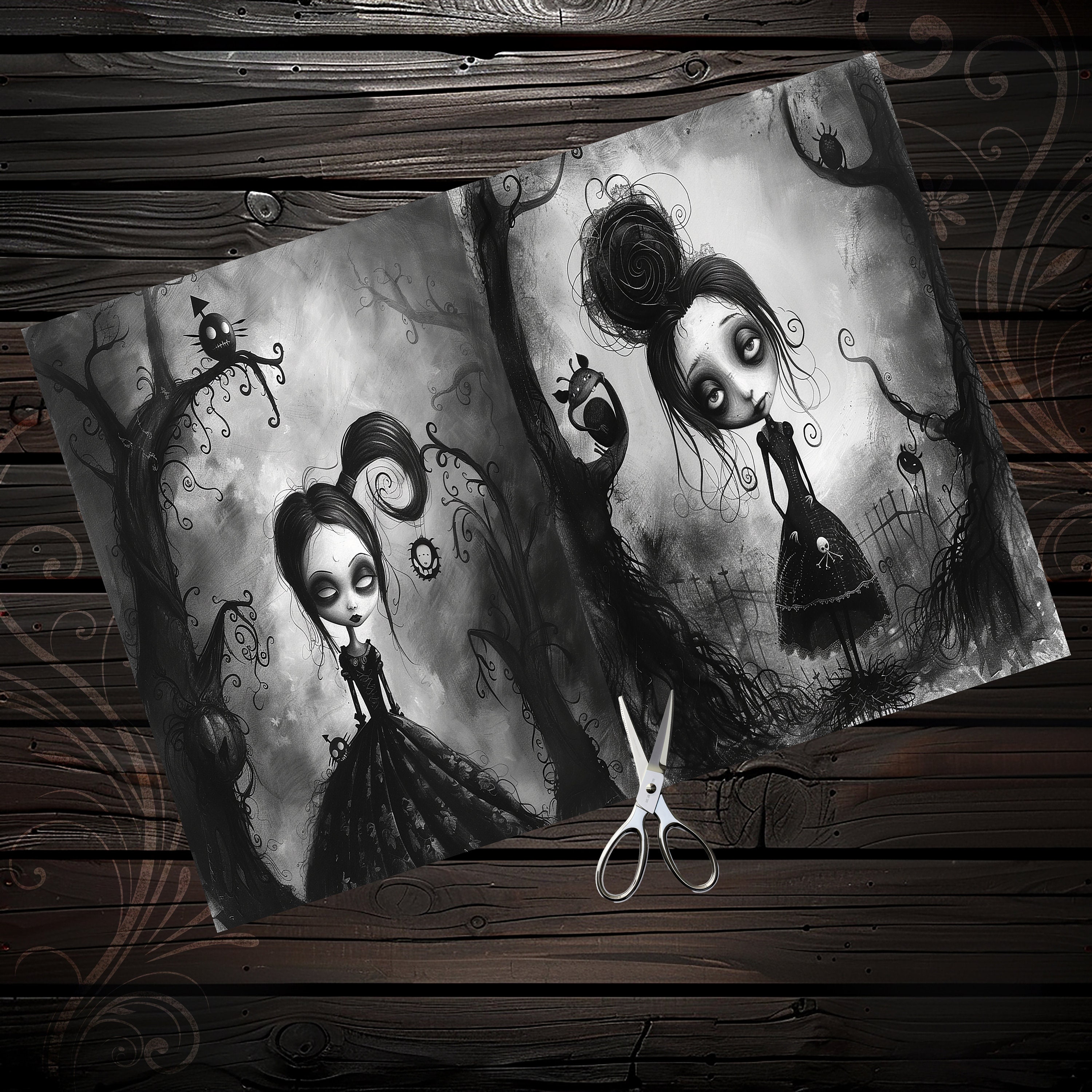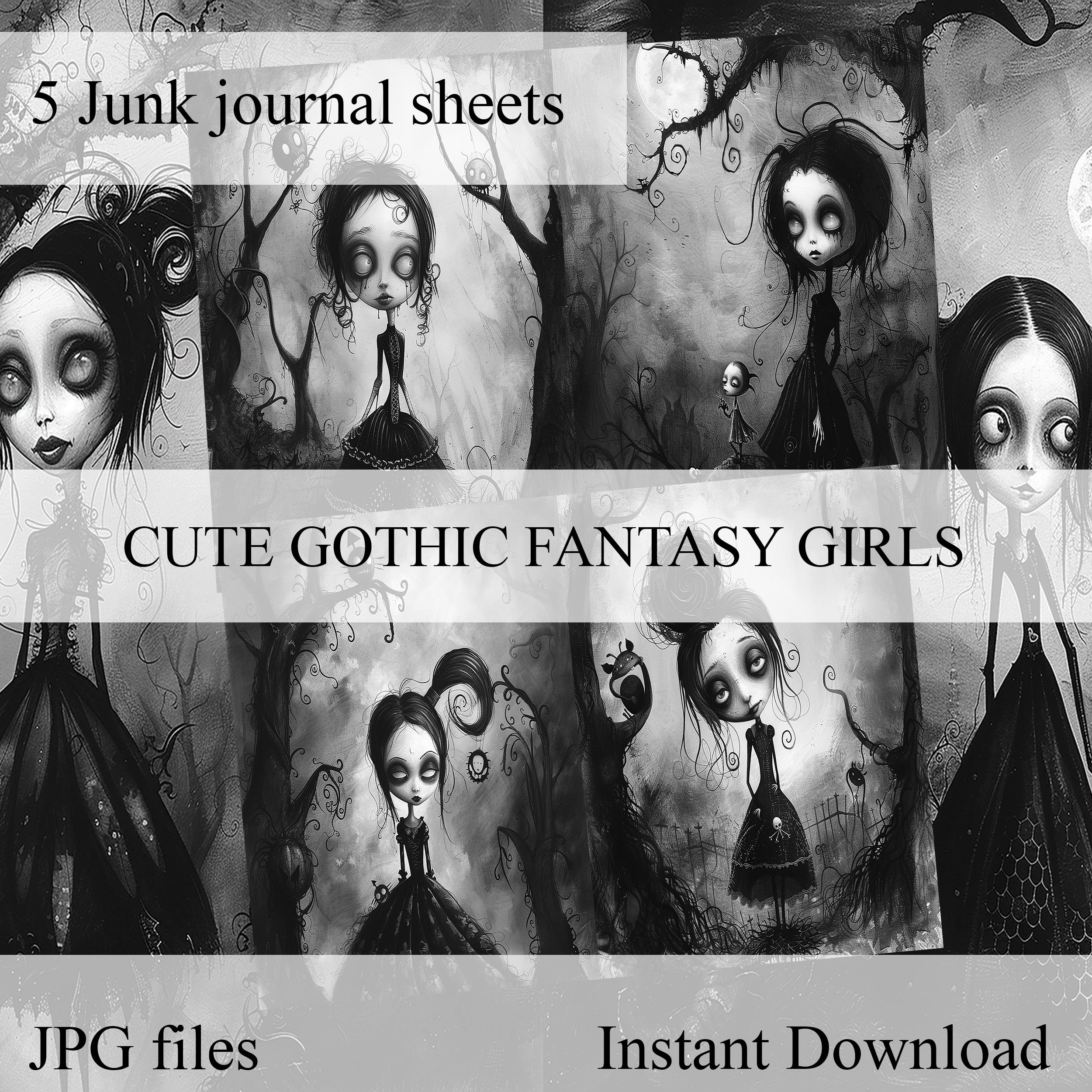 Gothic girls Junk Journal paper, Scrapbook, Scrapbooking collage, Junk Journal kit, Ephemera, fantasy, printable paper