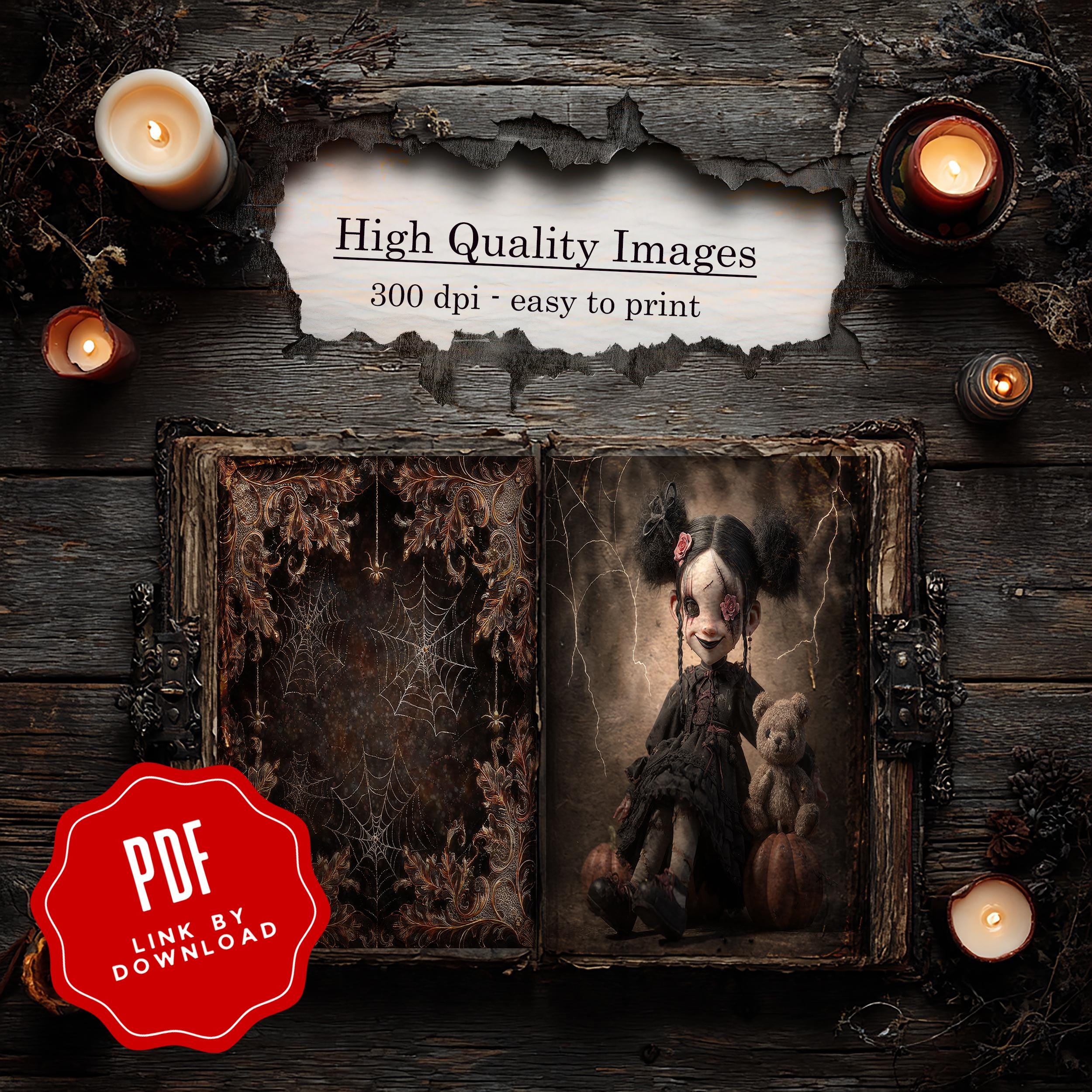 Scrapbooking dark gothic mega bundle "Voodoo Halloween Dolls", scrapbook papers, scrapbooking, junk journal, ephemera, diary, digital