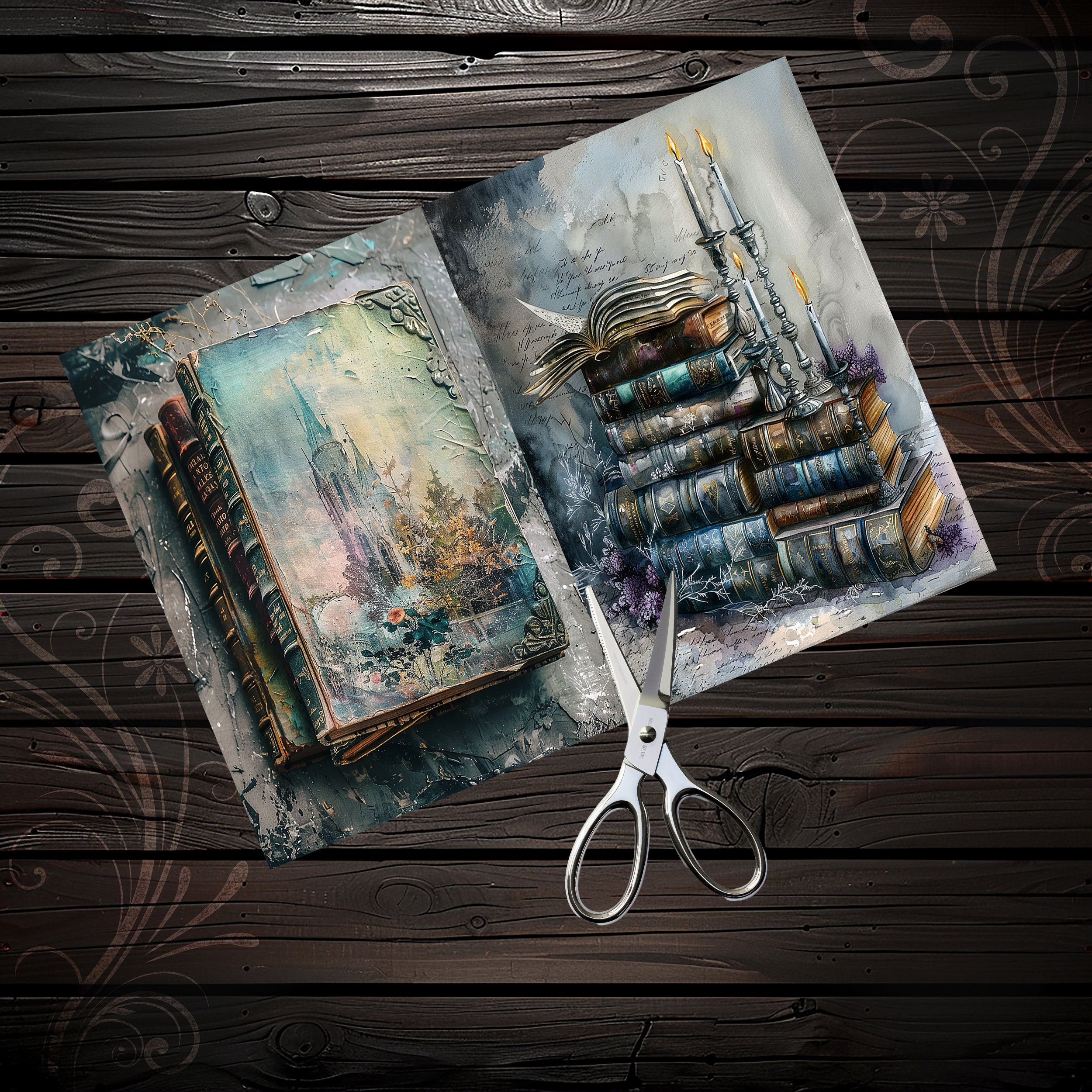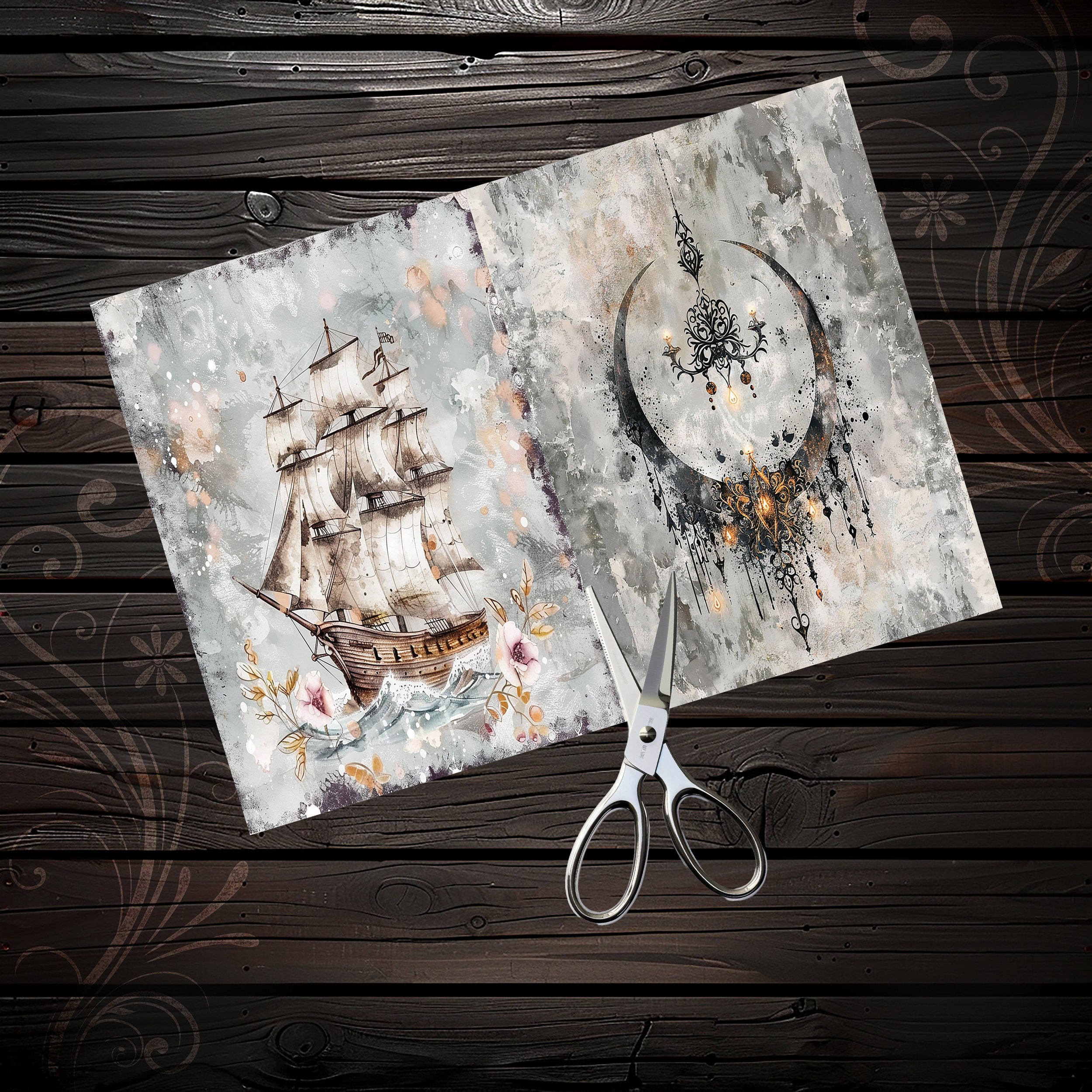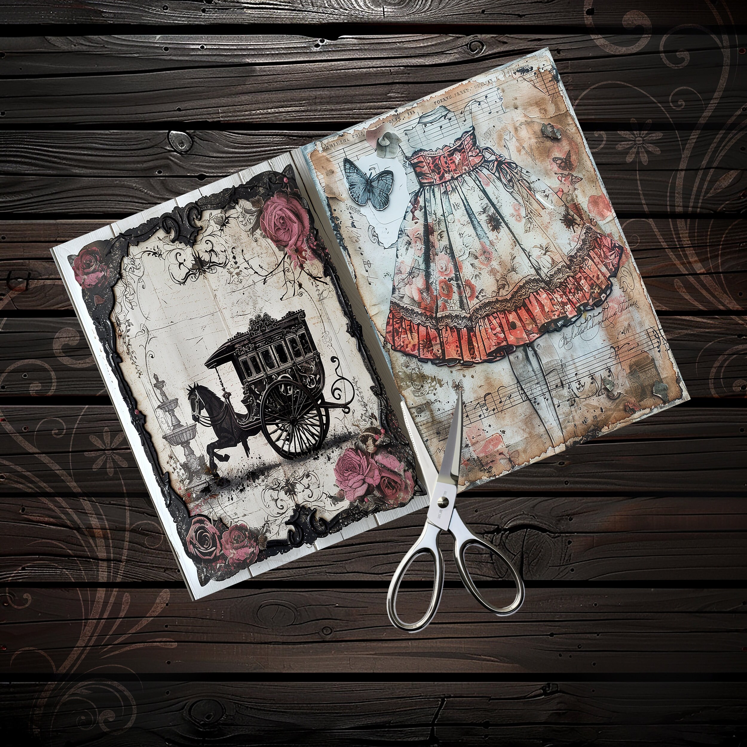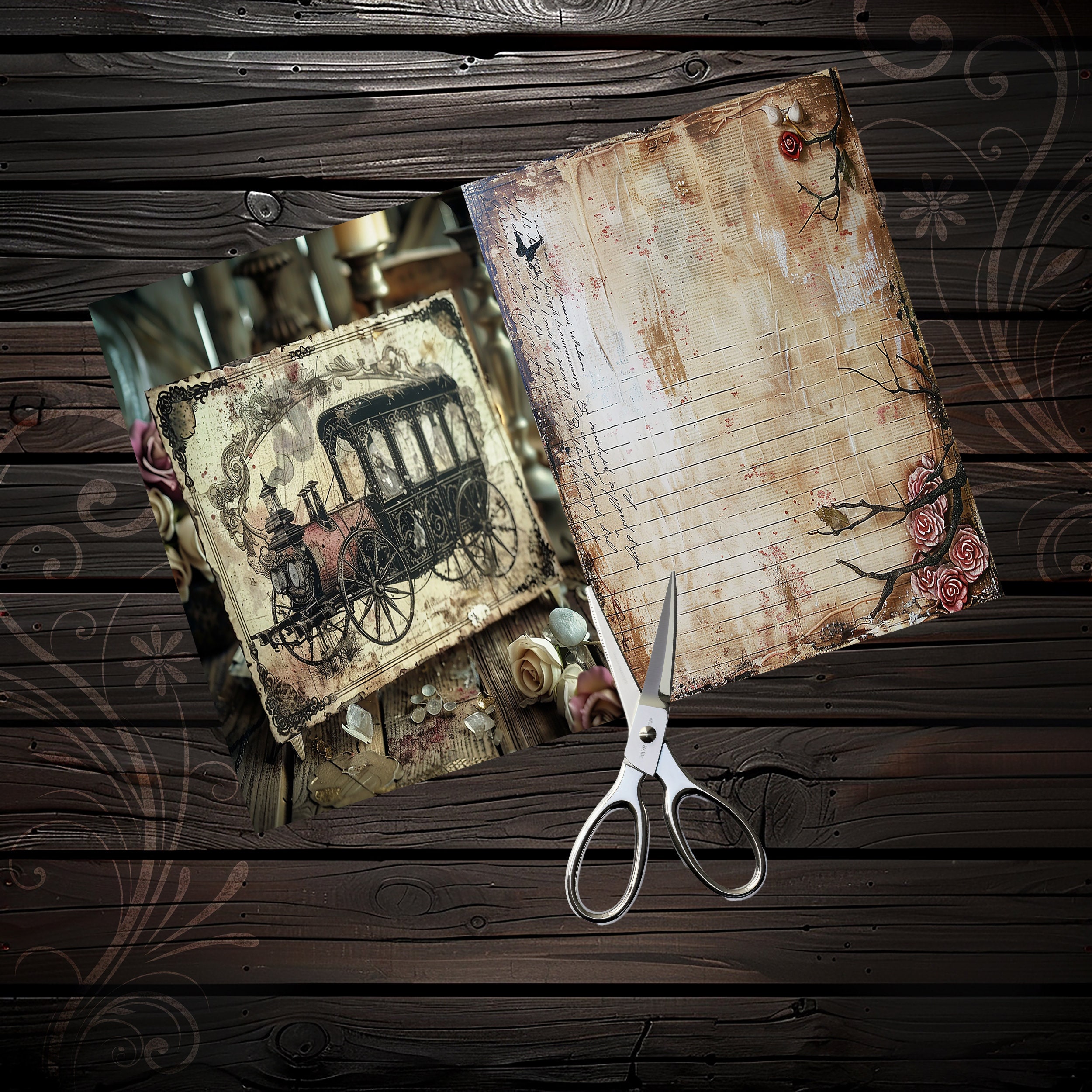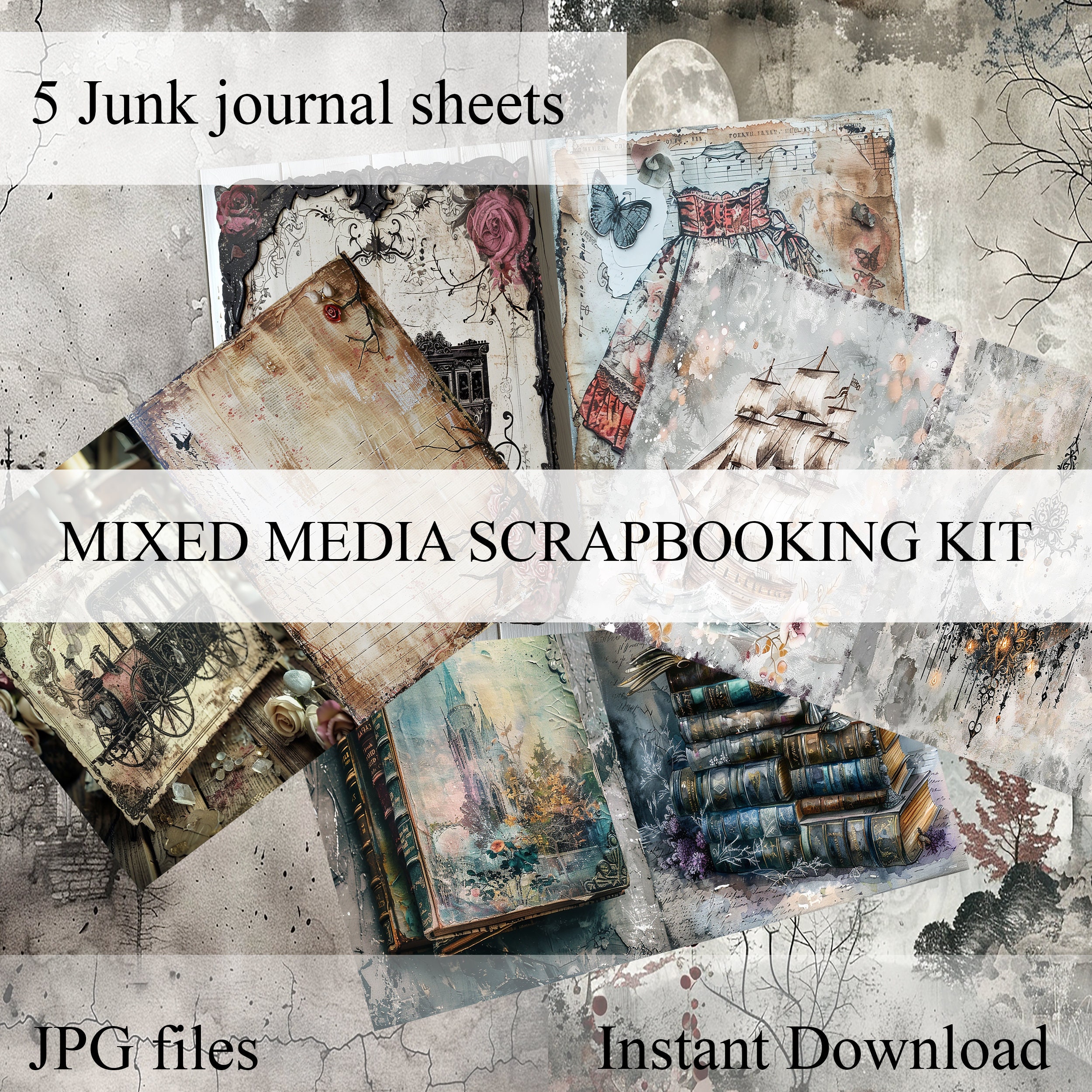 Junk journal mixed media paper, printable paper, scrapbook, scrapbooking, digital, shabby, fantasy, ephemera, kit, set, collage