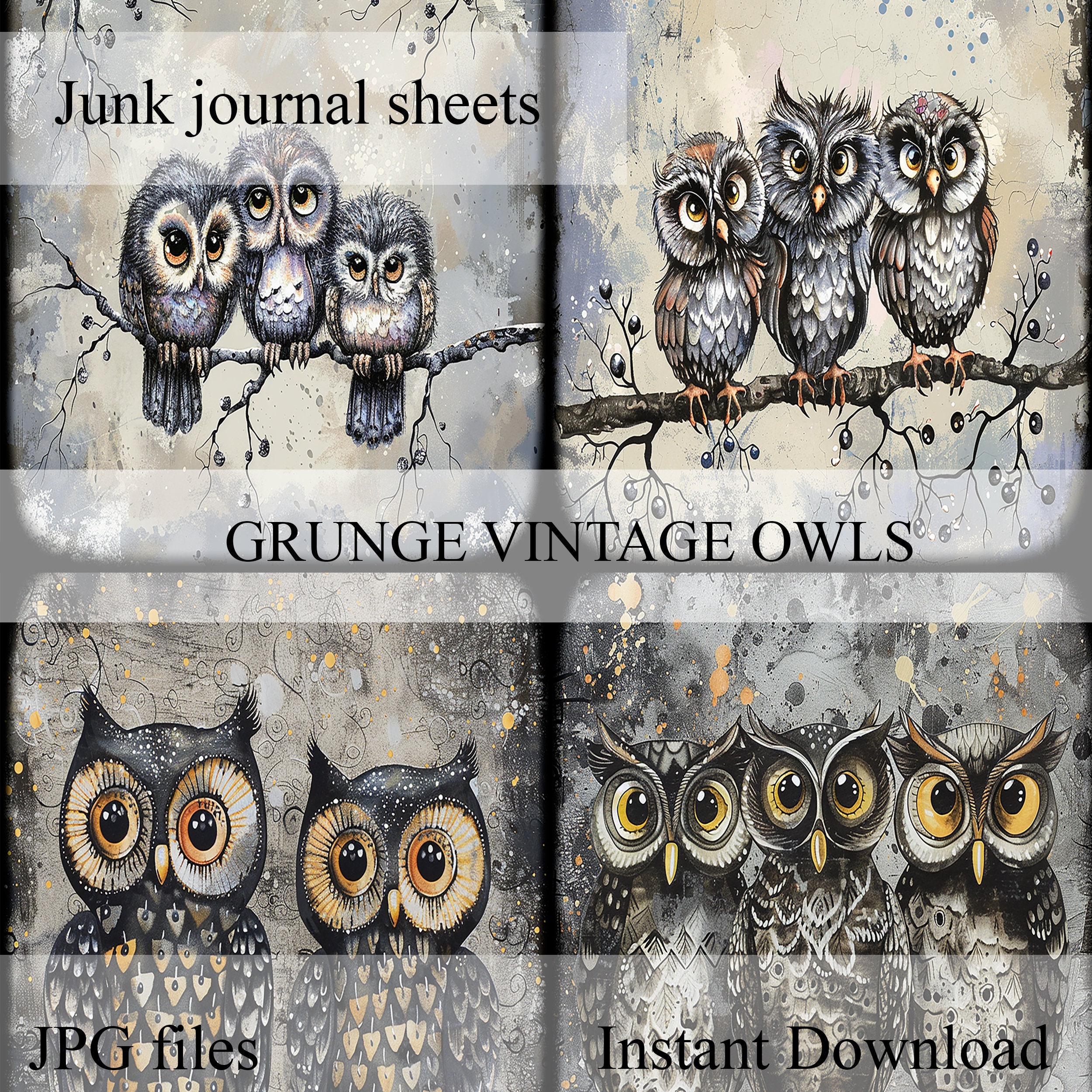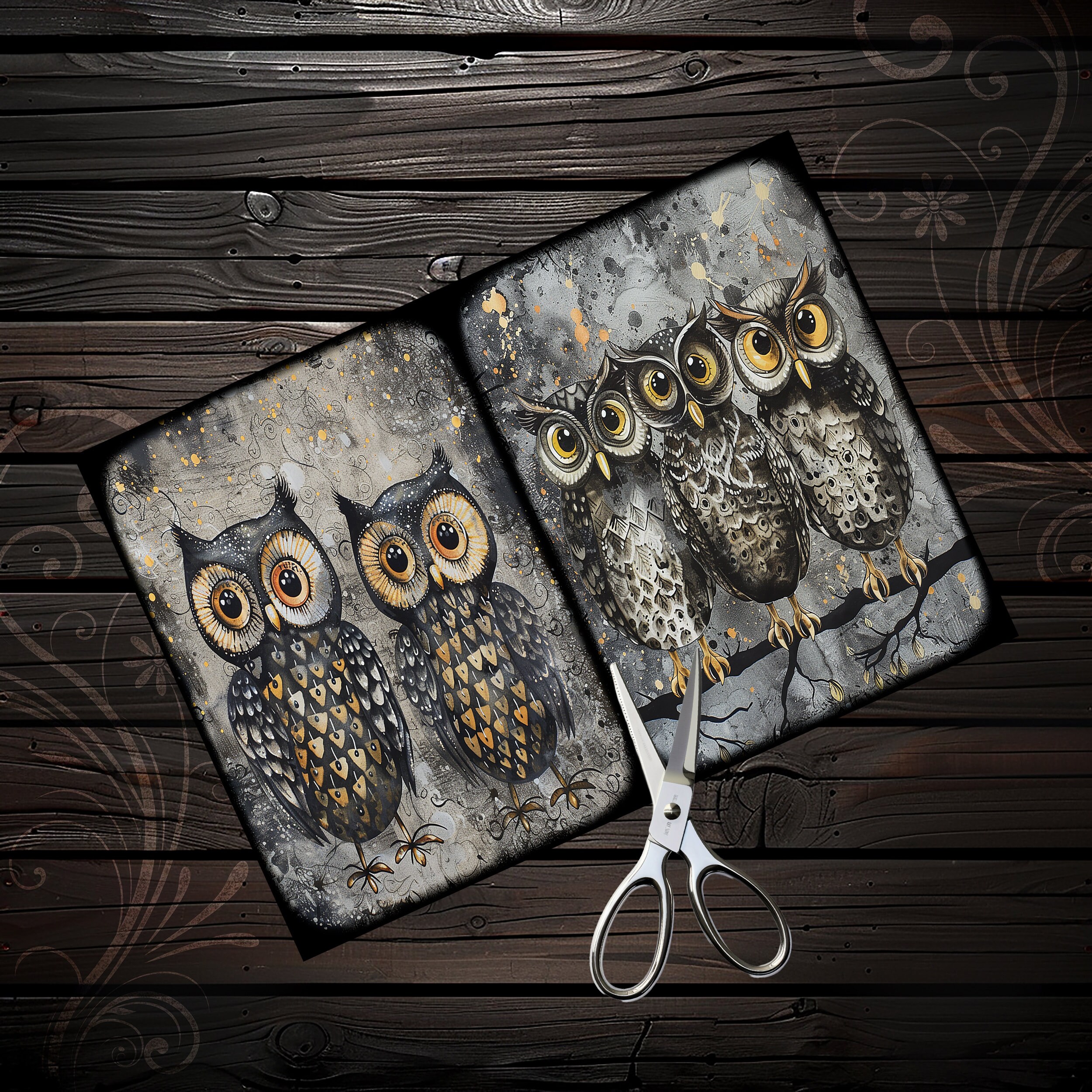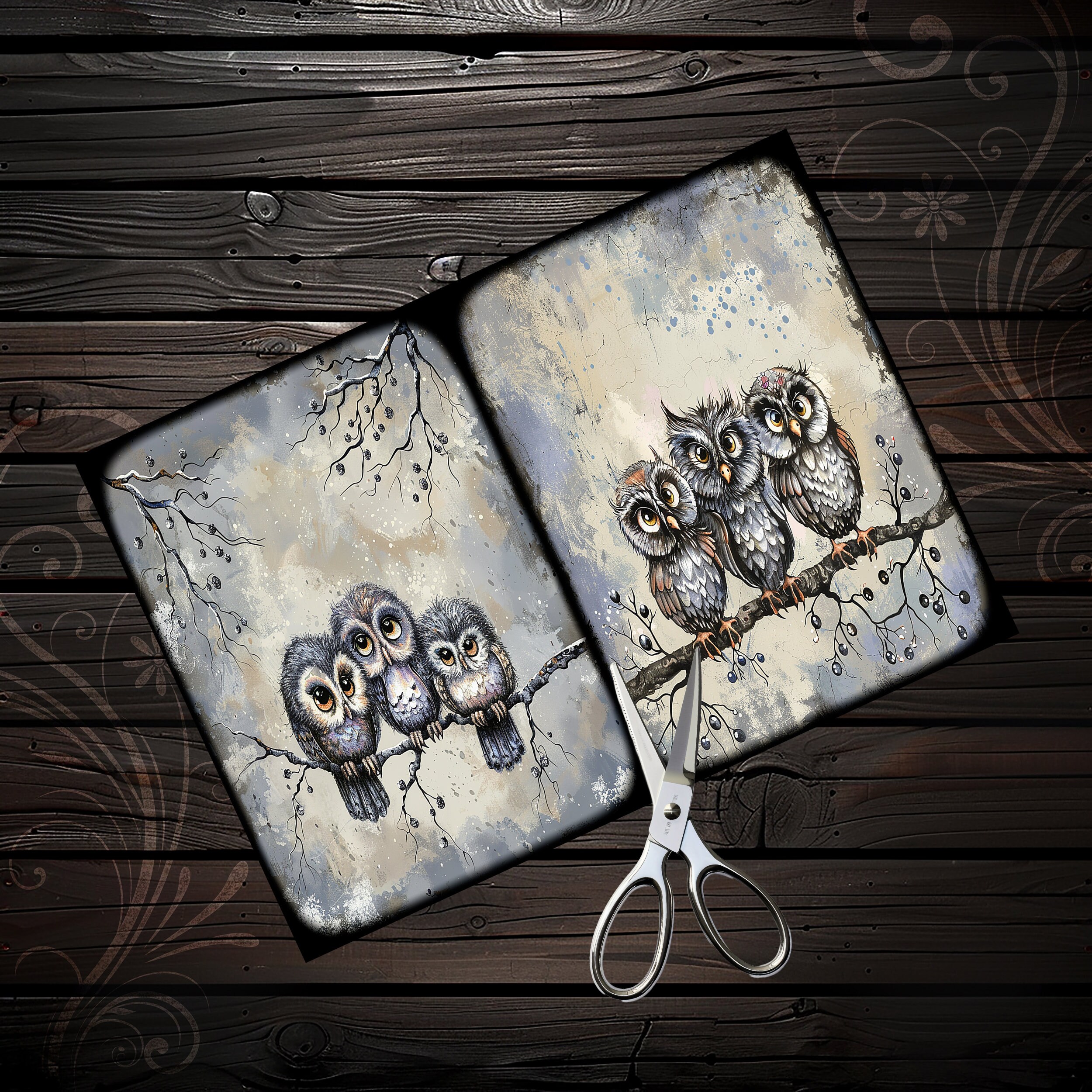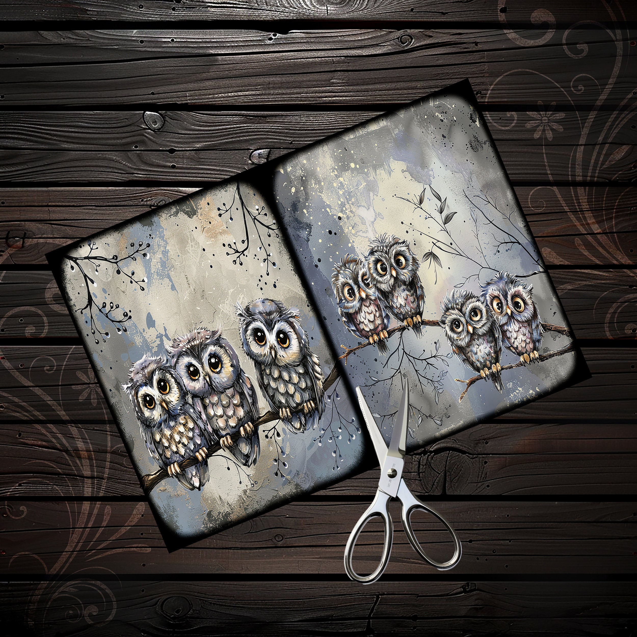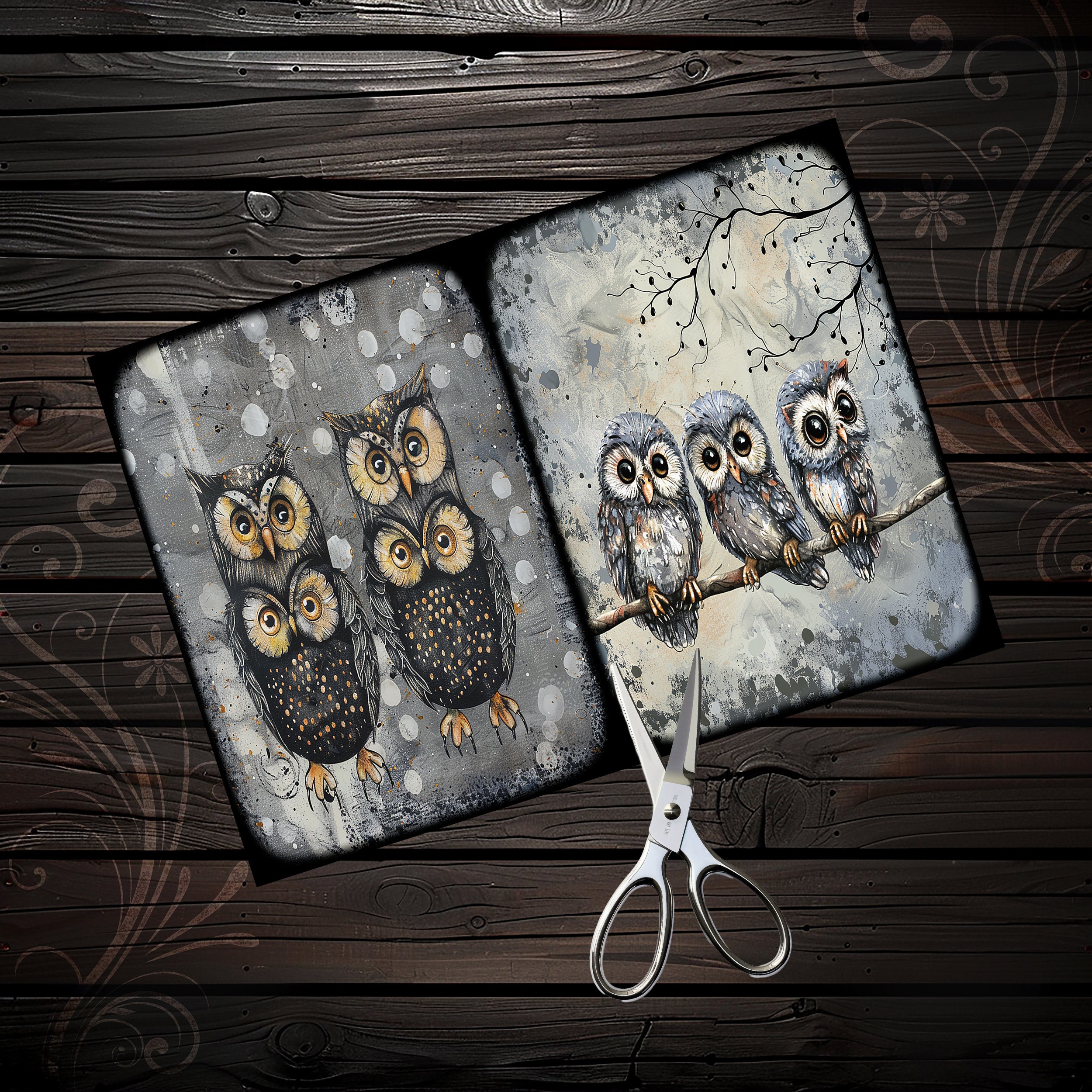 Scrapbook owl papers, scrapbook, scrapbooking, junk journal, memory album, diary, ephemera - digital paper