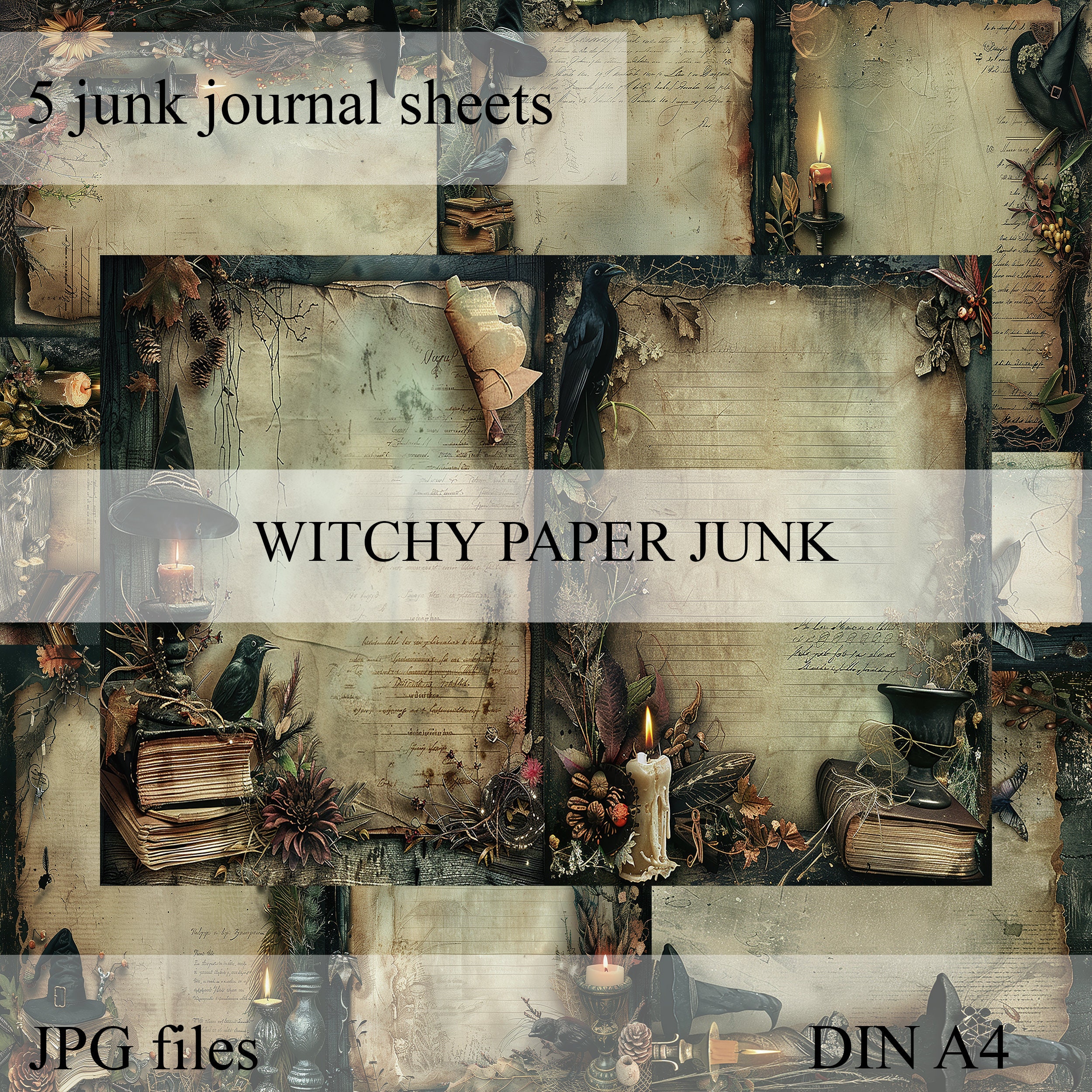 Bundle 5 witchy paper, collage, fantasy, scrapbooking, photoshop, junk journal, printable paper - digital download
