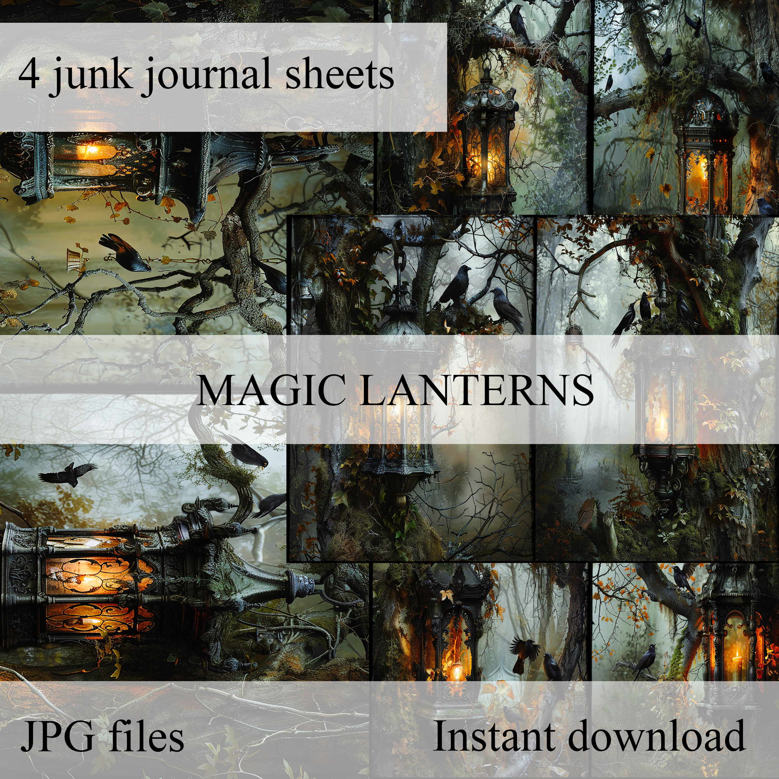 Magic Lantern Junk Journal paper, scrapbook whimsical, Scrapbooking enchanted, kit, ephemera, digital, gothic, fantasy, printable paper