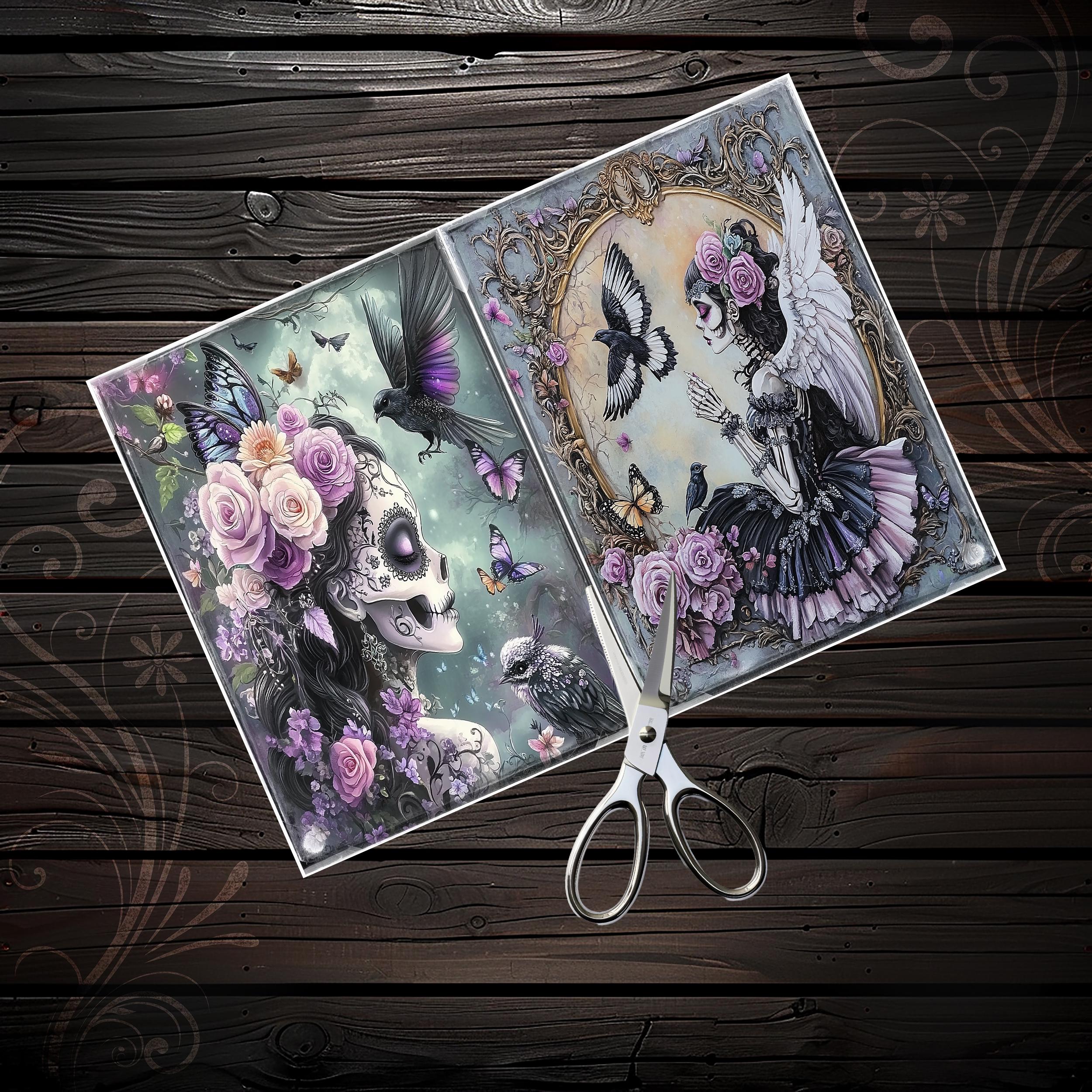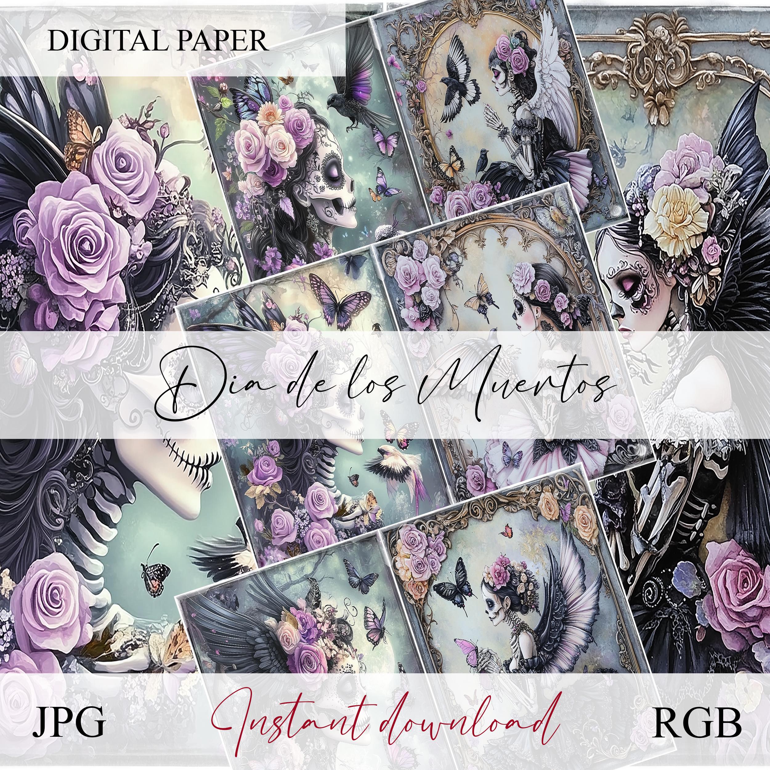 Scrapbook "dia de los muertos" printable papers, scrapbook, scrapbooking kit, junk journal, digital paper, ephemera, cute reaper, gothic