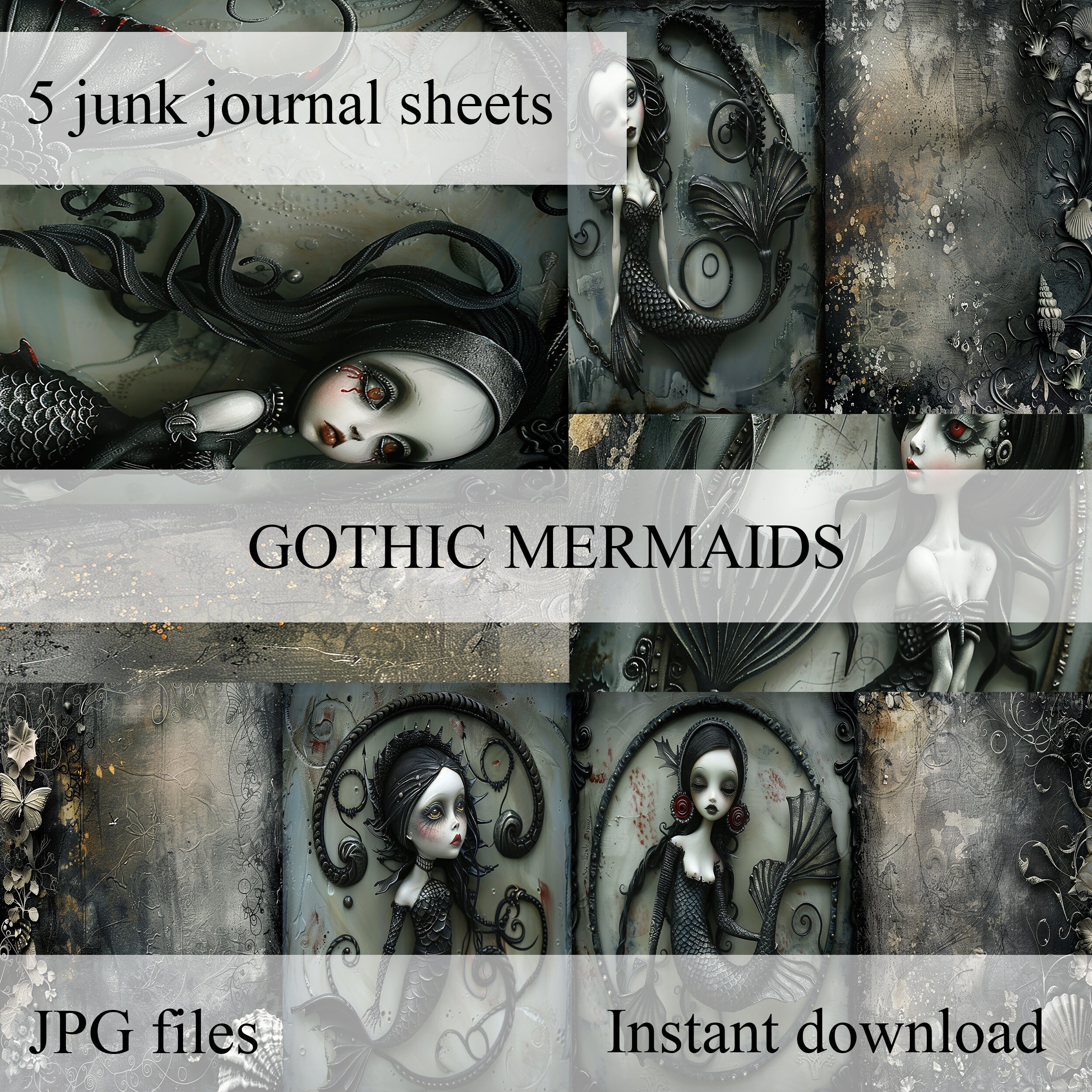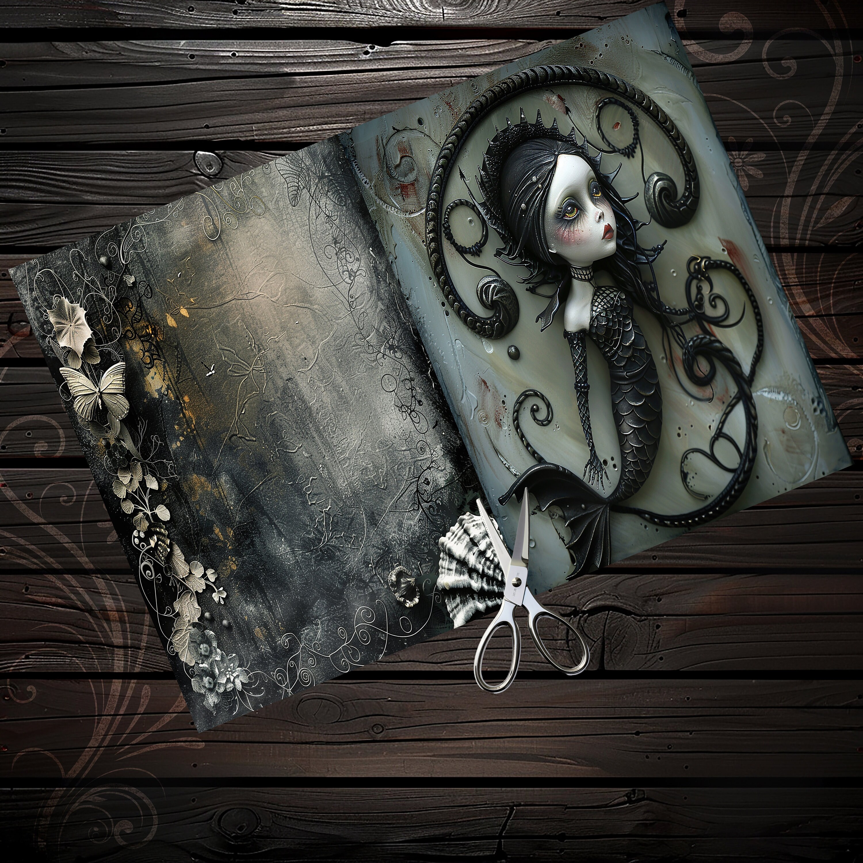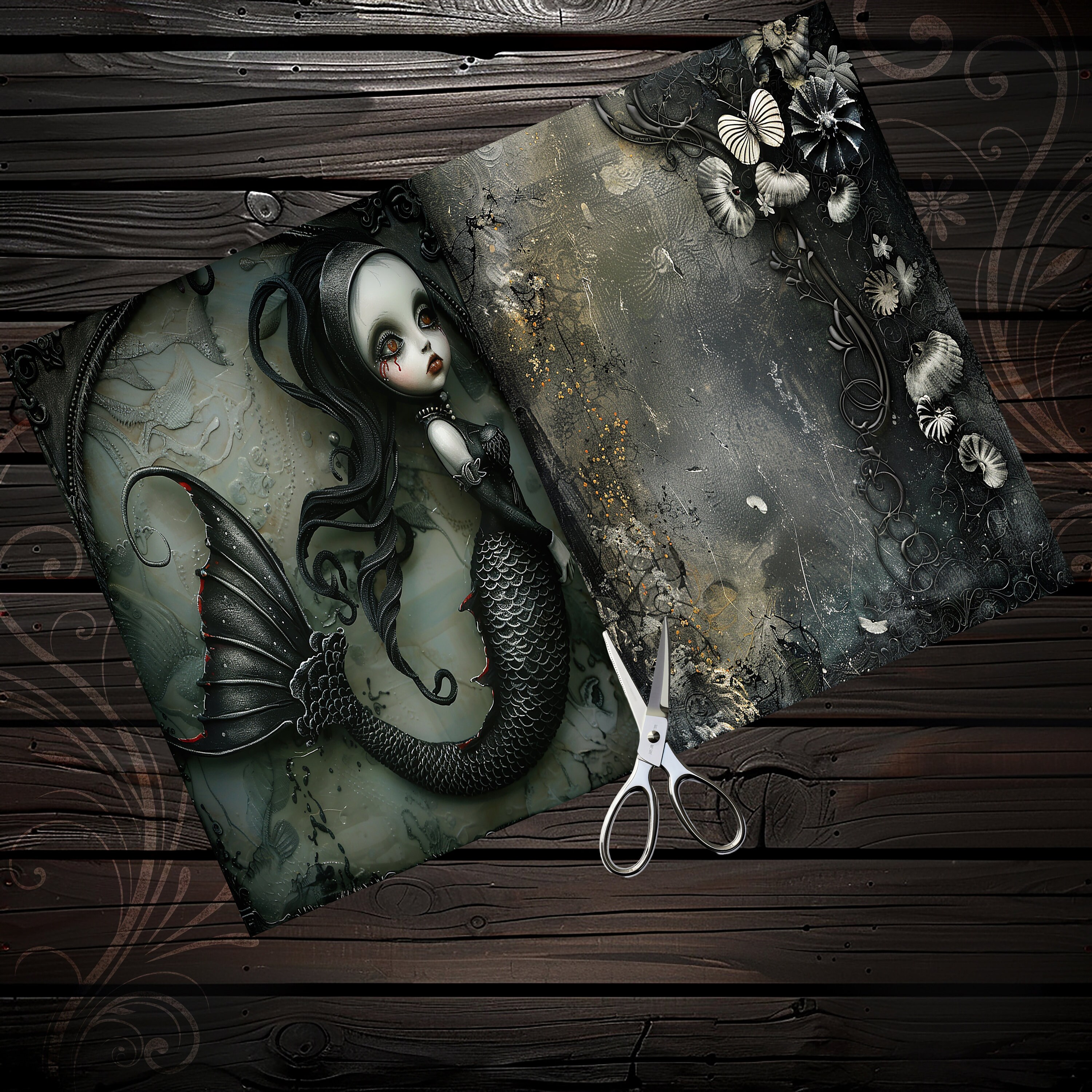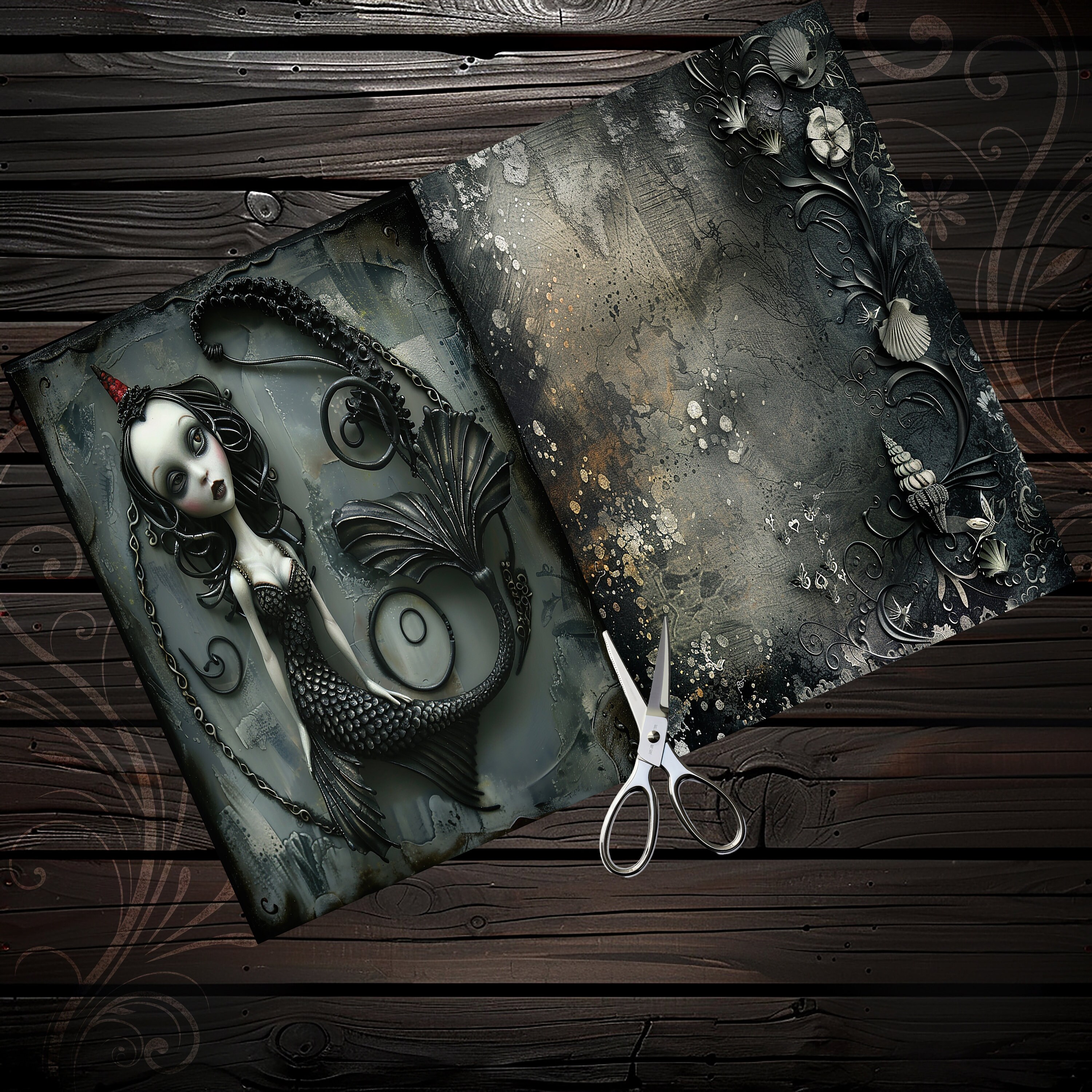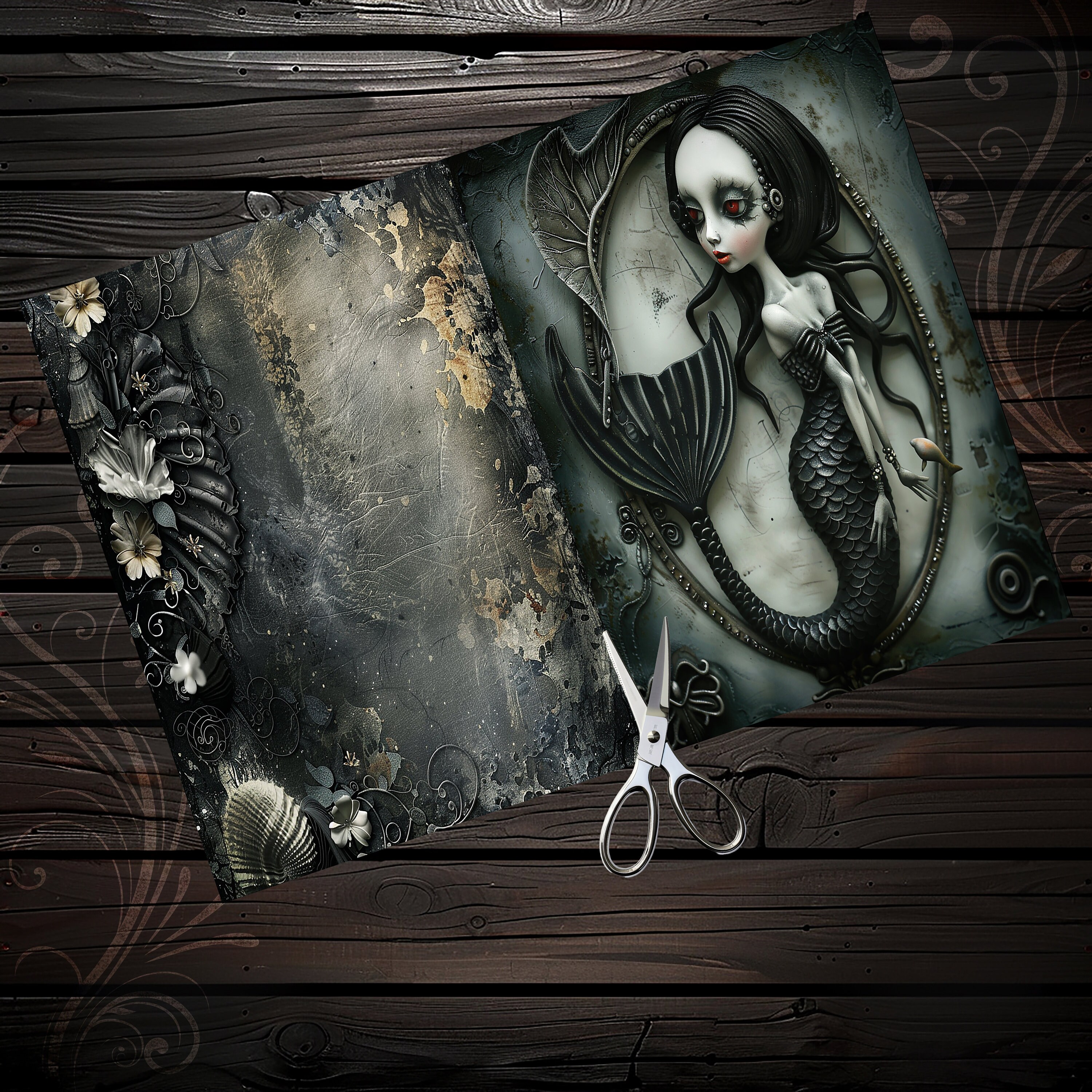 Scrapbook meermaid papers, scrapbook, scrapbooking kit, junk journal, diary, ephemera, memory album - digital paper