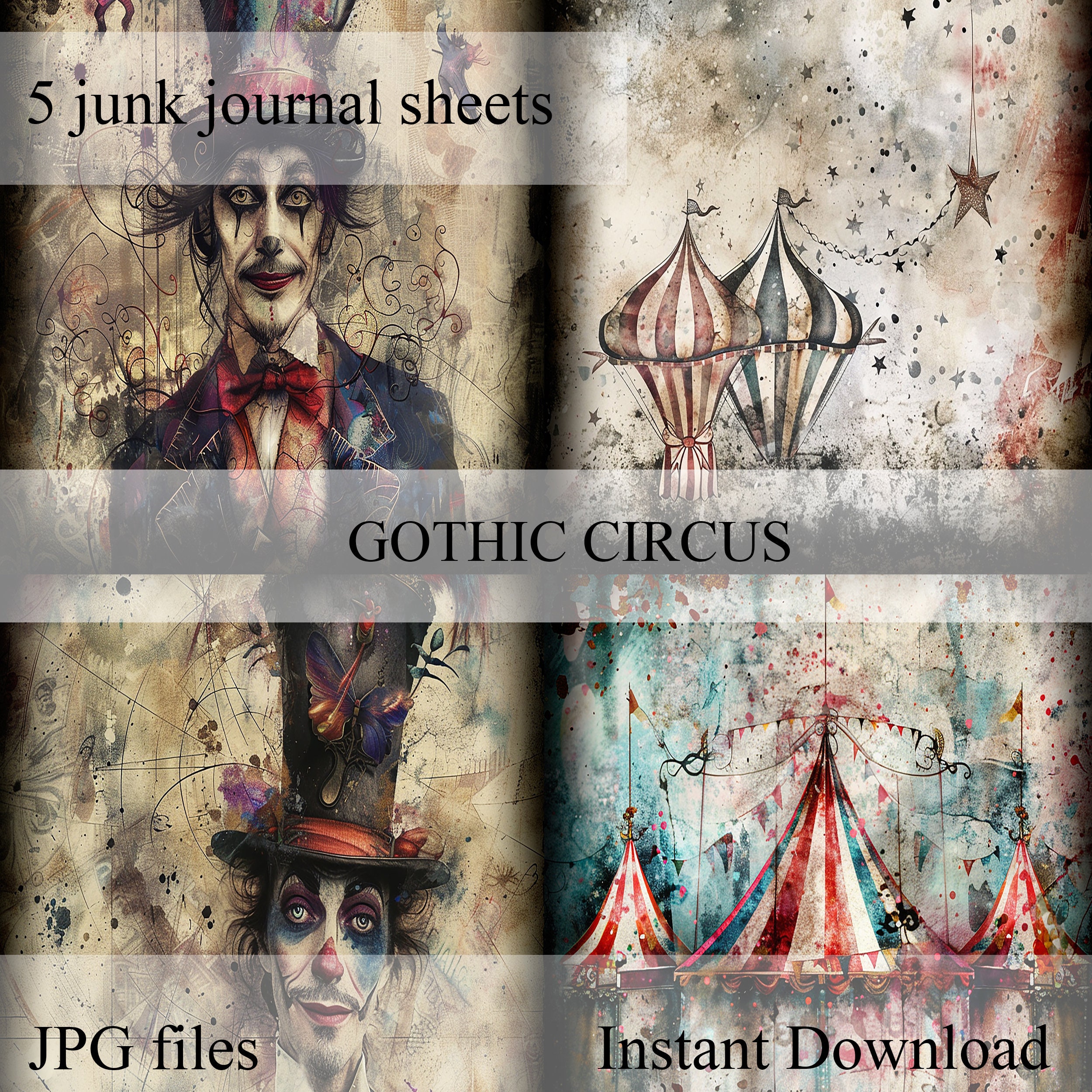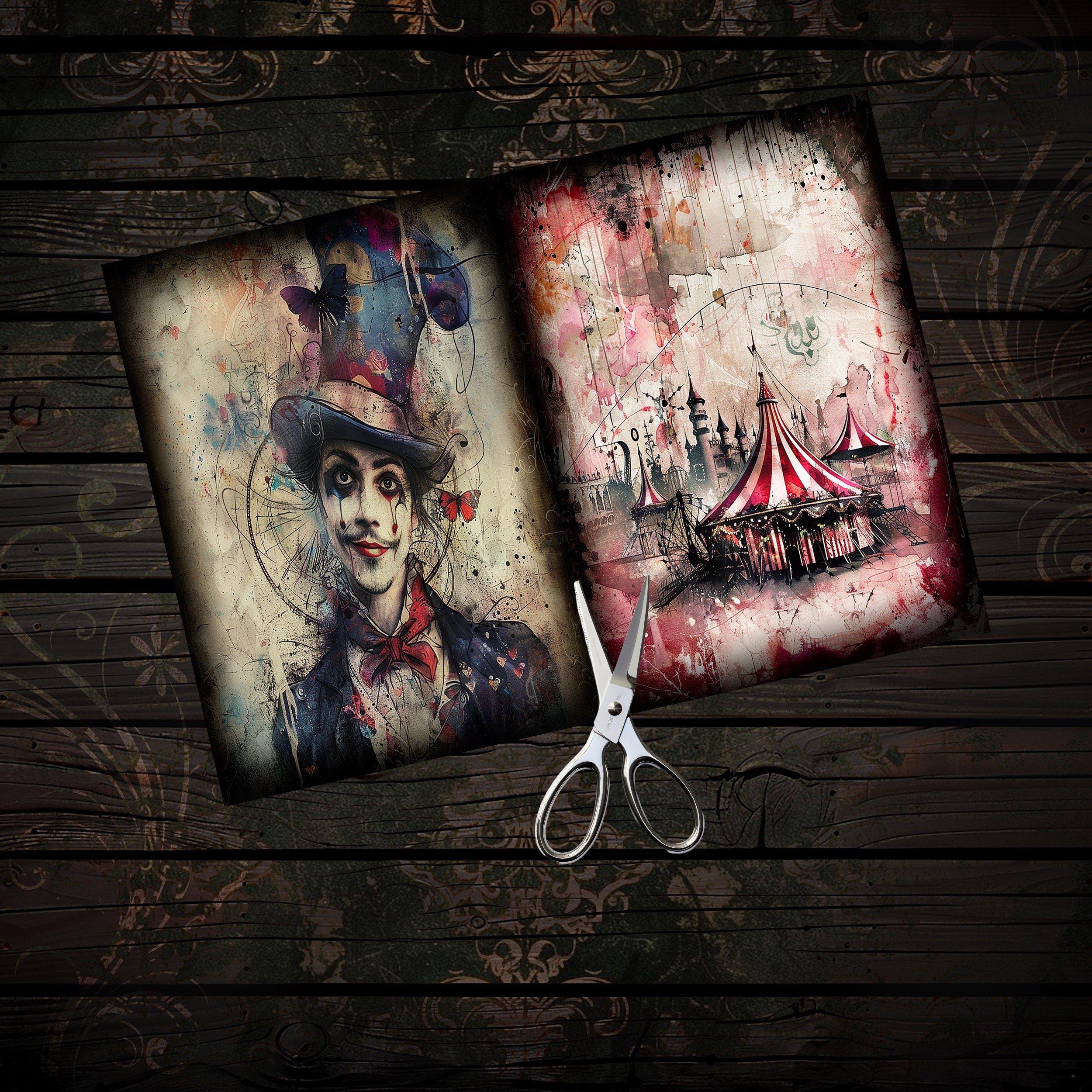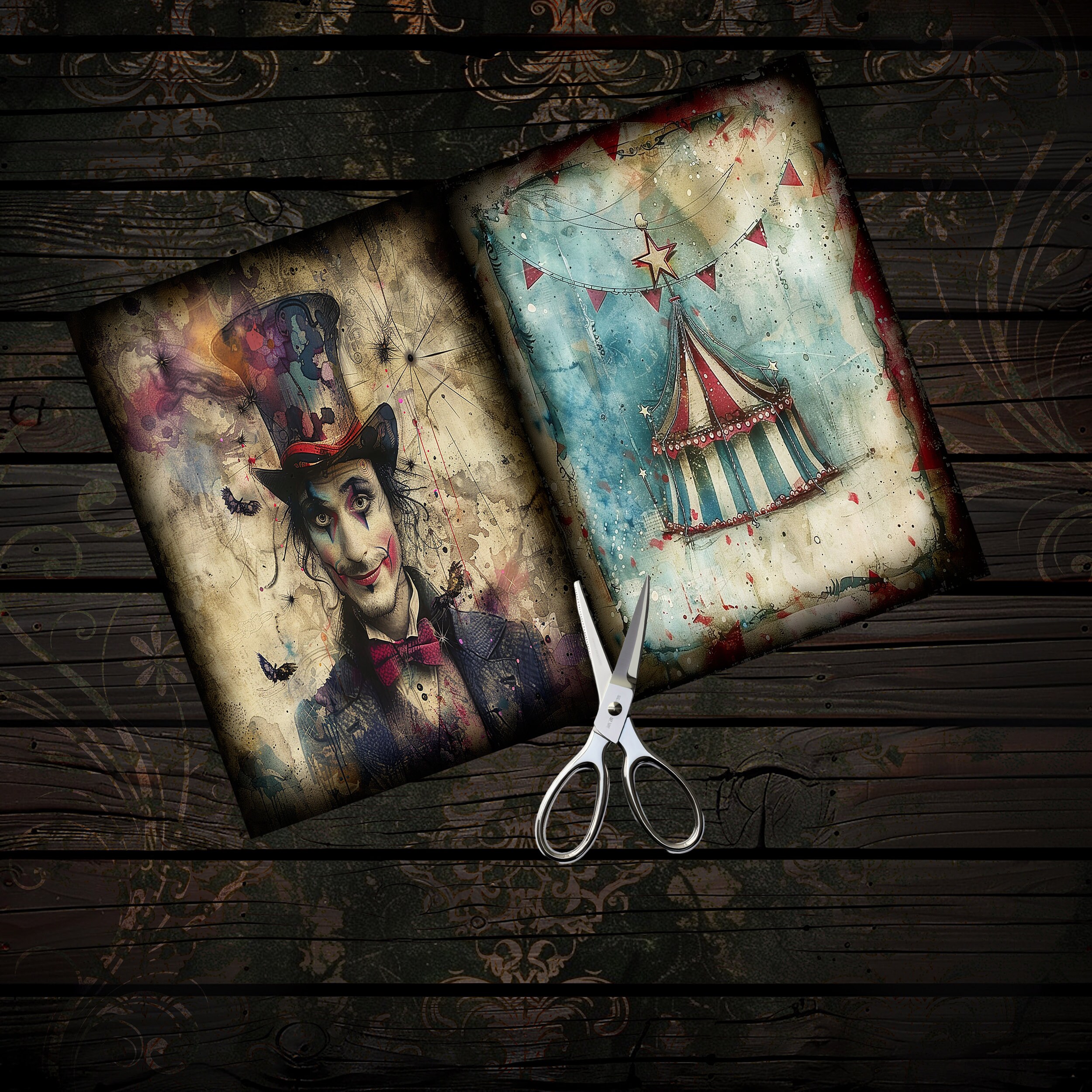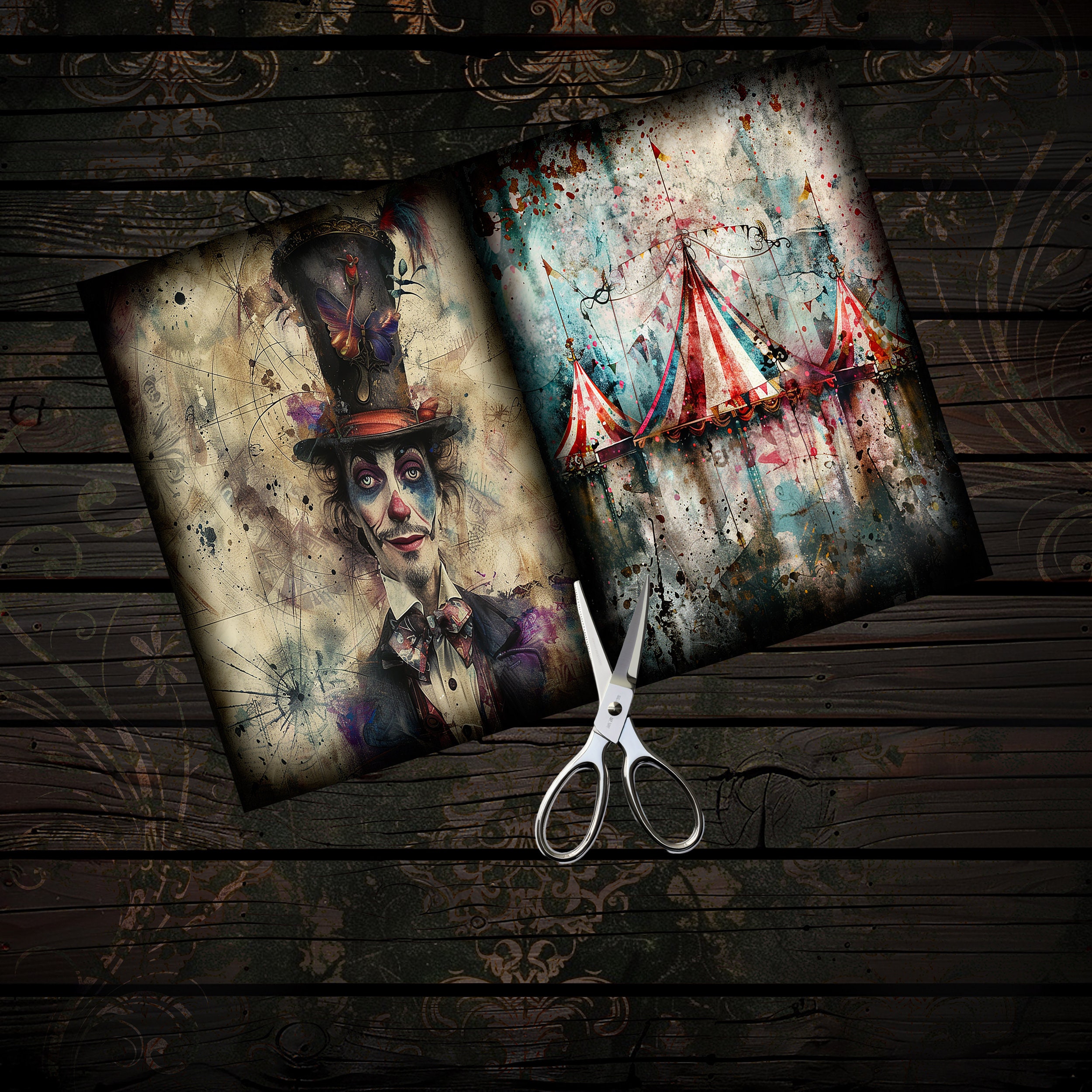 Junk Journal circus papers, digital paper, junk journal kit, scrapbook, scrapbooking, ephemera - gothic, shabby, grunge, diary papers