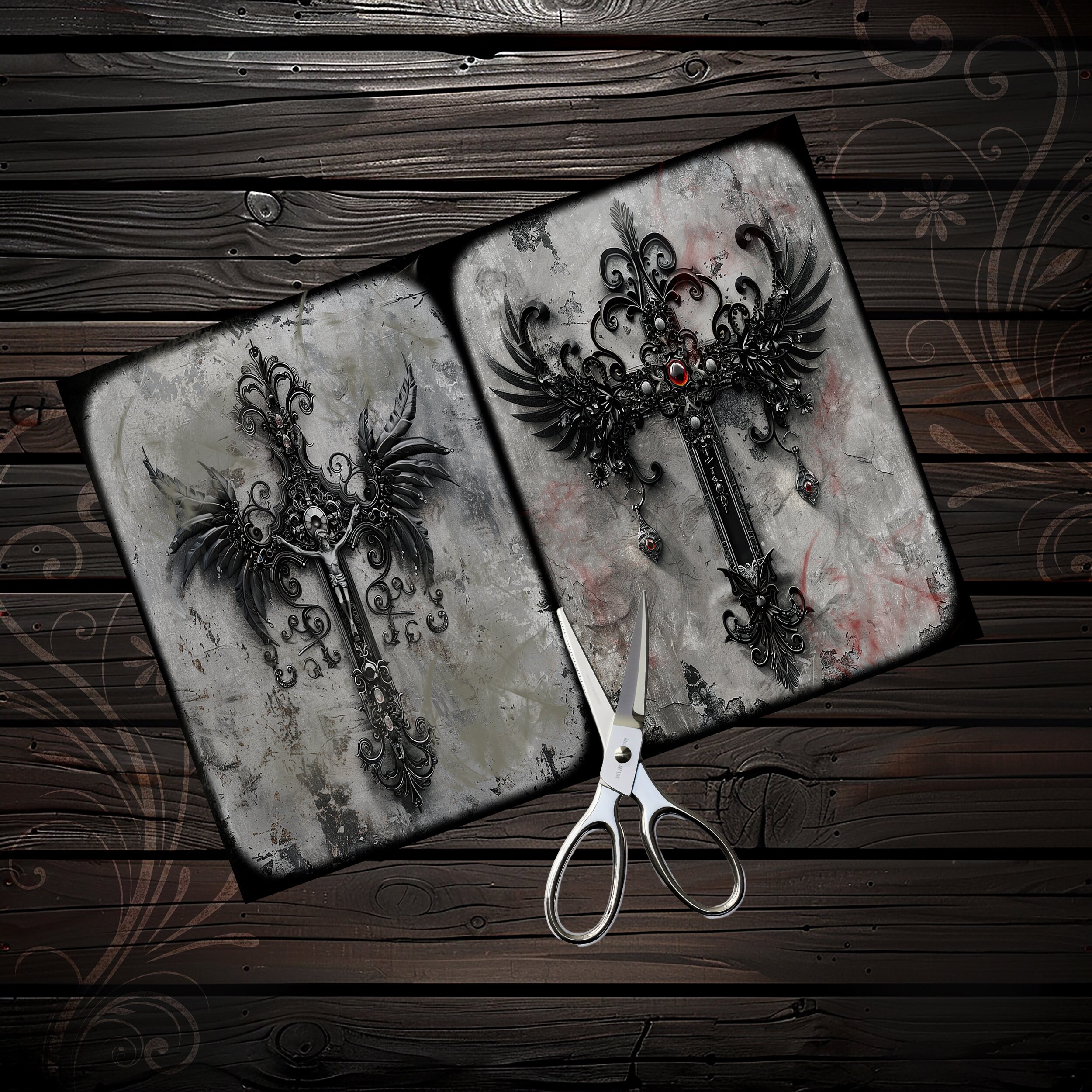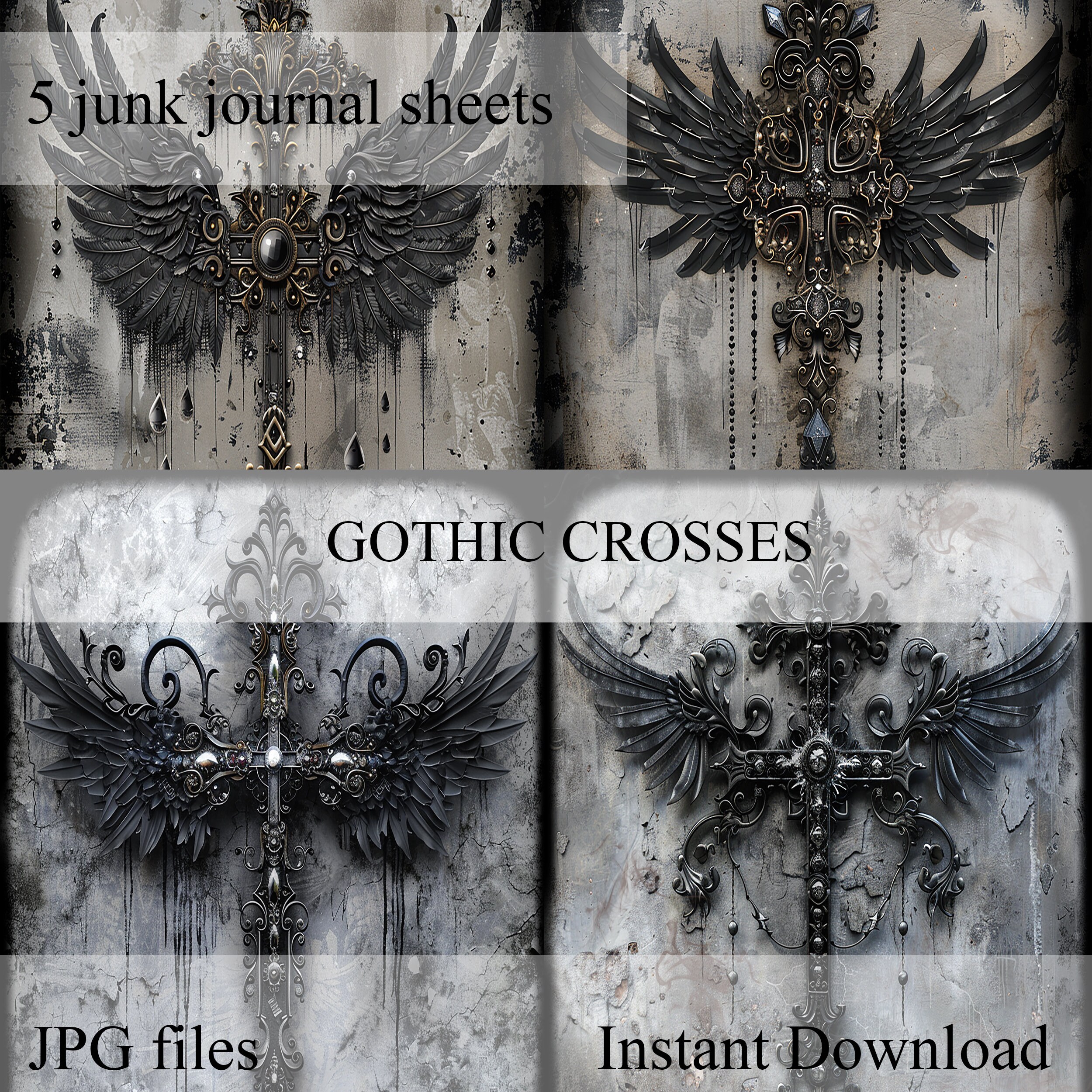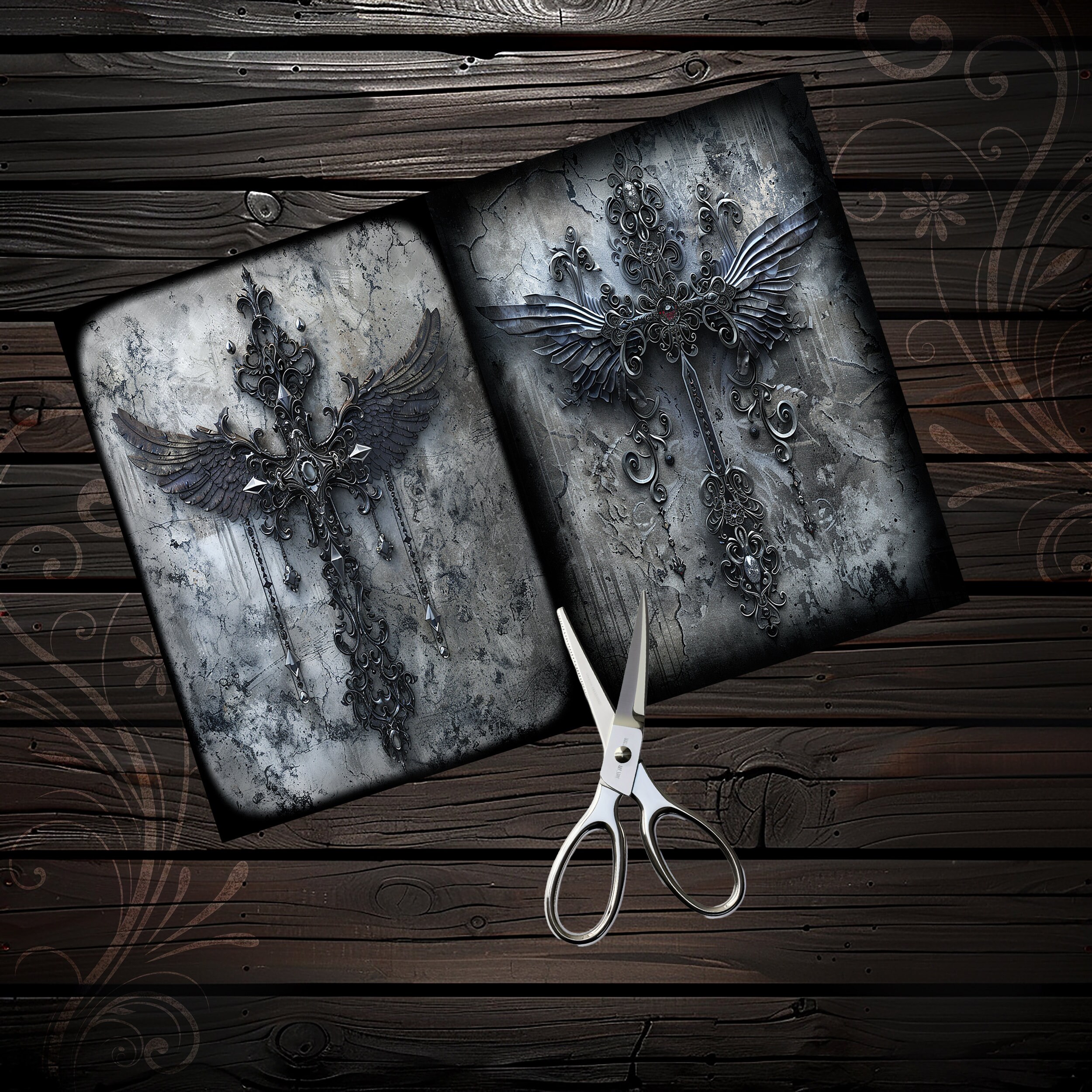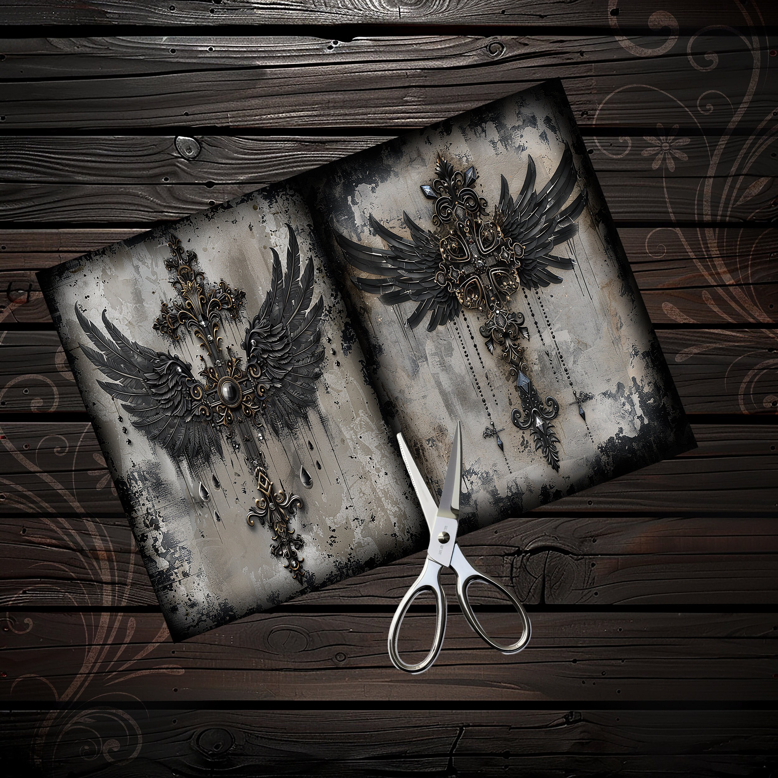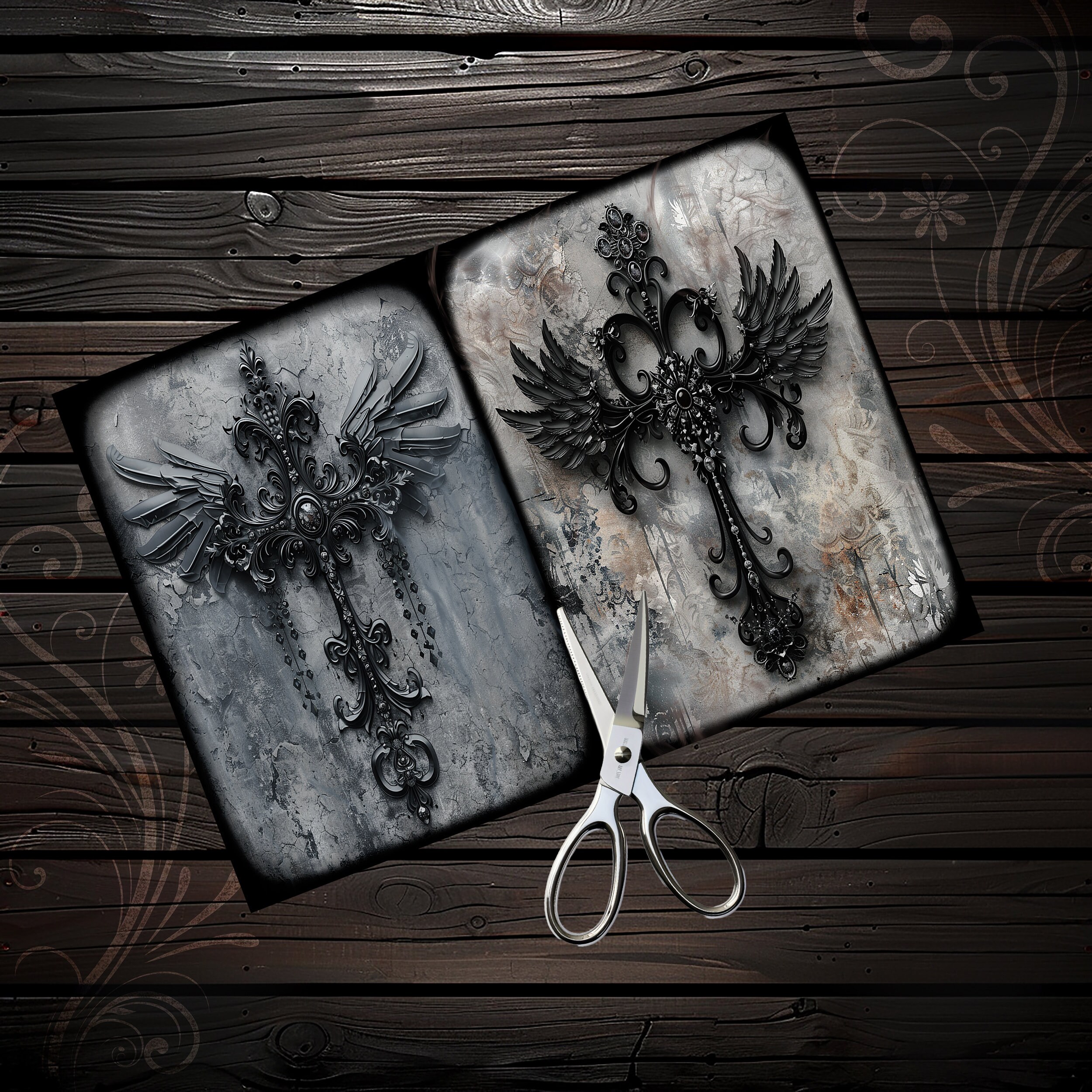 Scrapbook gothic crosses paper, scrapbook, scrapbooking, junk journal, diary, ephemera, printable paper, digital papers