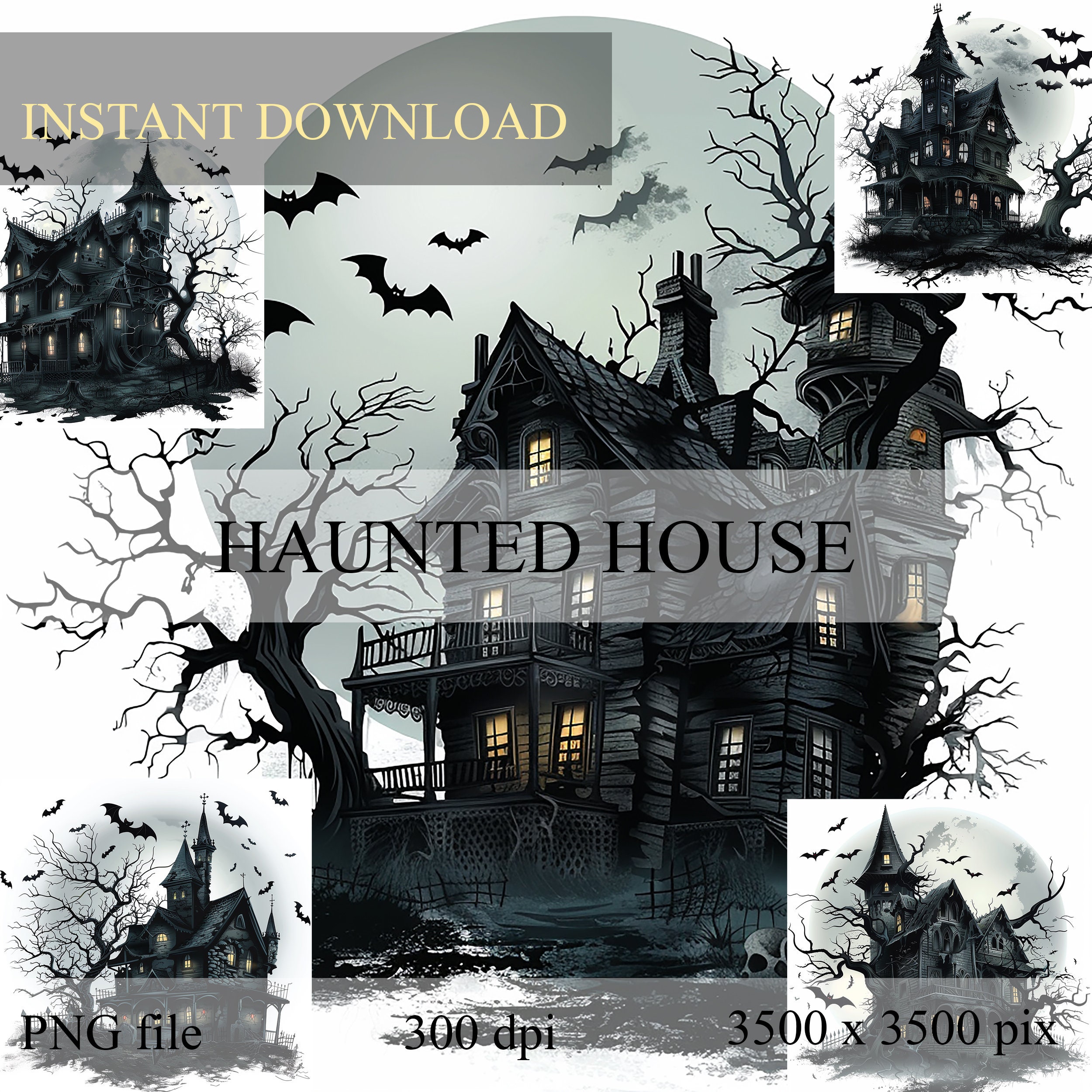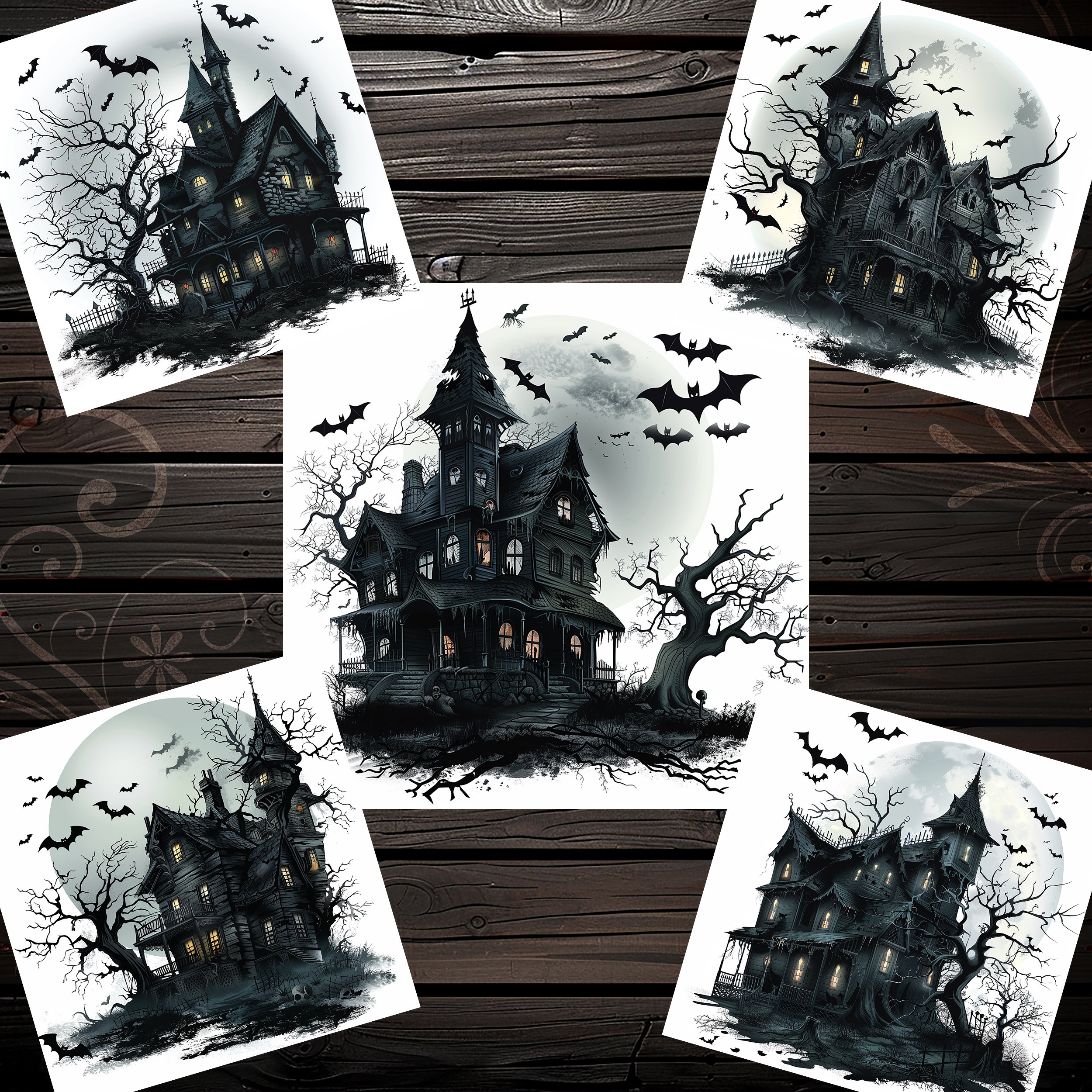 CLIPART 5 pcs "Haunted House" - collage, stickers, stickers, scrapbook, scrapbooking, junk journal, diary, gothic - digital download