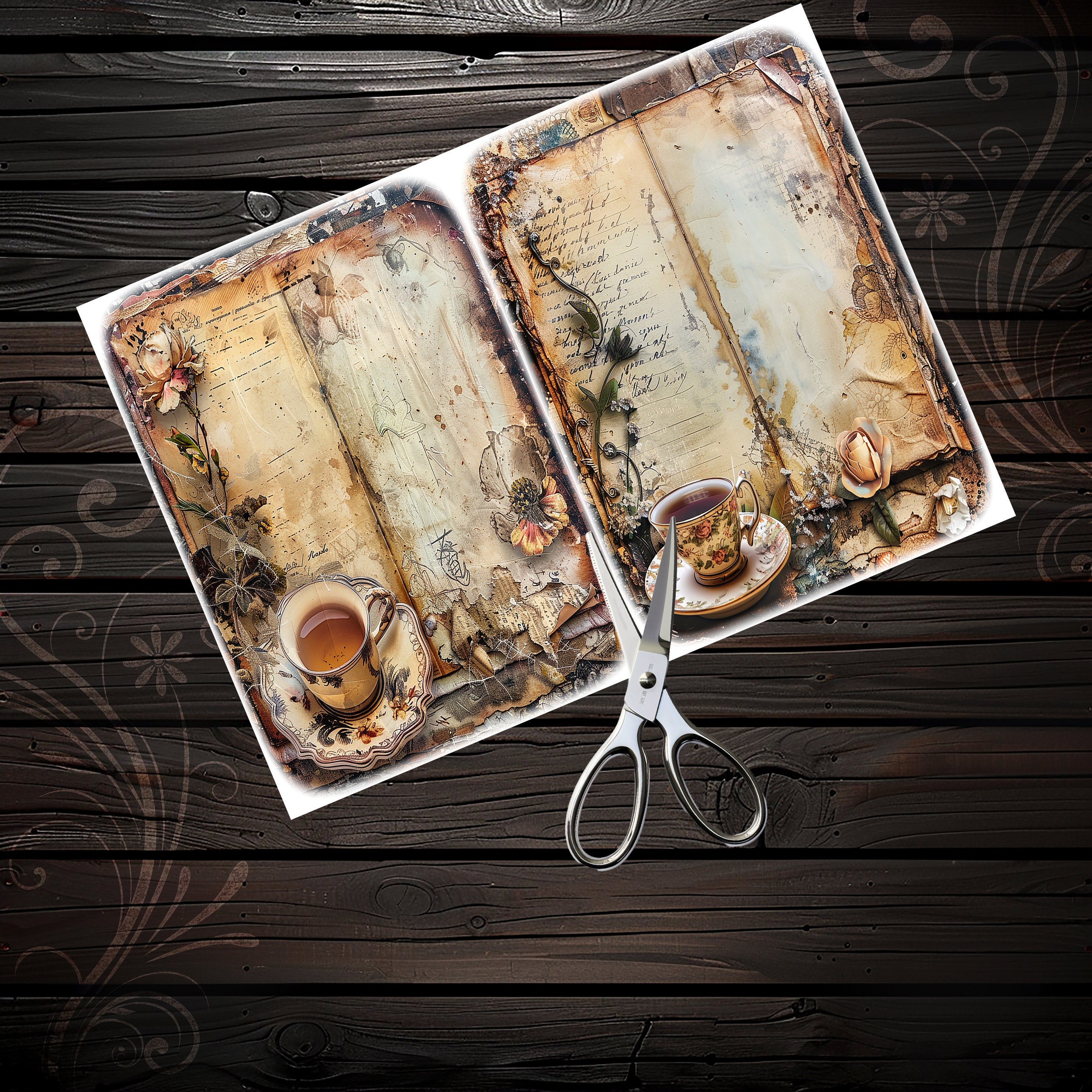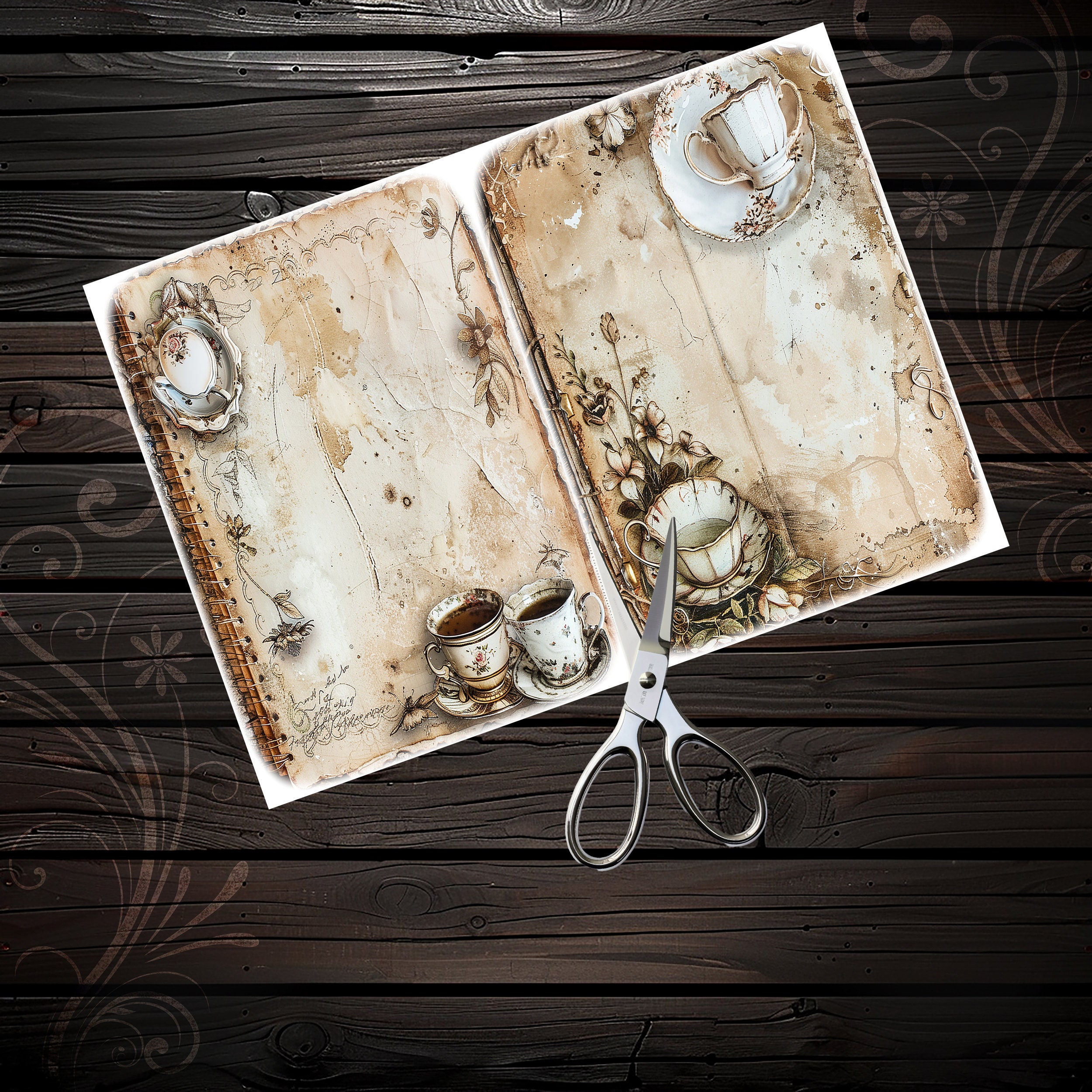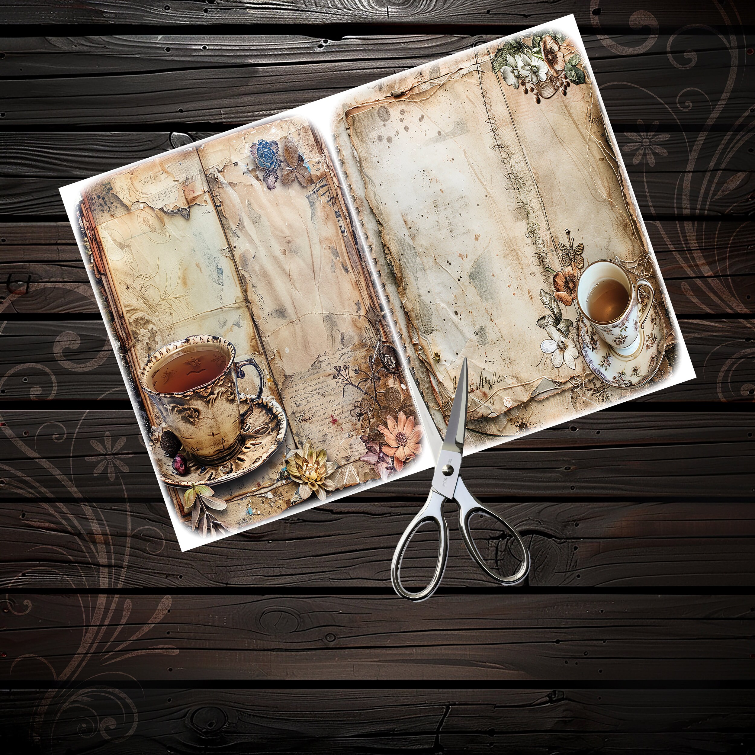 Shabby Vintage Tea Junk Journal, Junk Journal paper, Scrapbooking papier, Scrapbooking collage, Junk Journal pages, Junk Journal digital