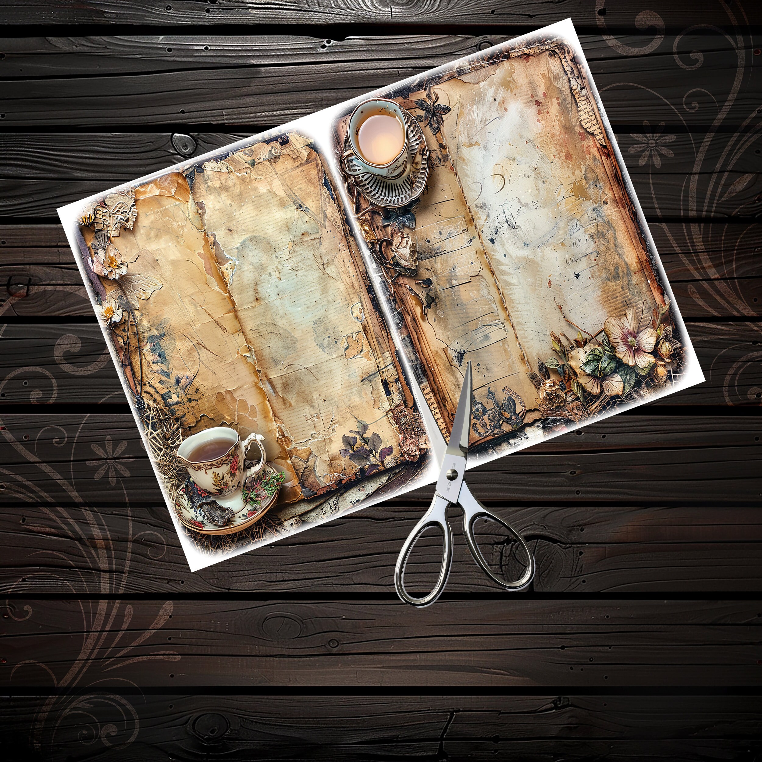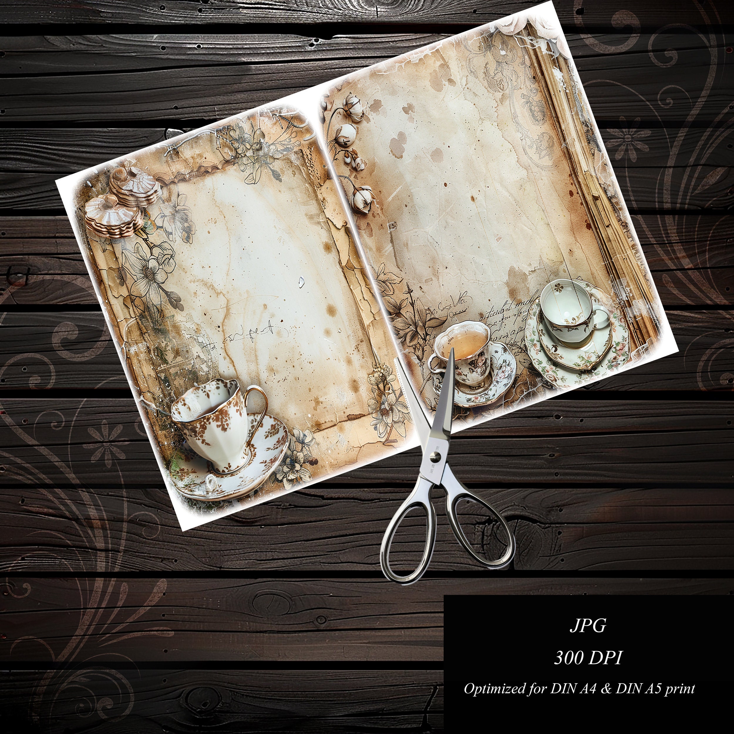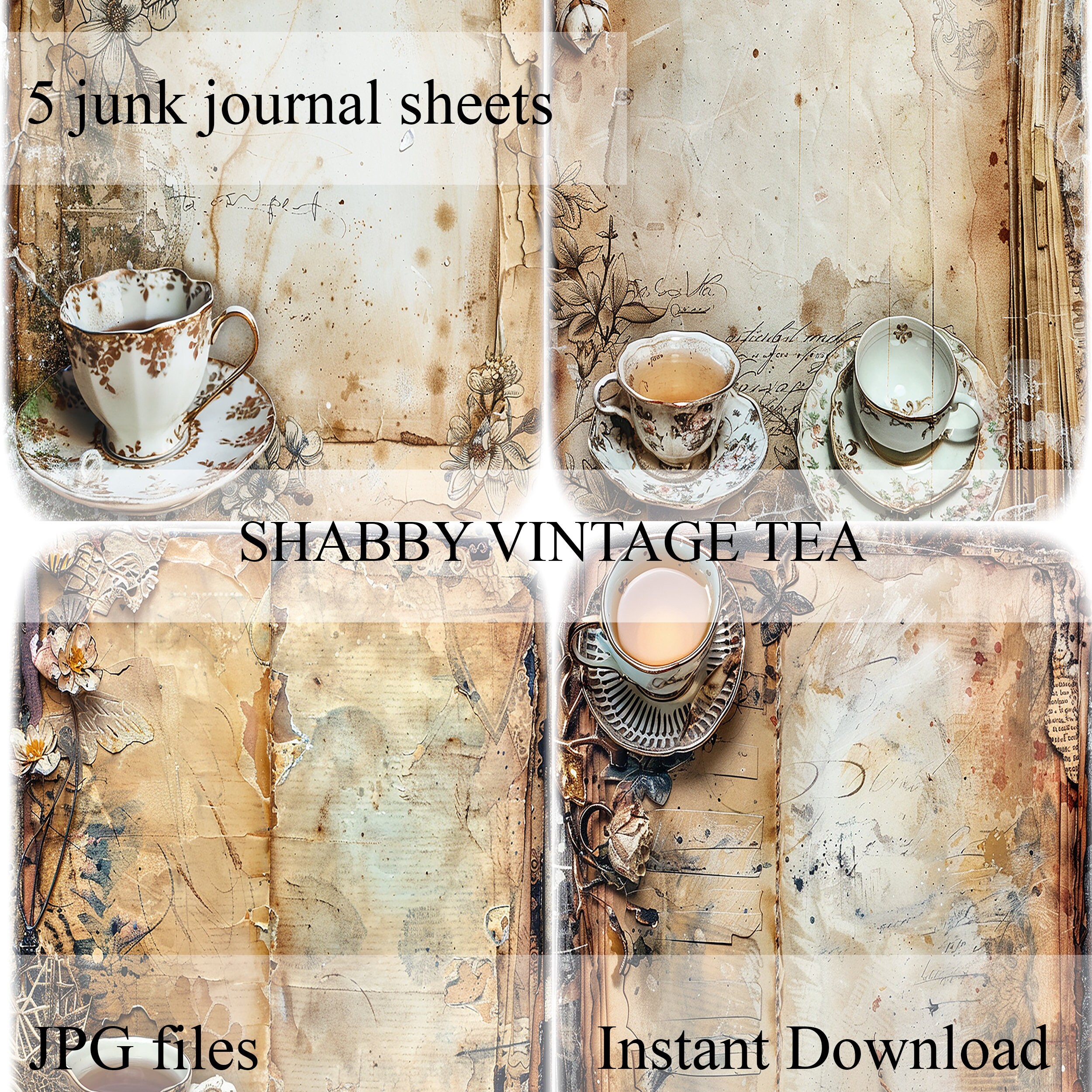 Shabby Vintage Tea Junk Journal, Junk Journal paper, Scrapbooking papier, Scrapbooking collage, Junk Journal pages, Junk Journal digital