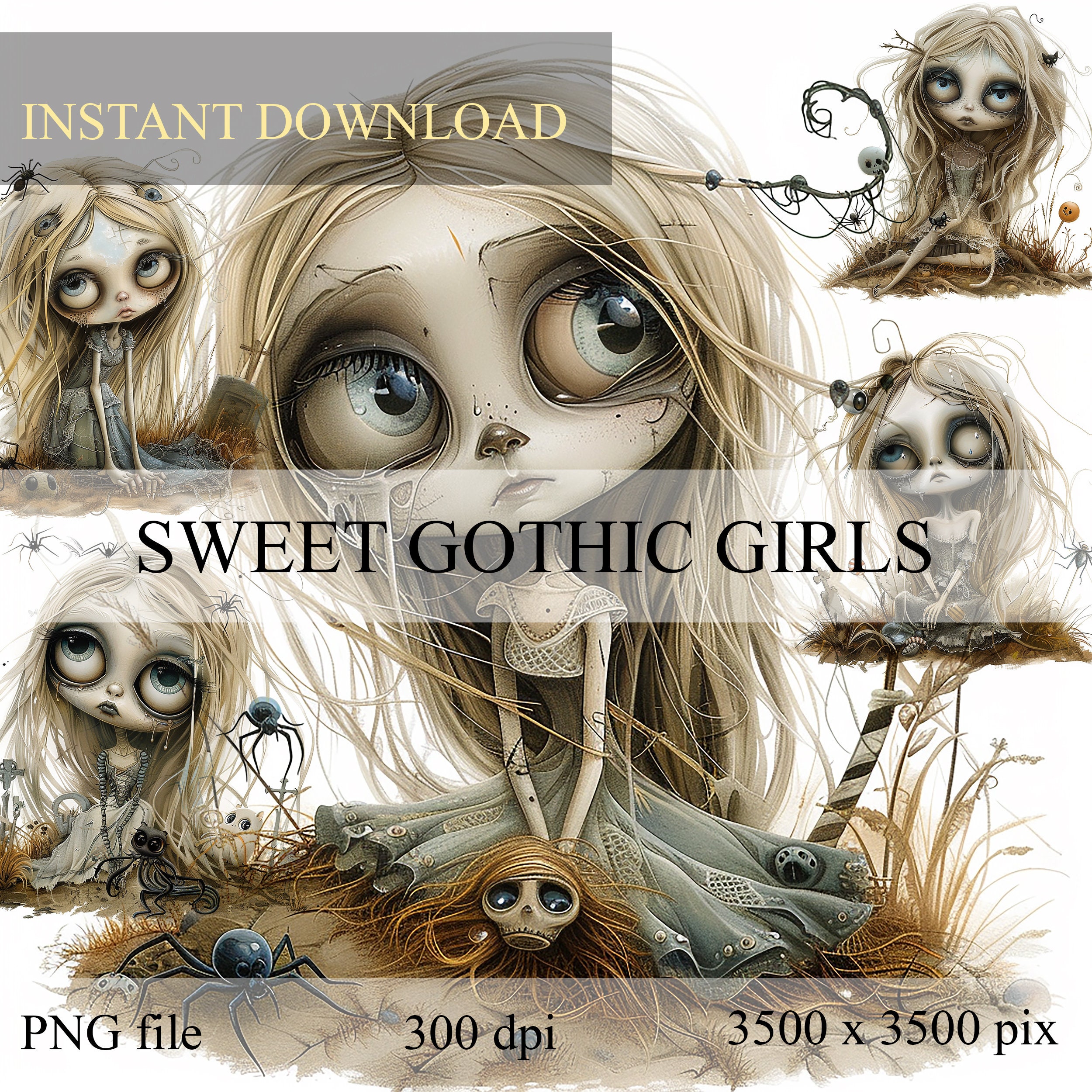 Clipart cute sweet gothic girls junk journal paper, scrapbook, scrapbooking kit, fantasy, digital paper