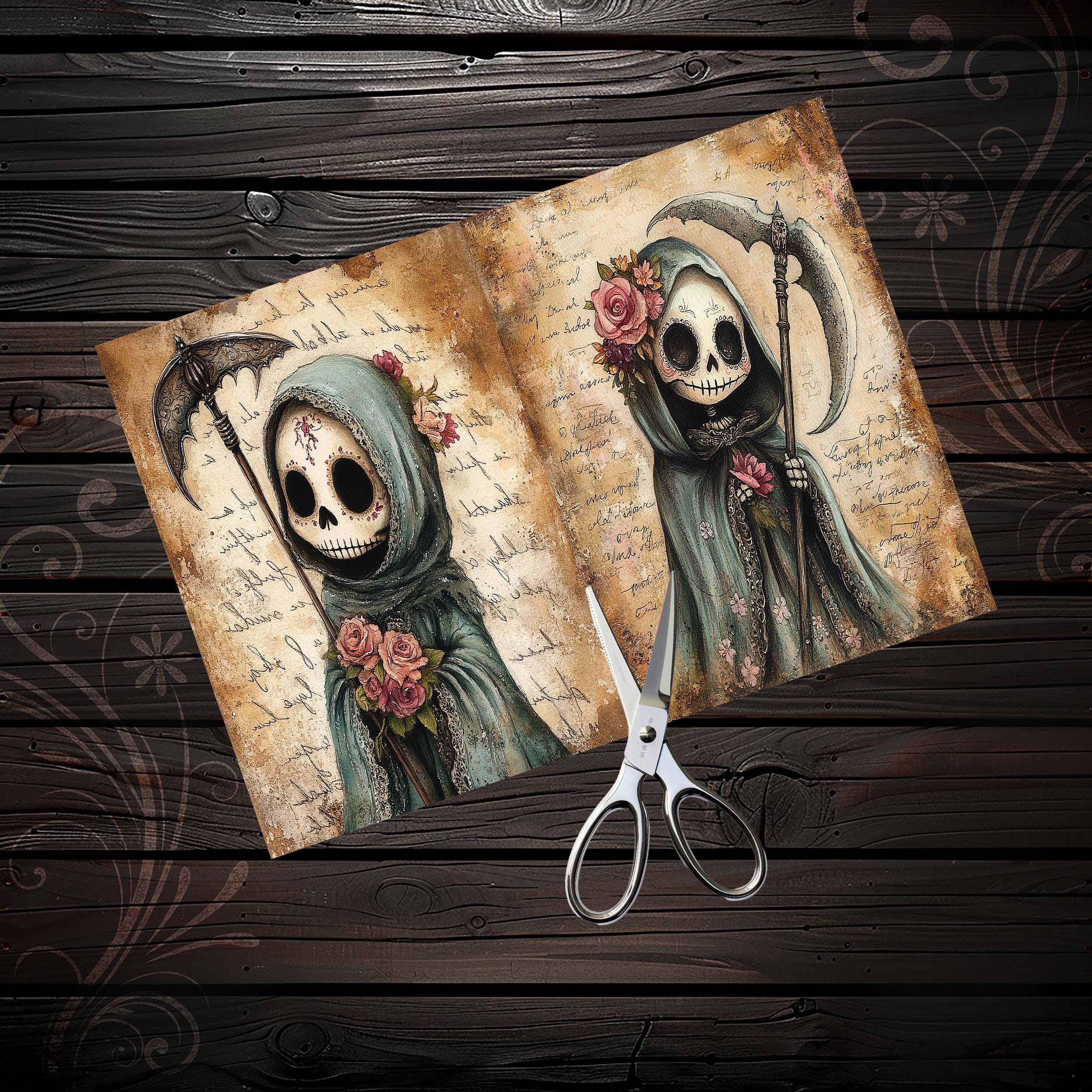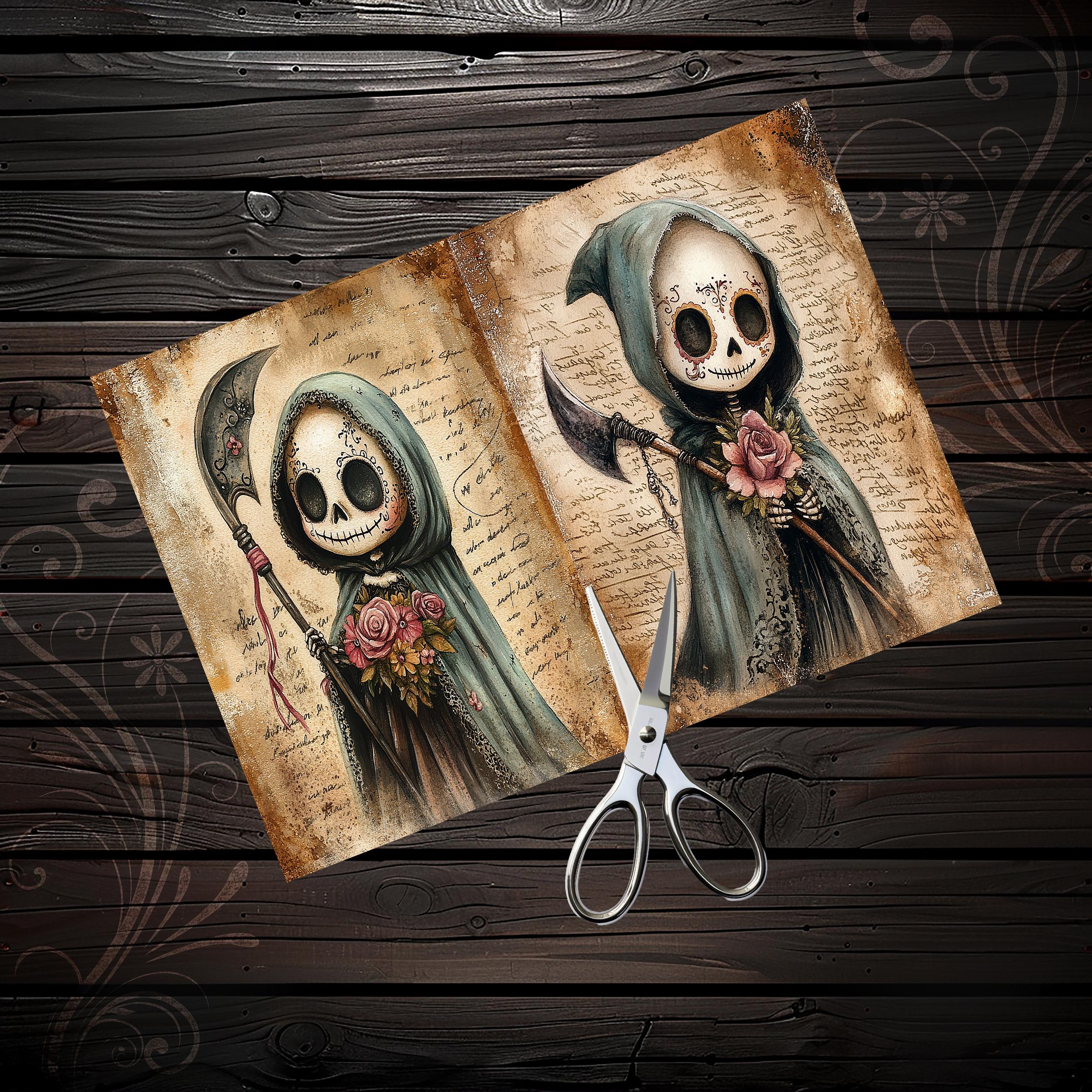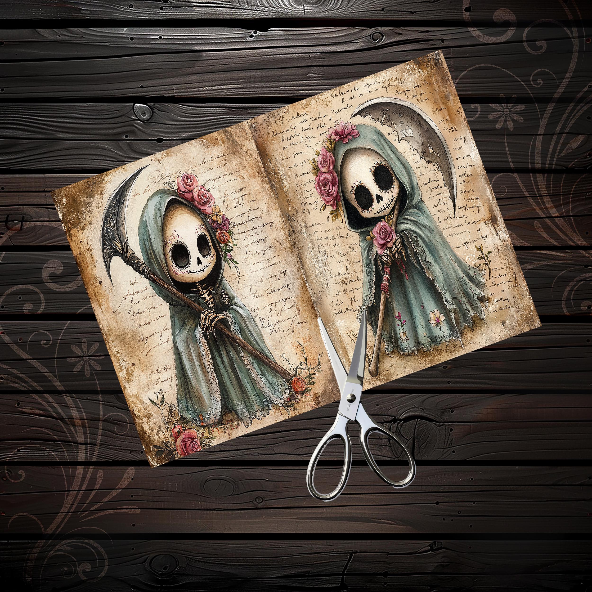 Scrapbook "grim reaper" printable papers, scrapbook, scrapbooking kit, junk journal, digital paper, ephemera, cute reaper, gothic
