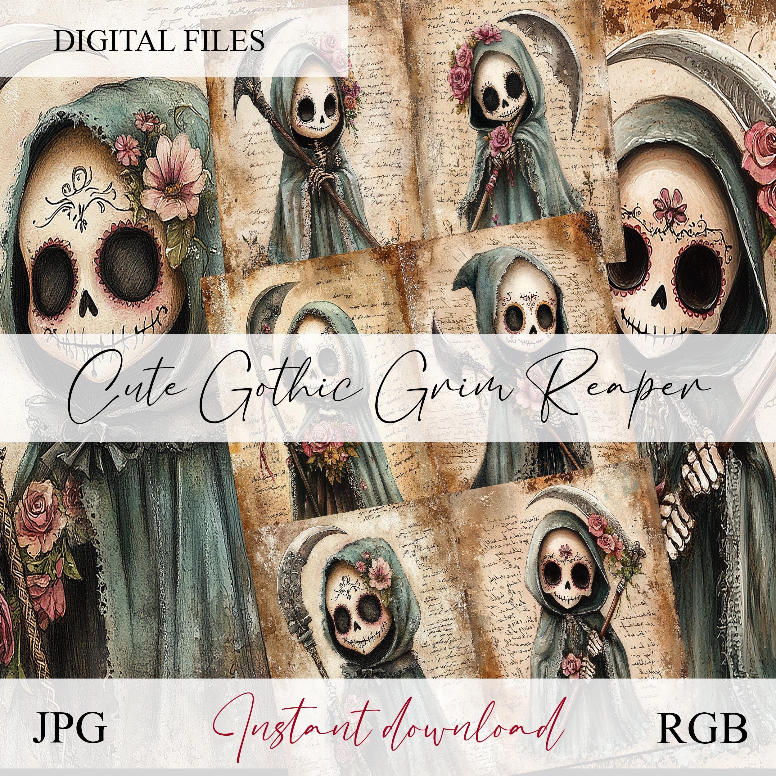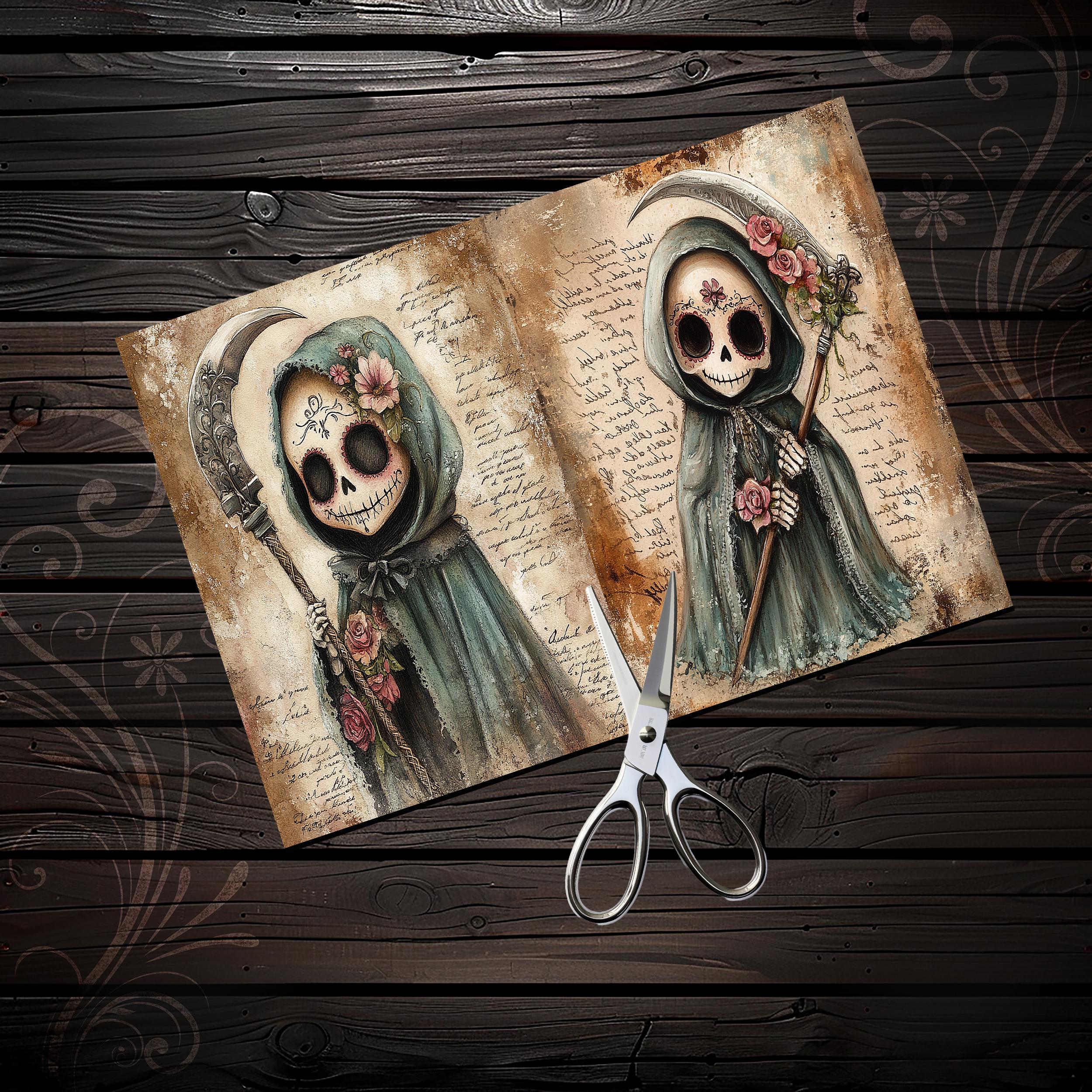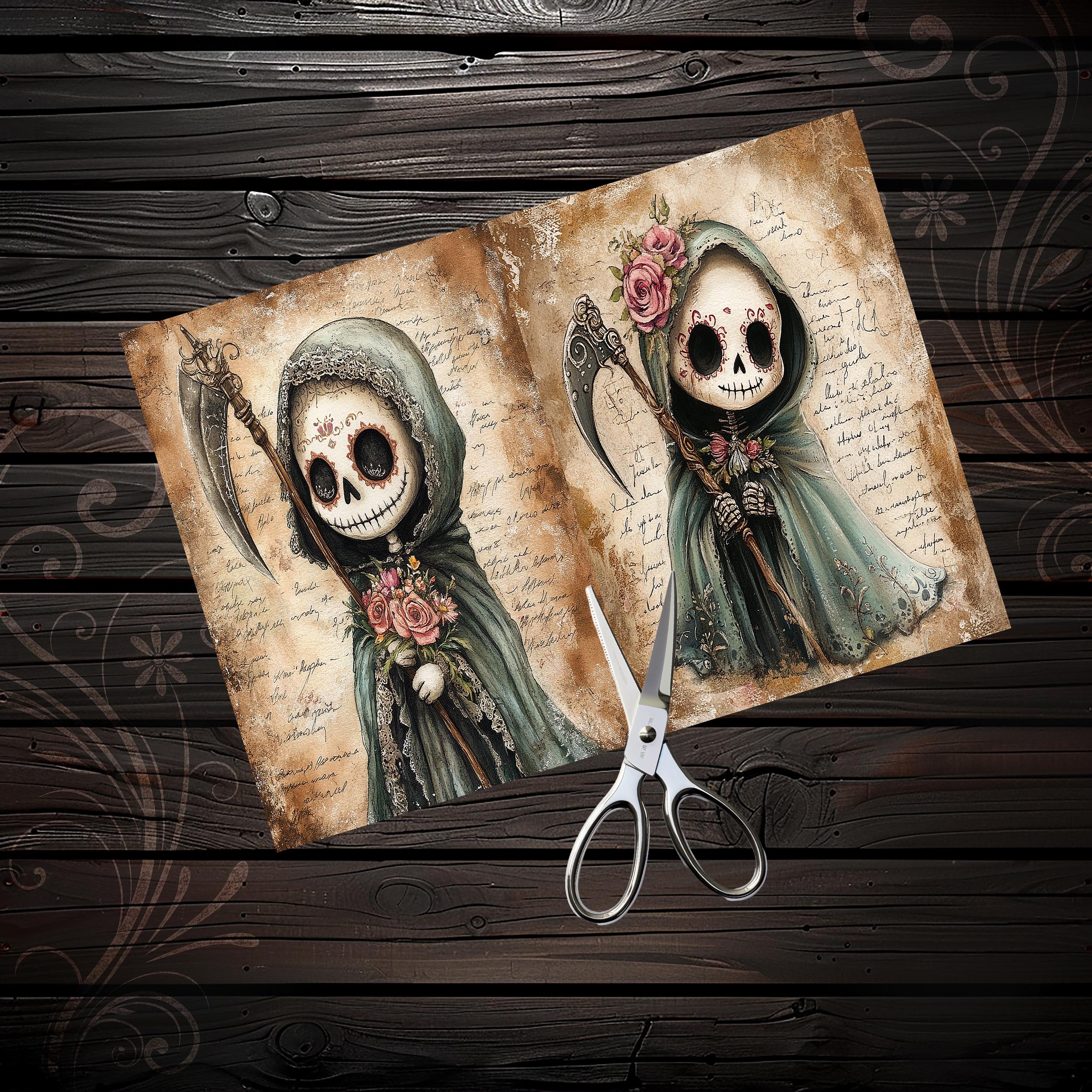 Scrapbook "grim reaper" printable papers, scrapbook, scrapbooking kit, junk journal, digital paper, ephemera, cute reaper, gothic
