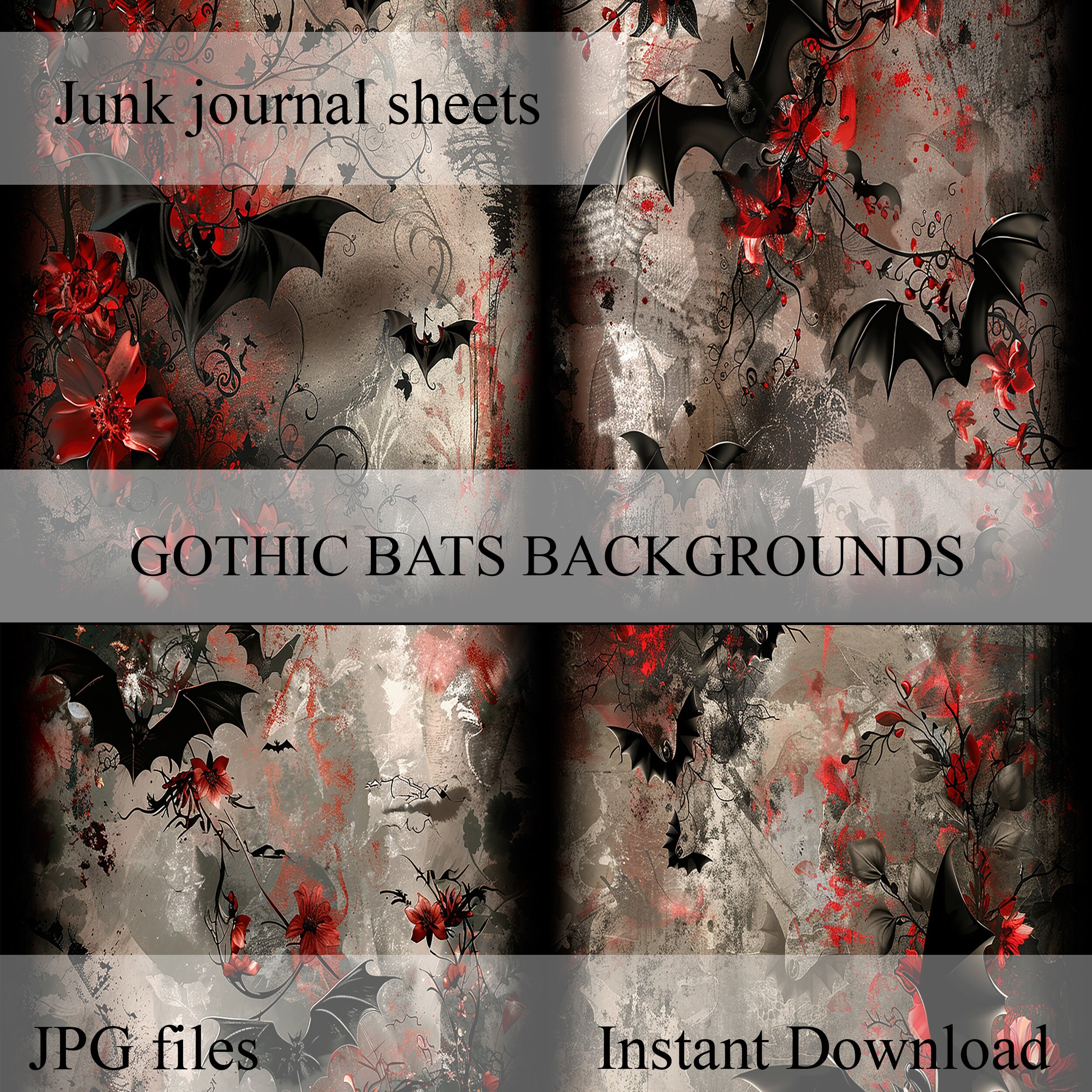 Gothic bats junk journal, scrapbook, scrapbooking kit, junk journal paper, junk journal pages, scrapbooking gothic, digital, dark, fantasy