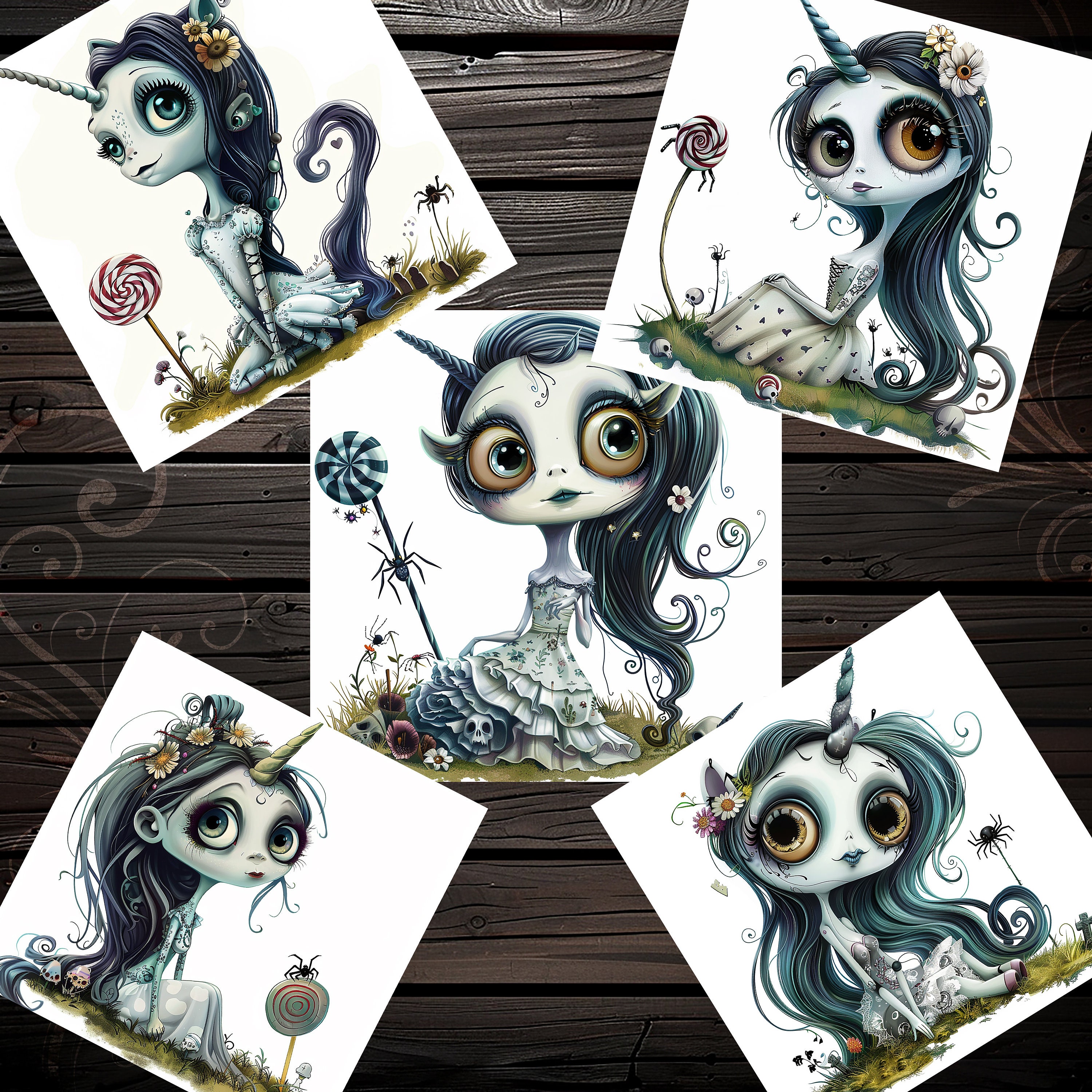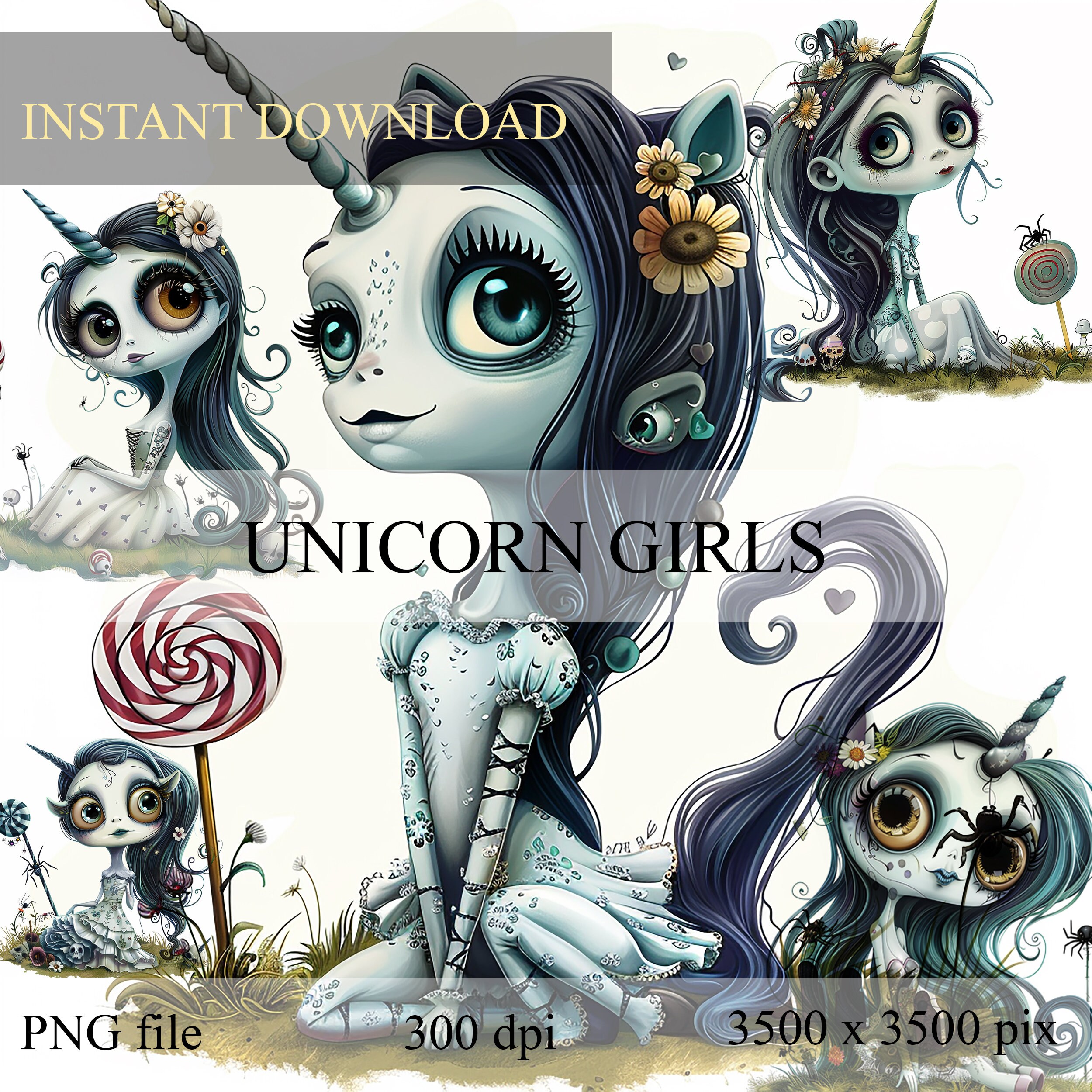 Cliparts cute fantasy unicorn sticker papers, Junk Journal Kit, Scrapbooking set, Scrapbook, Ephemera, gothic