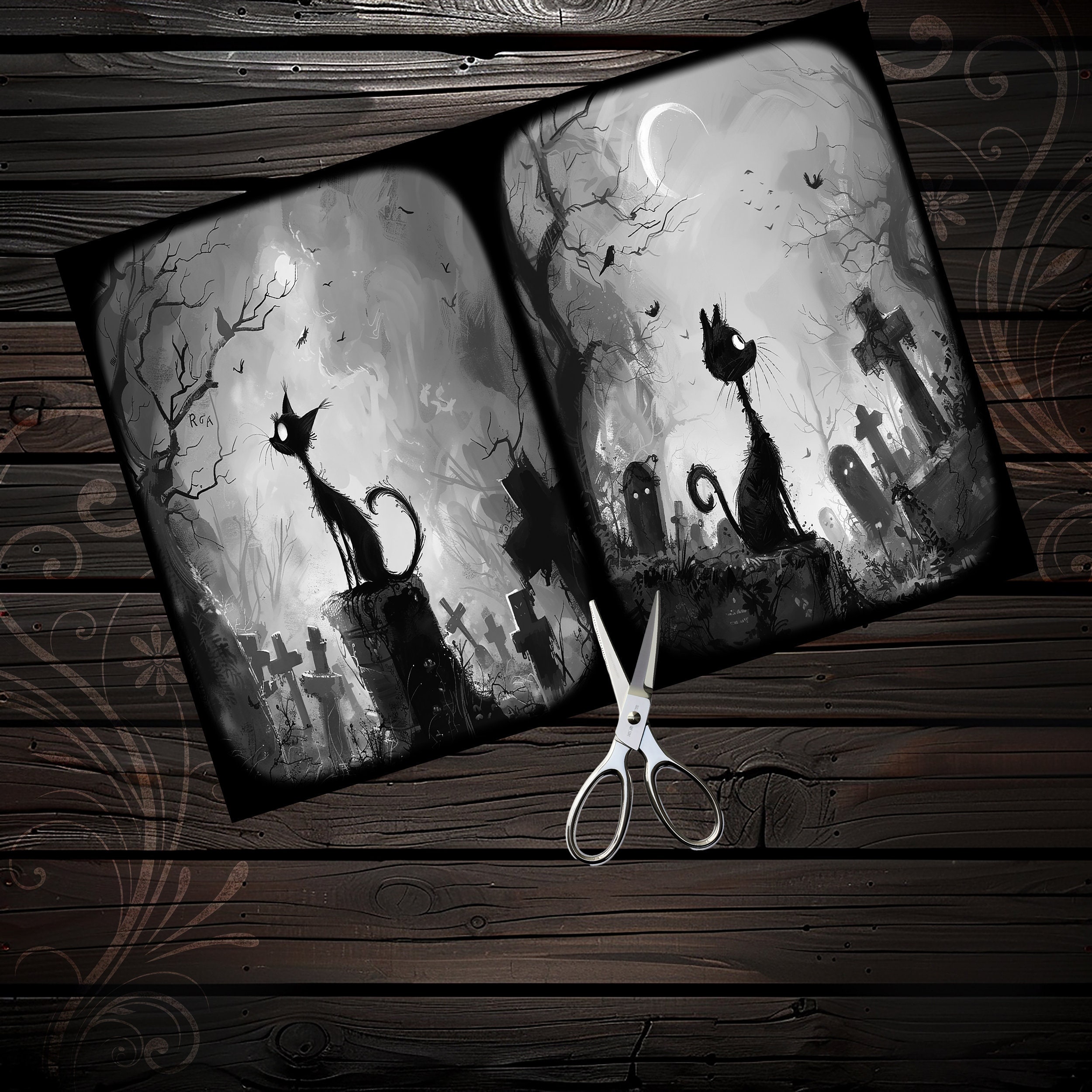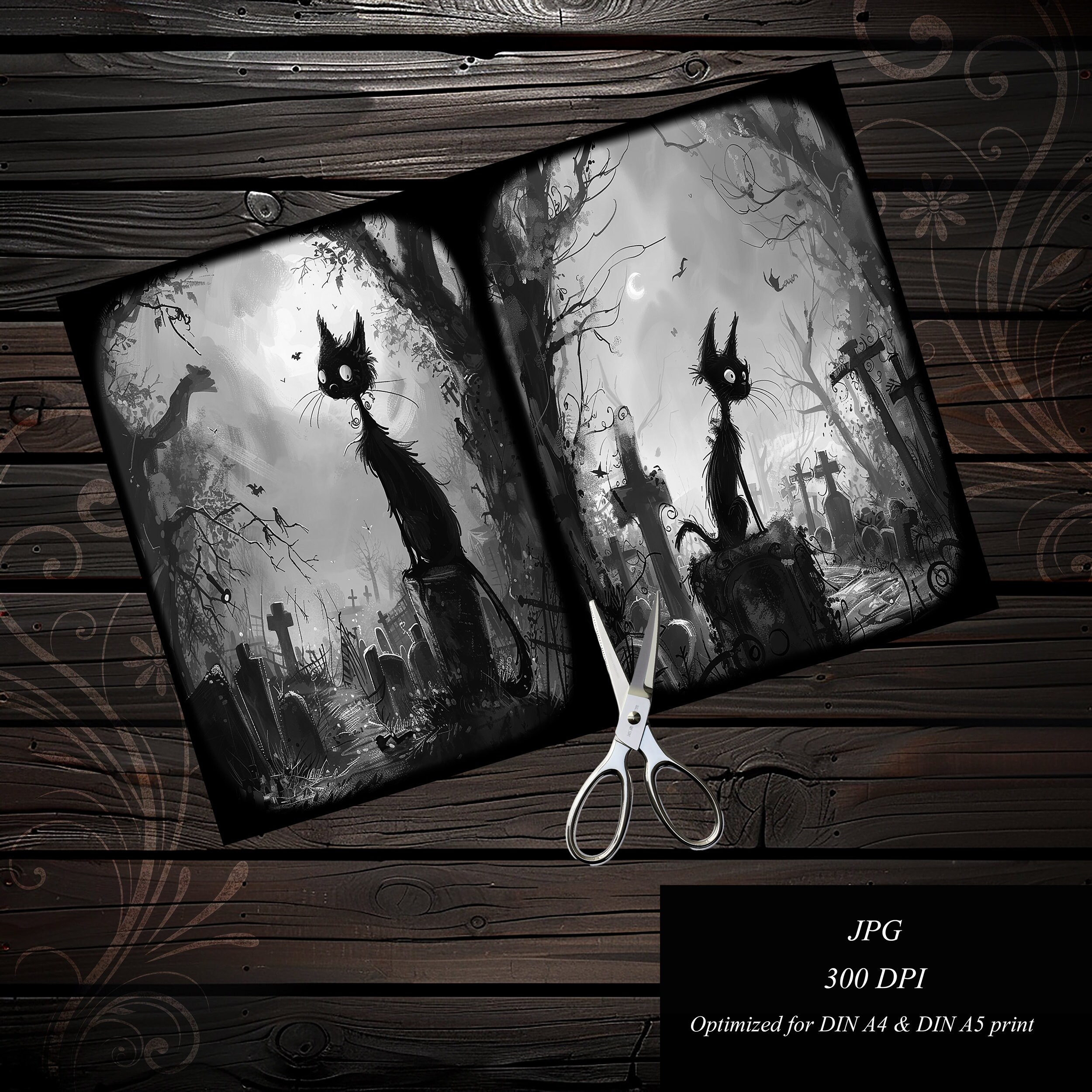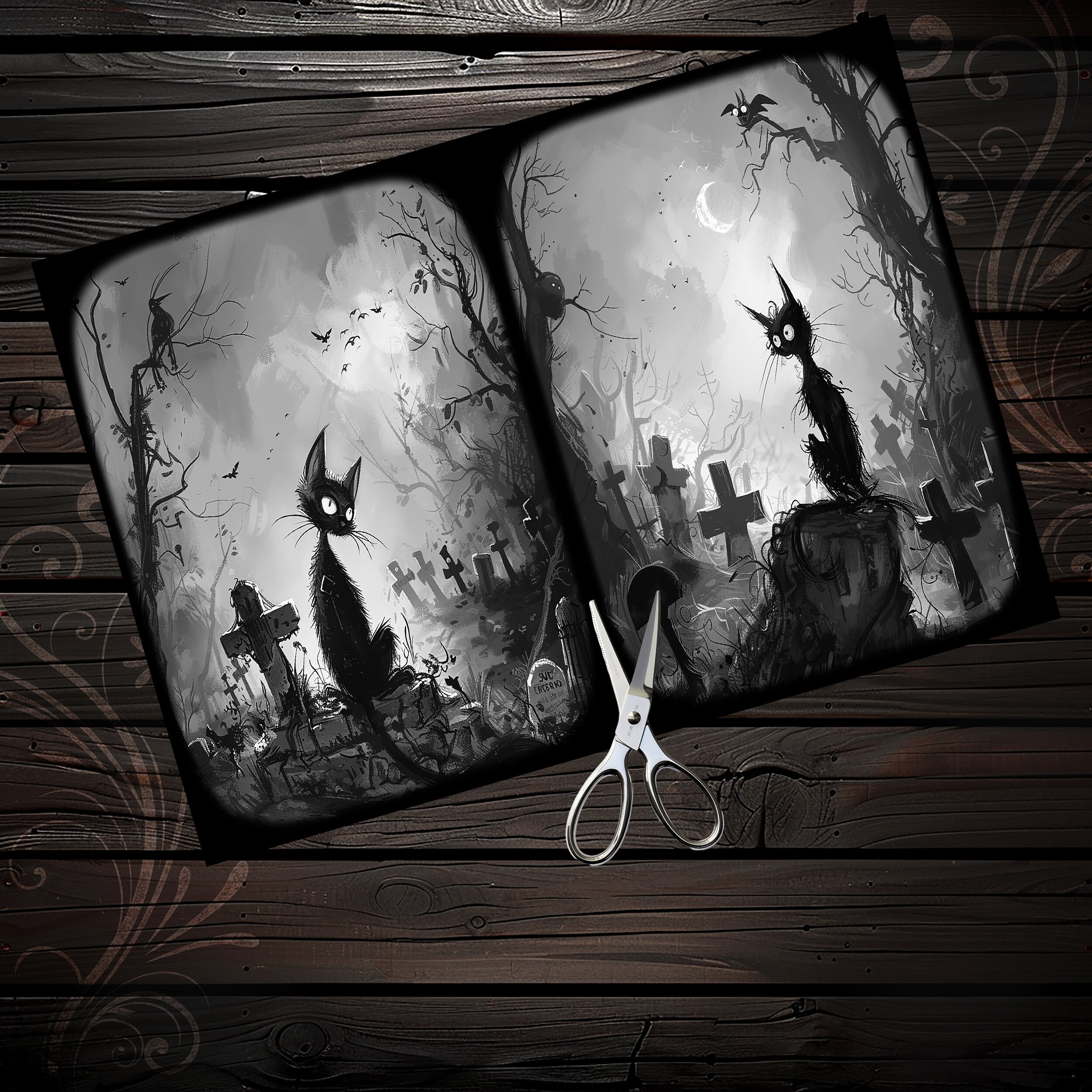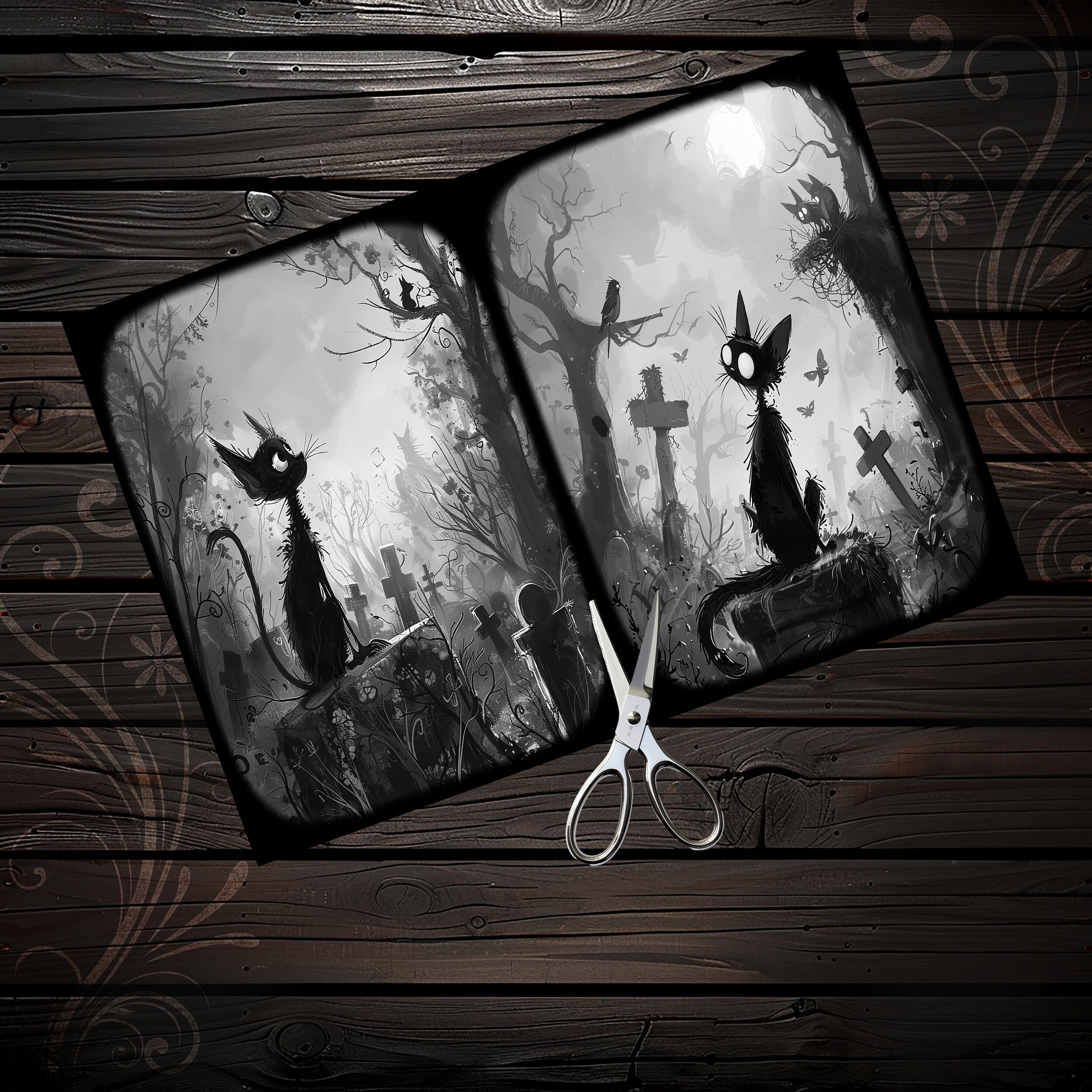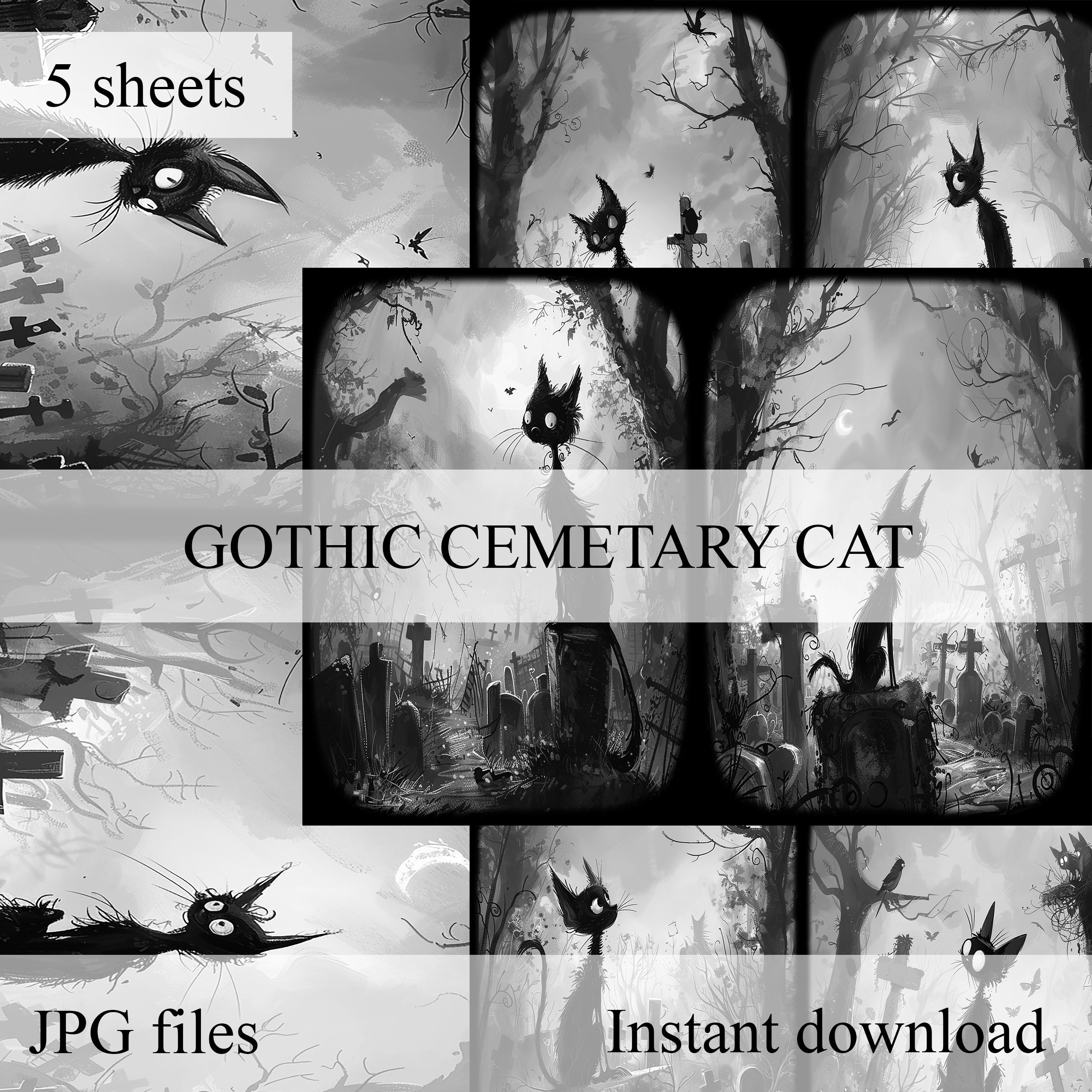 Junk Journal gothic cat, junk journal pages, scrapbooking collage, junk journal paper, scrapbook collage, digital