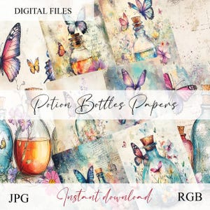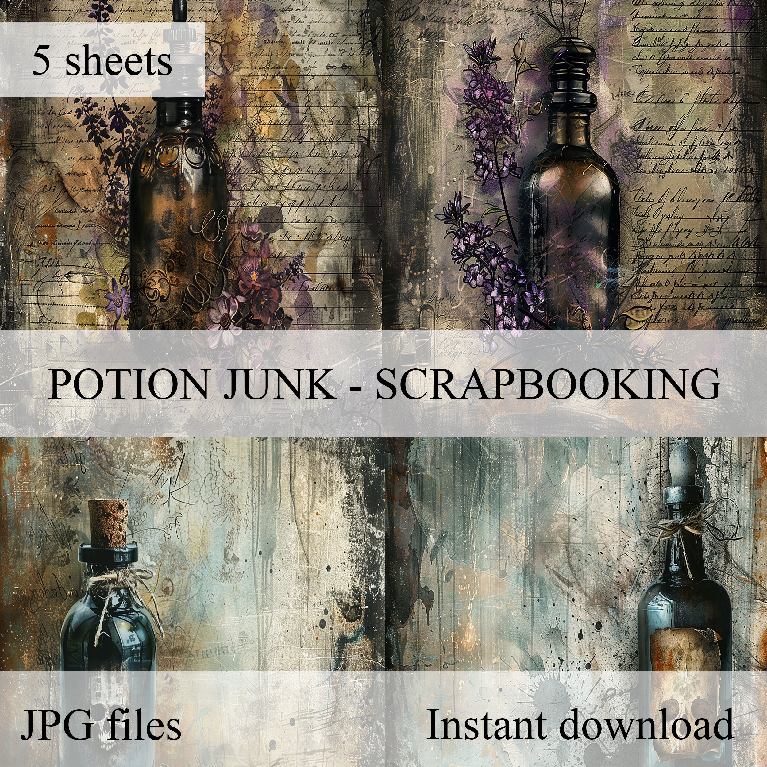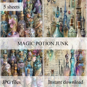 Magic Potions Junk Journal Paper, Junk Journal Pages, Scrapbooking Collage, Junk Journal Kit, Potion Scrapbooking, Sheets, Journal