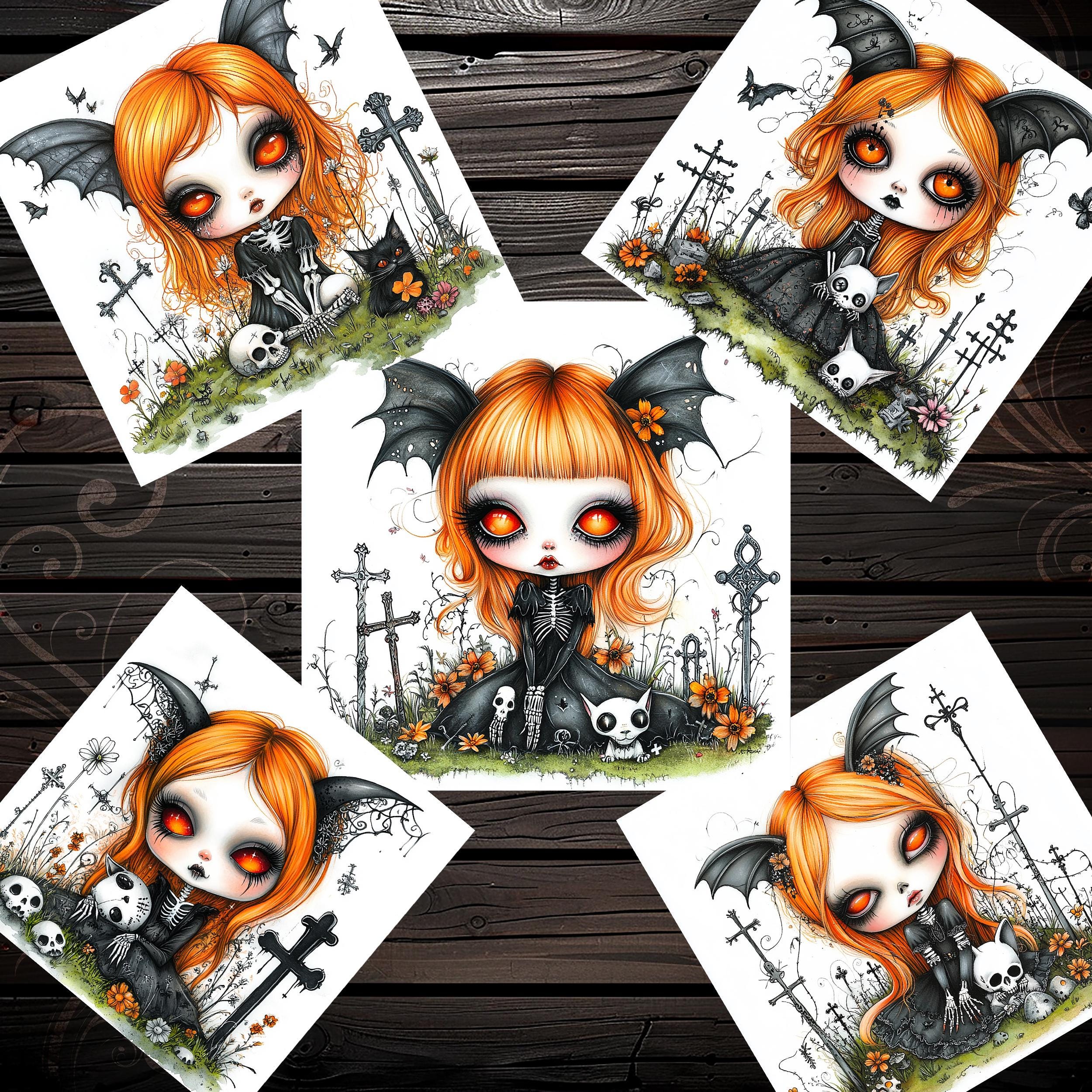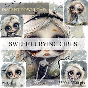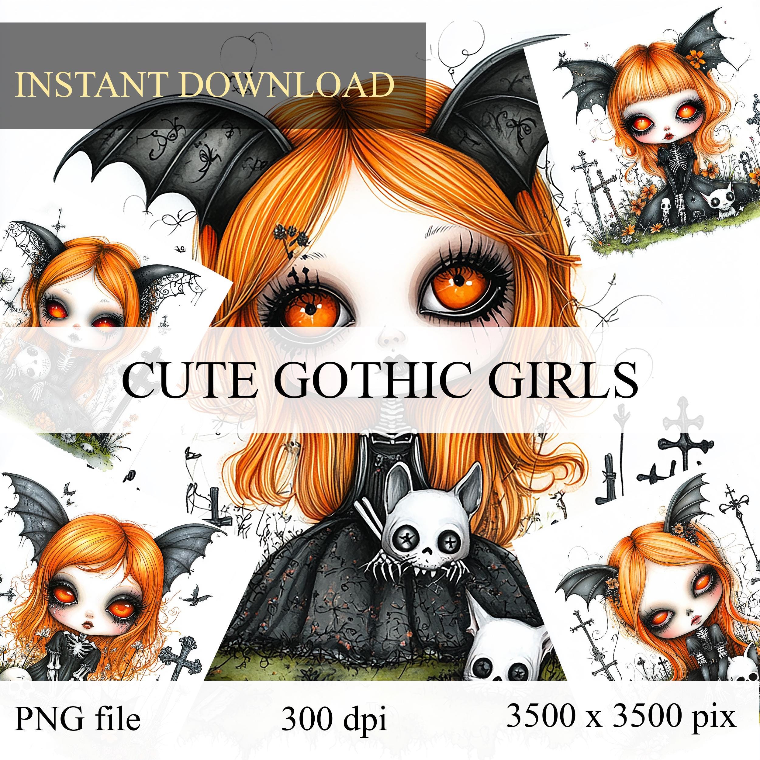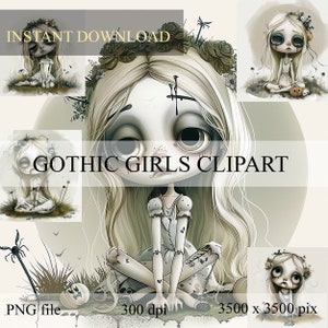 Clipart eerie gothic girls, junk journal stickers, scrapbooking stickers, junk journal gothic, scrapbook paper, ephemera, digital