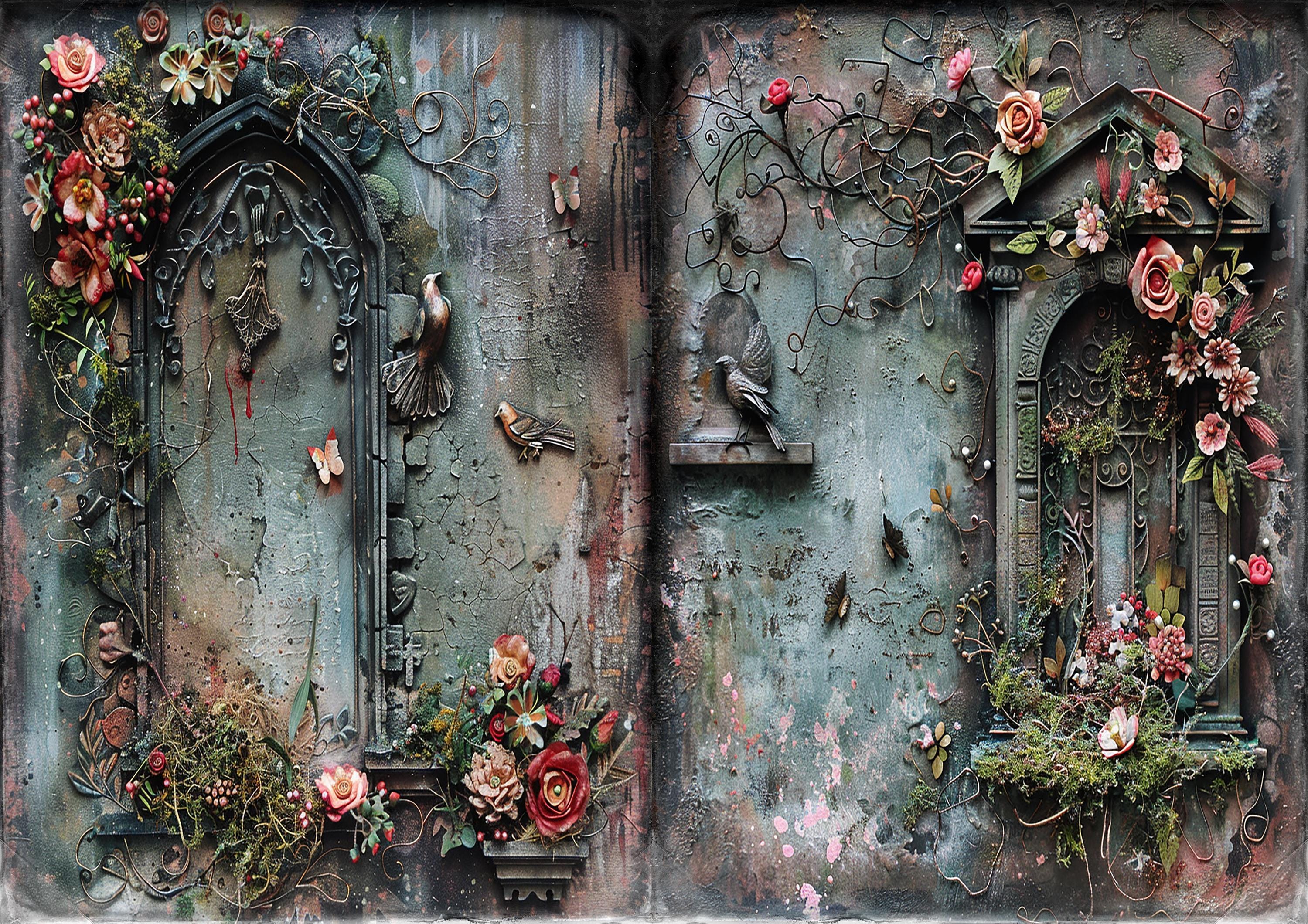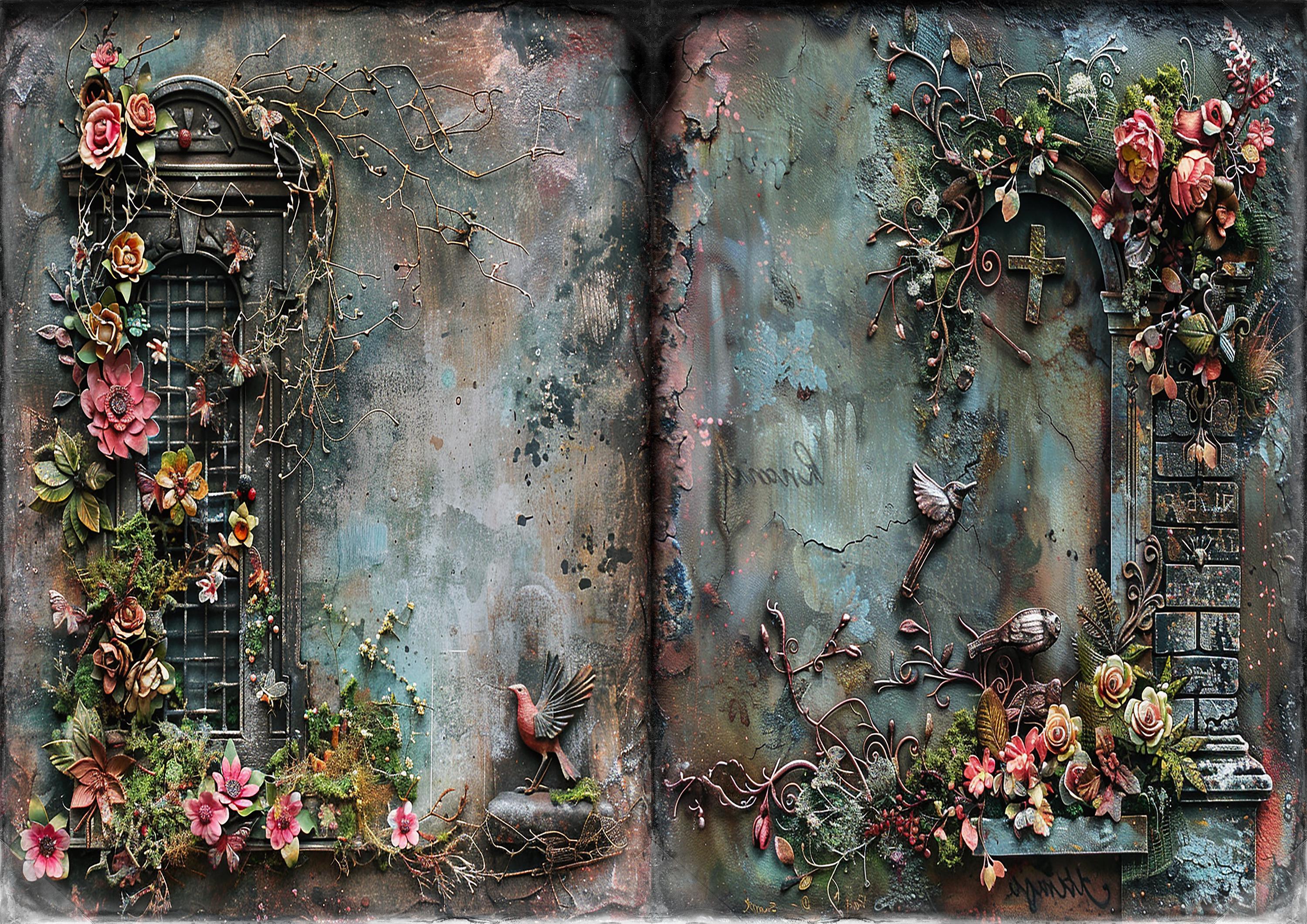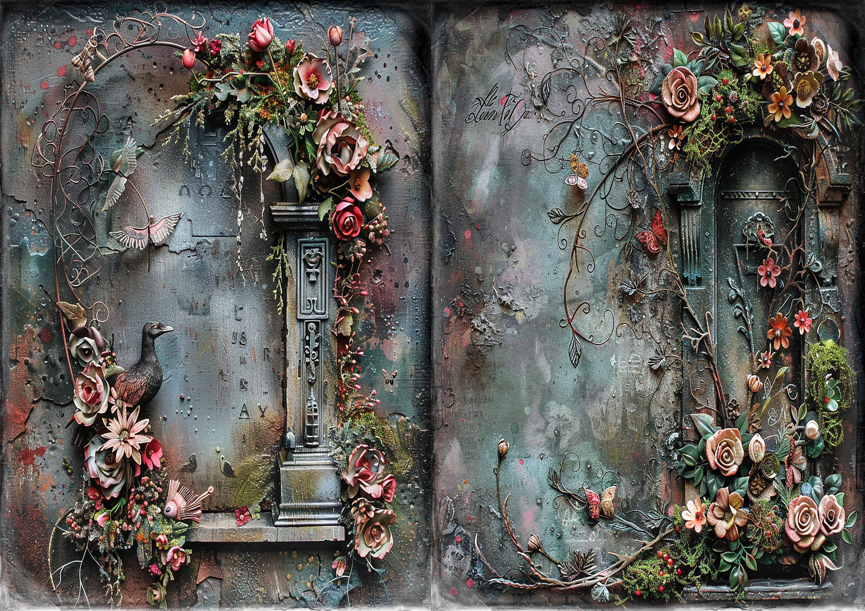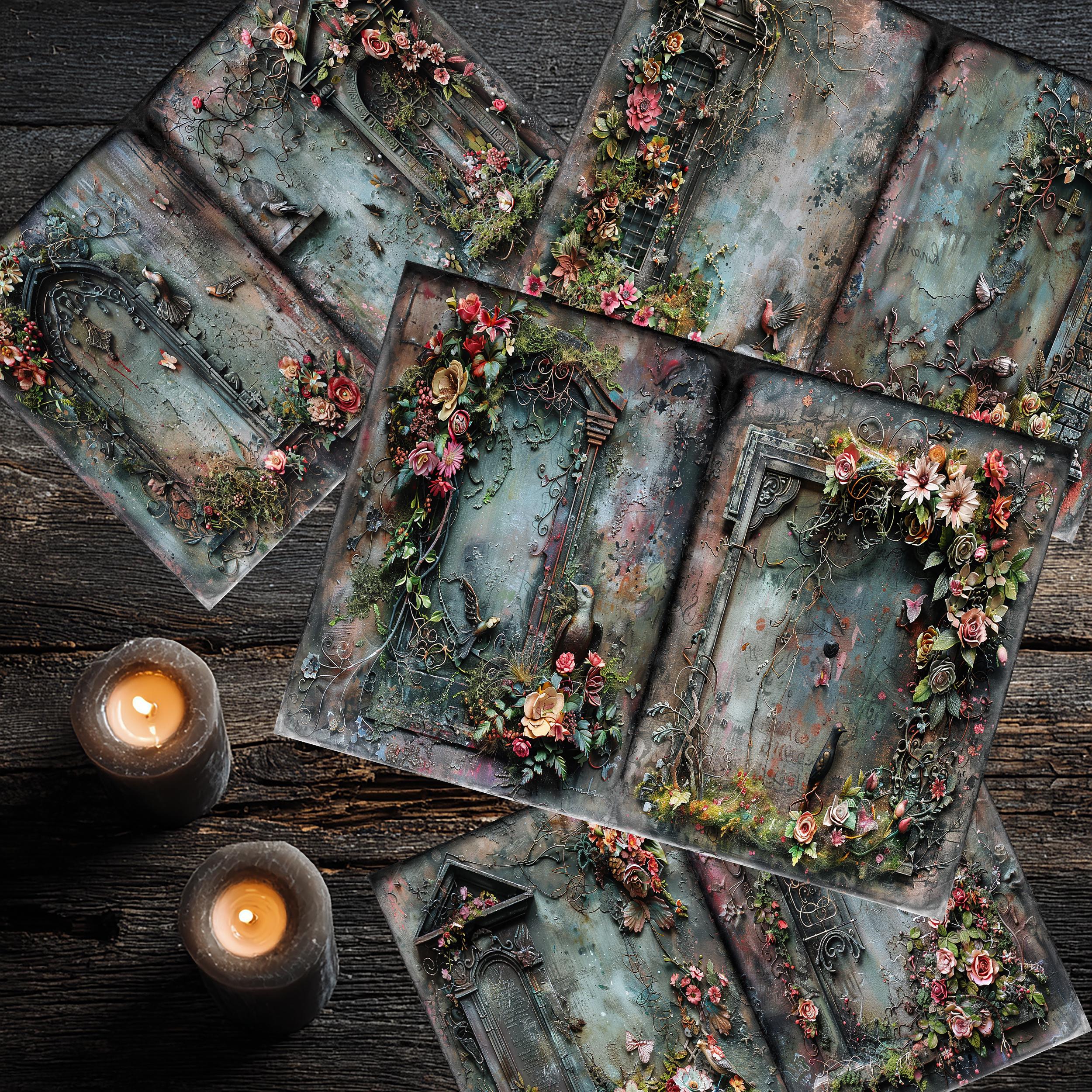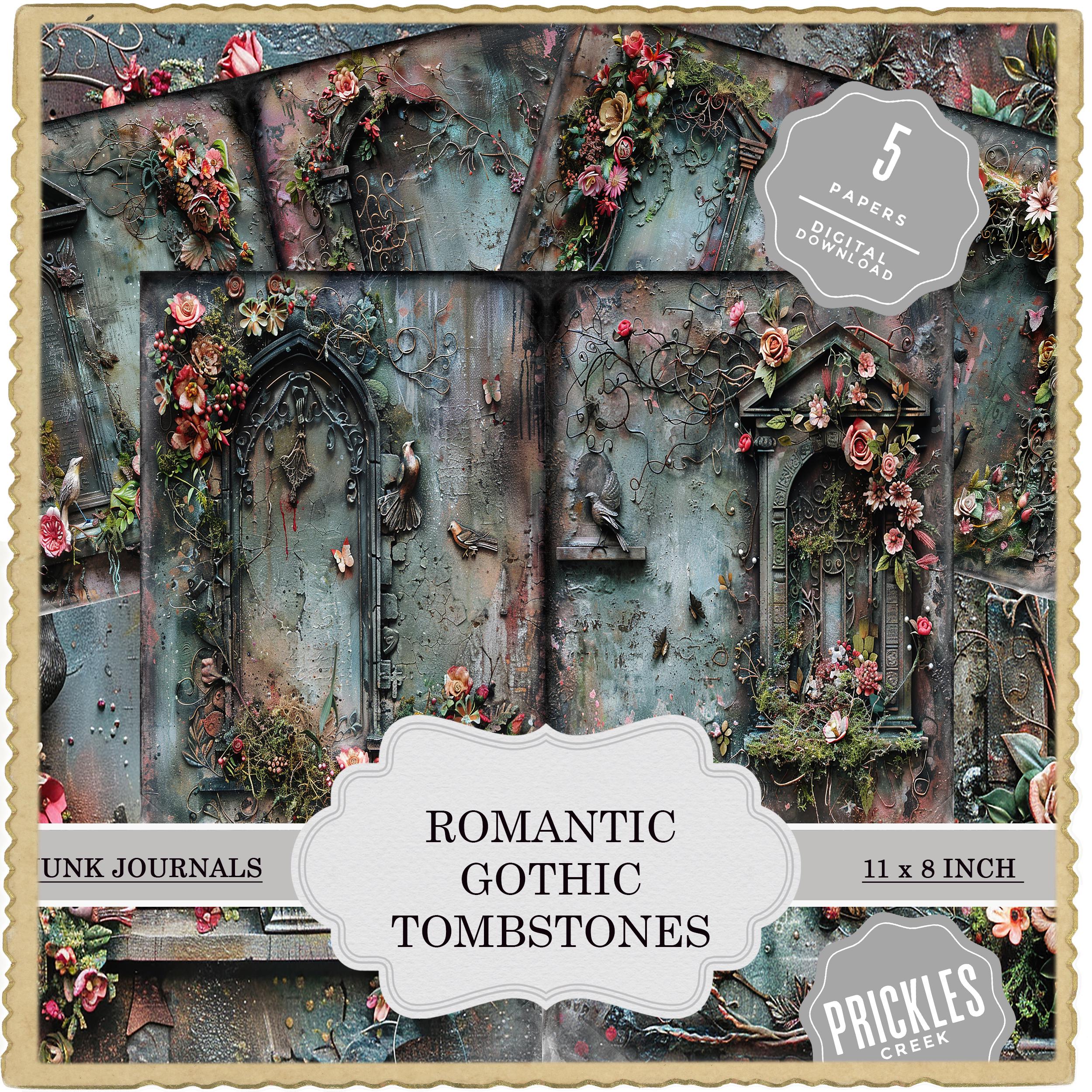 Romantic gothic tombstones junk journal paper, scrapbook papers, scrapbooking set, ephemera, memory album - digital paper