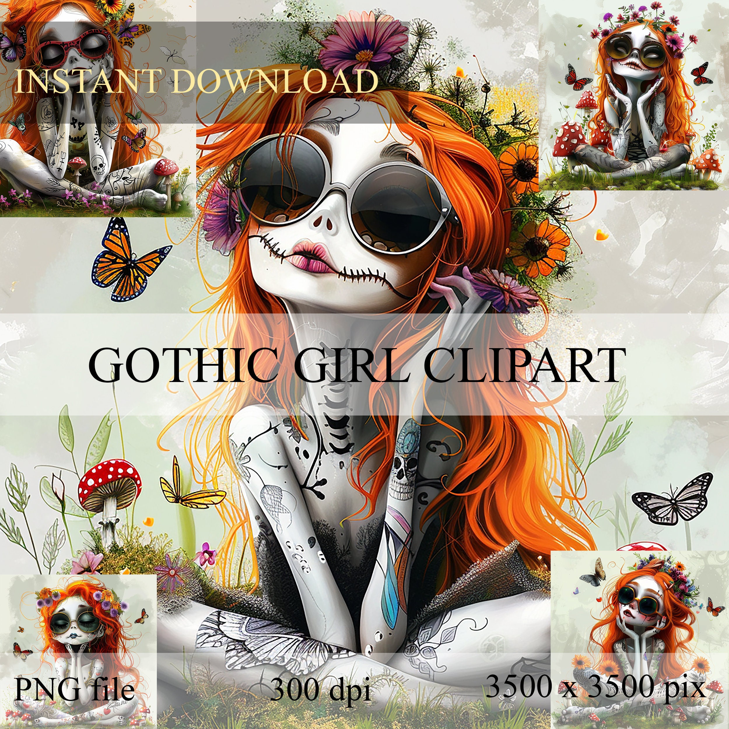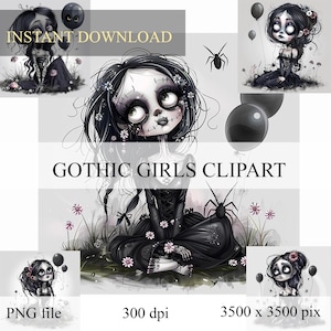 Clipart Gothic Girls, Junk Journal Sticker, Junk Journal Aufkleber, Scrapbooking Papier, Scrapbooking Seite, Gothic Collage, Sheet, digital