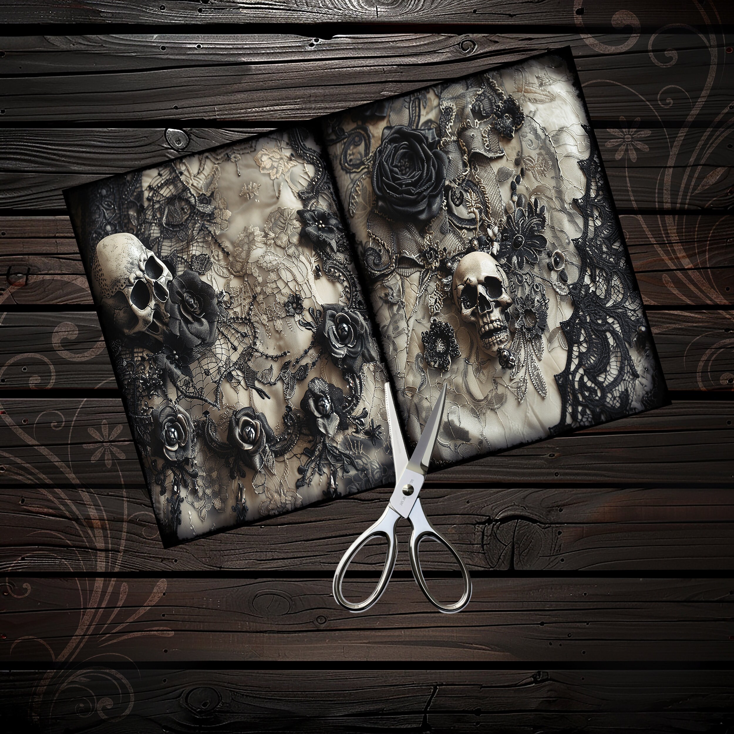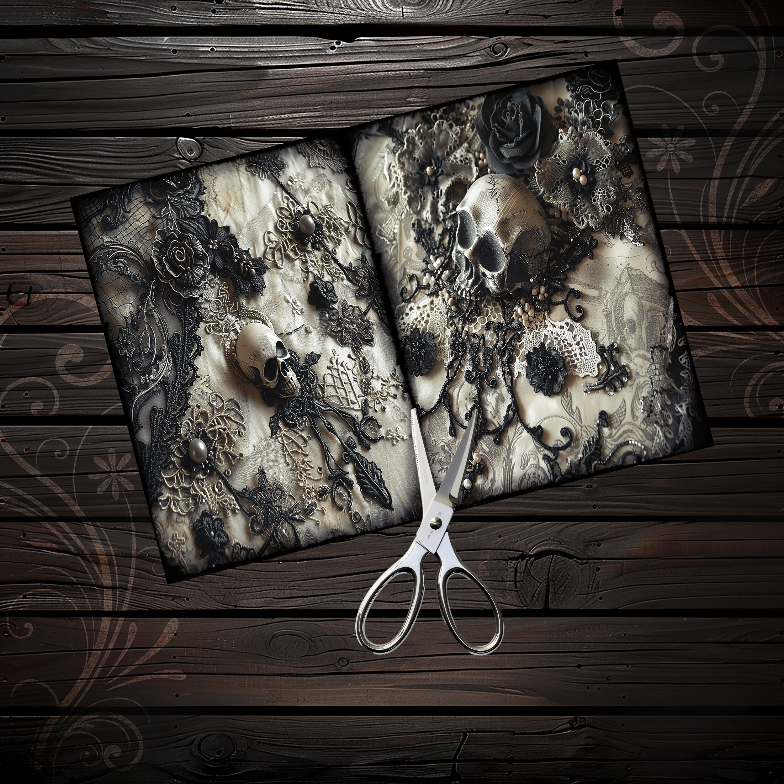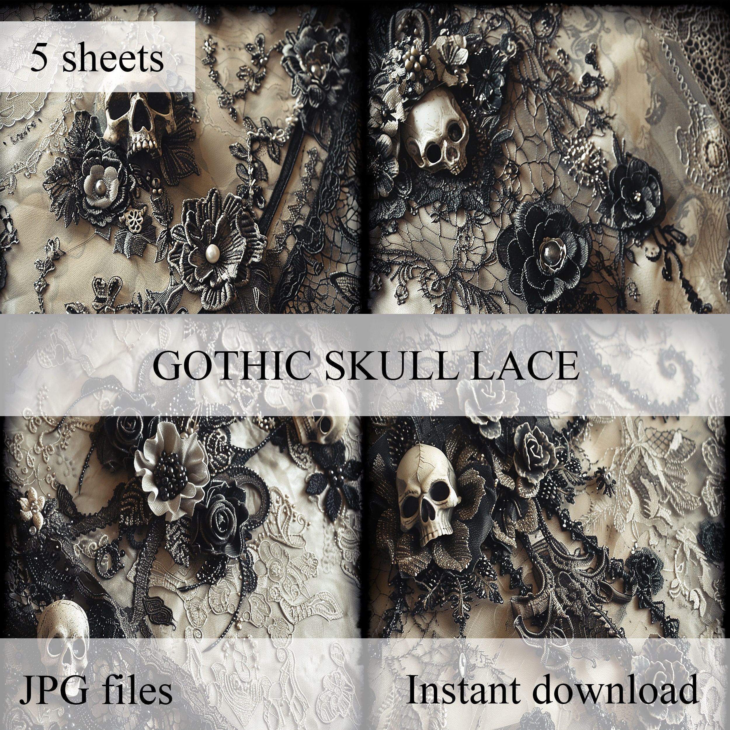 Romantic skull junk journal paper, scrapbook, scrapbooking collage, junk journal kit, ephemera digital, printable paper, vintage, lace