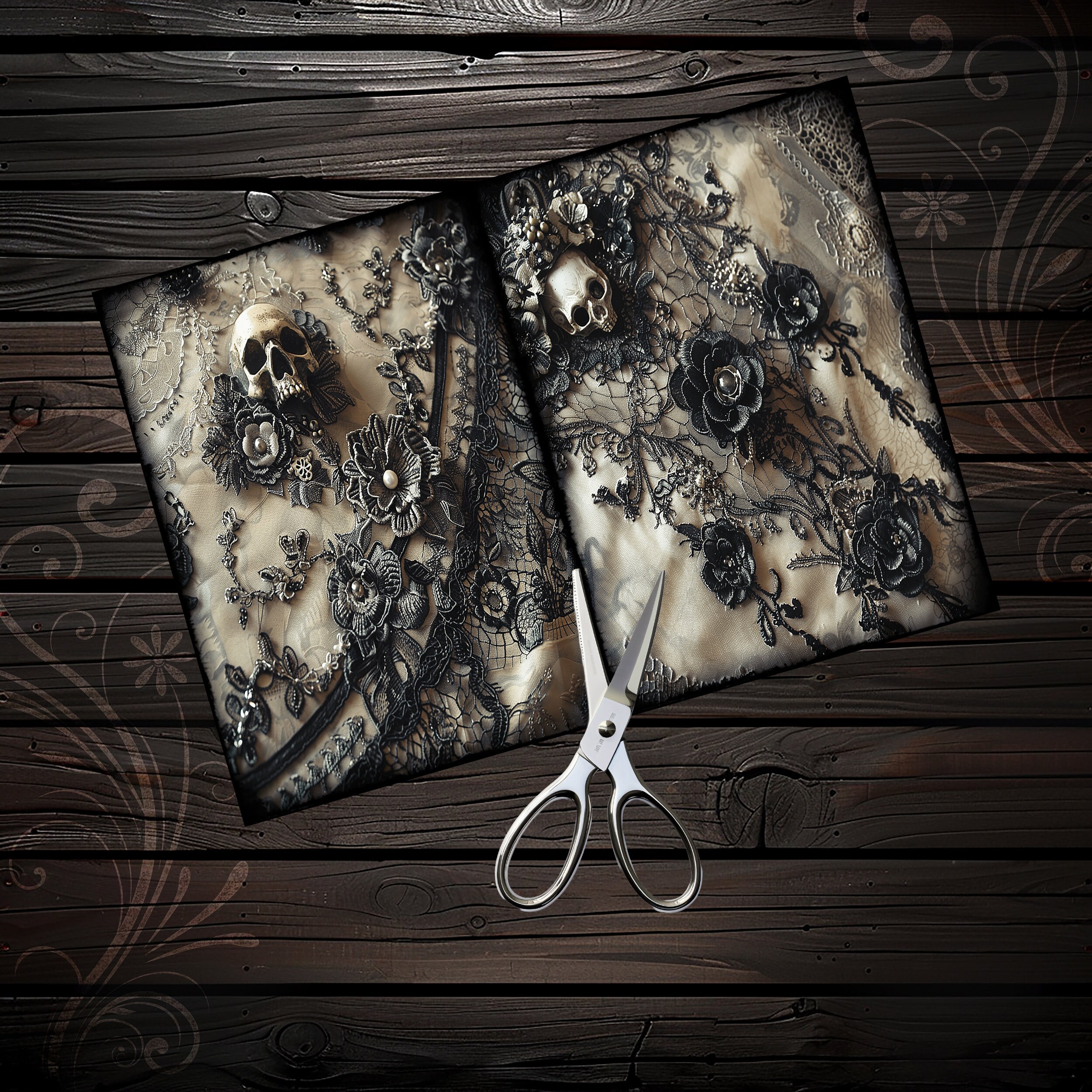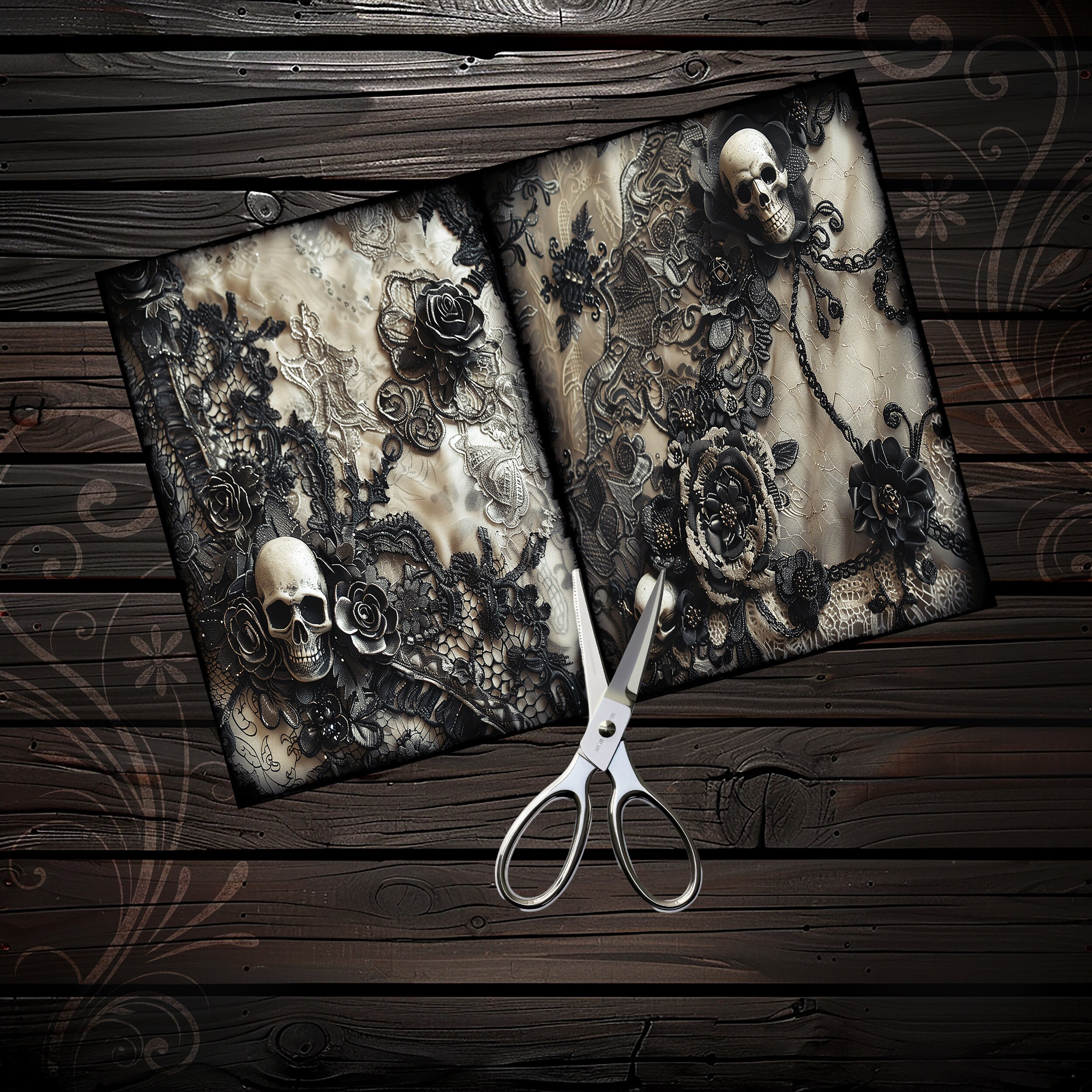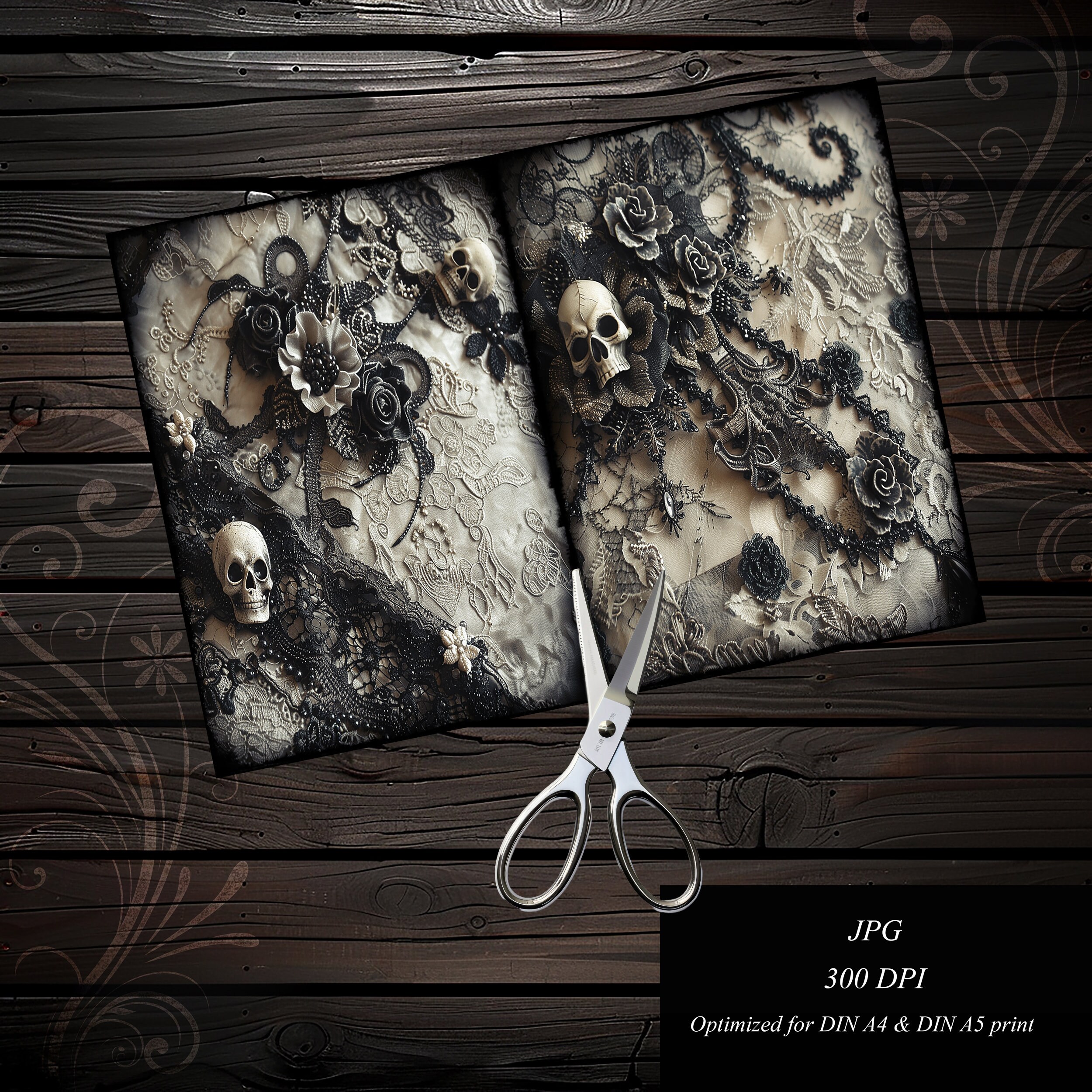 Romantic skull junk journal paper, scrapbook, scrapbooking collage, junk journal kit, ephemera digital, printable paper, vintage, lace