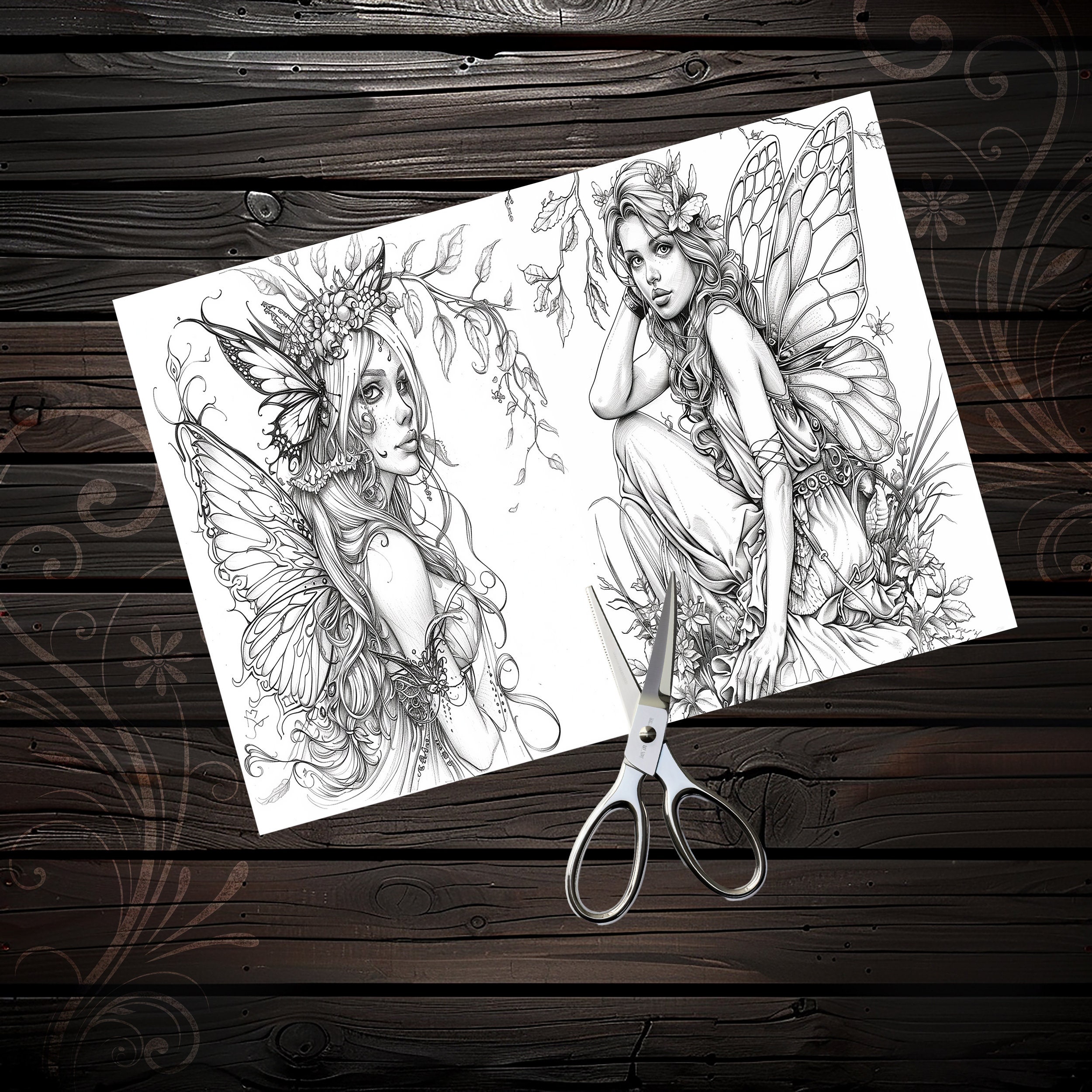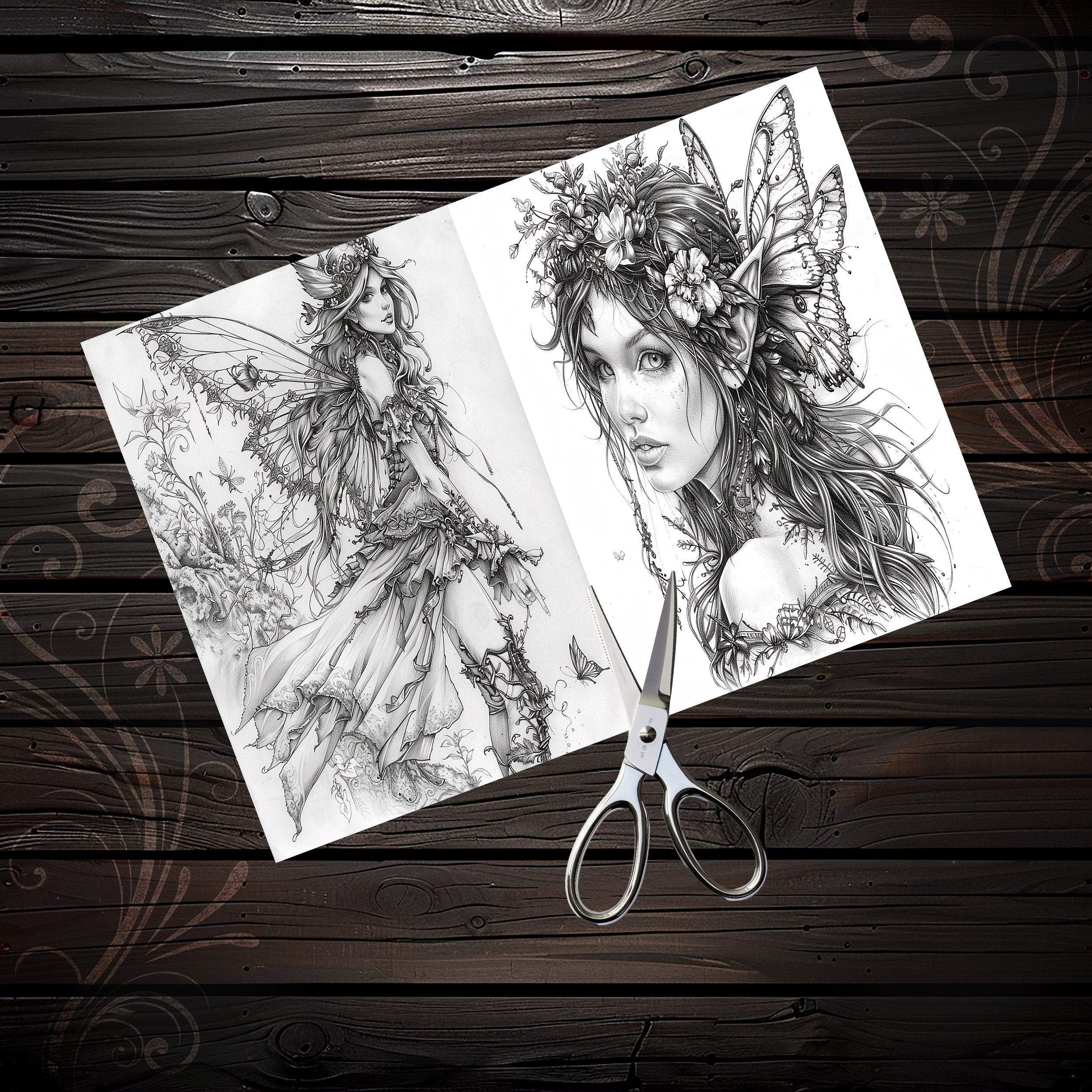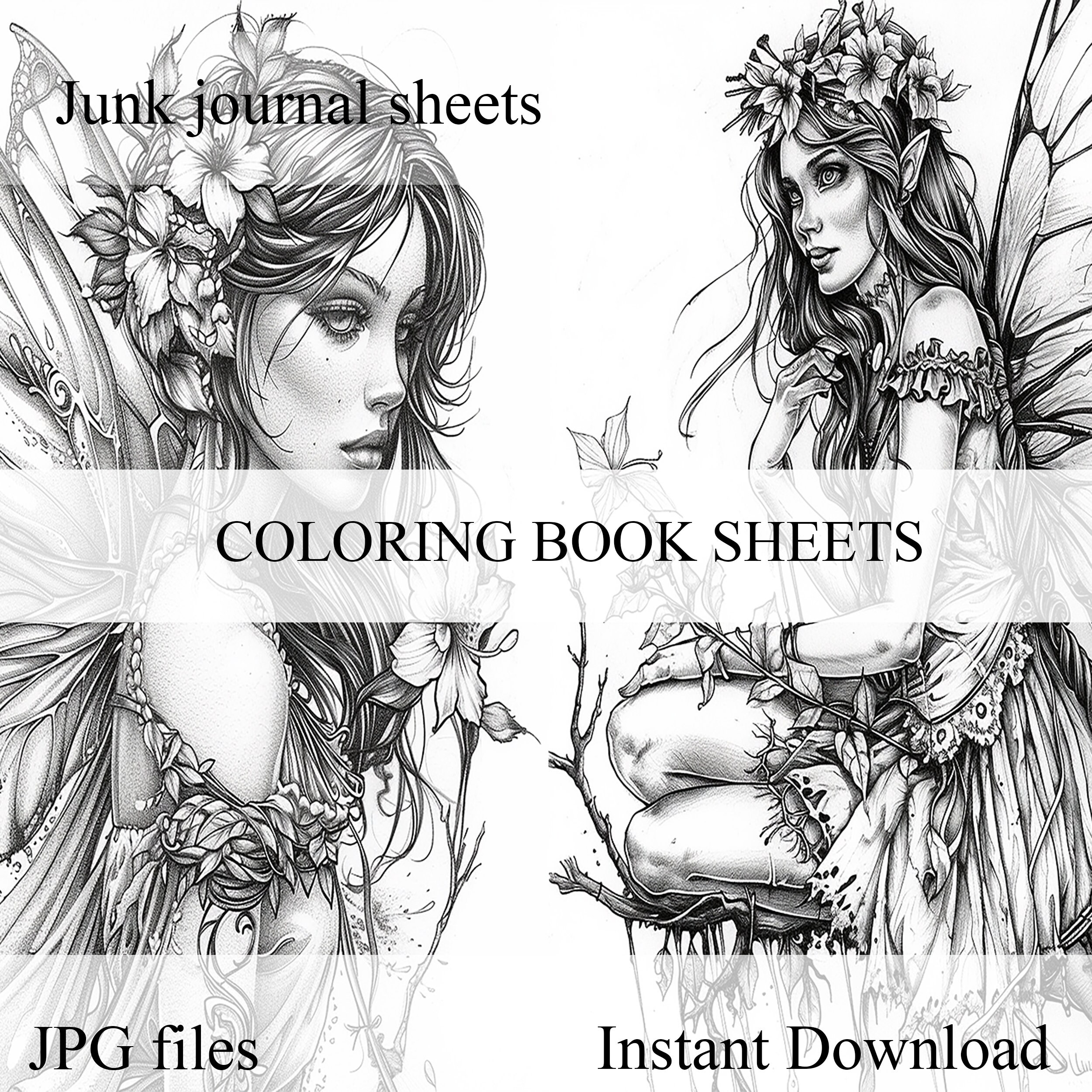 Scrapbook coloring book, Junk Journal sheets, fantasy, fairy, Scrapbook handmade, Scrapbooking set, Junk Journal paper, ephemera, digital