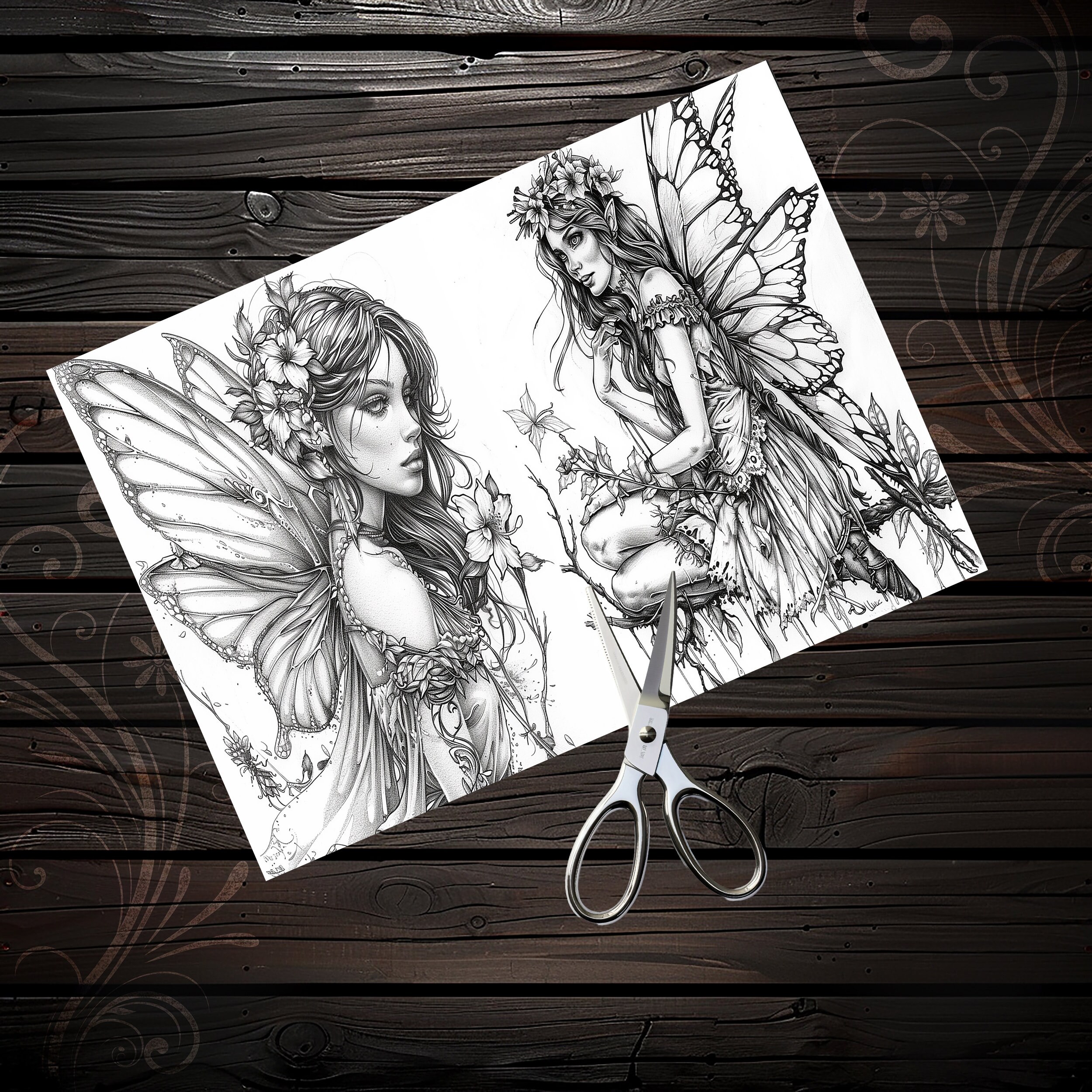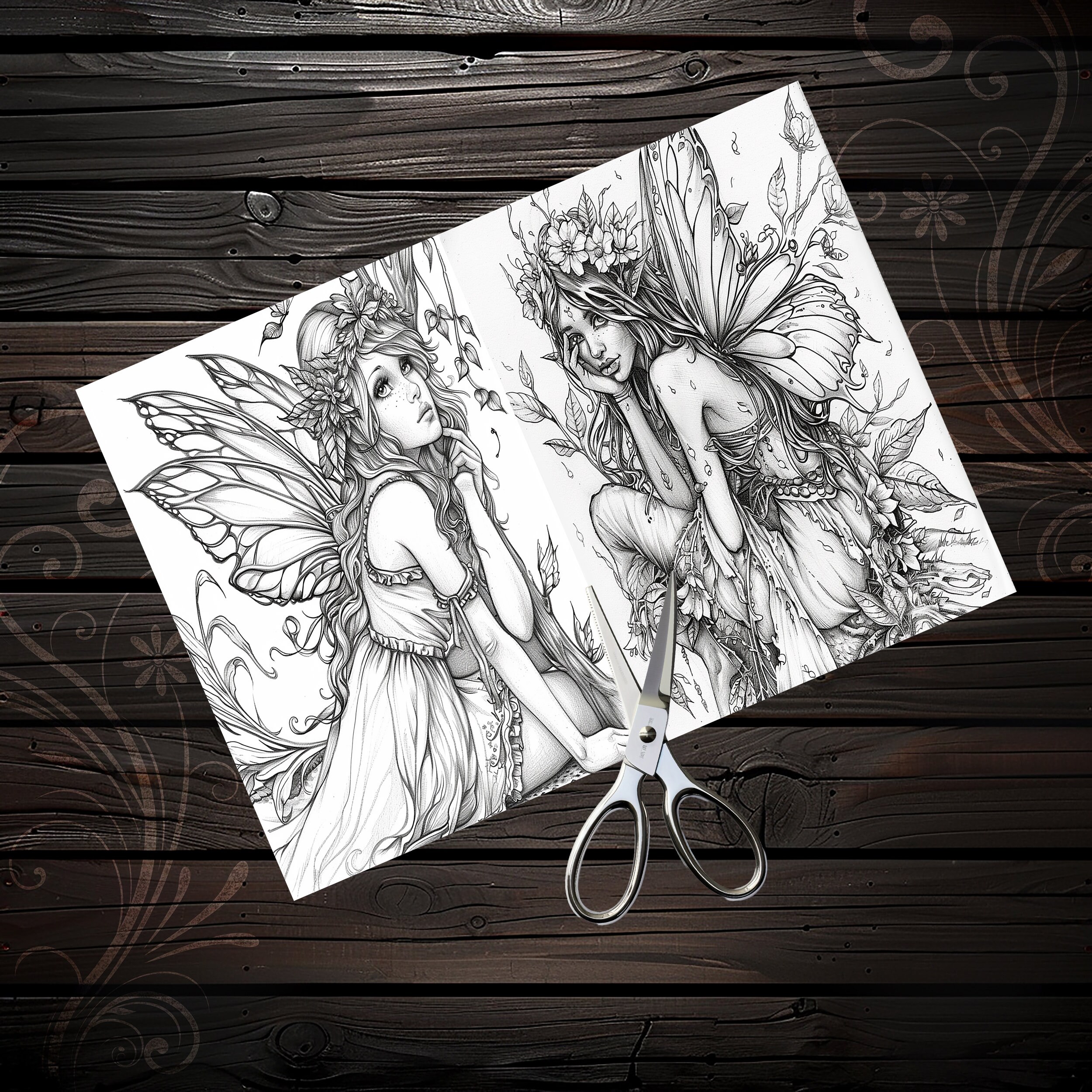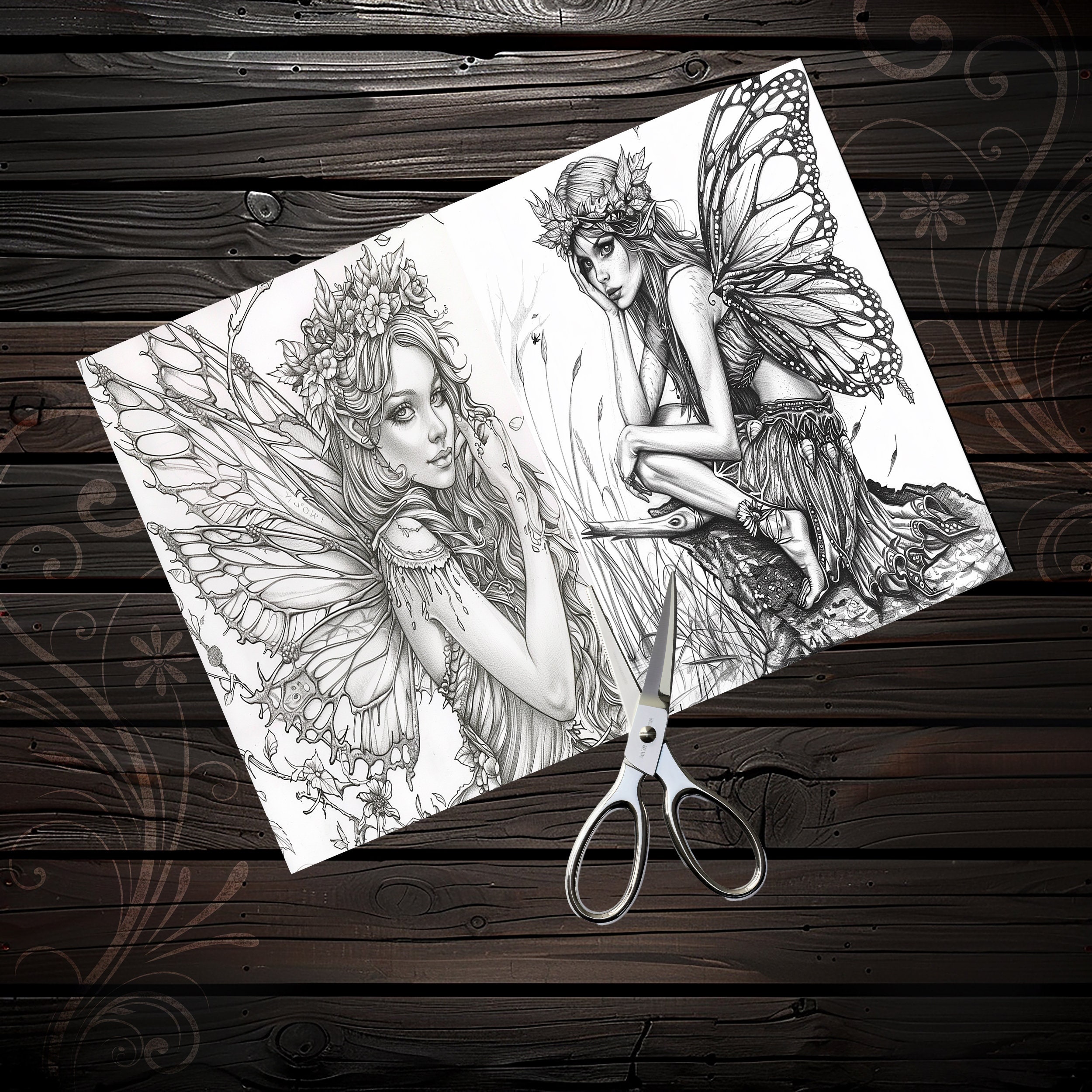 Scrapbook coloring book, Junk Journal sheets, fantasy, fairy, Scrapbook handmade, Scrapbooking set, Junk Journal paper, ephemera, digital