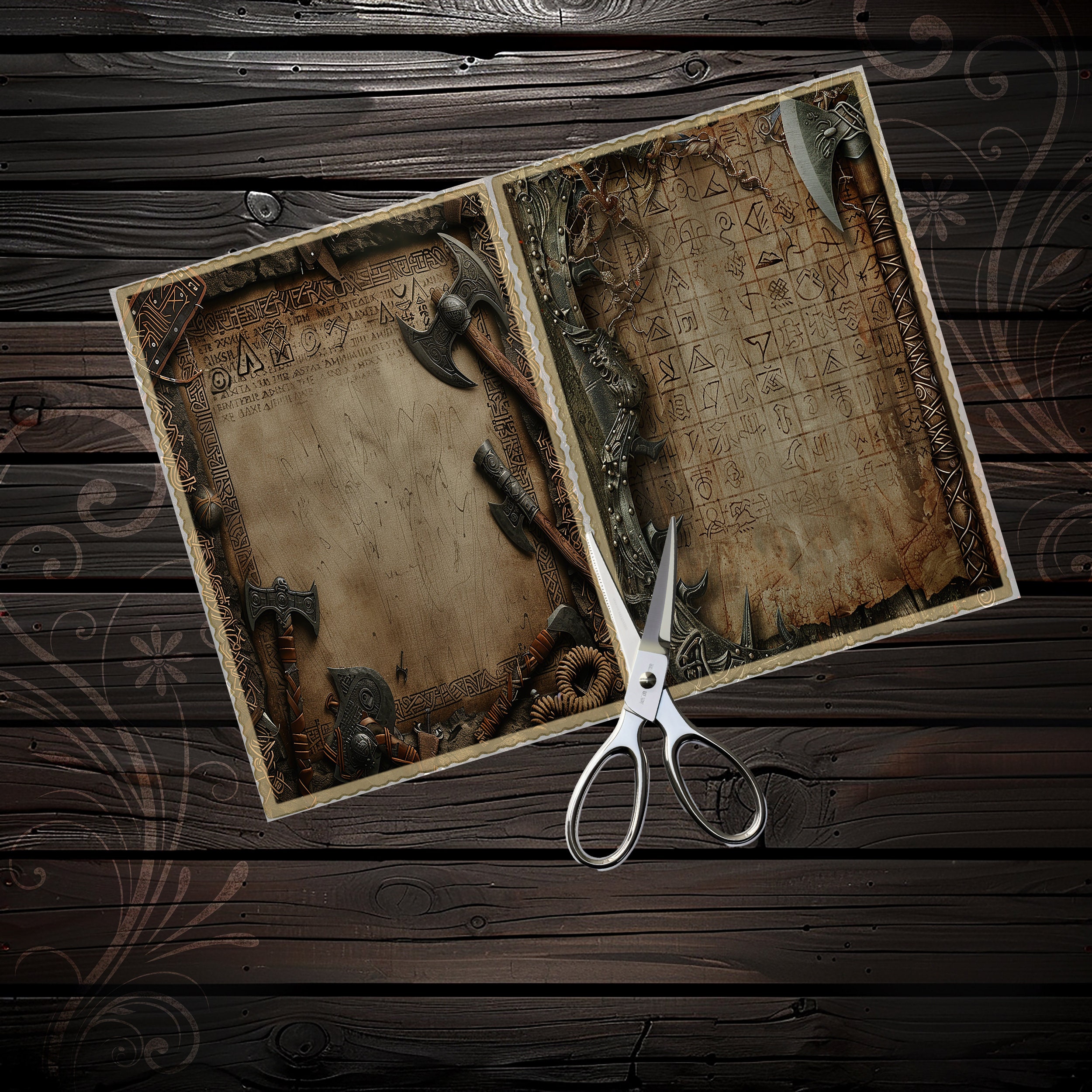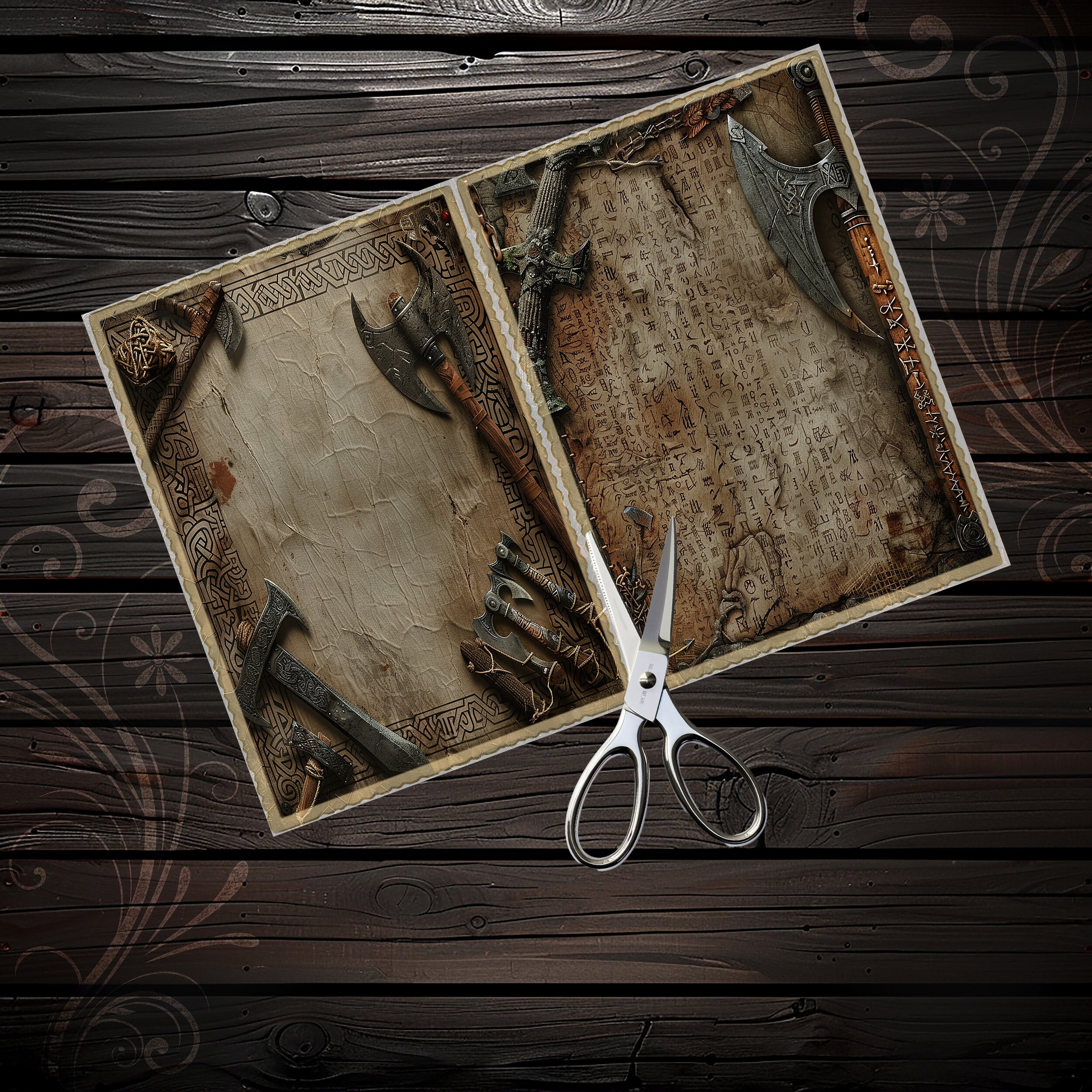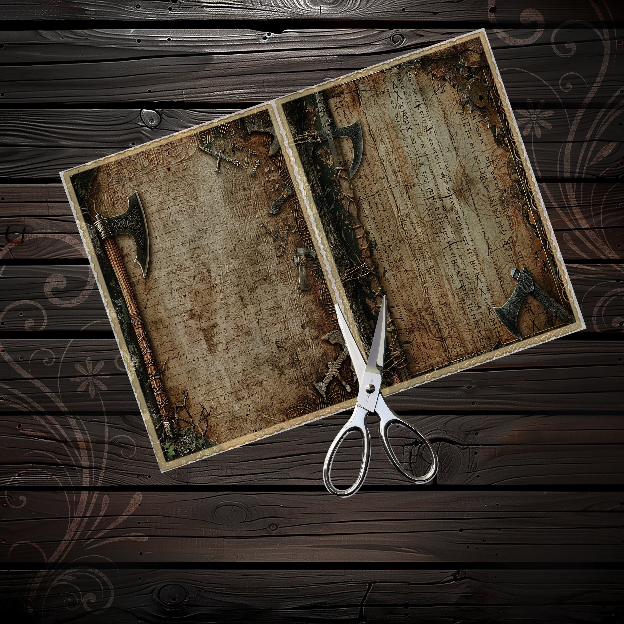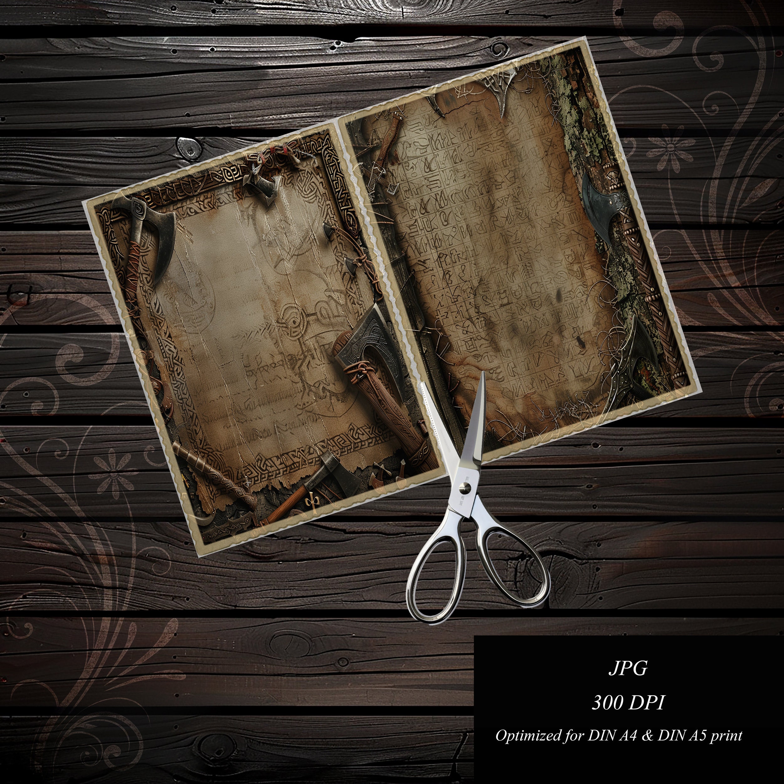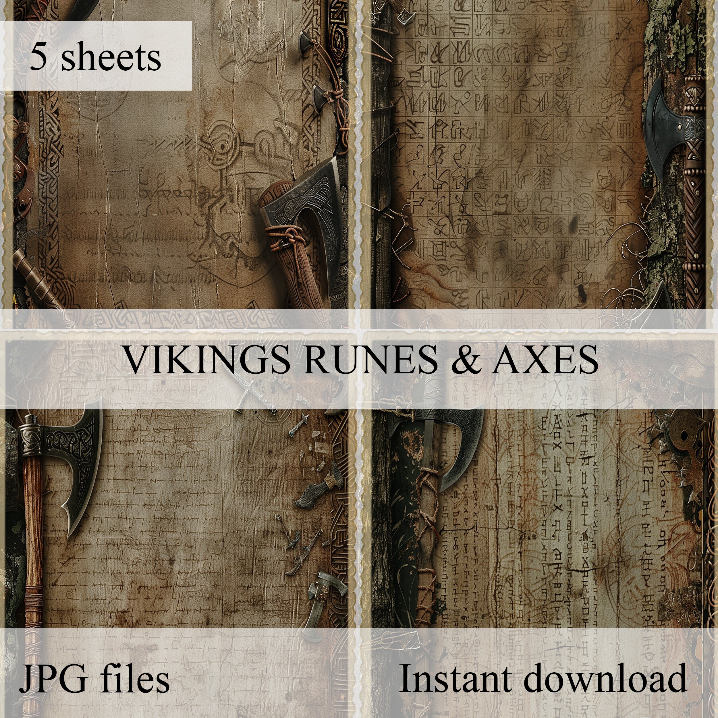 Junk journal pages, vikings, runes, axes, scrapbooking pages, printable paper, collage, scrapbook - digital download